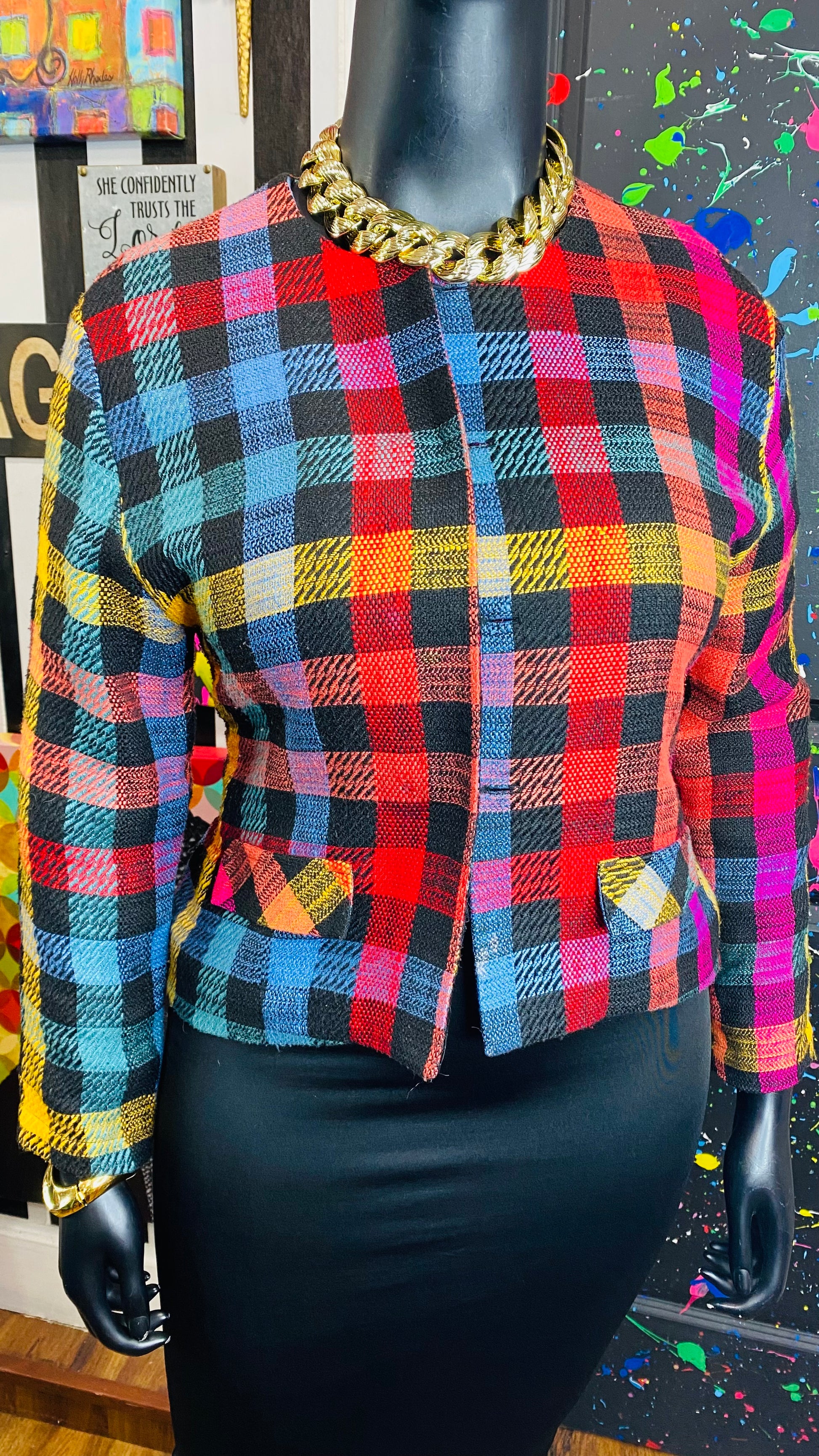 Vintage Carole Little Rainbow Box Cropped Blazer (14)