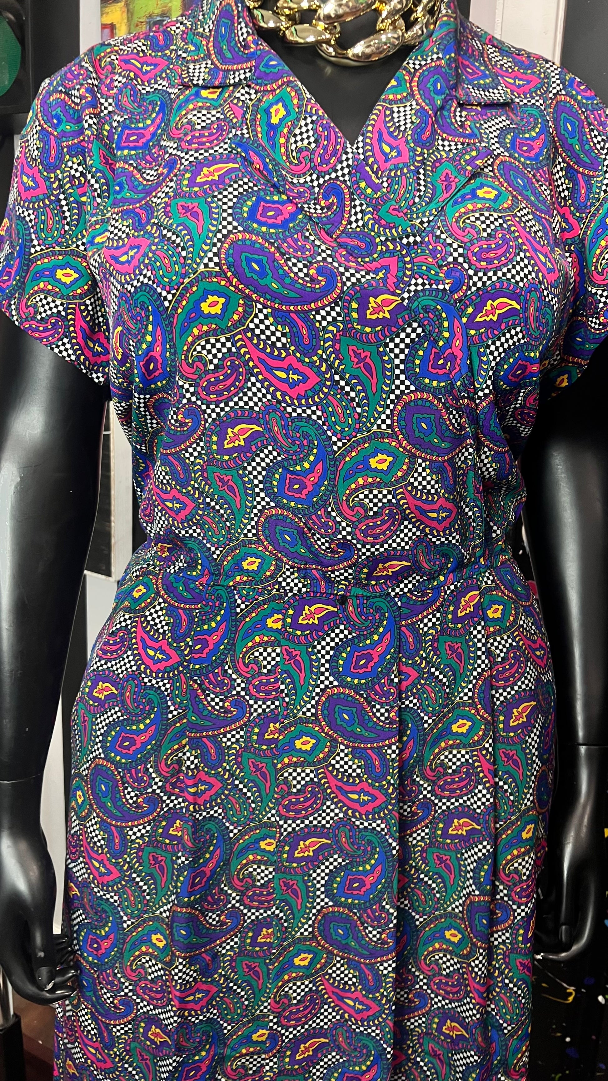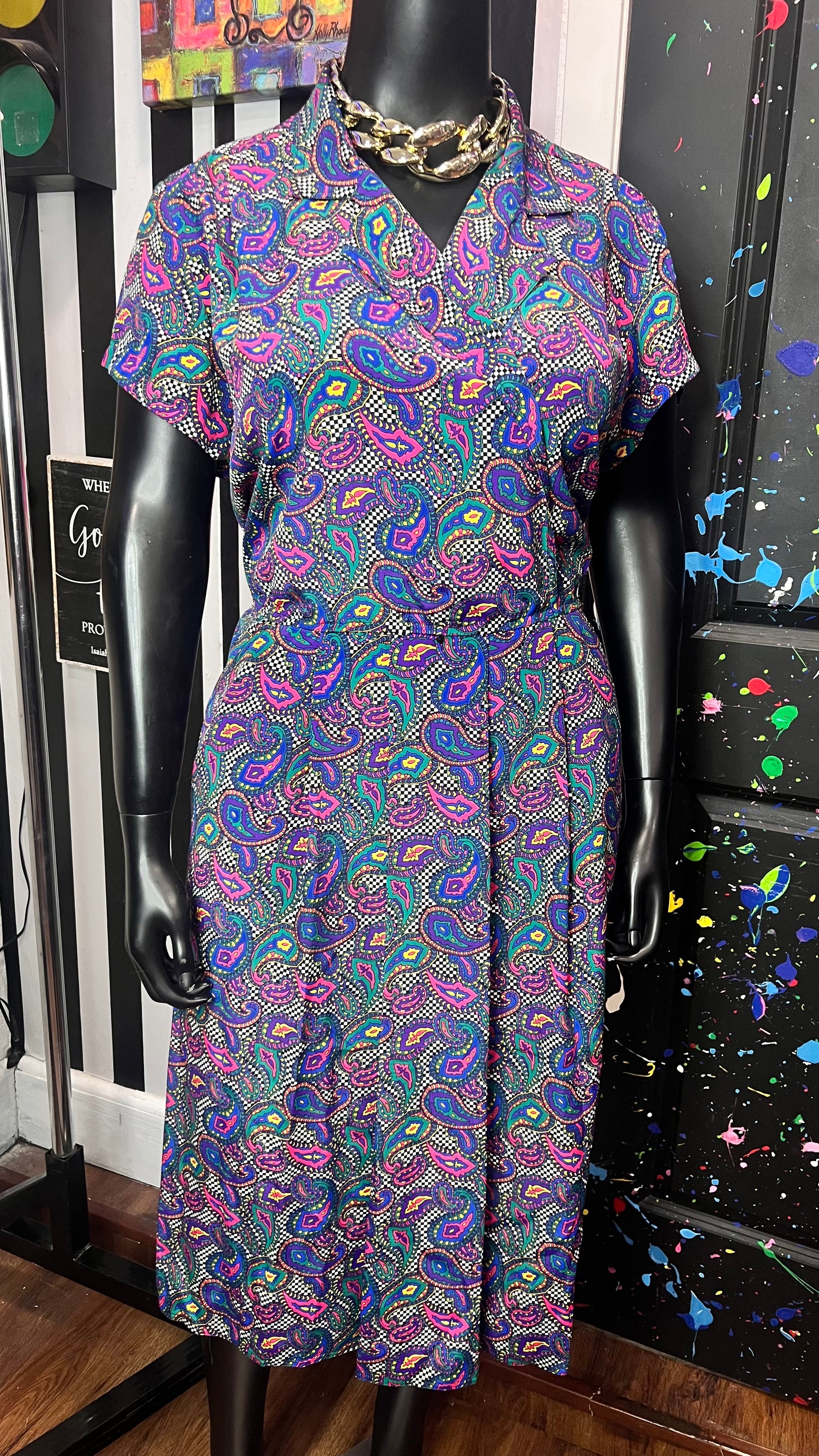 Vintage Checkered Paisley Dress (14W)
