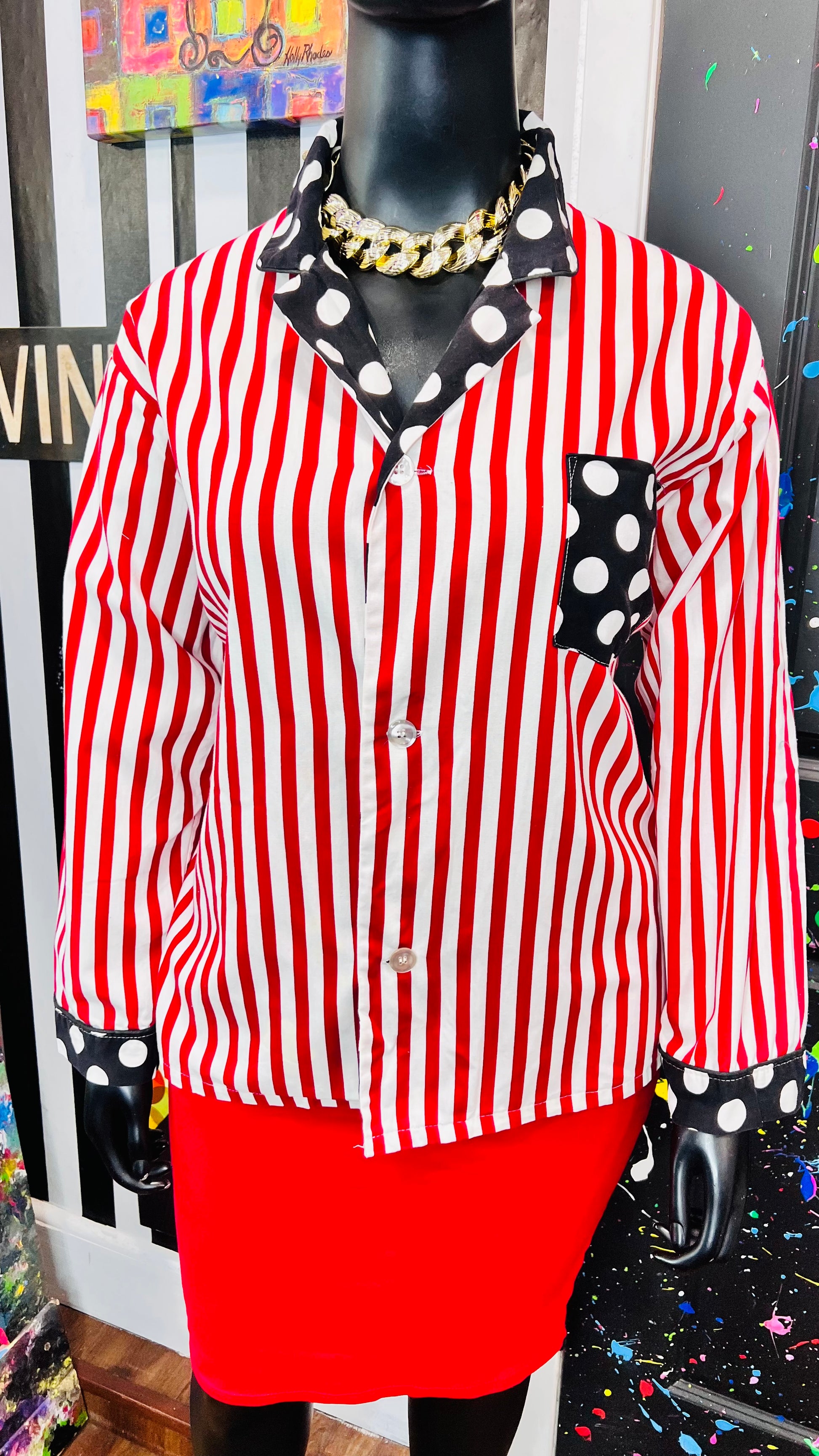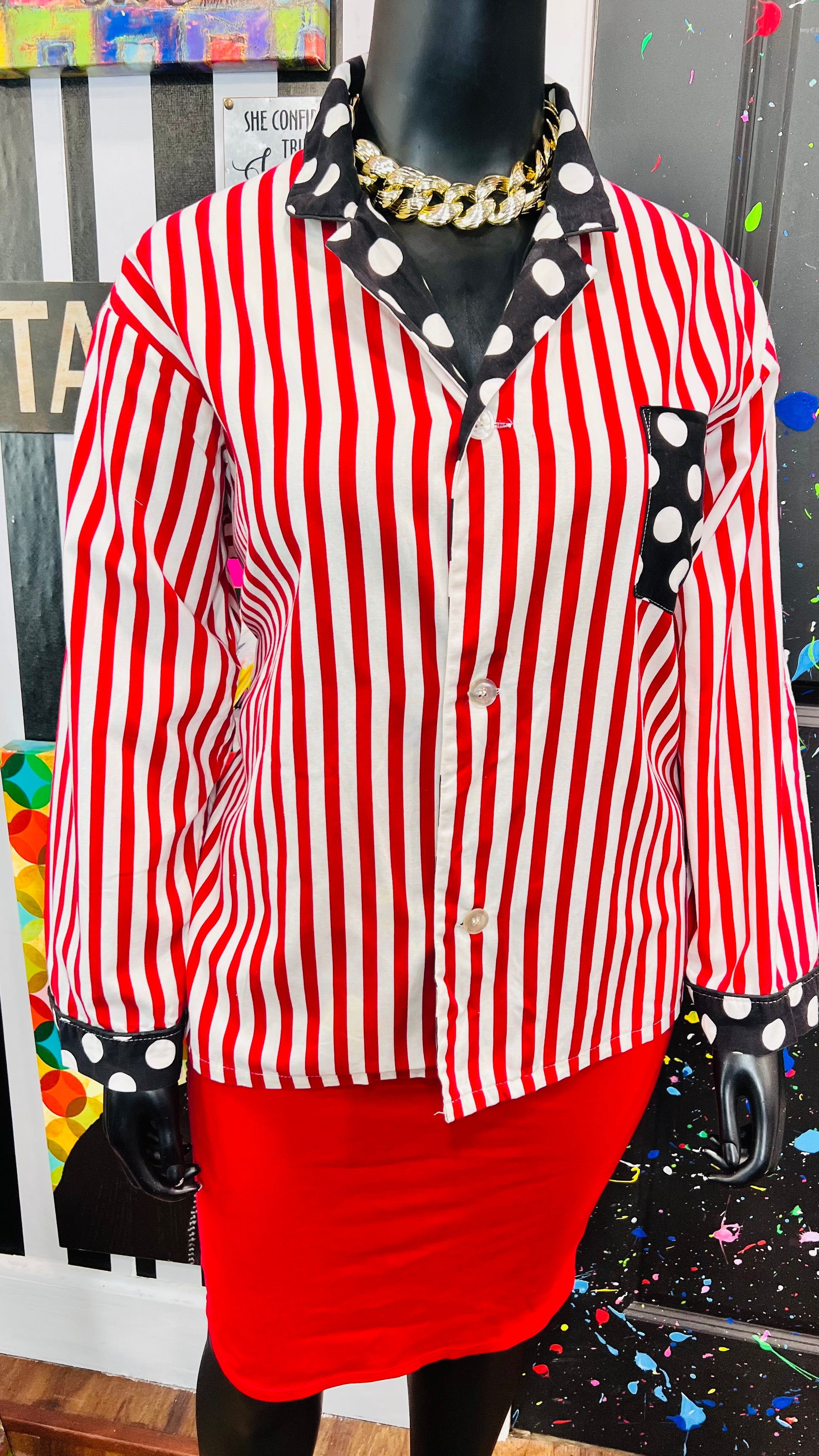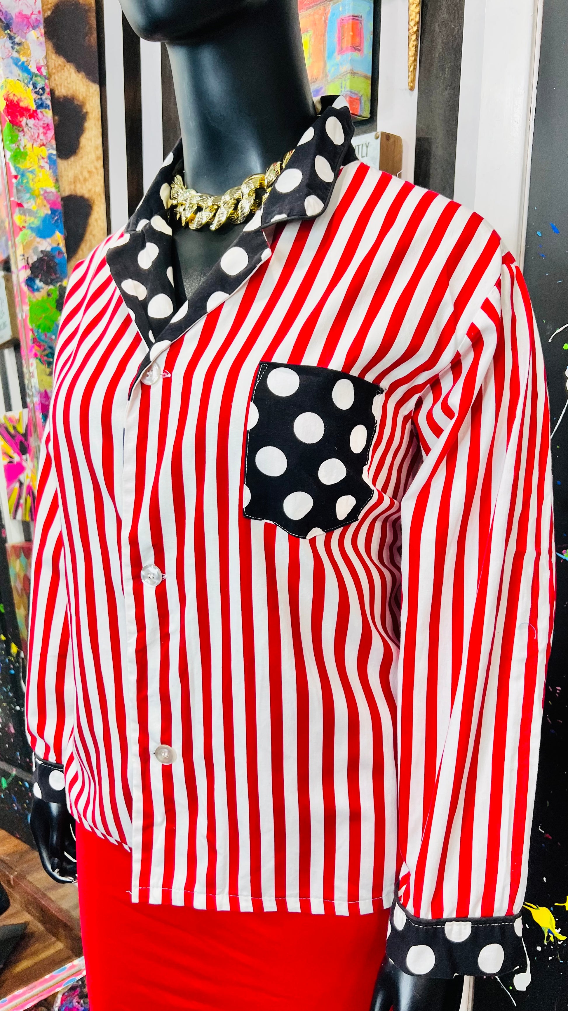 Vintage Cotton Polka Dot & Stripes Blouse (22)
