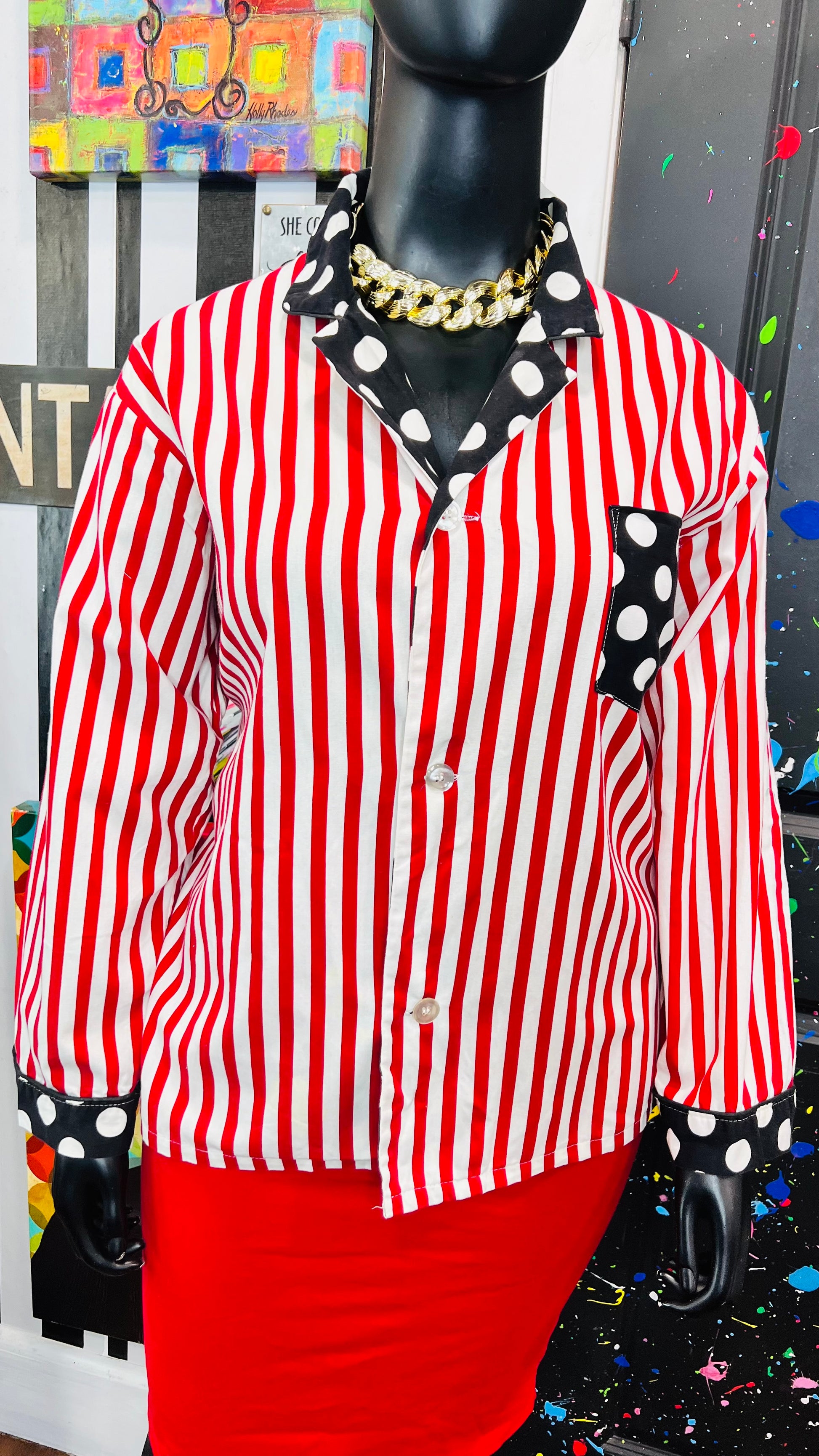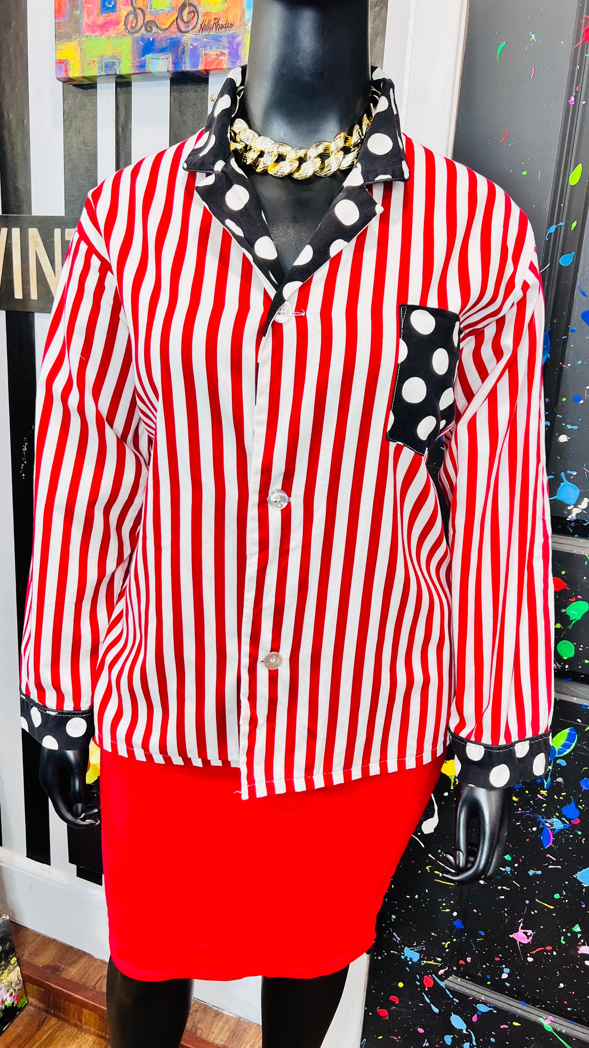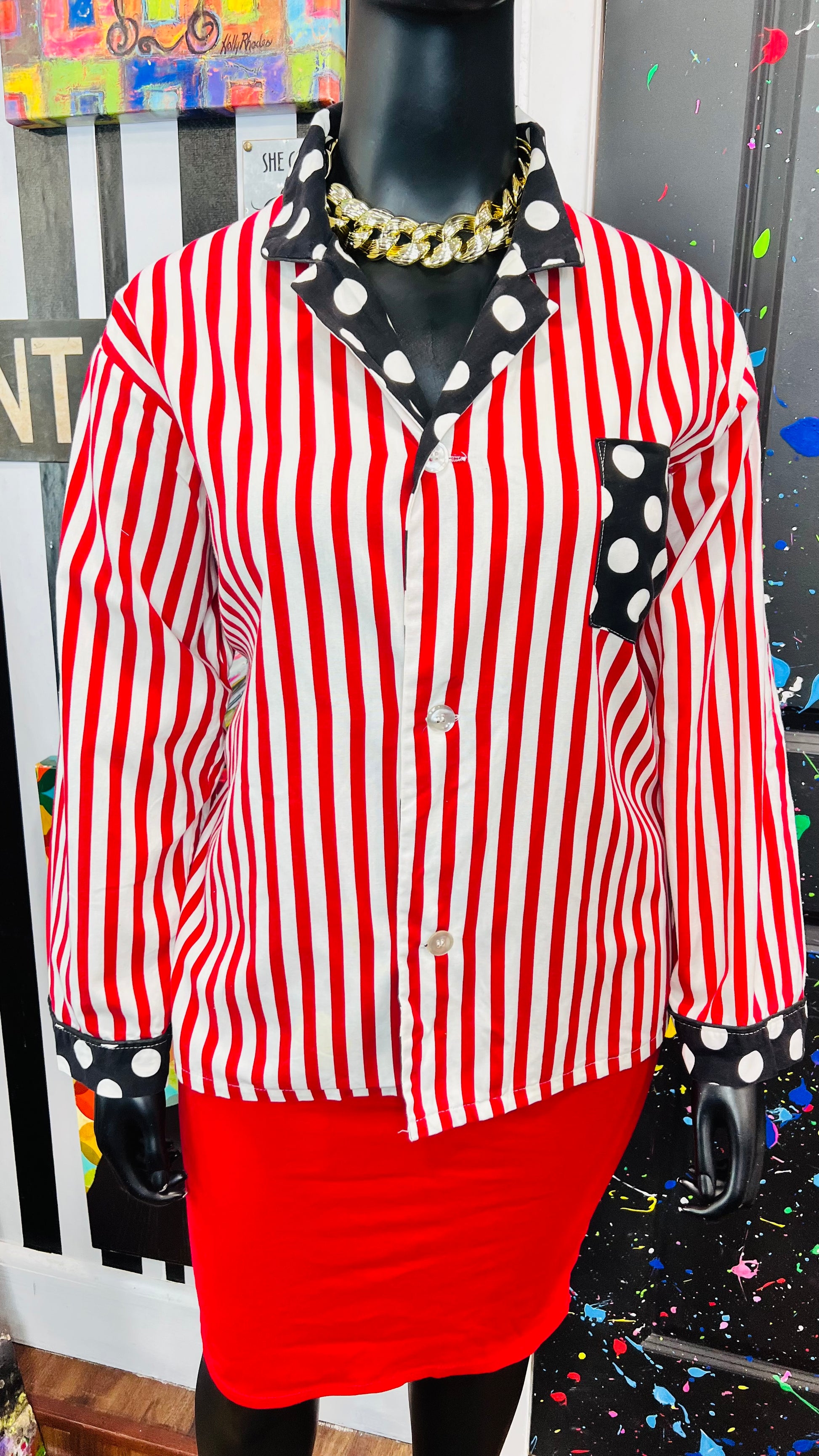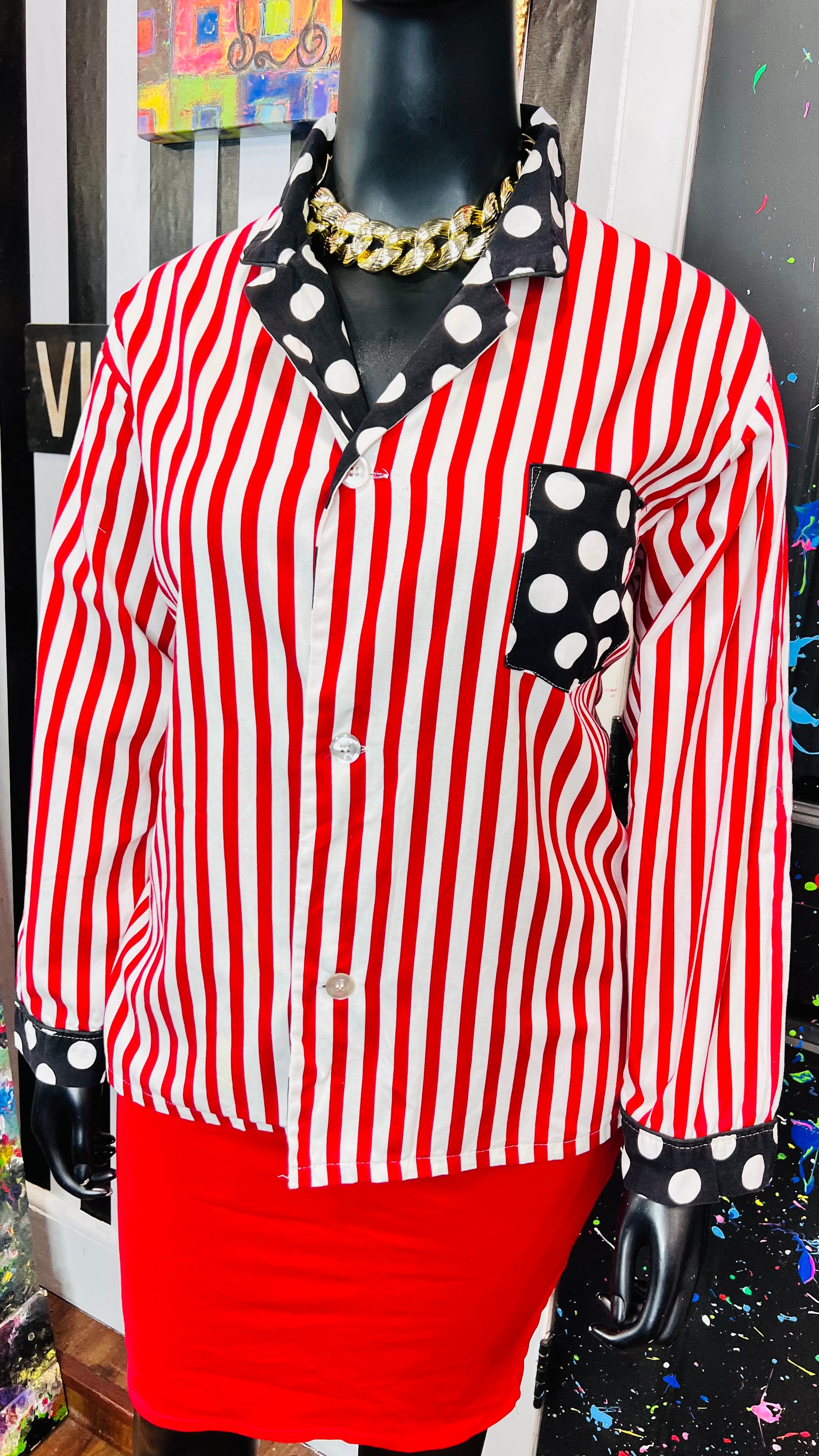 Vintage Cotton Polka Dot & Stripes Blouse (22)