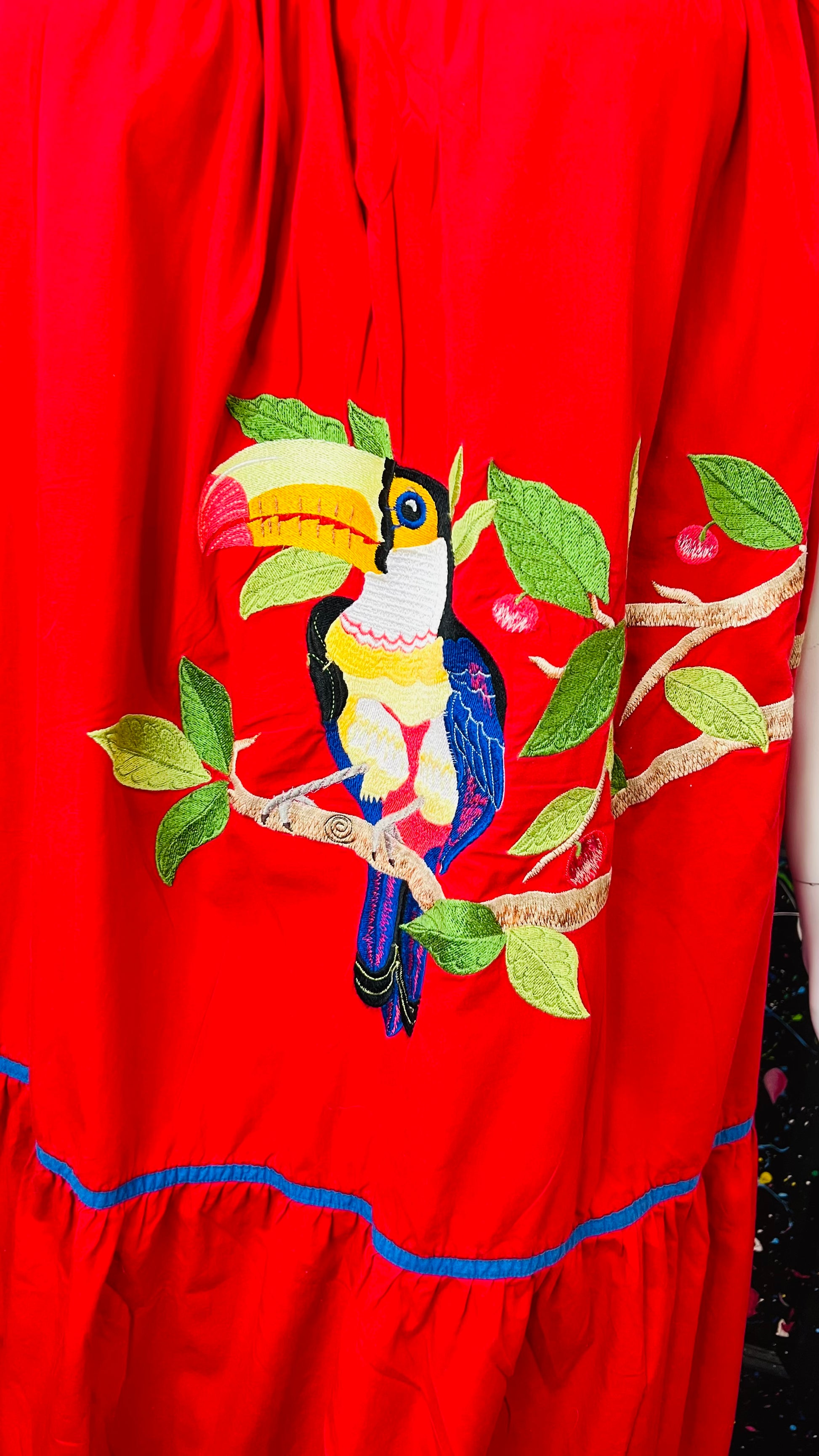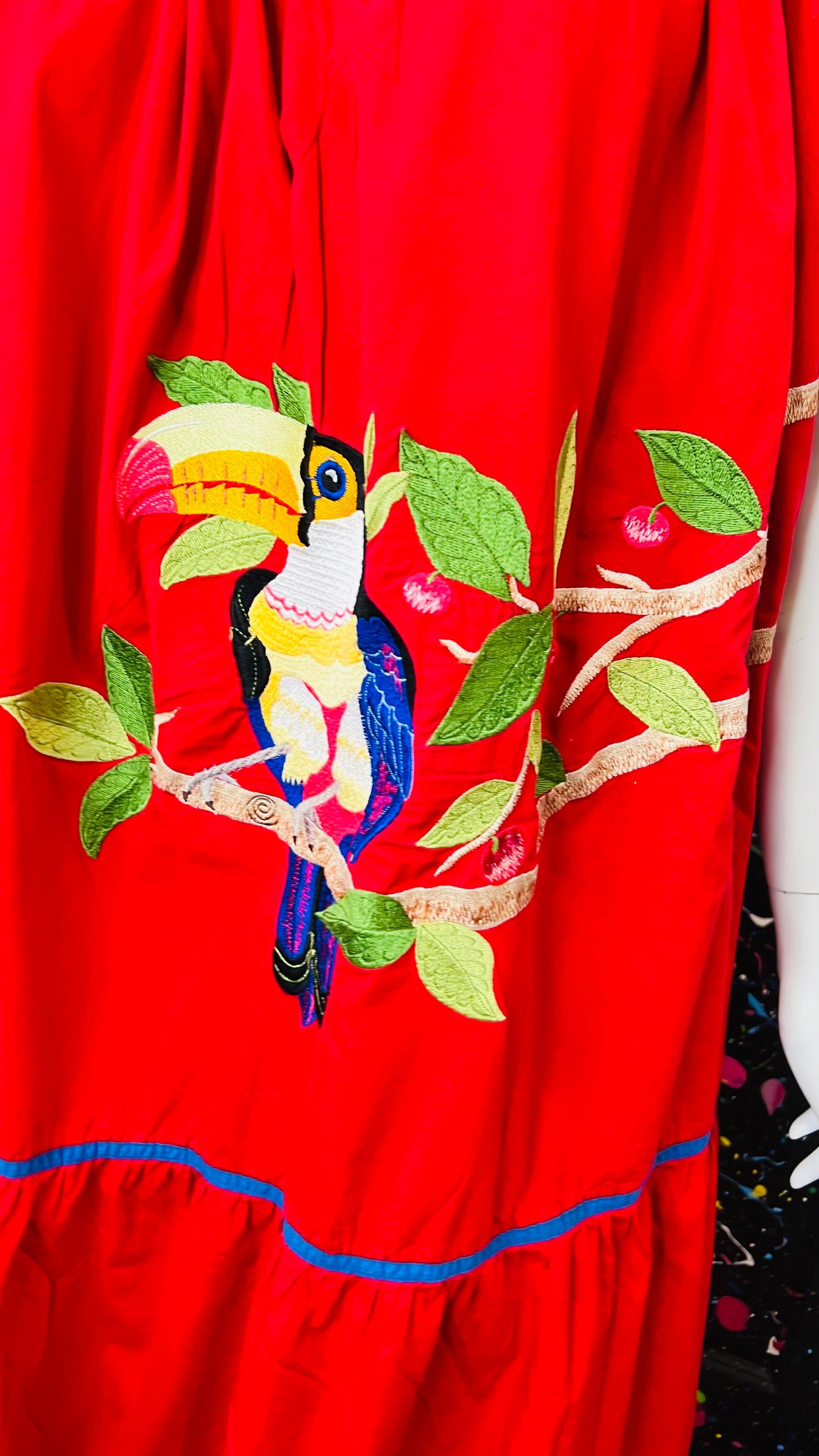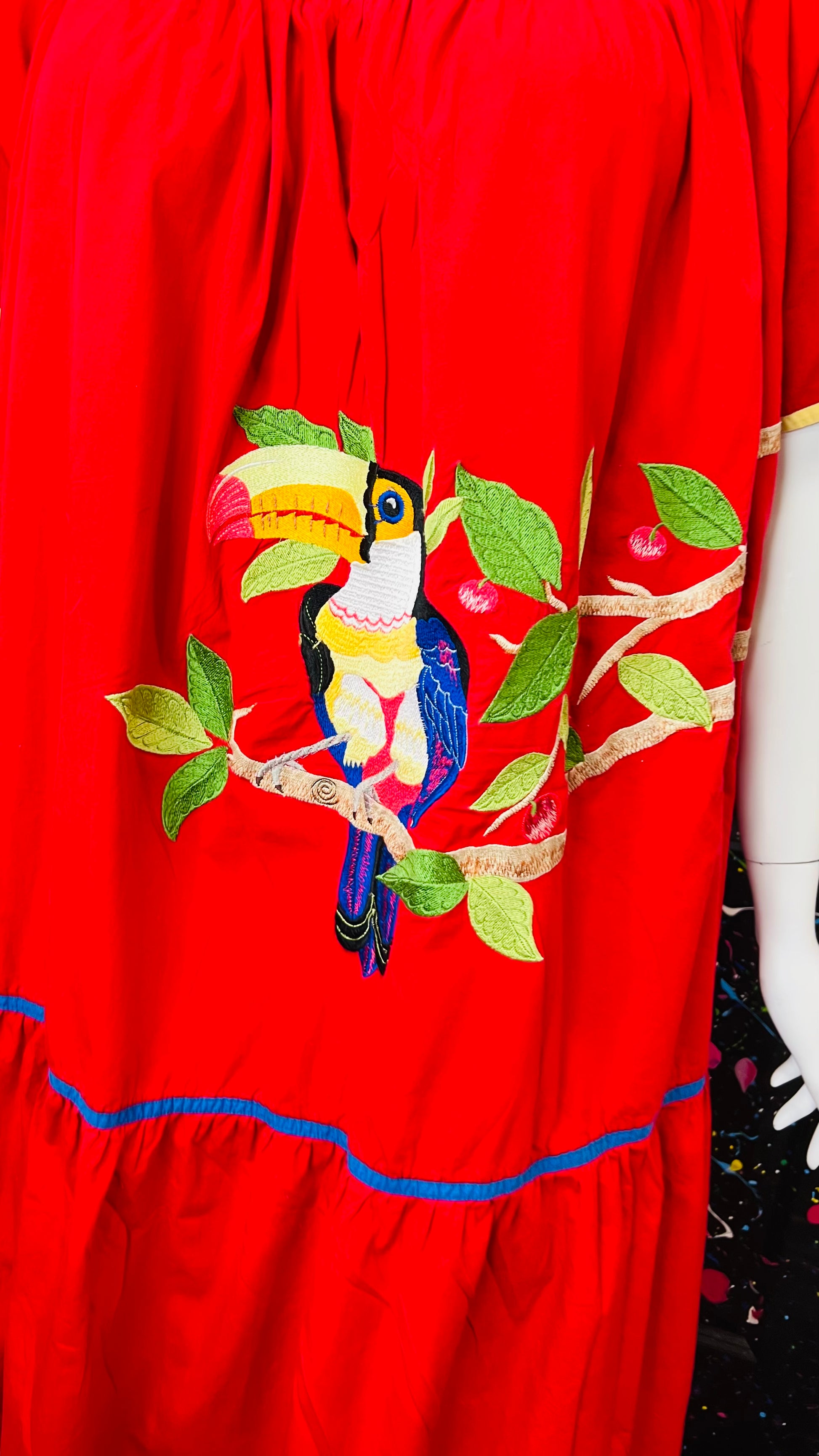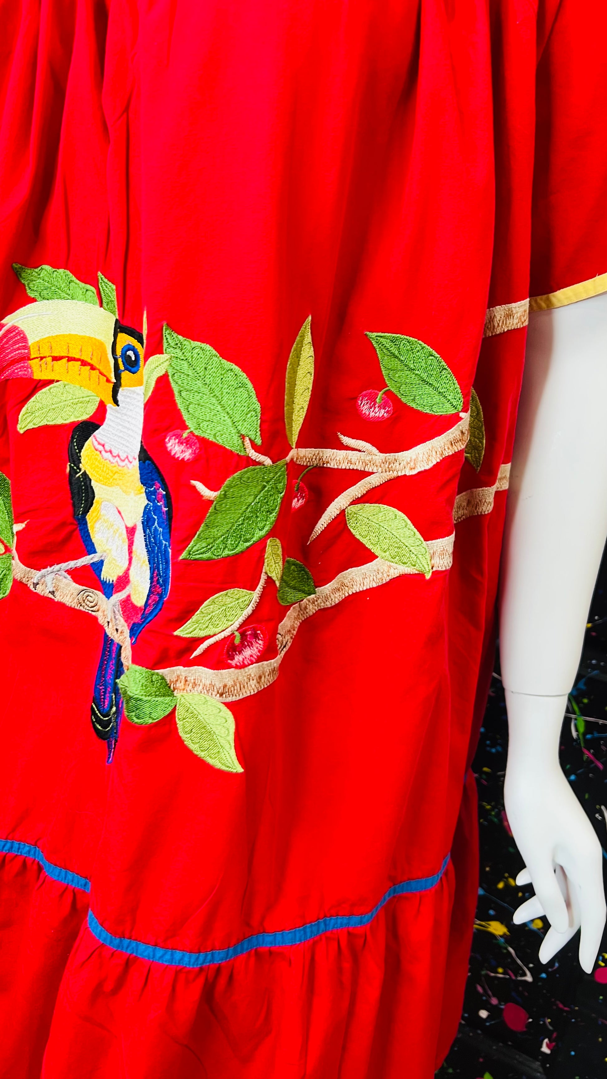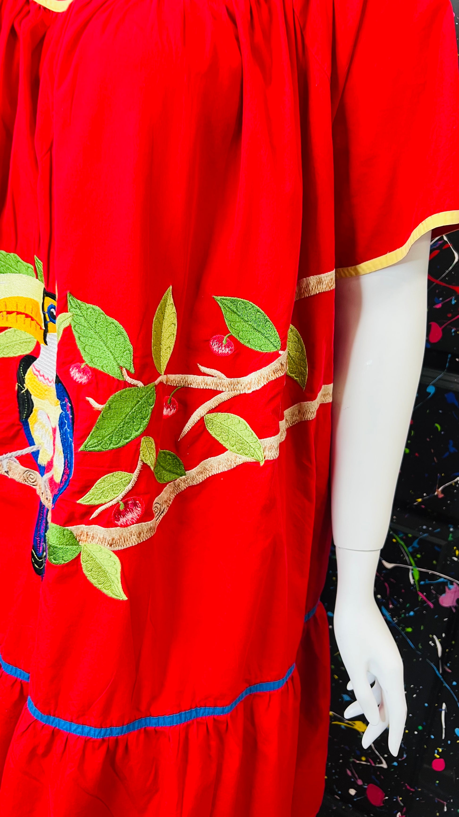 Vintage Cotton Red Parrot House Dress w/Pockets (22/24)