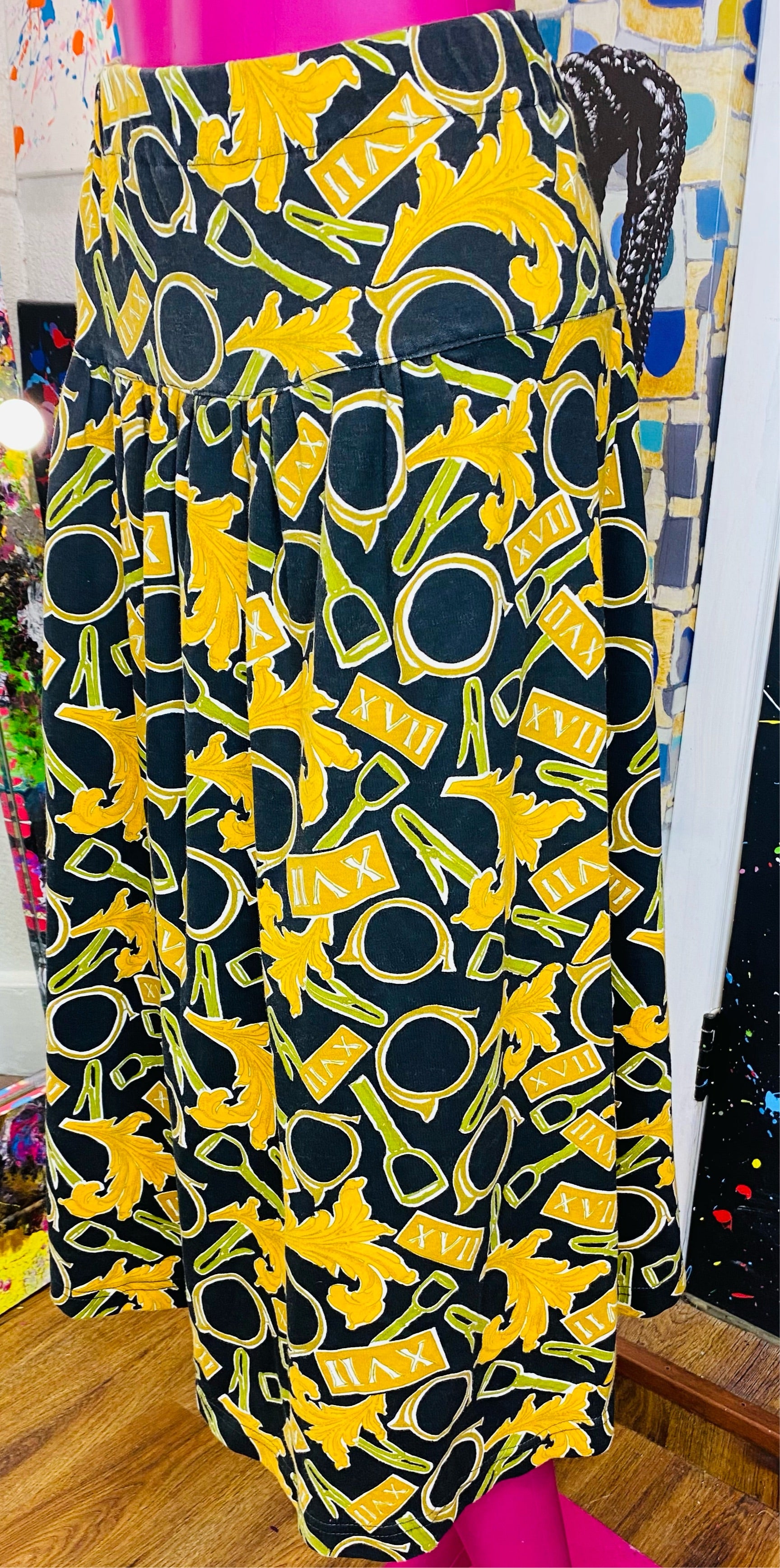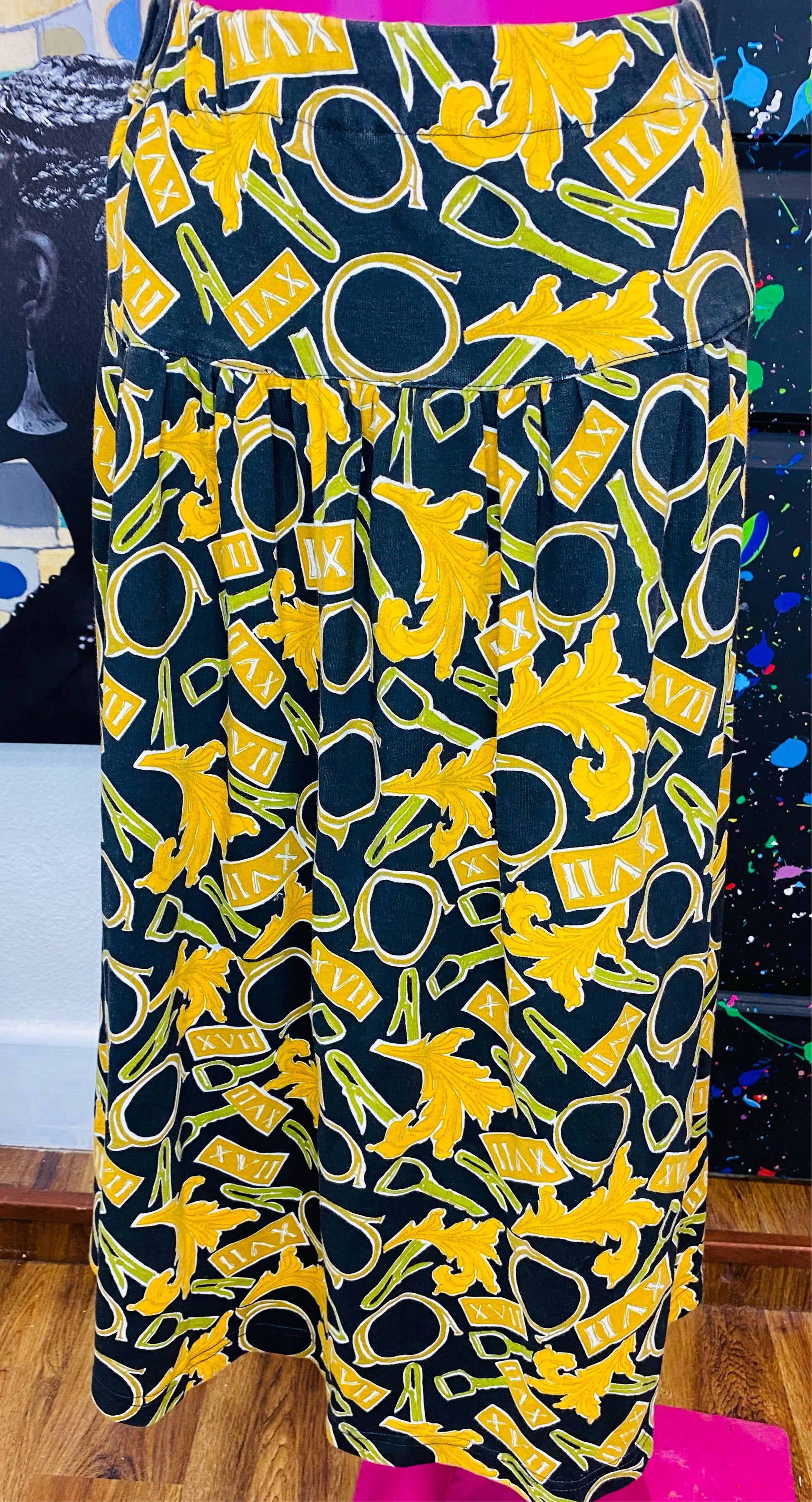 Waist - 16 to 18 inches flat - Has an elastic waist band.