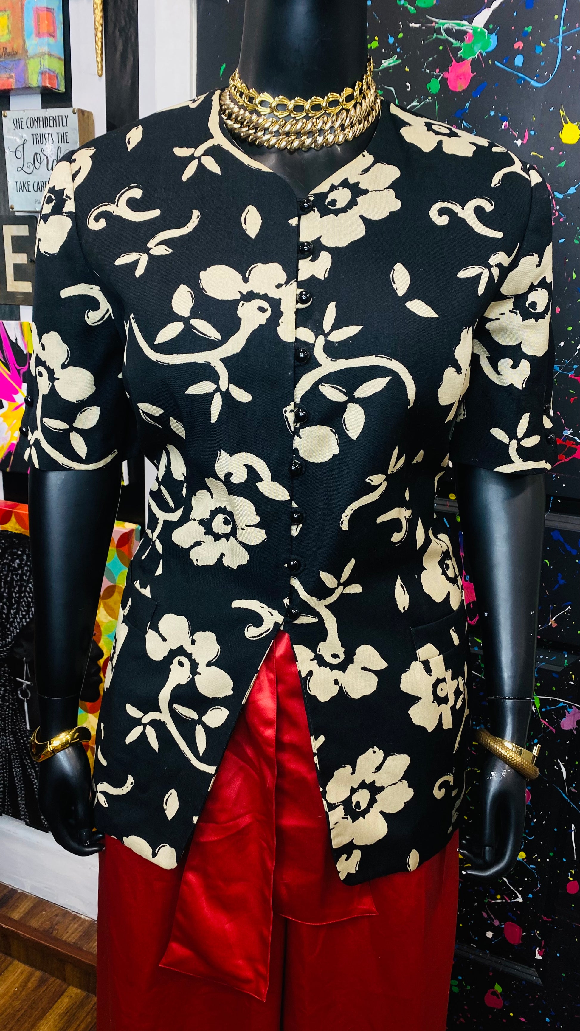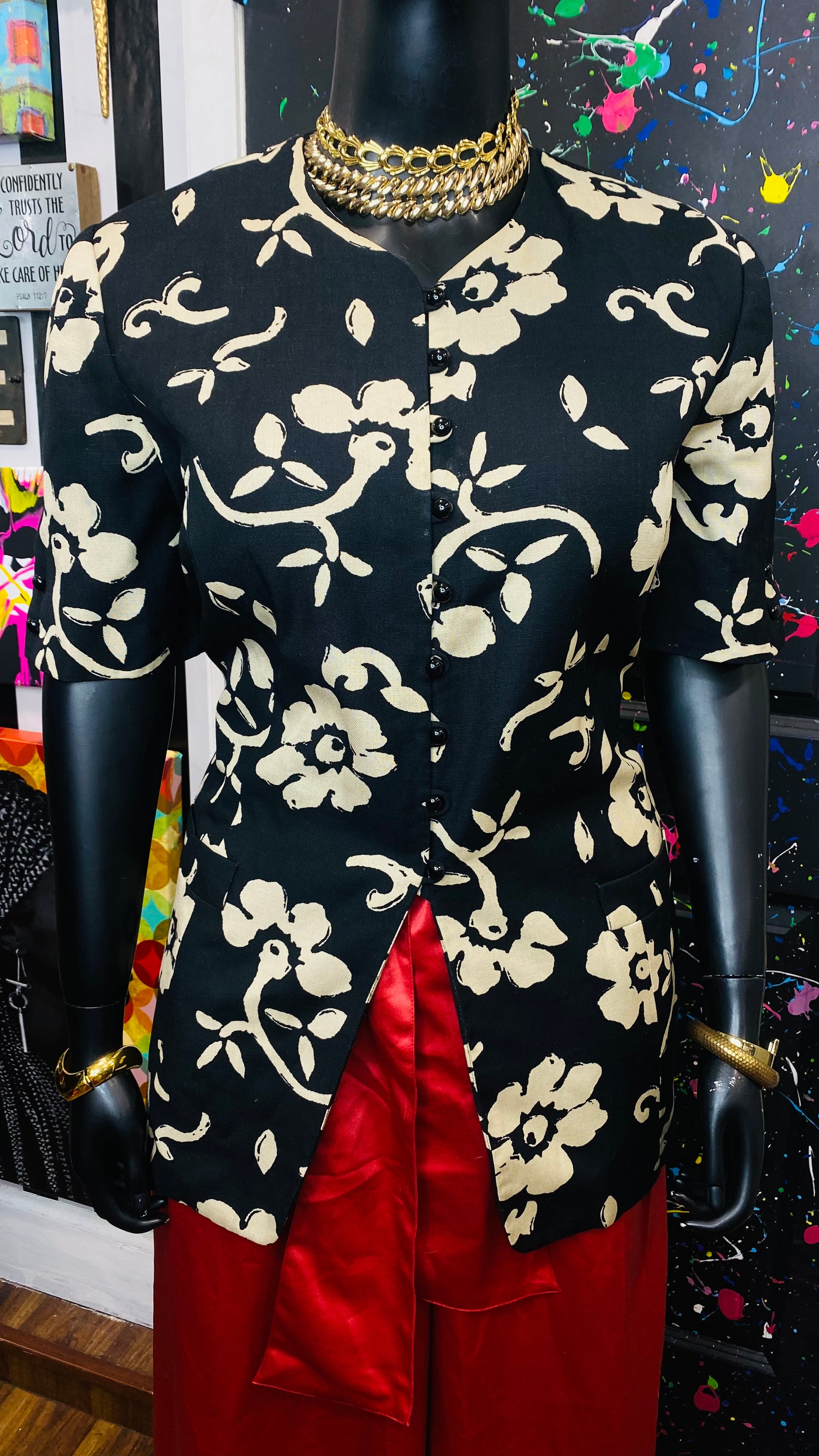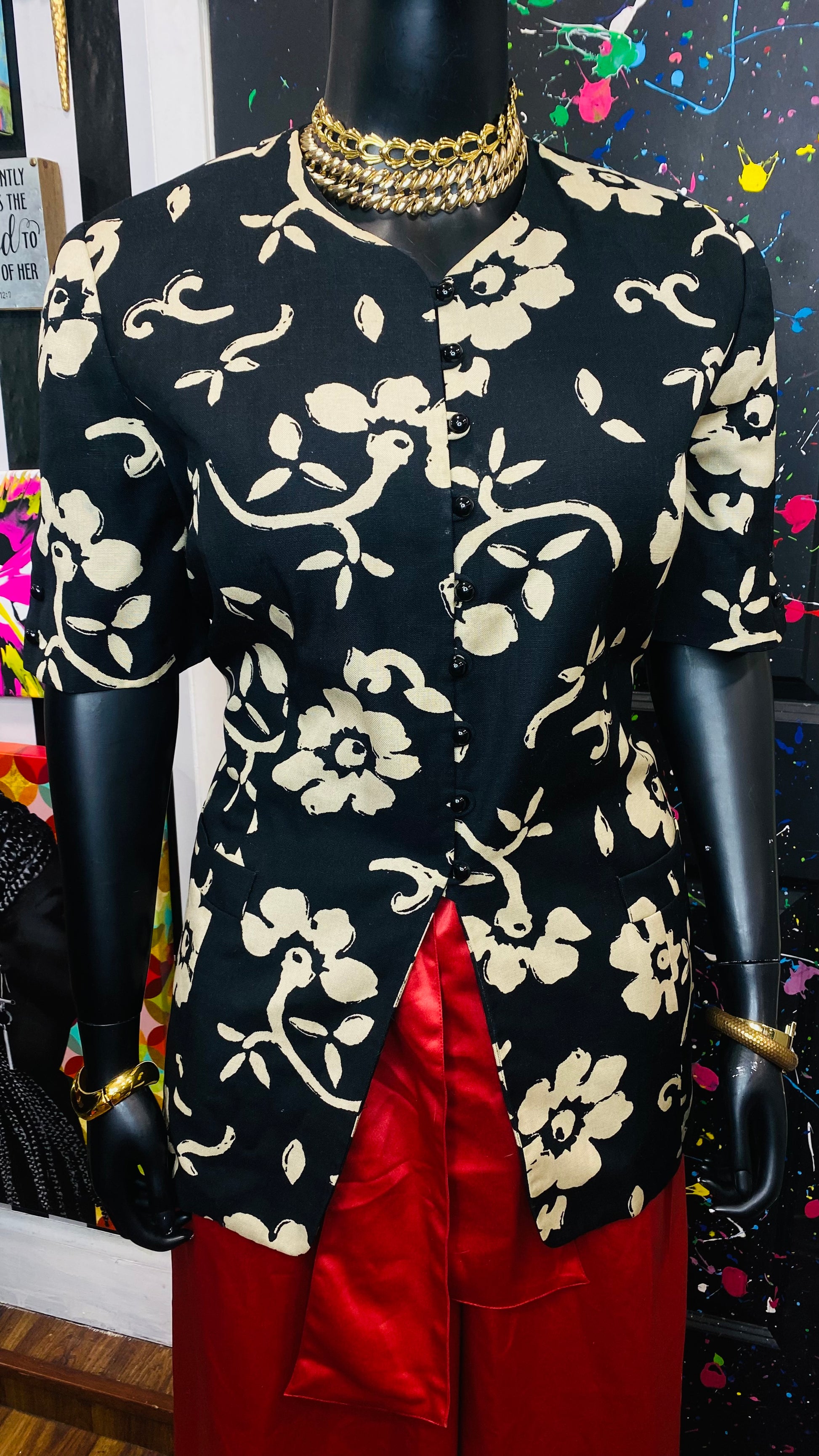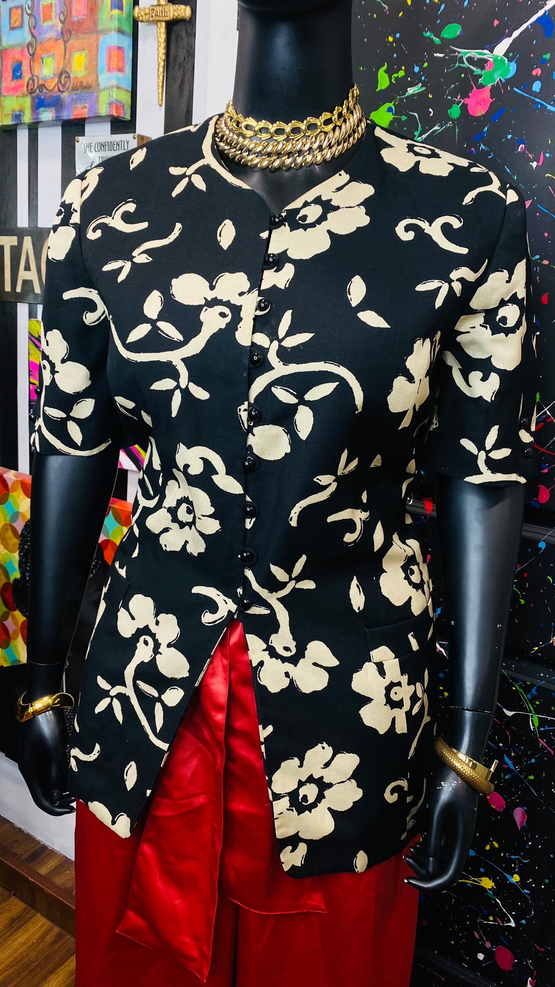 Vintage Cream & Black Floral Blazer Blouse (20W)