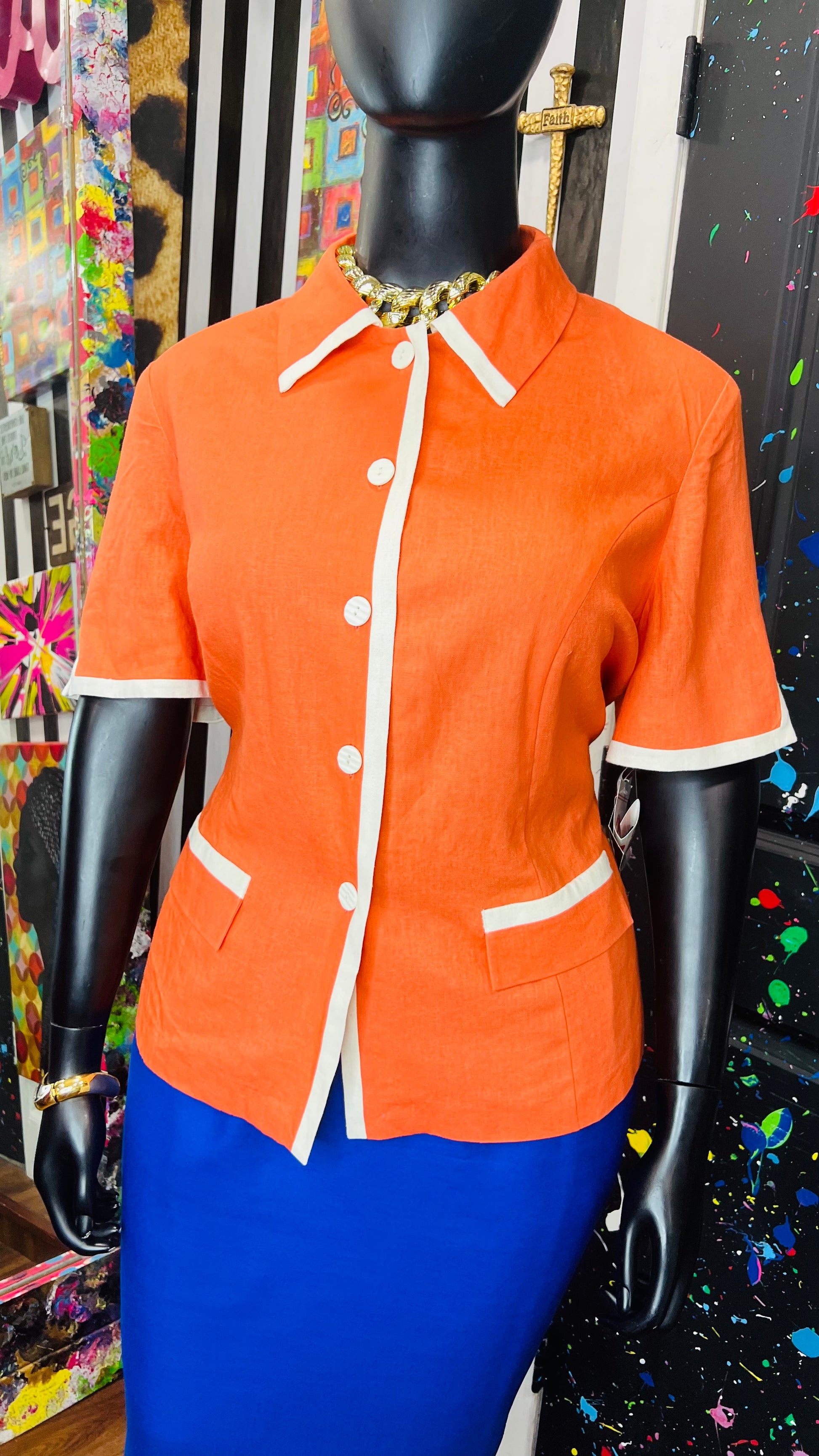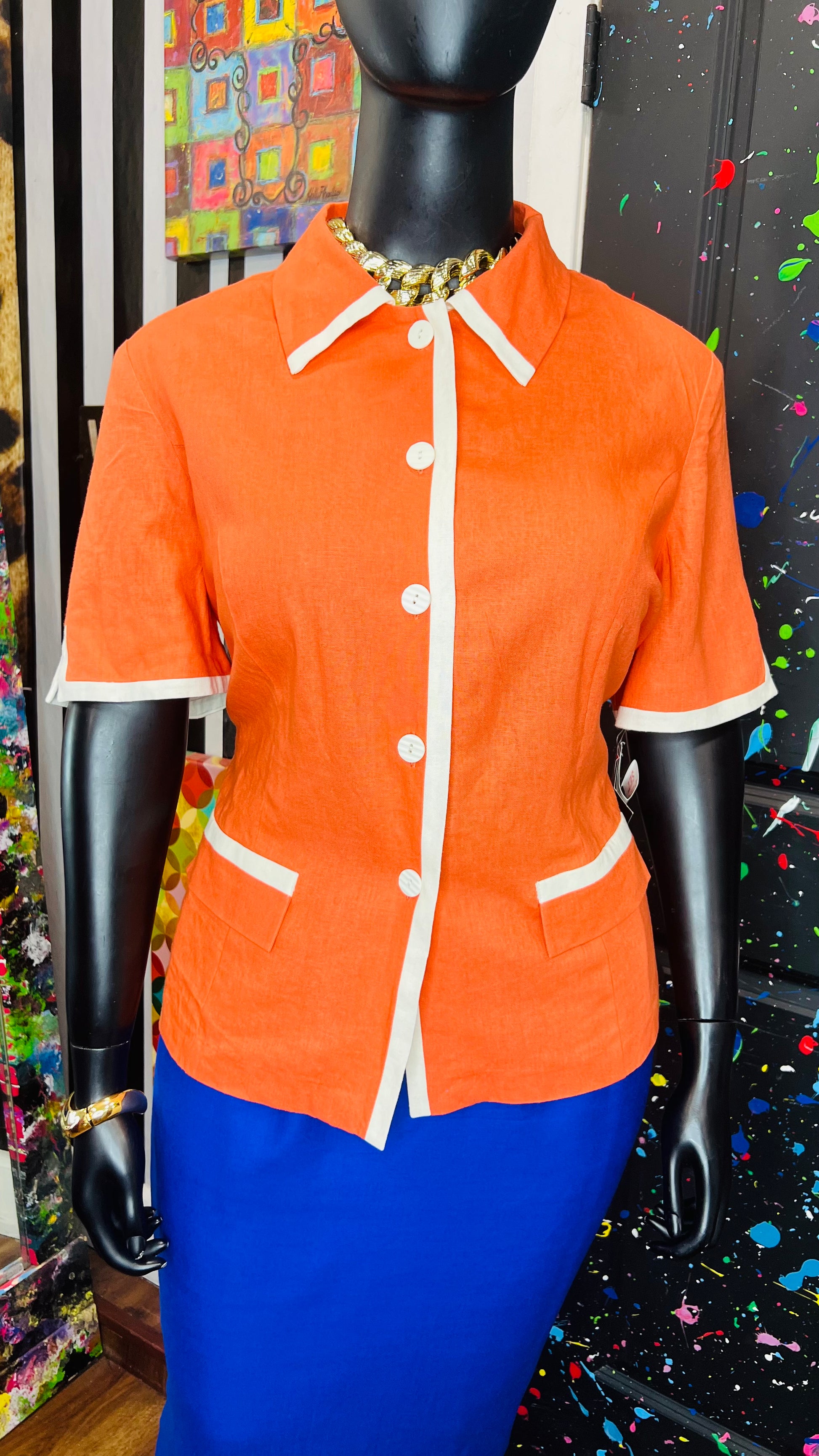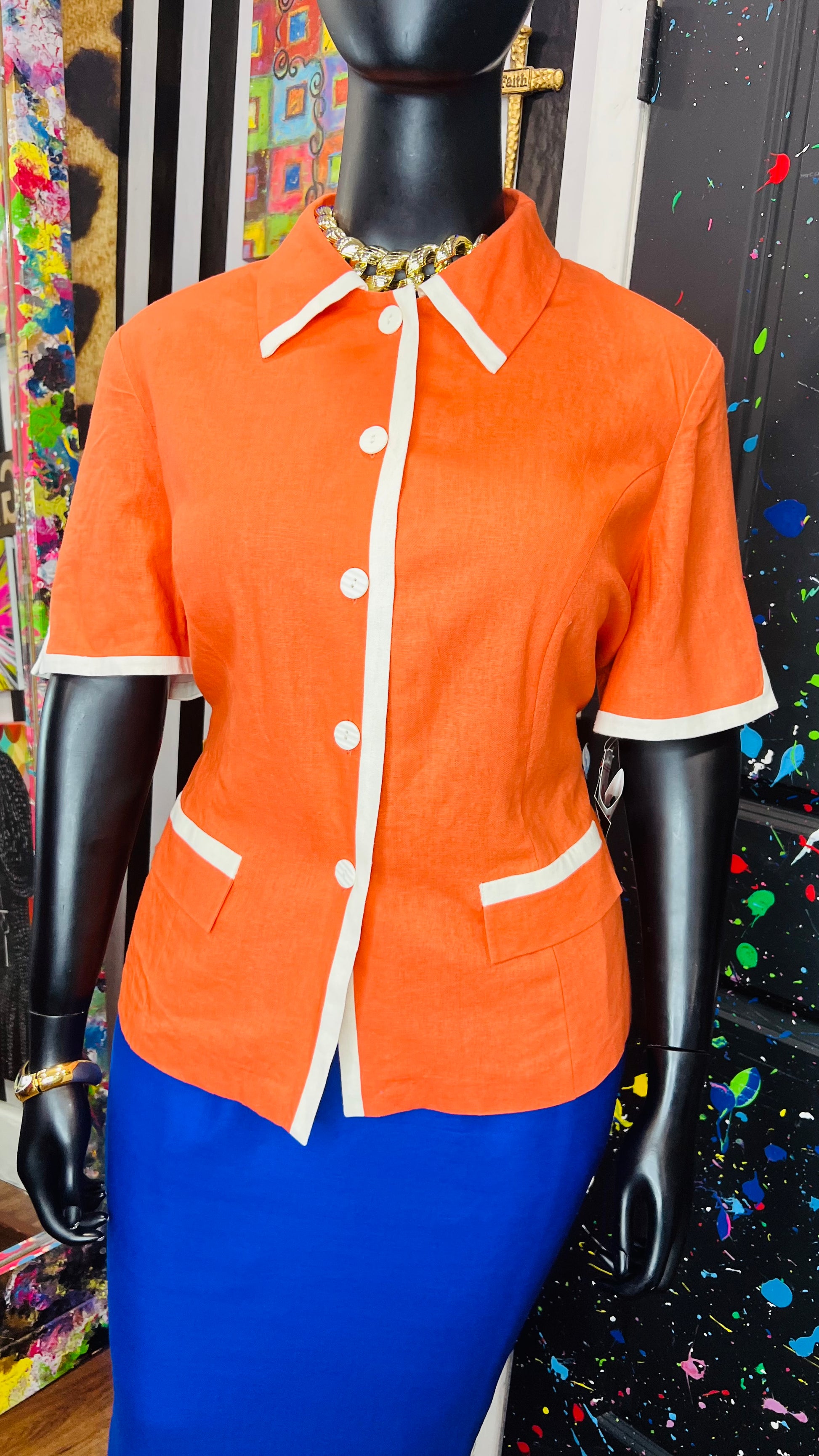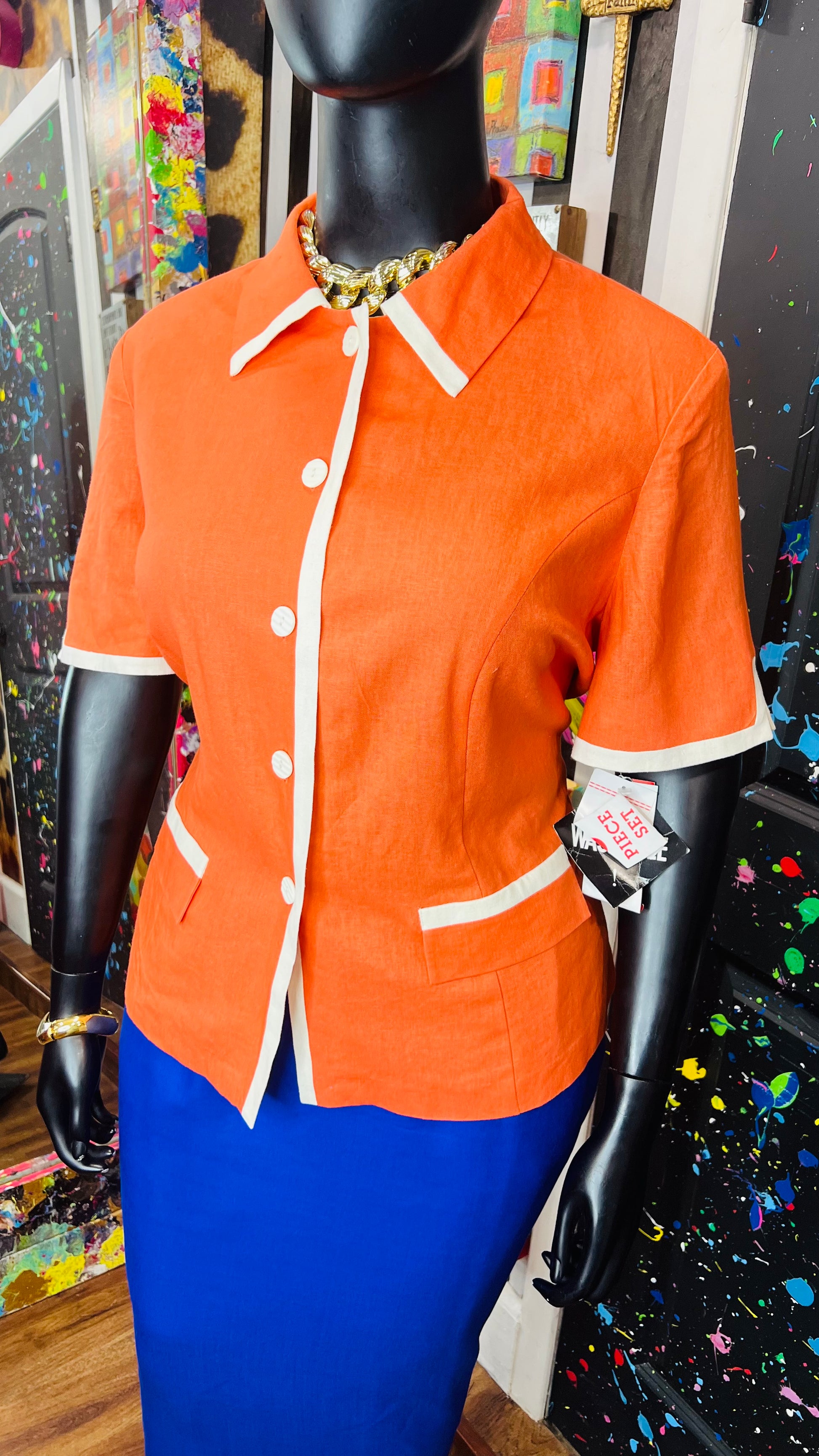 Vintage Deadstock Orange & White Blazer Blouse (20W)