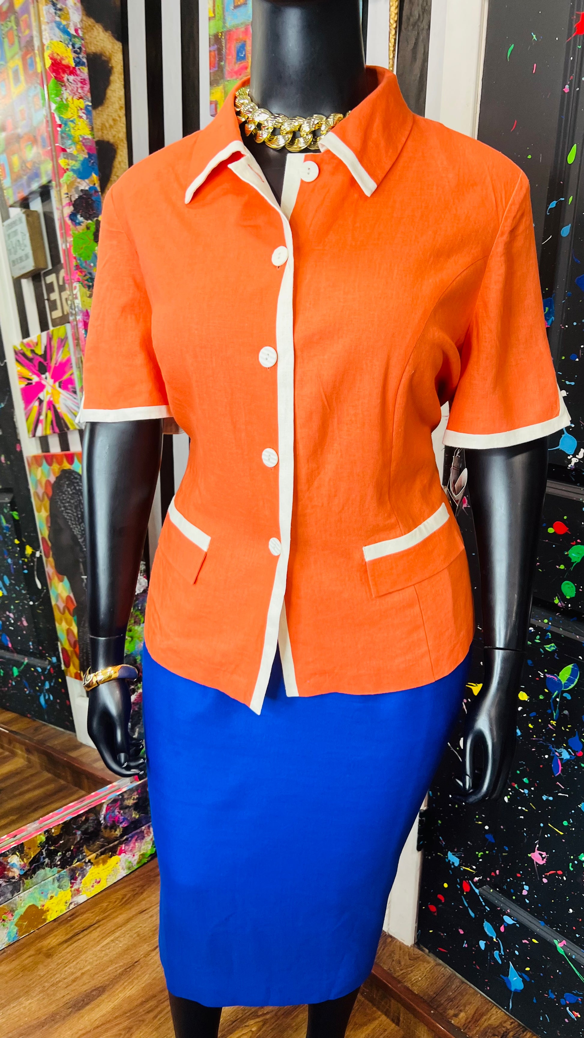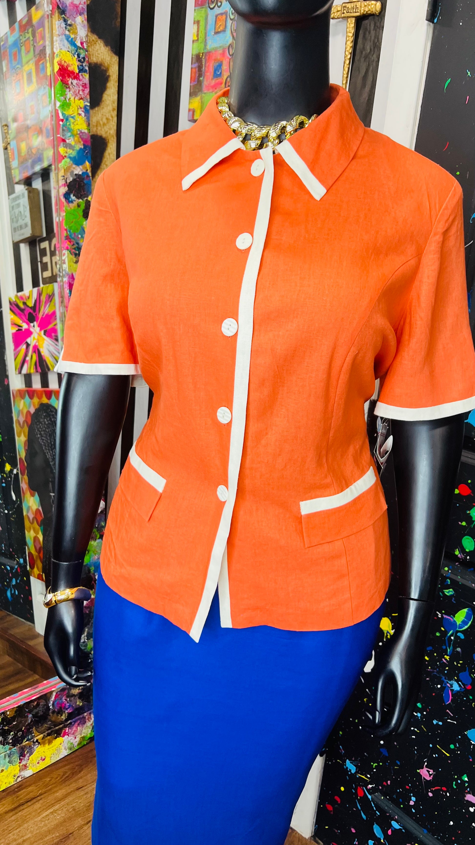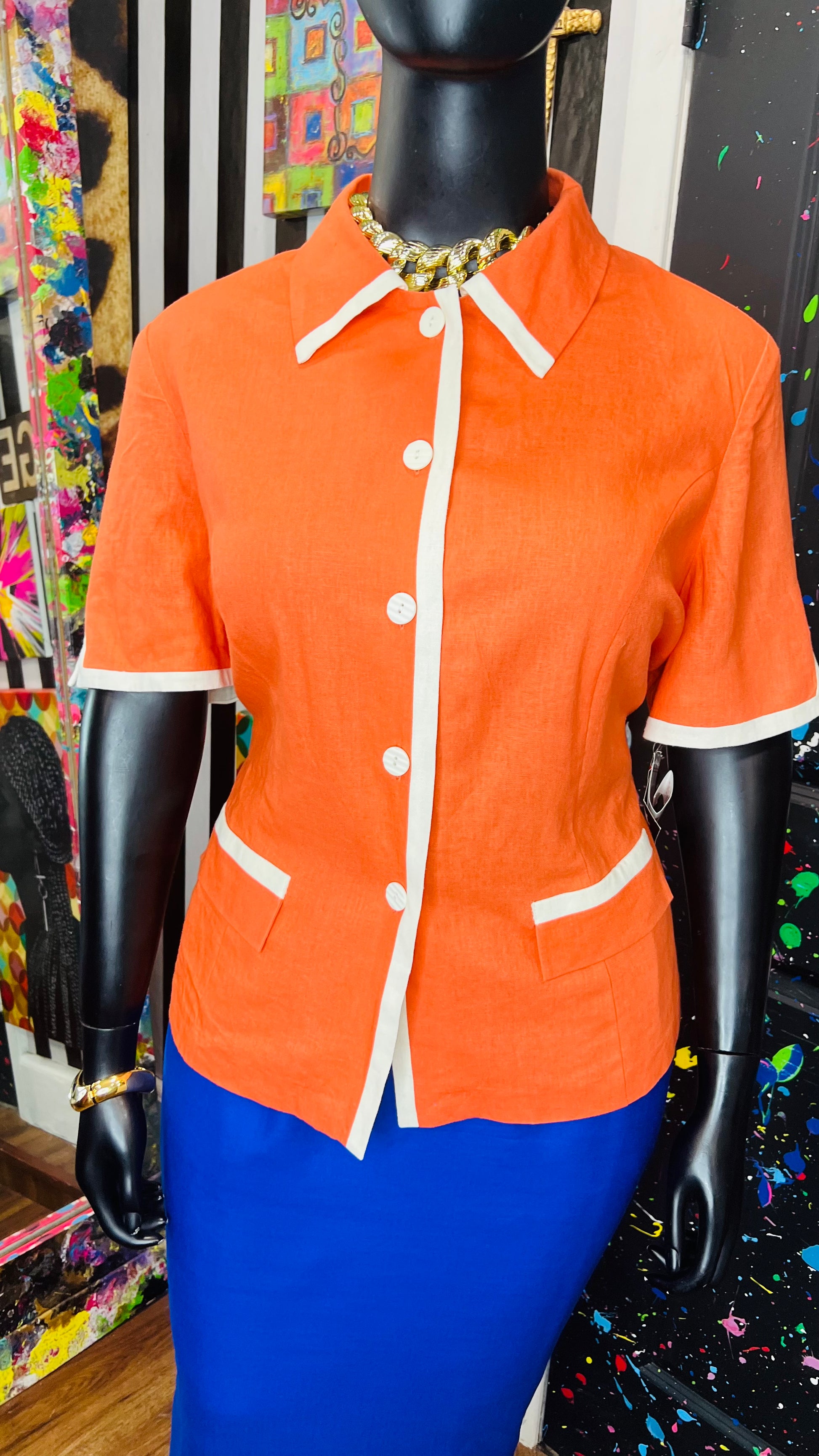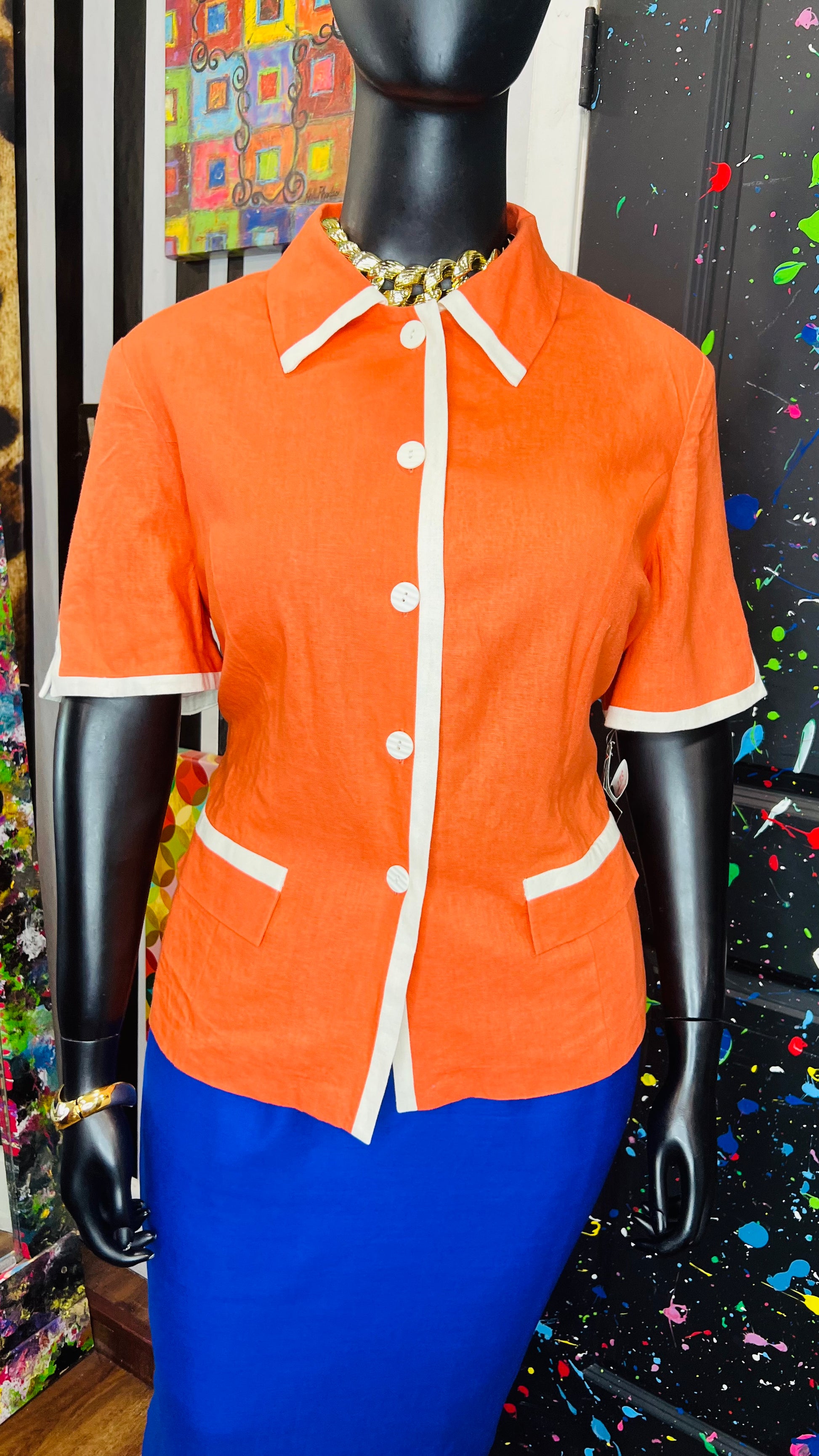 Vintage Deadstock Orange & White Blazer Blouse (20W)
