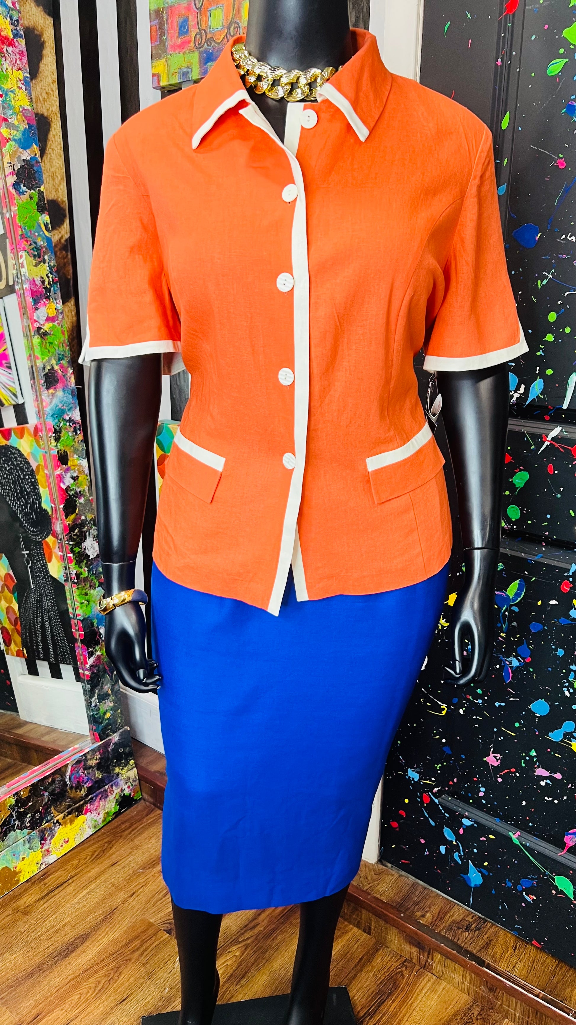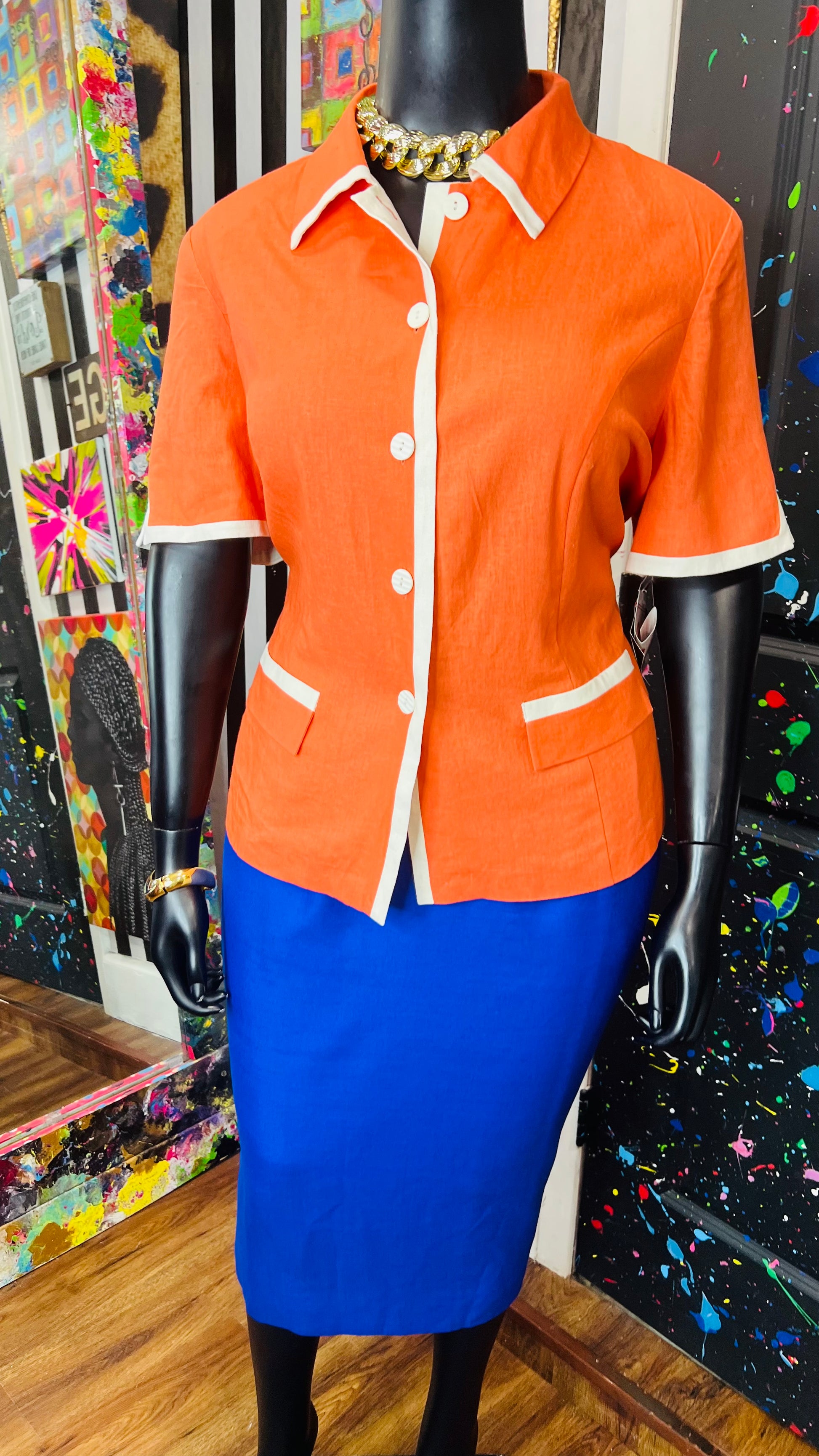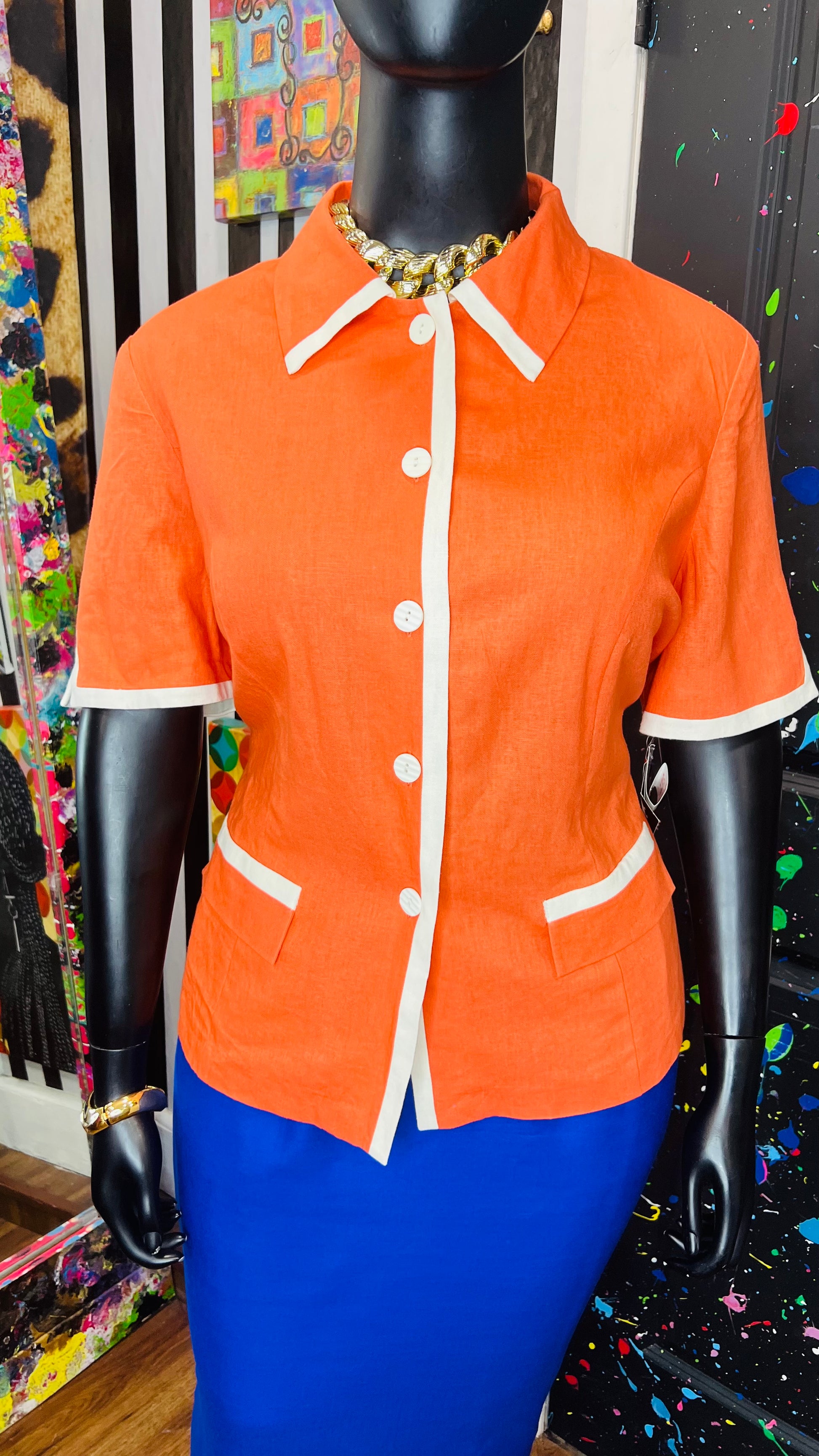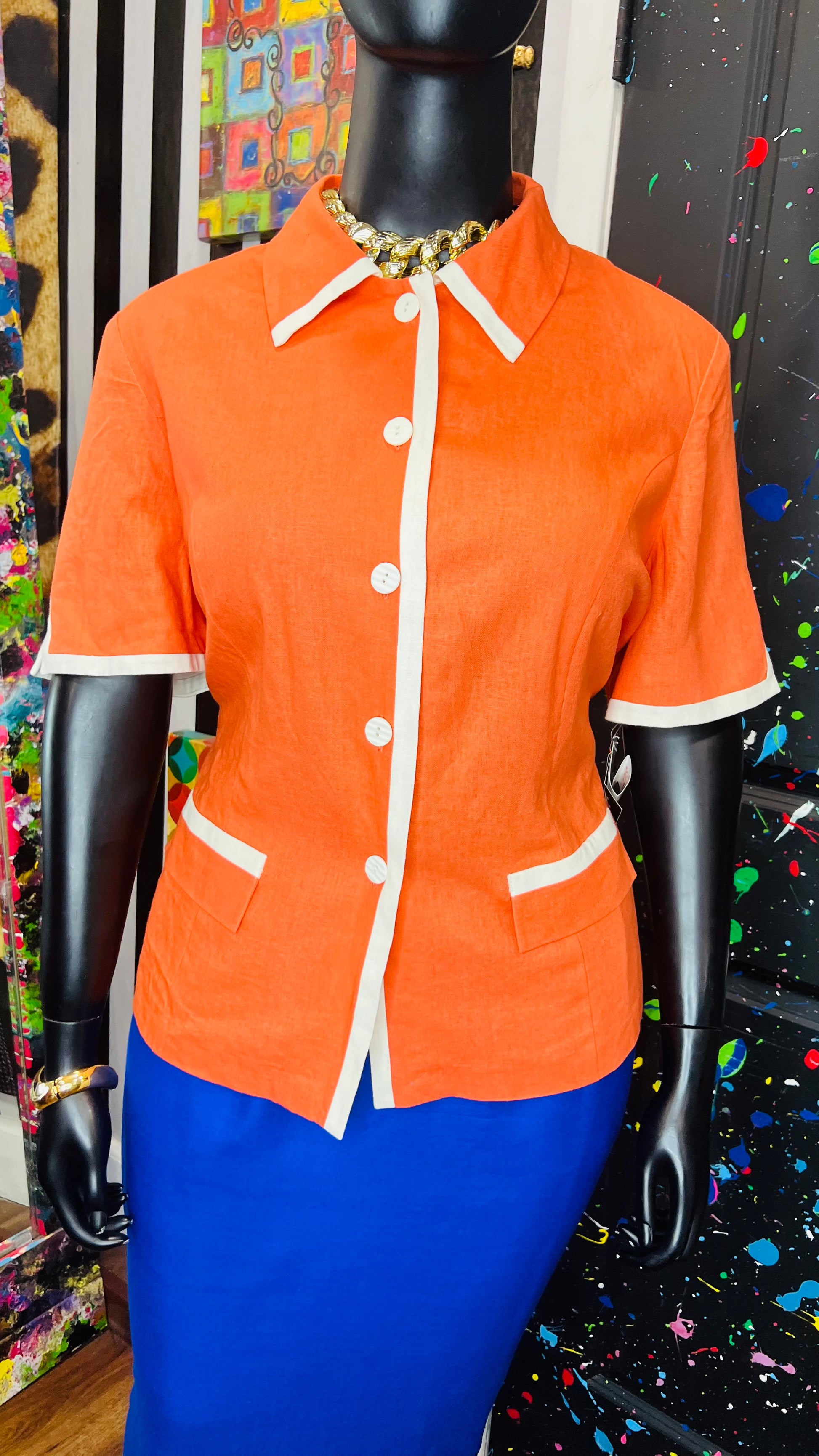Vintage Deadstock Orange & White Blazer Blouse (20W)