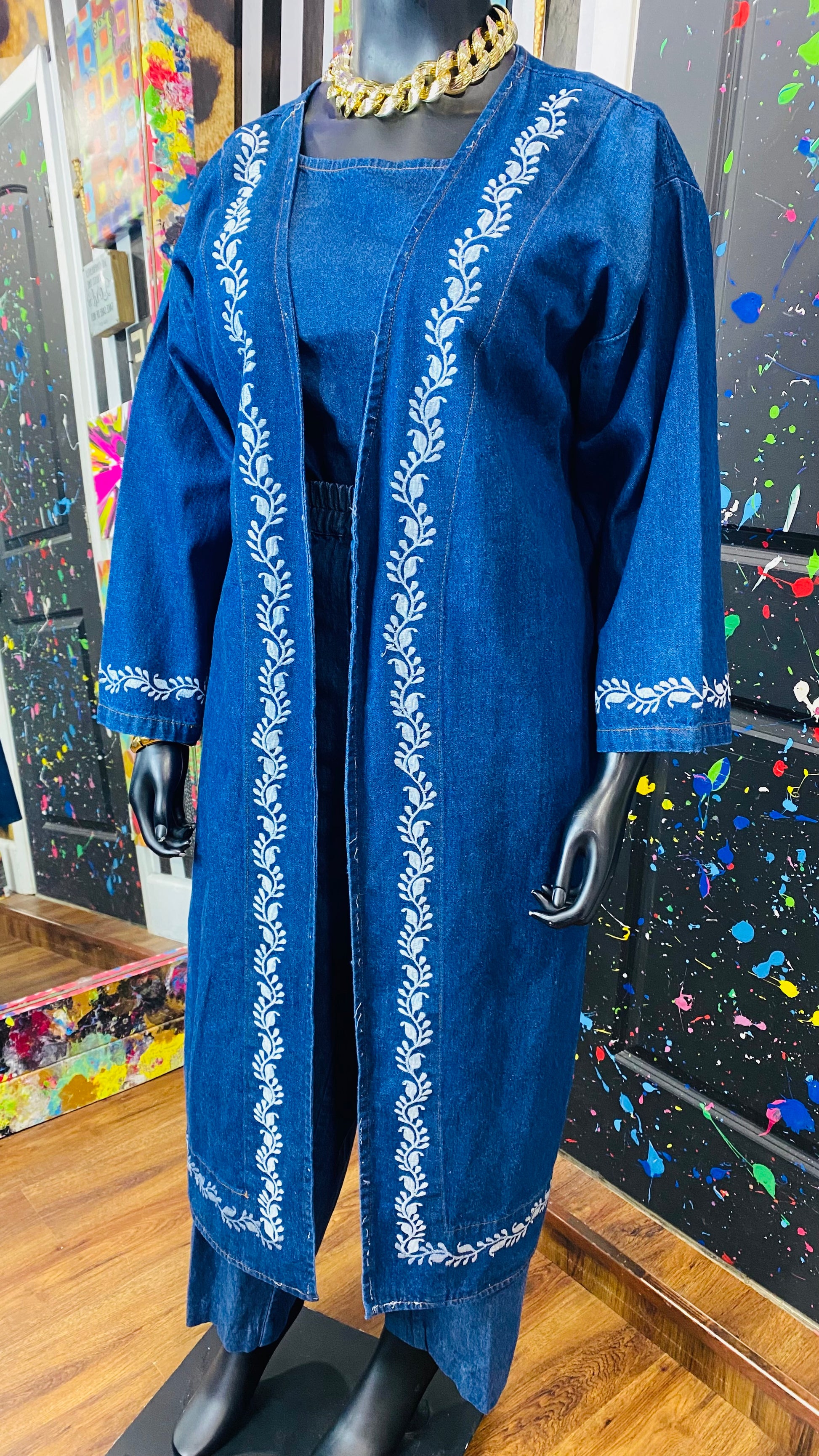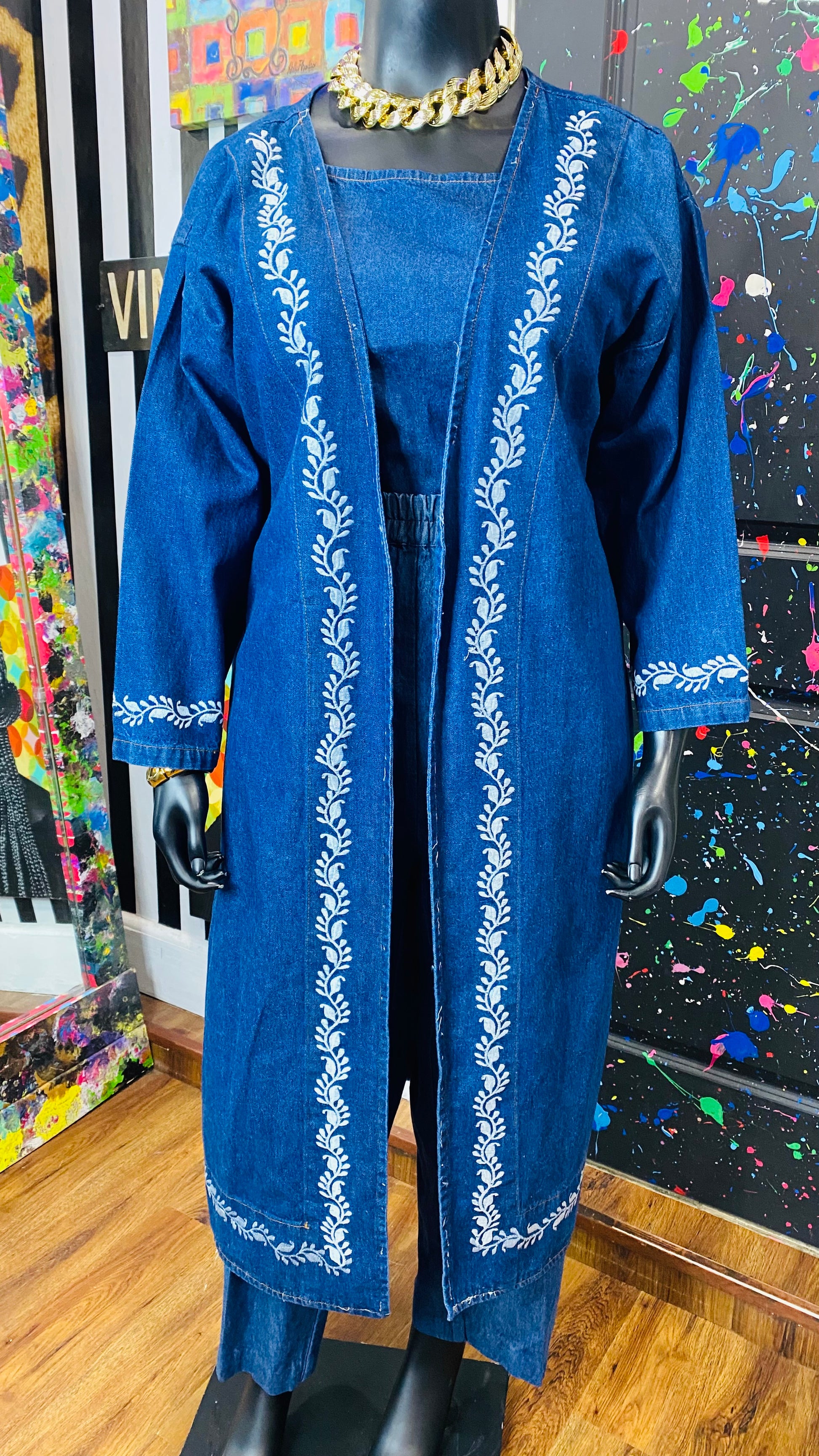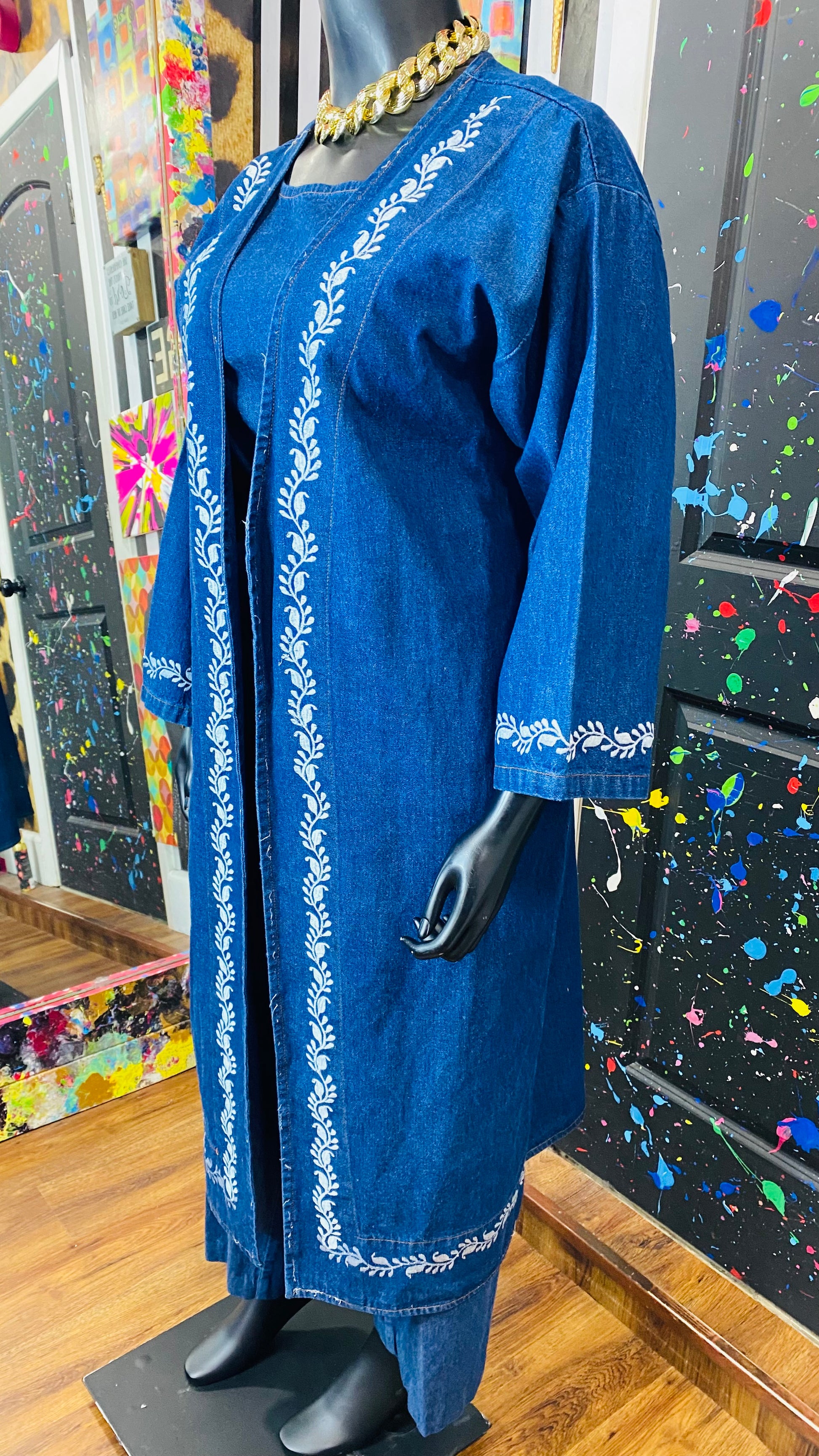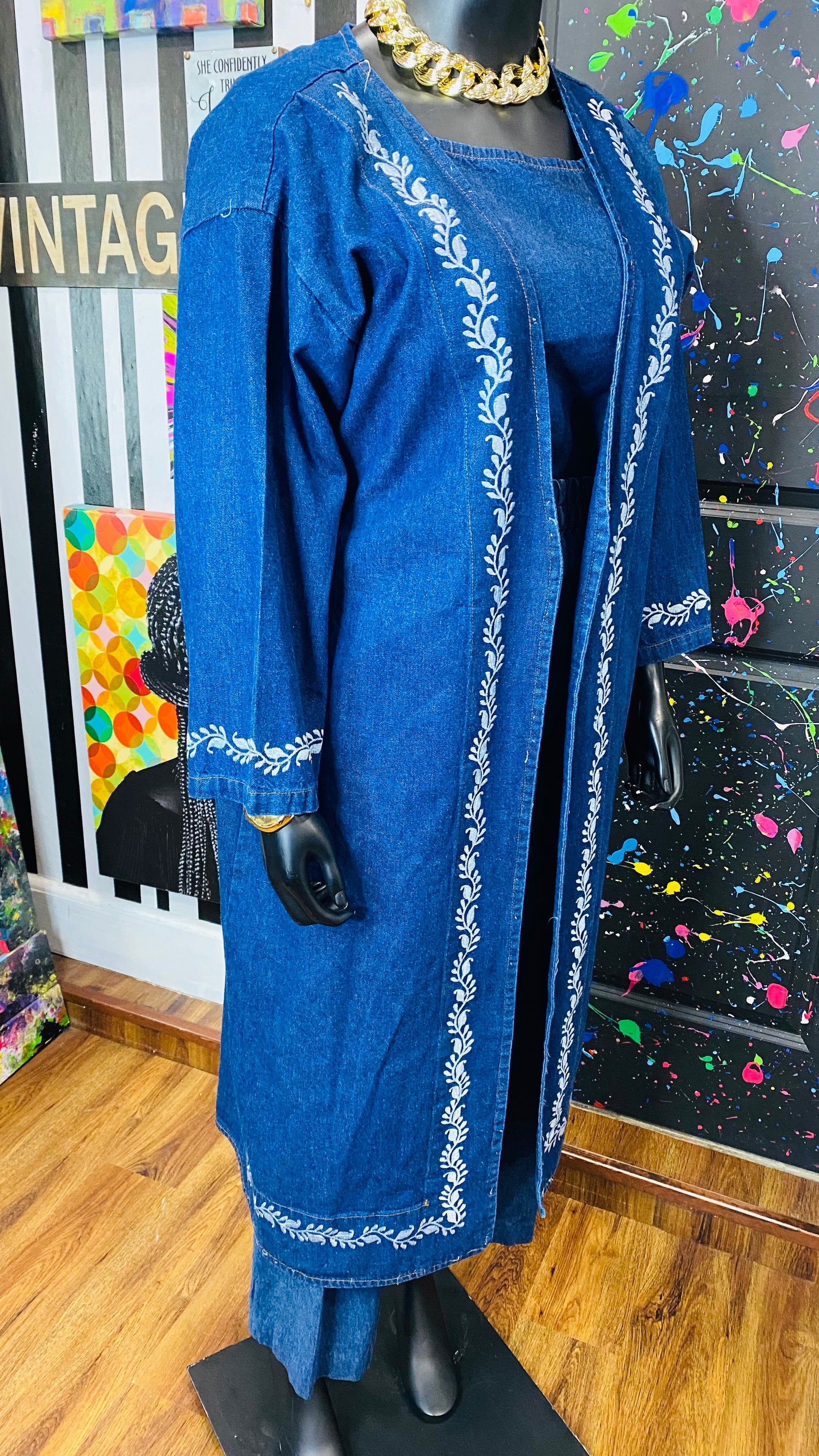 Vintage Denim Embroidered 3 Piece Pants Set (16/18)