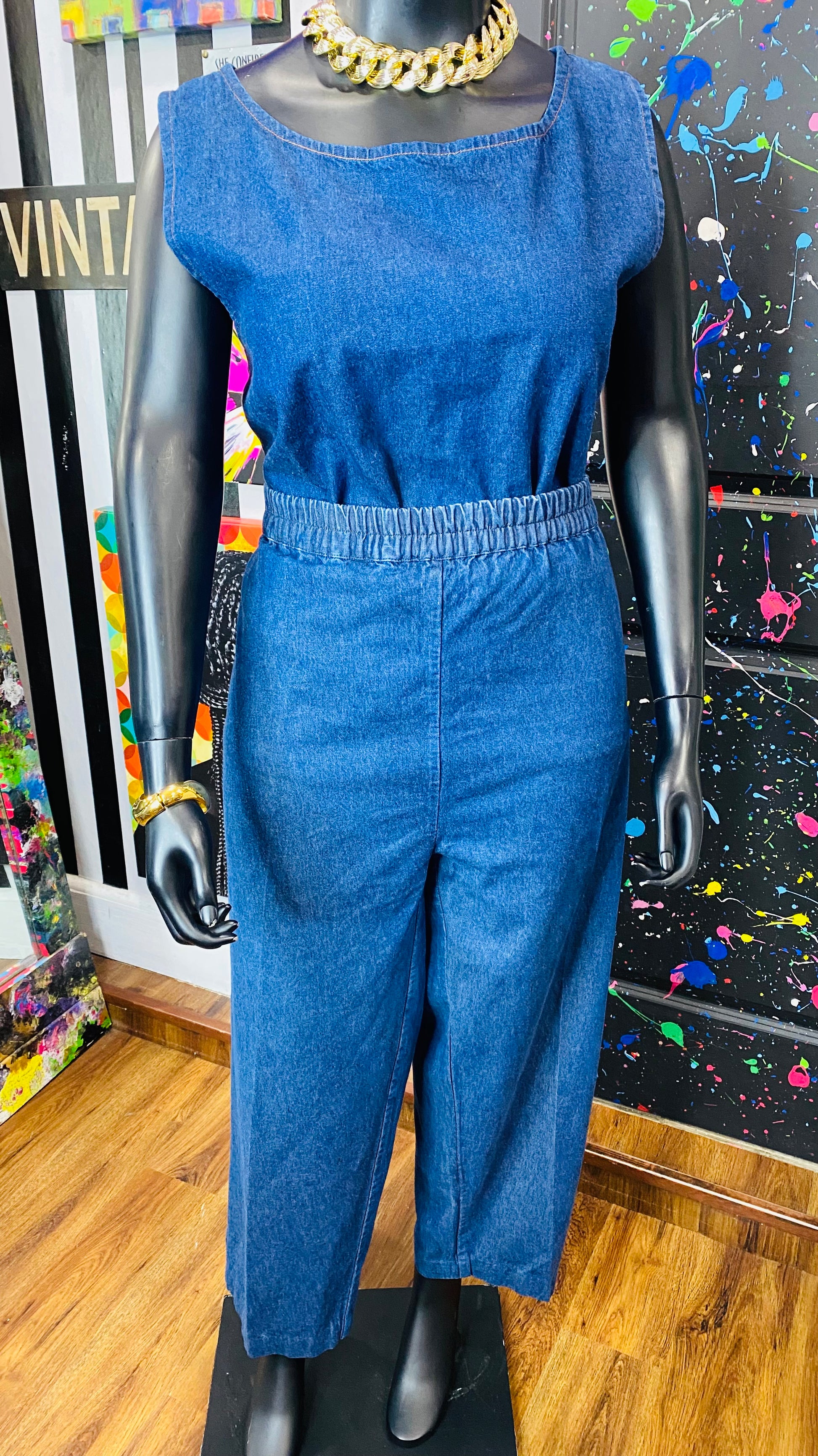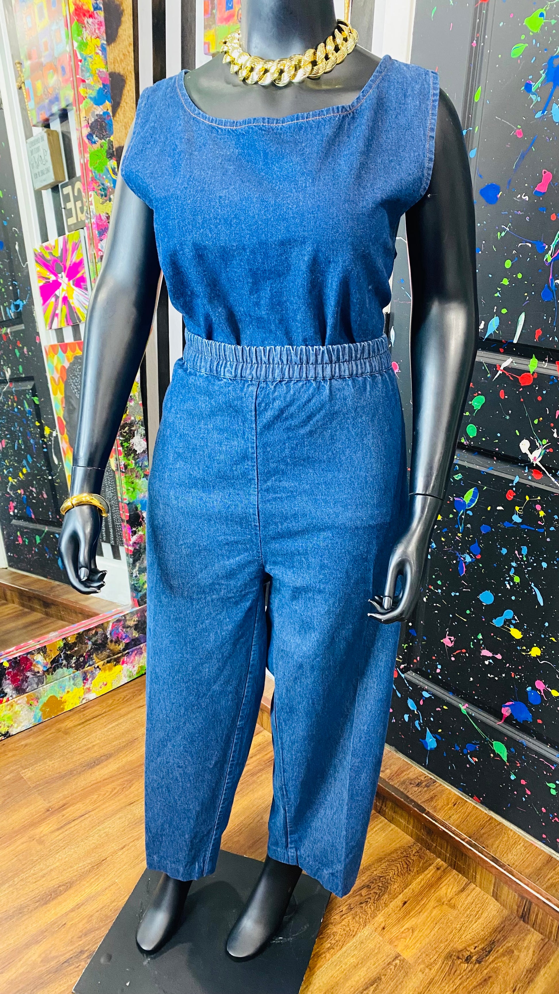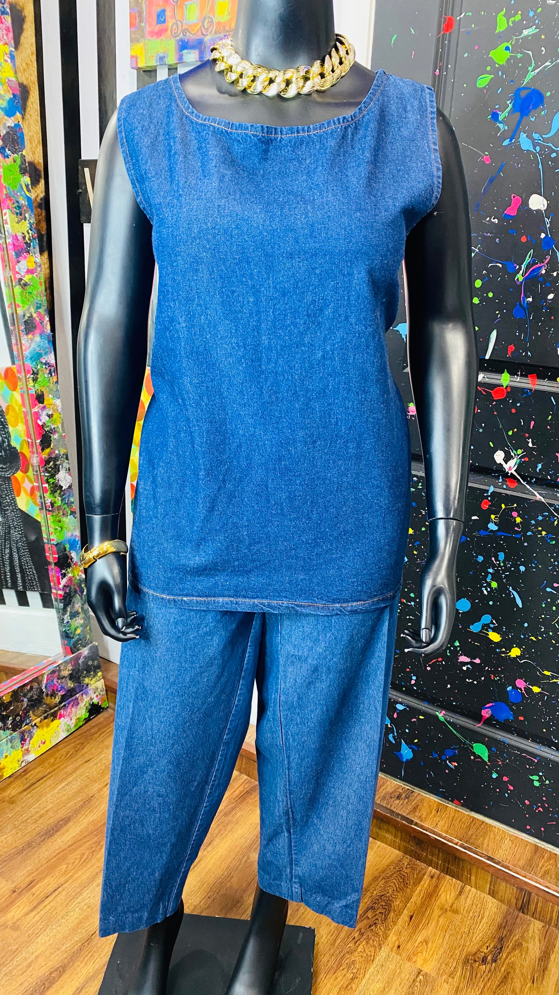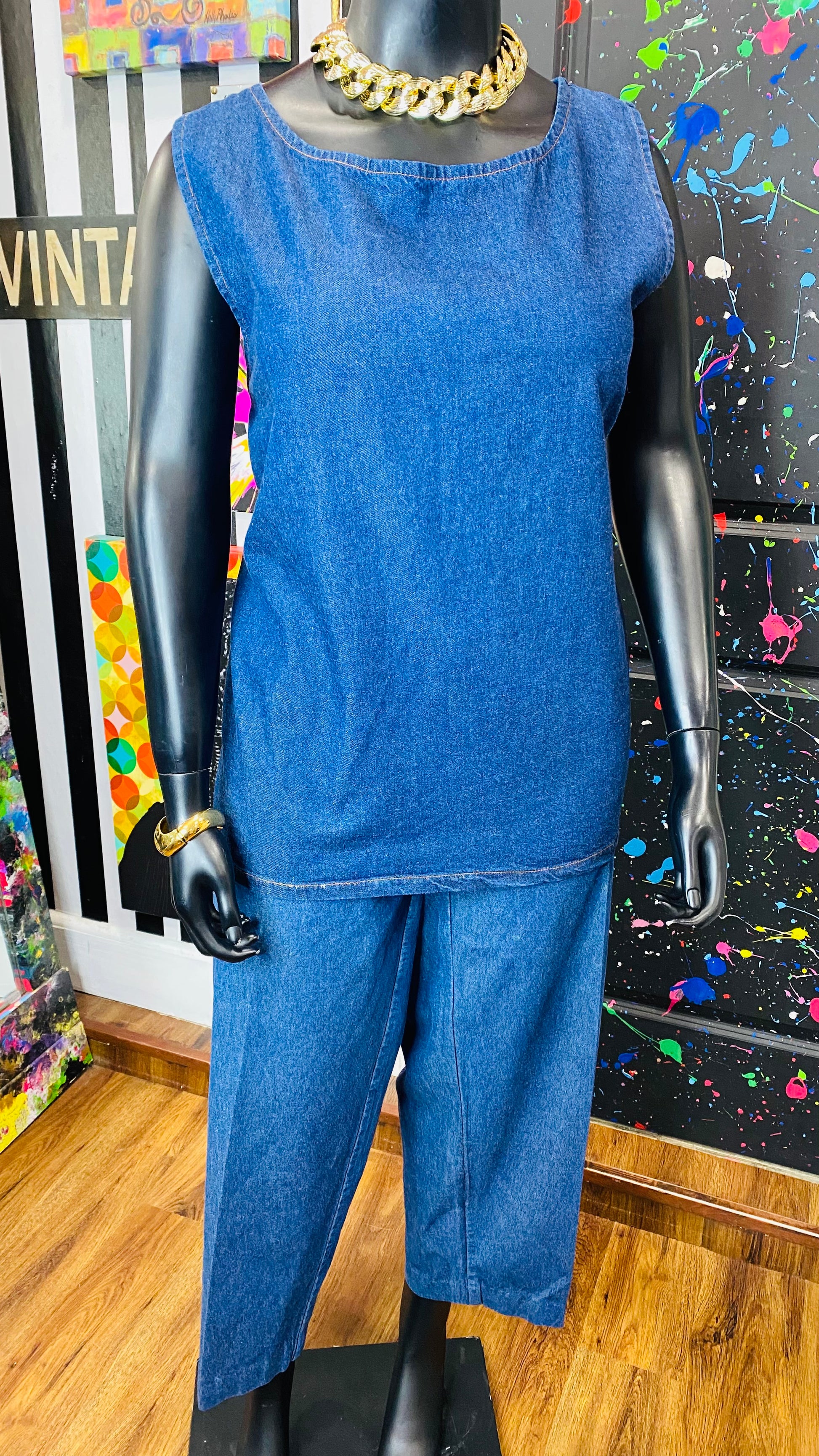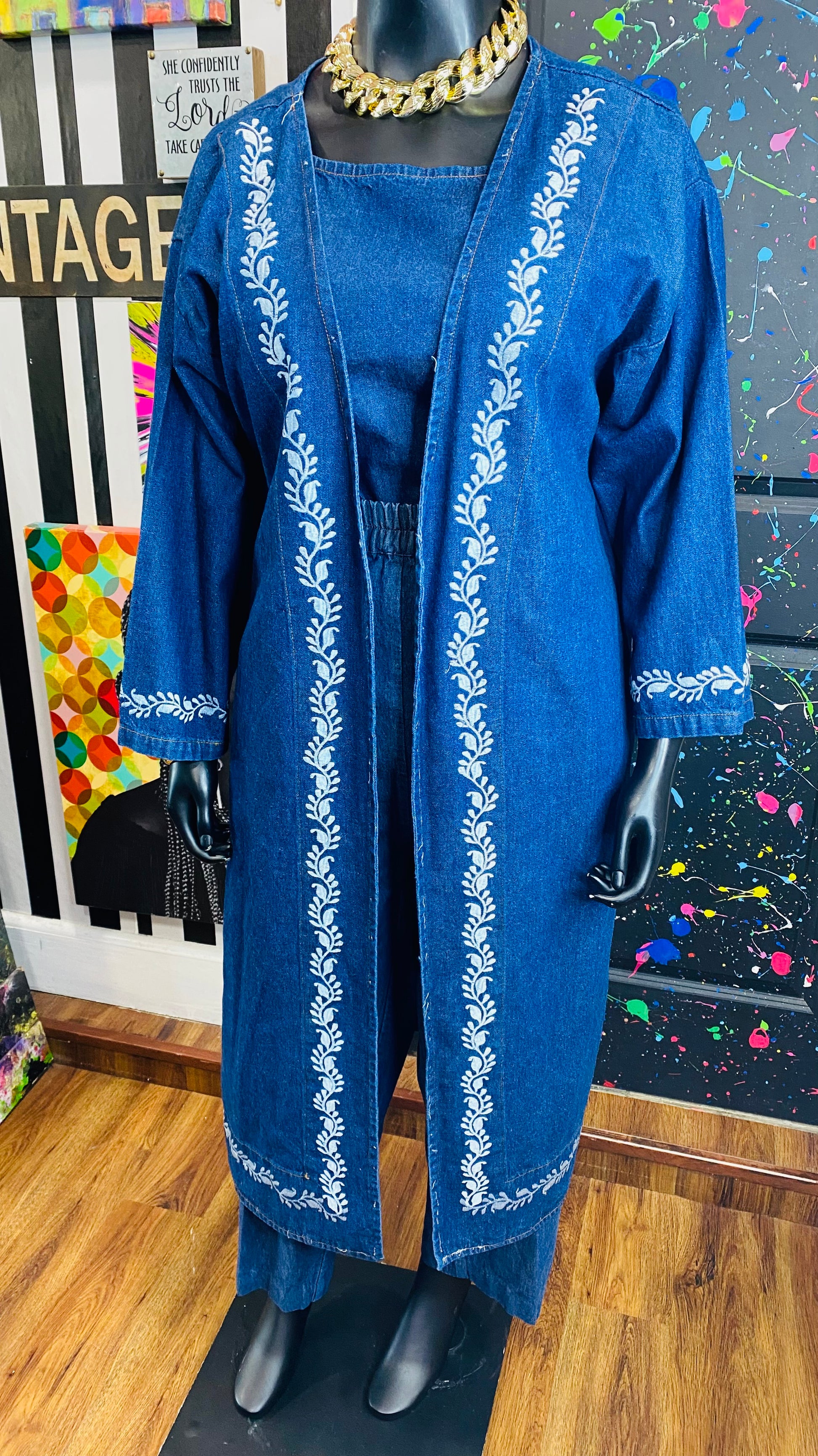 Vintage Denim Embroidered 3 Piece Pants Set (16/18)