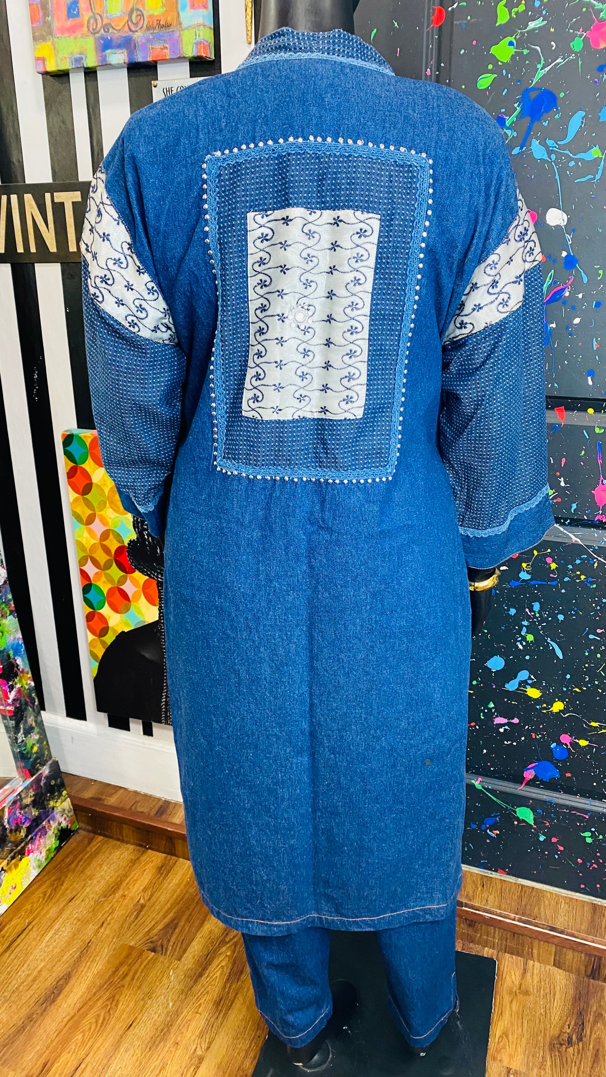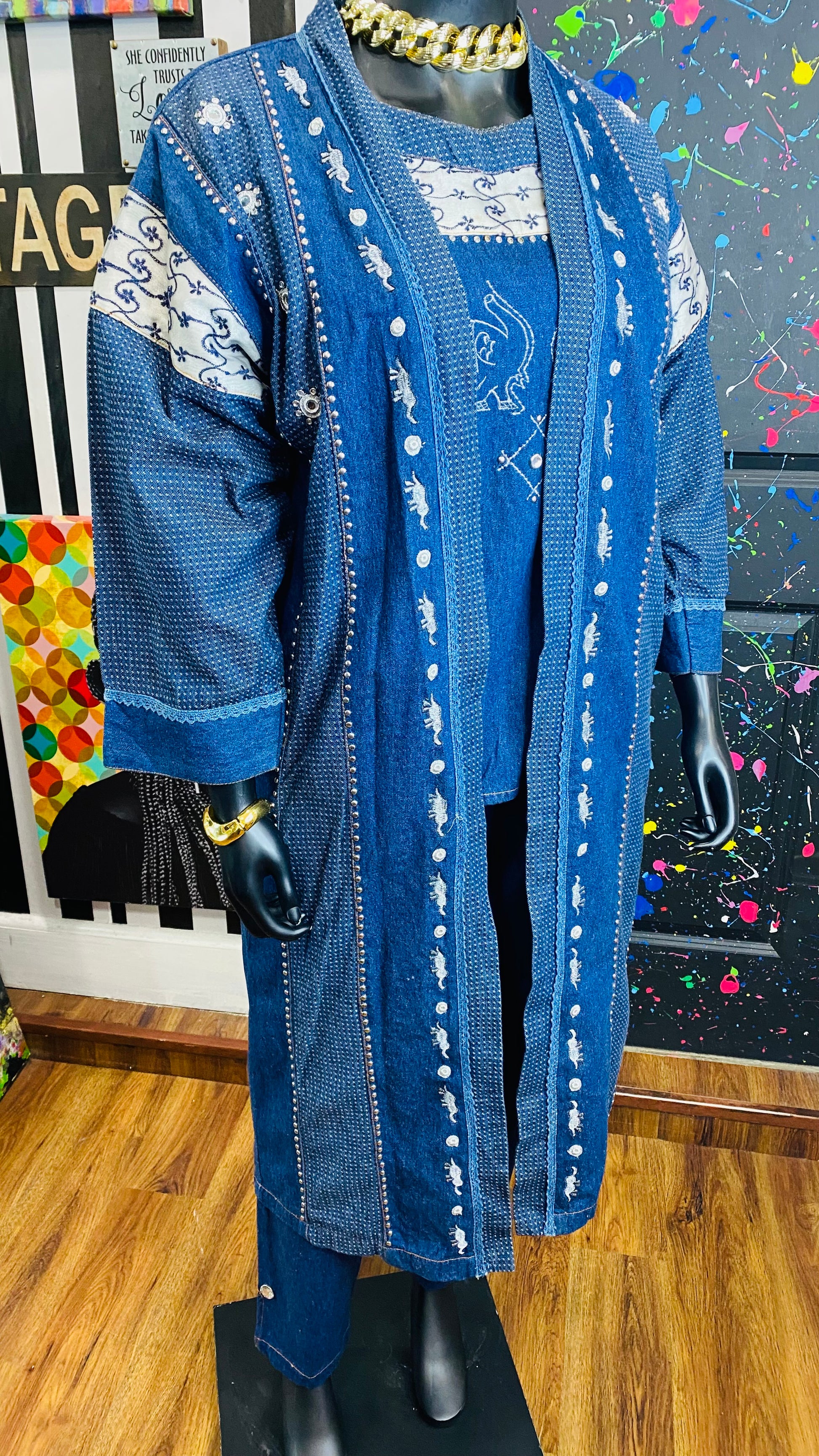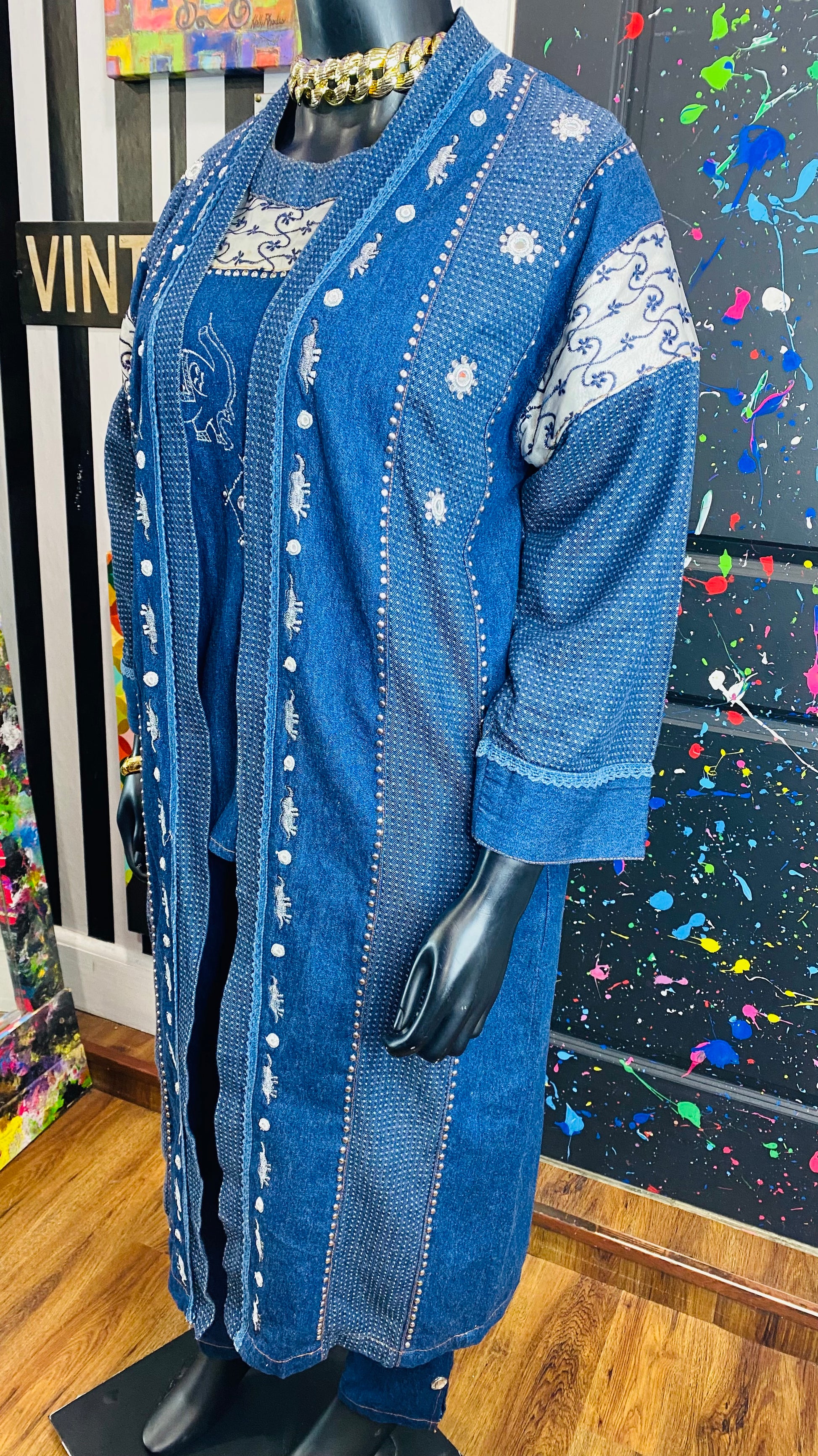 Vintage Denim Embroidered & Jeweled 3 Piece Pants Set (14)