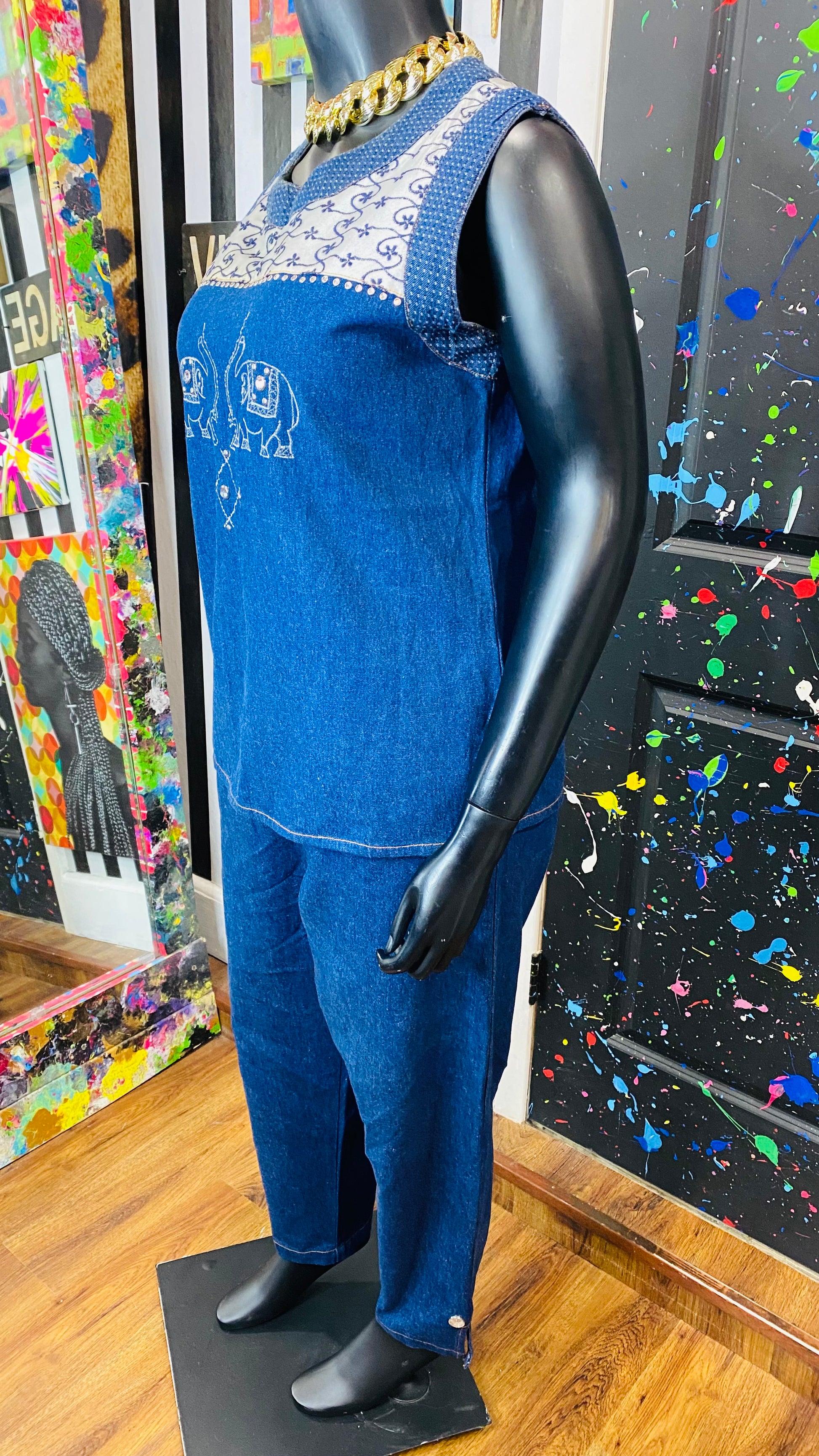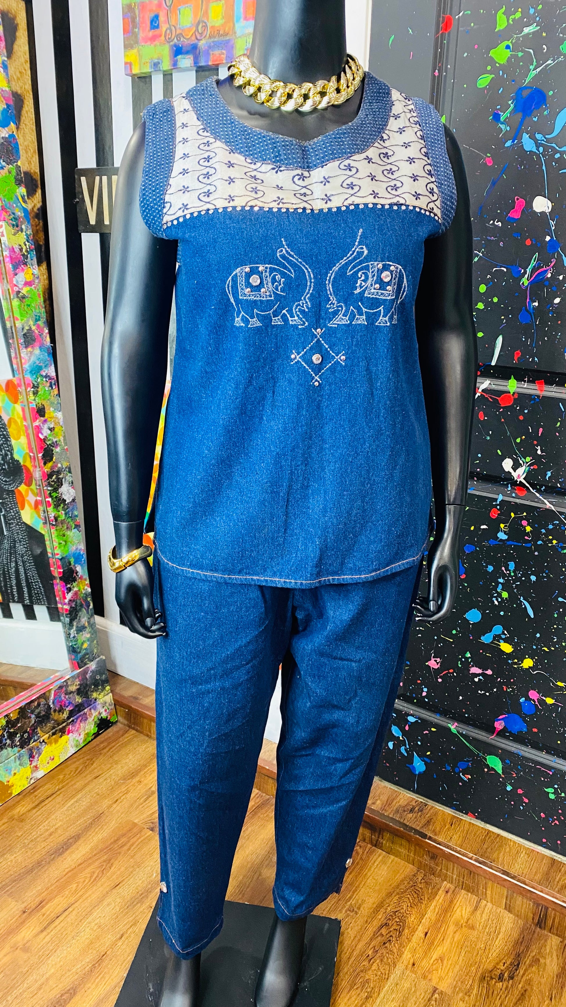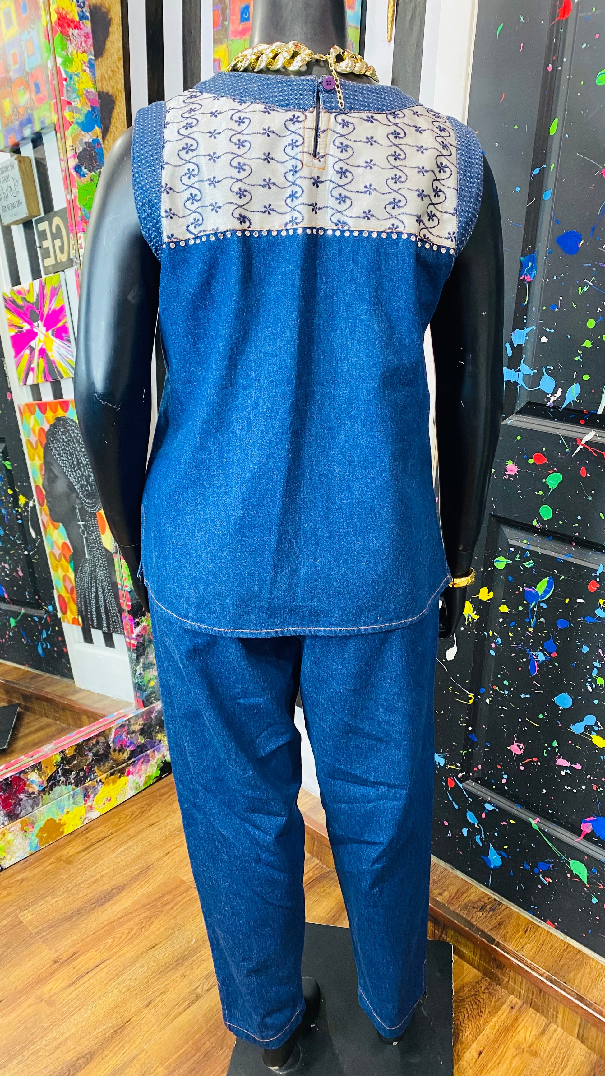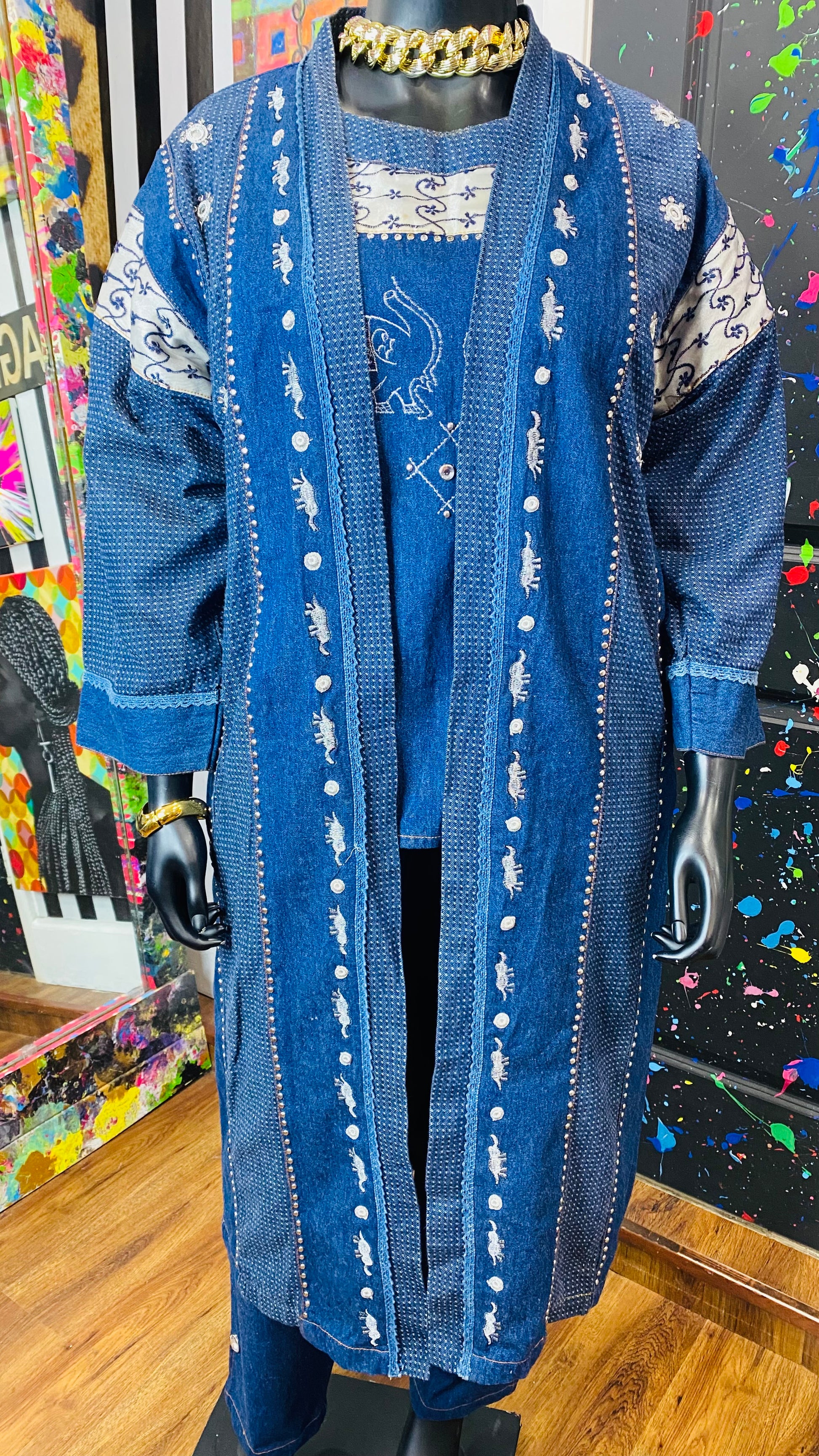 Vintage Denim Embroidered & Jeweled 3 Piece Pants Set (14)