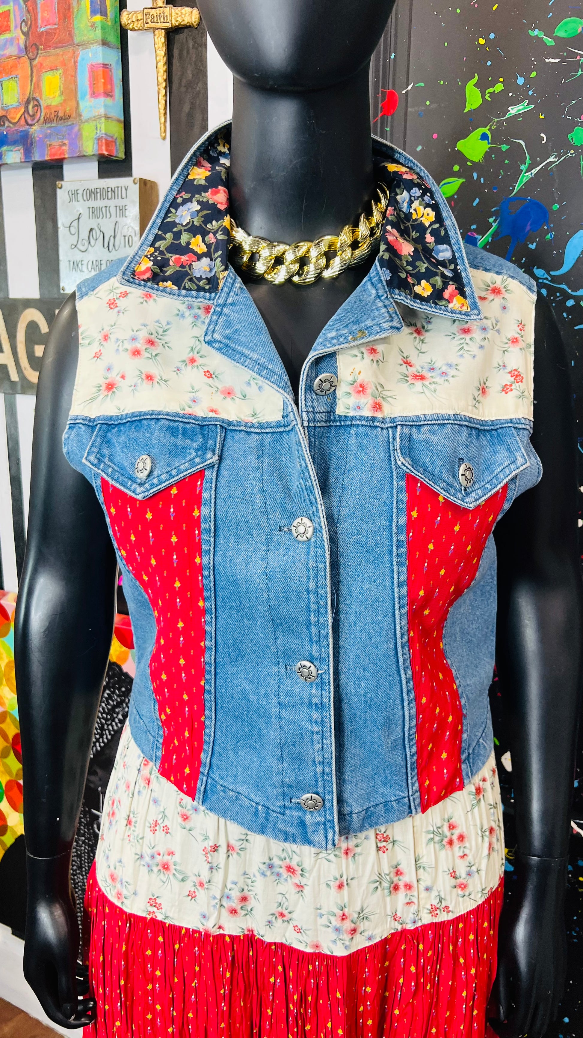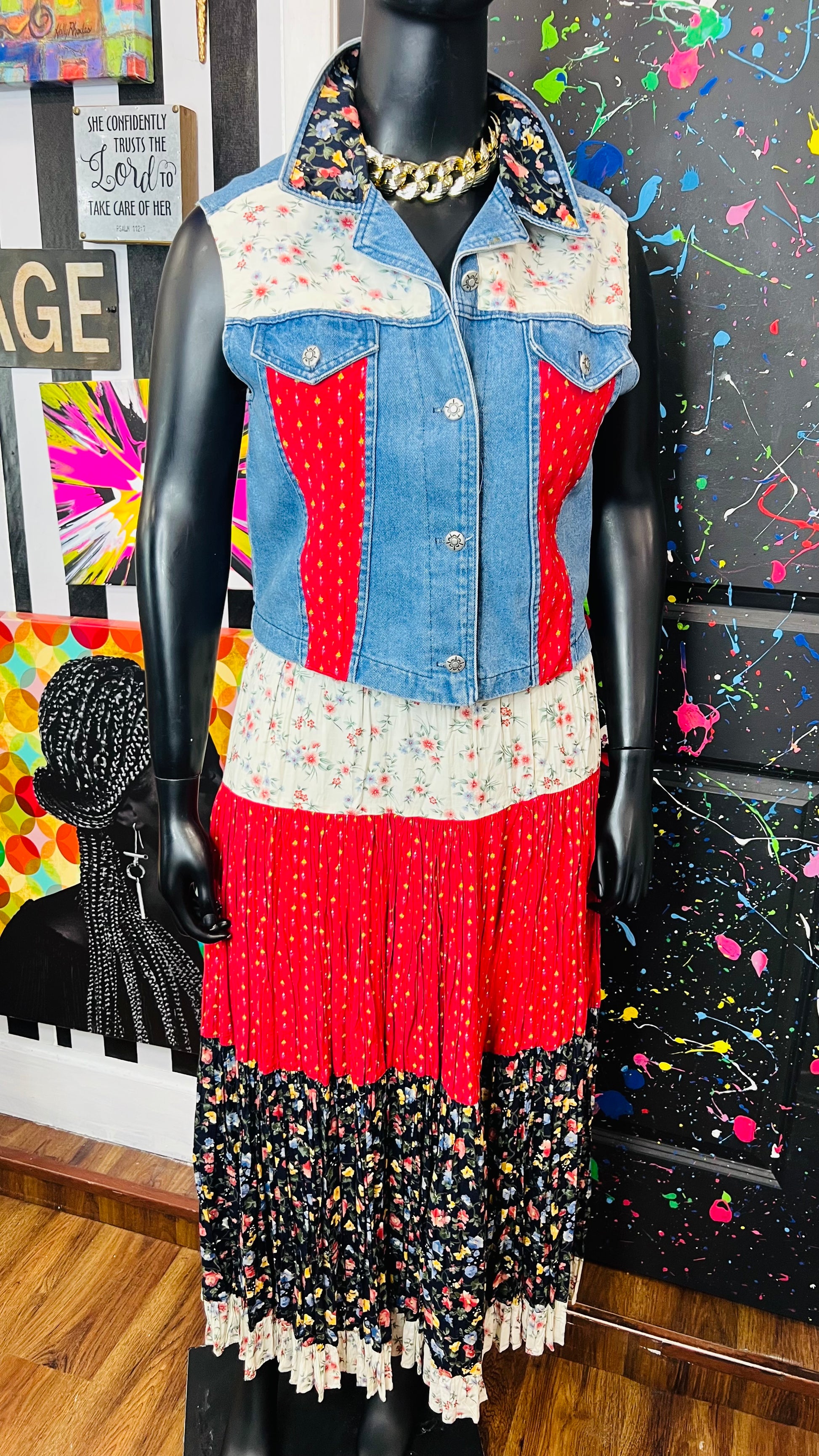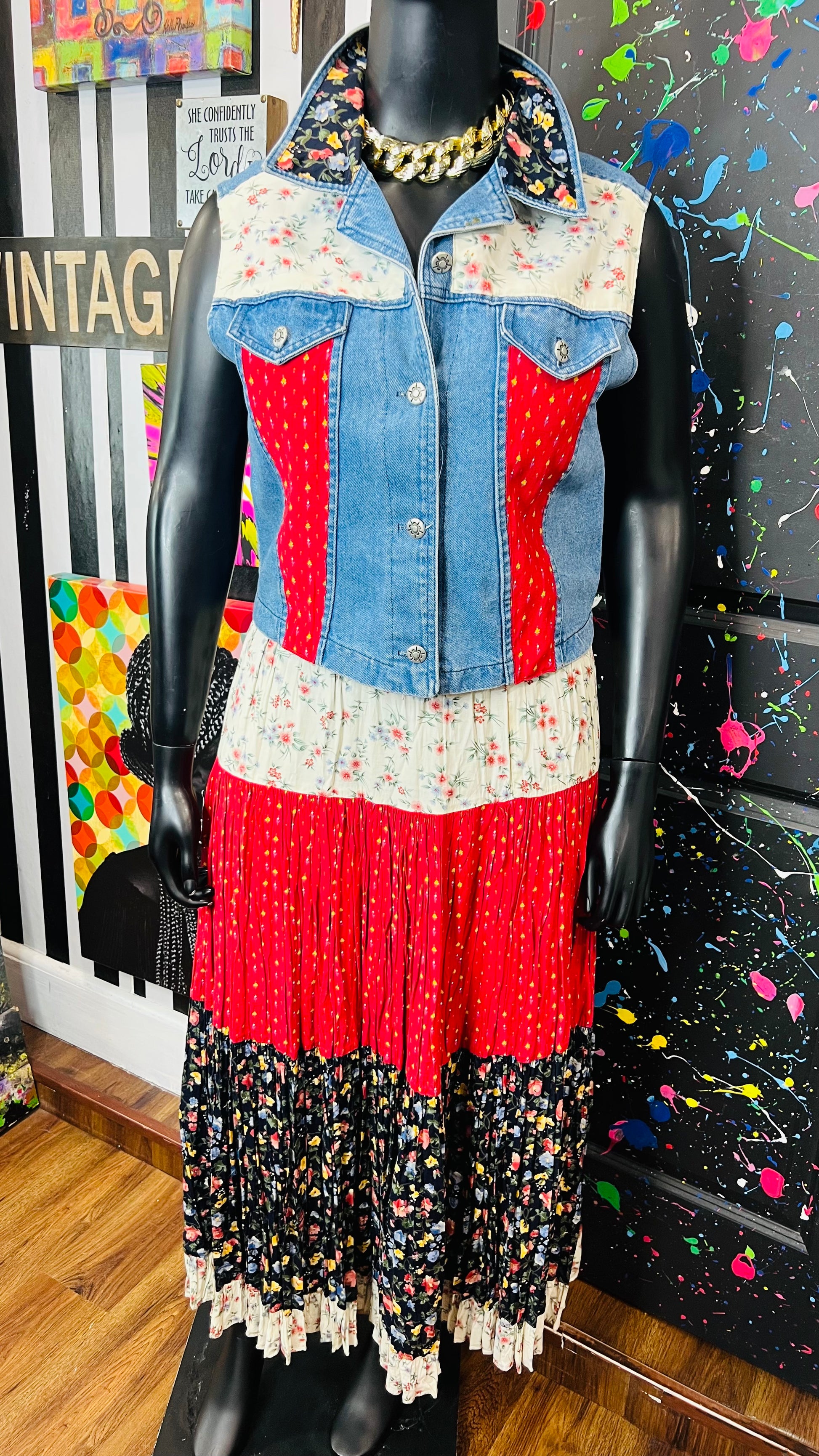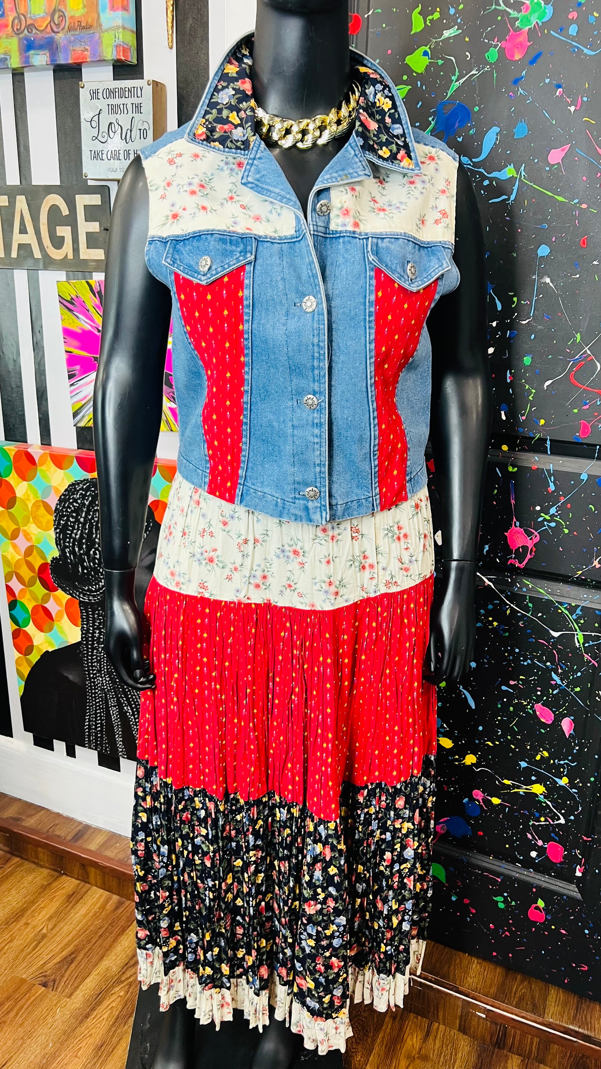 Vintage Denim Vest & Floral Skirt Set (14/16)