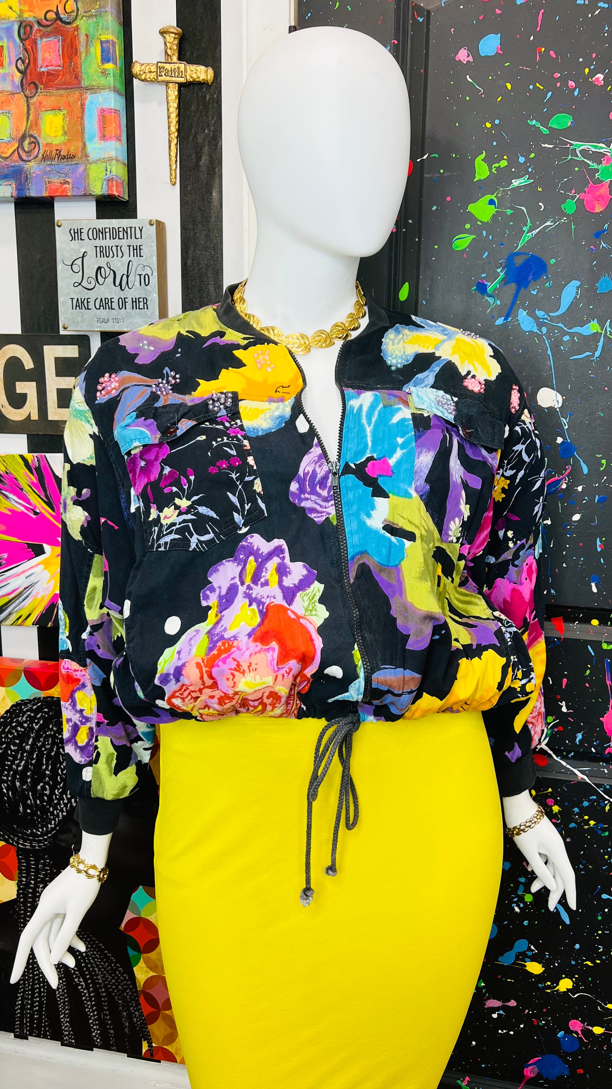 Vintage Drawstring Waist Rayon Jacket (OS)