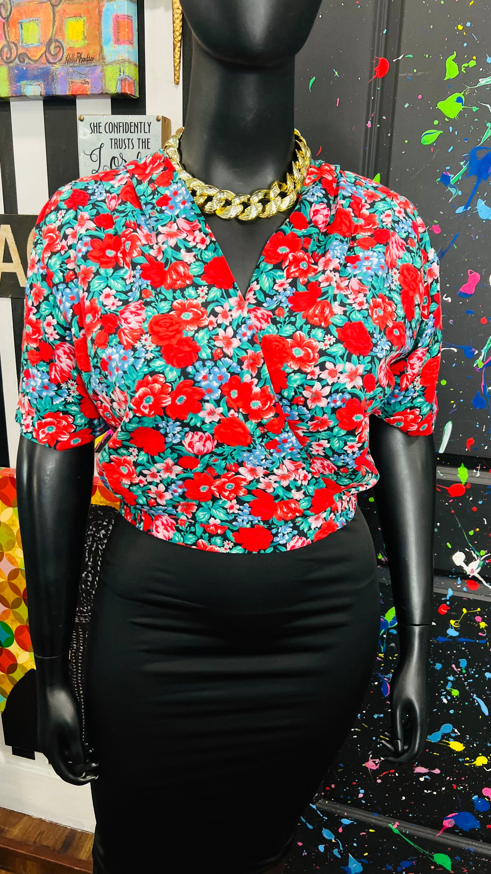 Vintage Floral Cropped Blouse (16P)