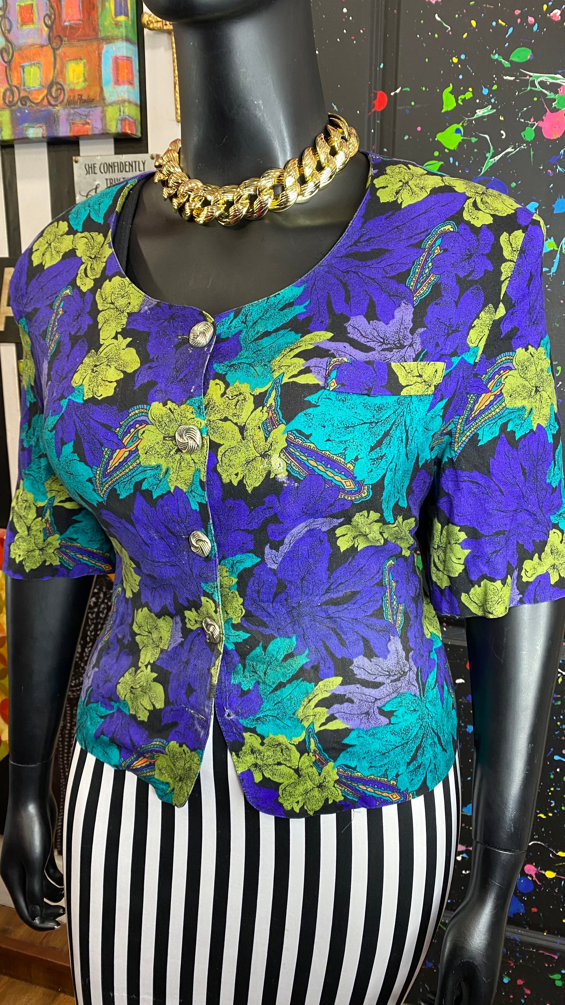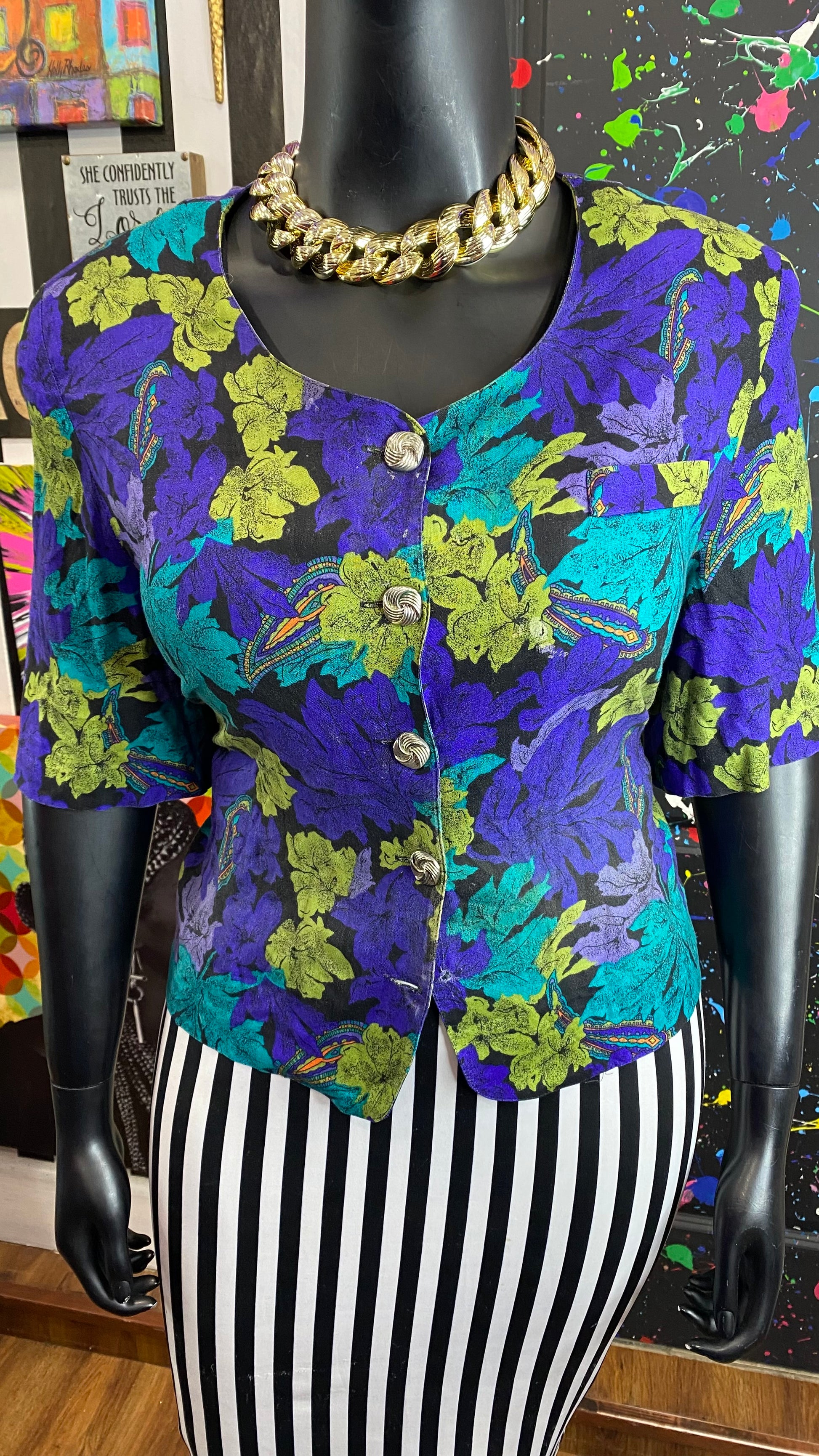 Imperfection (see photos): This blouse boasts a subtle imperfection at the bottom - adding character and uniqueness to the vintage floral design.