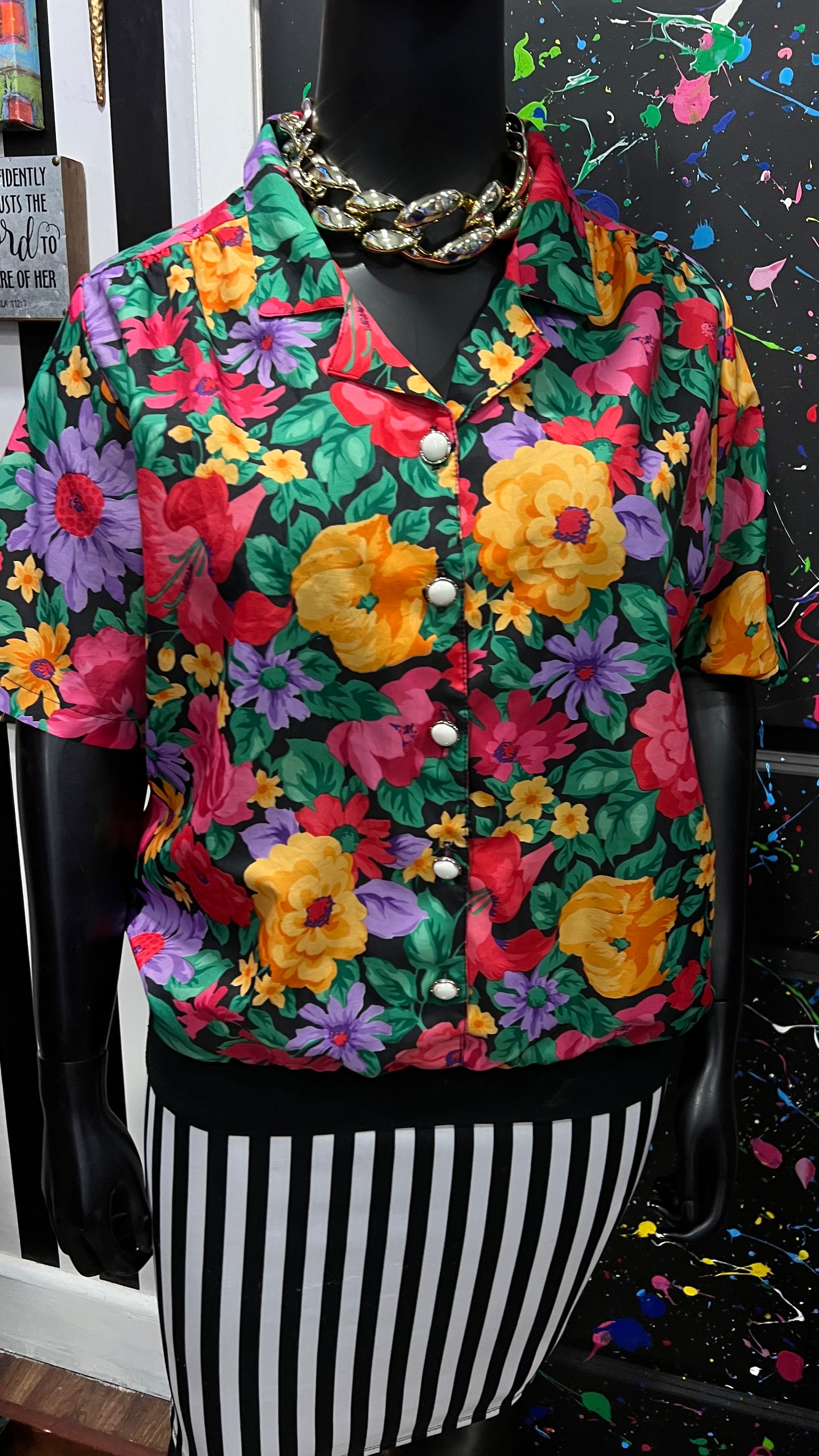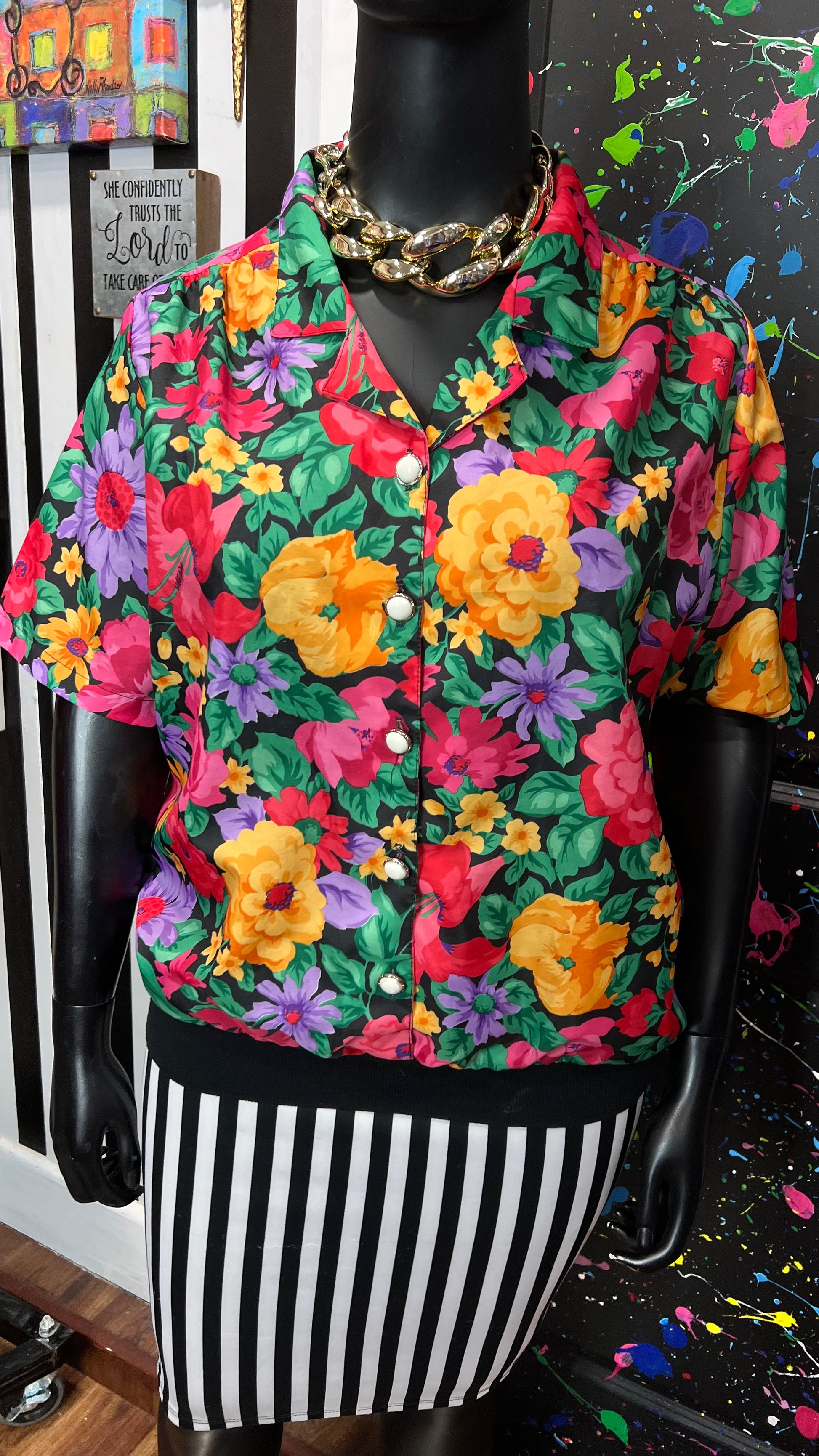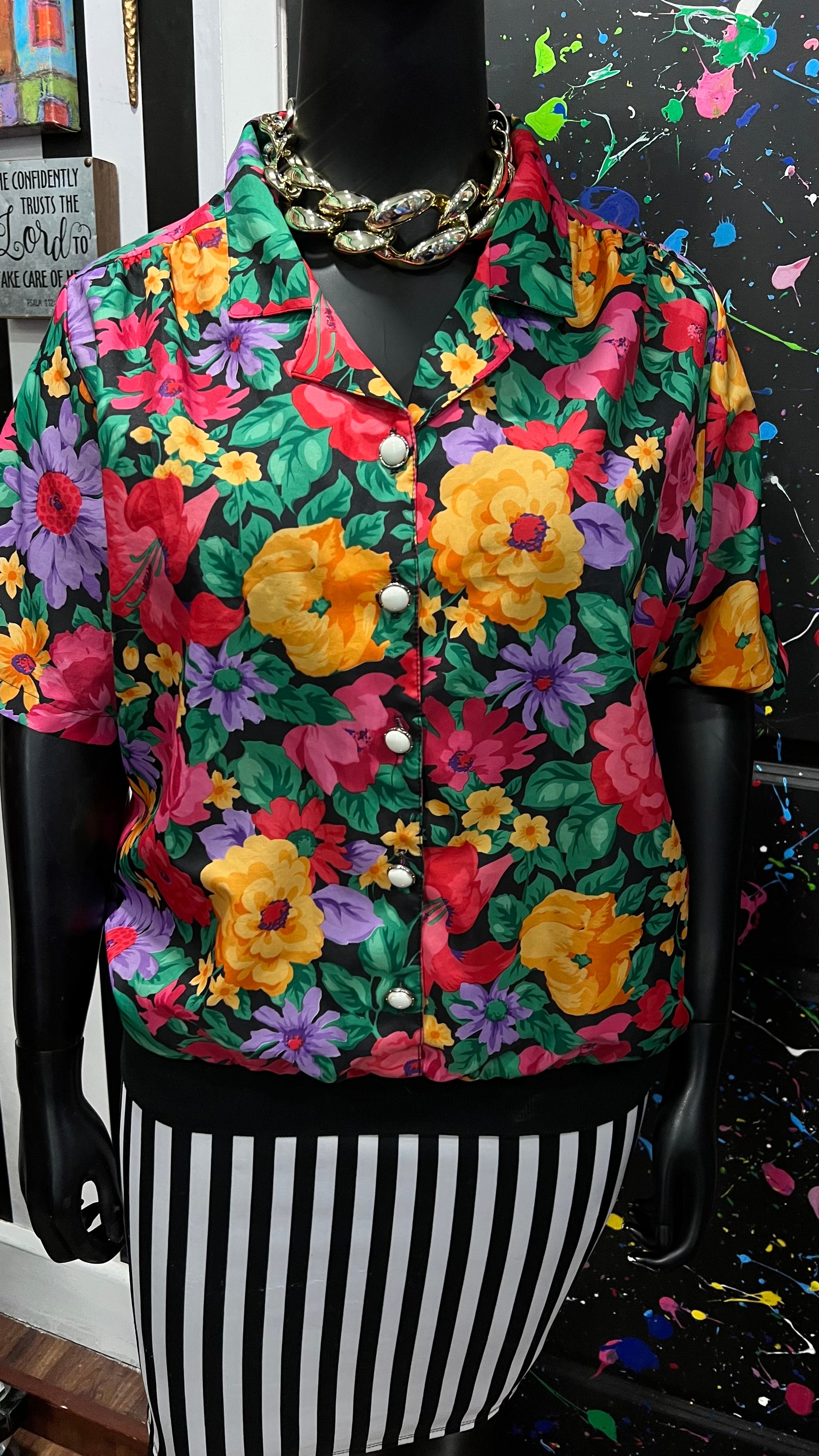Vintage Floral Elastic Waist Blouse (20) *KC