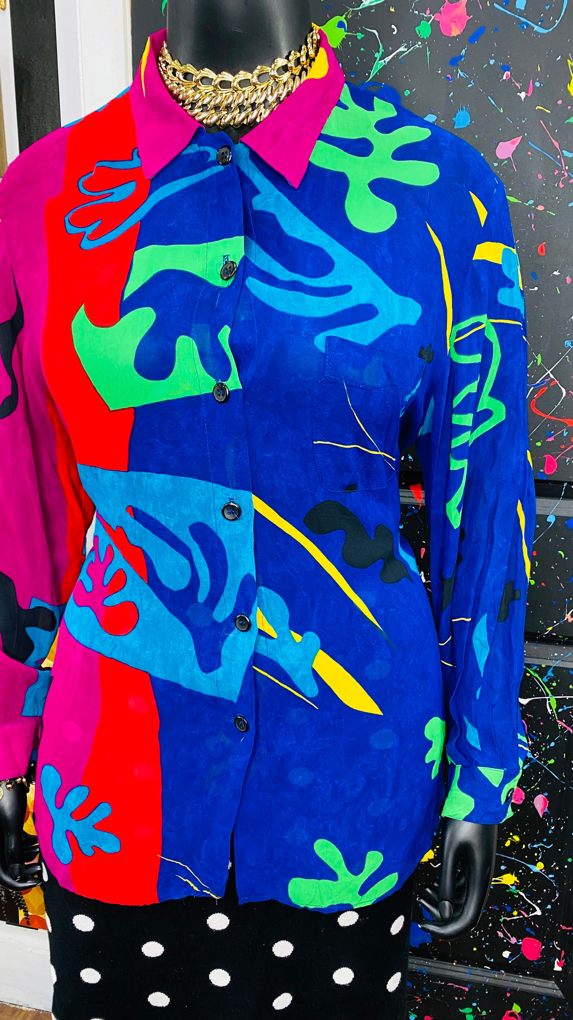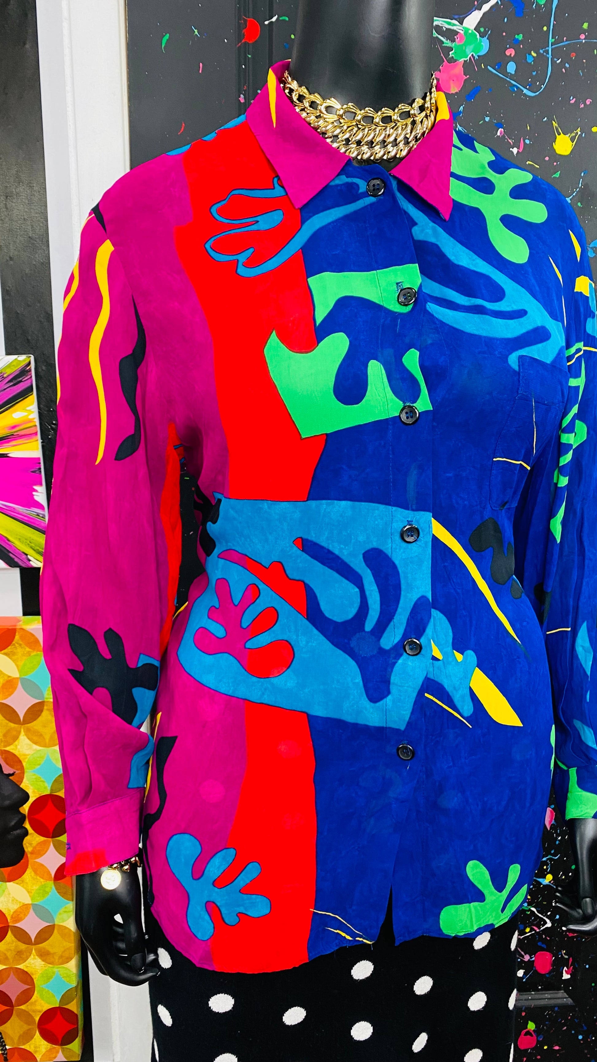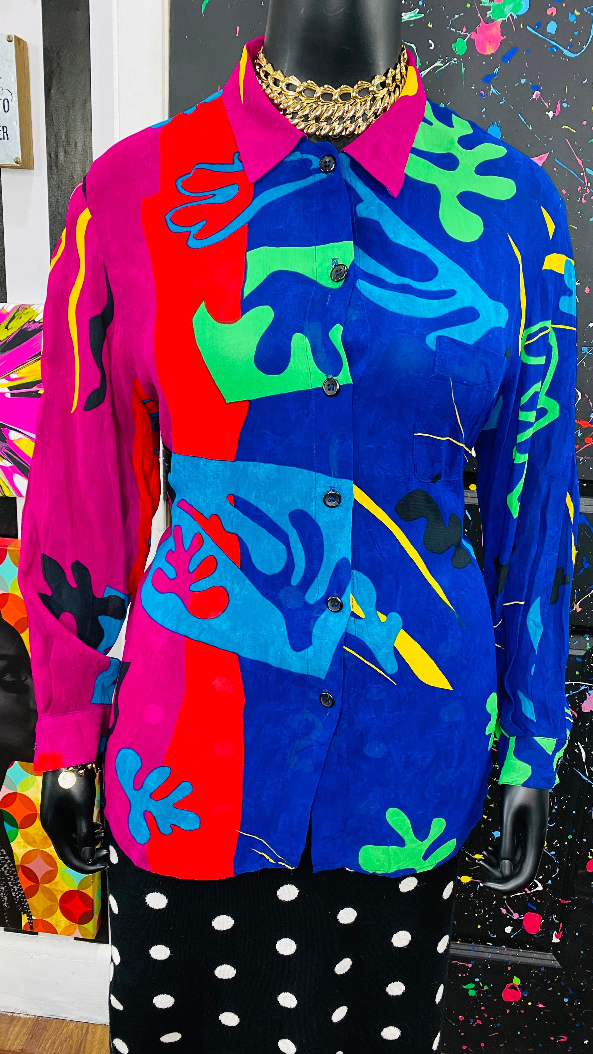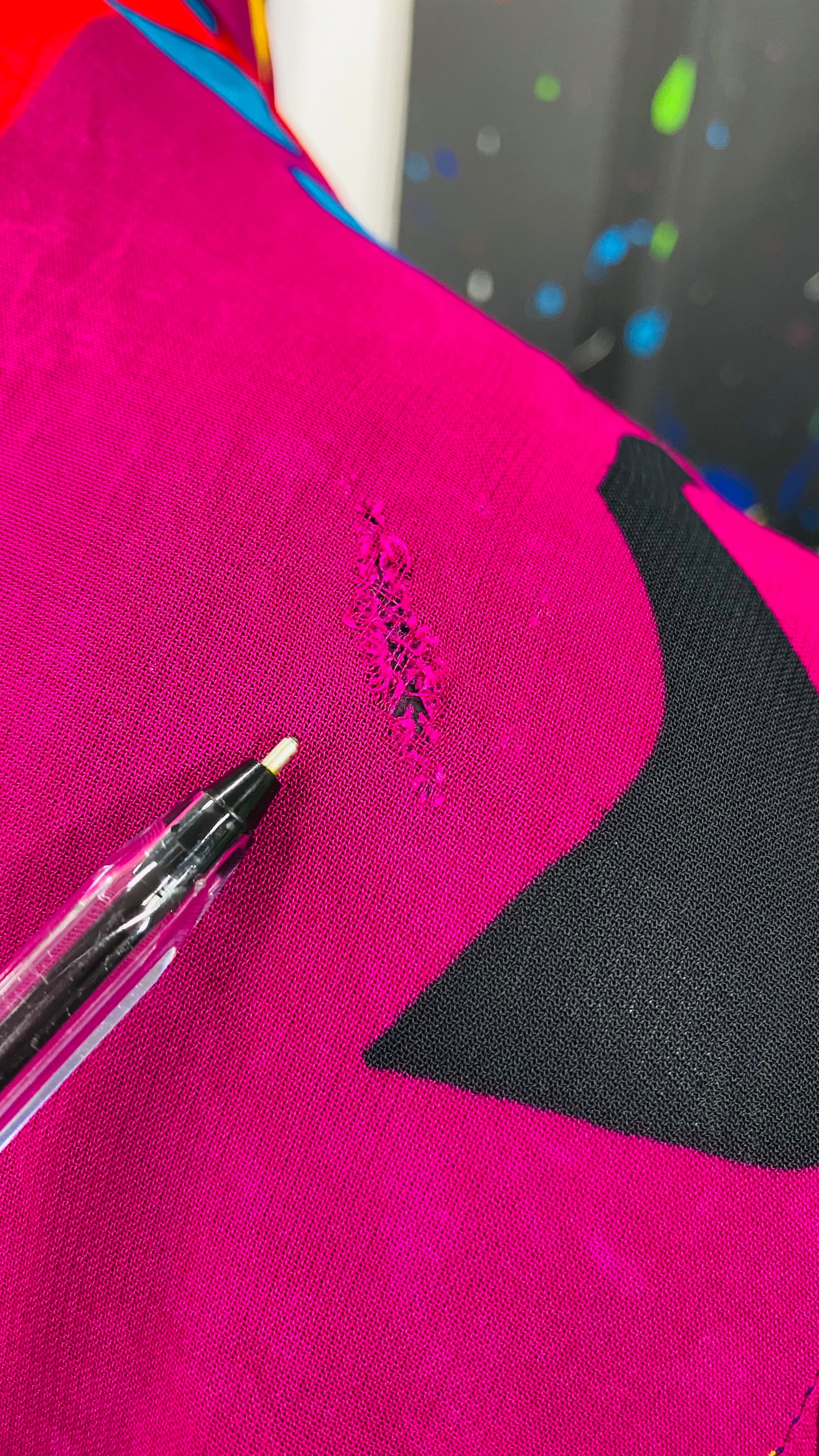 Imperfection (see photos):There is a small run on the shoulder of the blouse. This could be easily Mitigated by a needle and thread. This does not take away the stunning appearance of this timeless vintage piece.