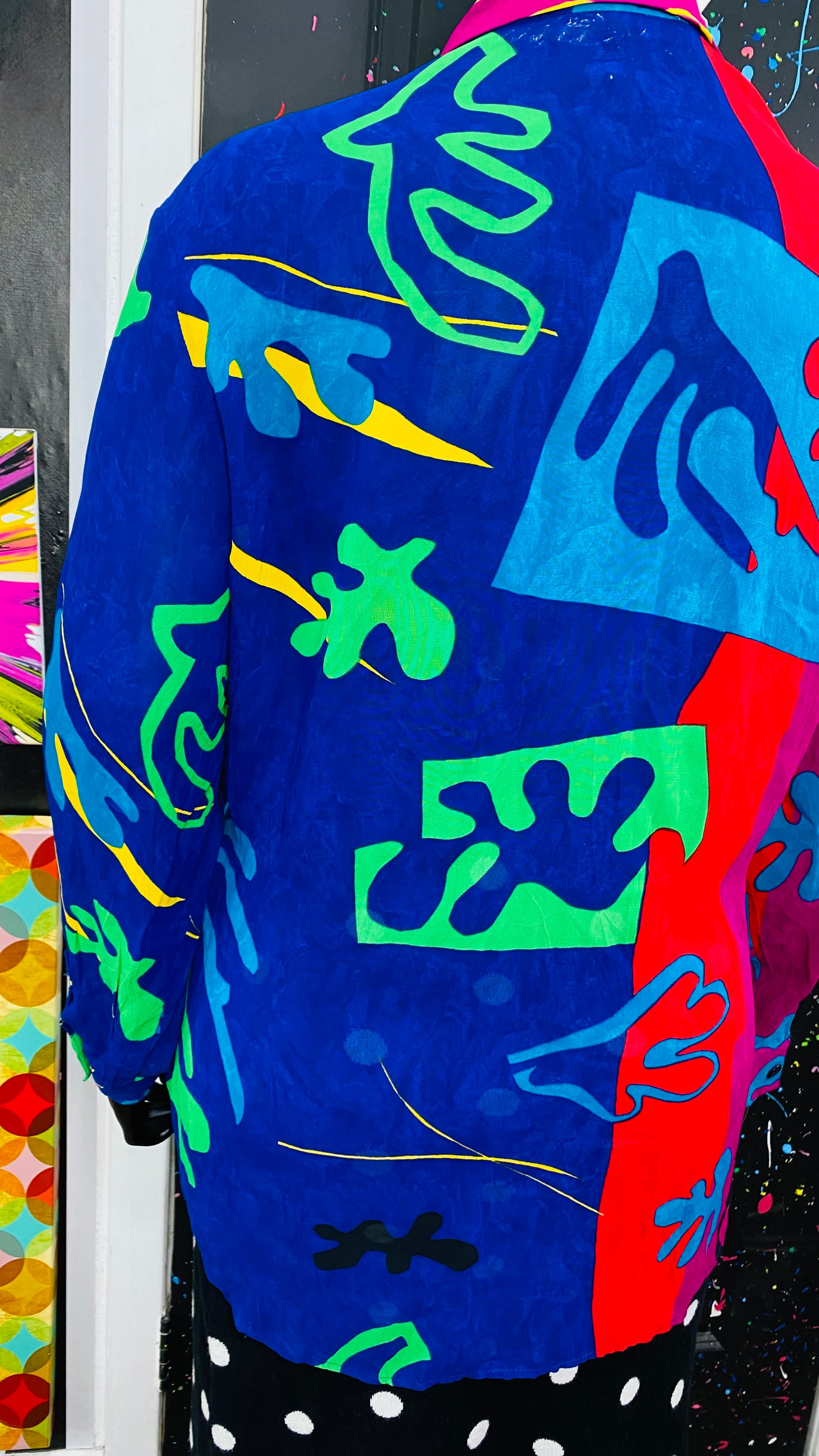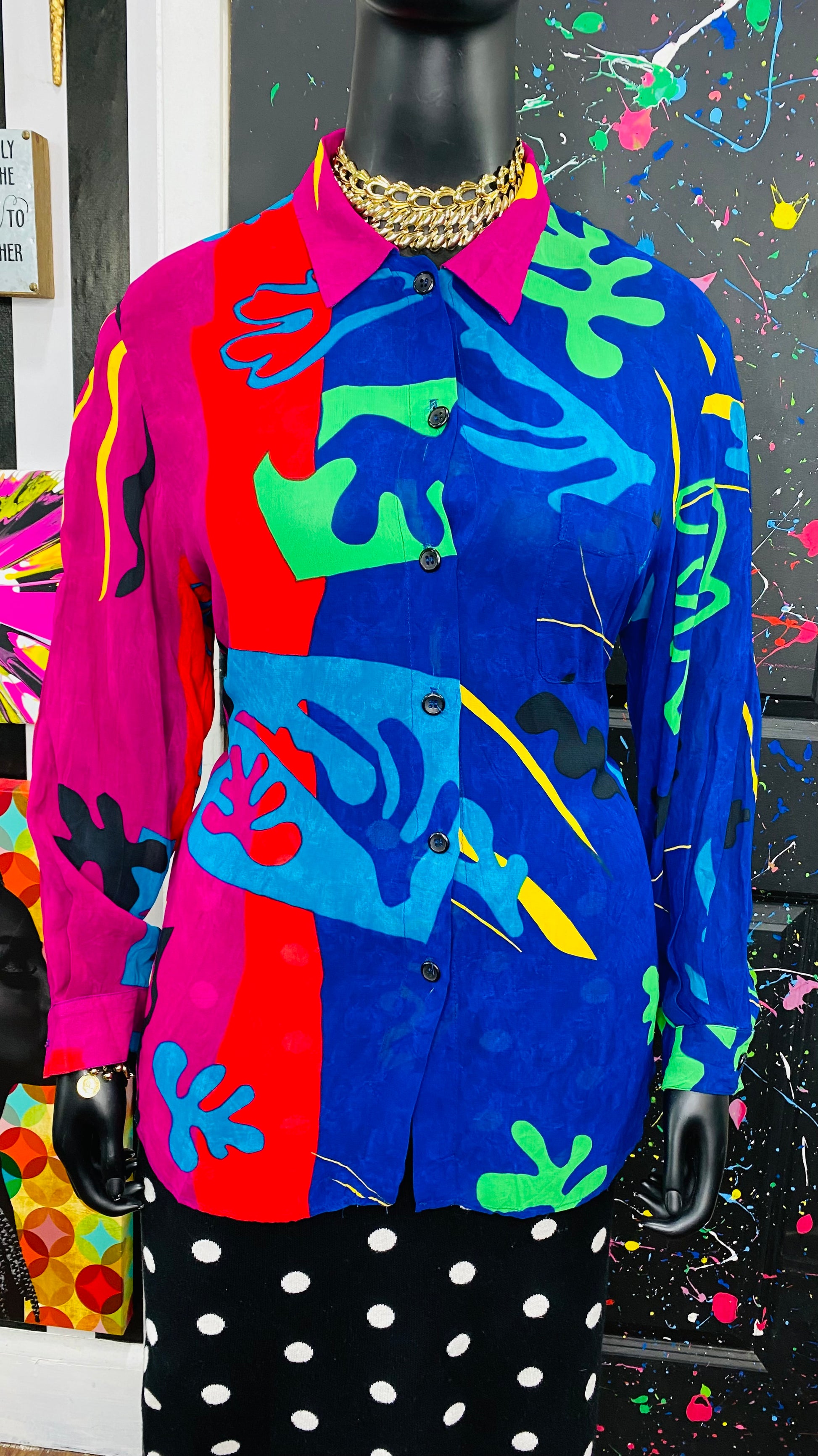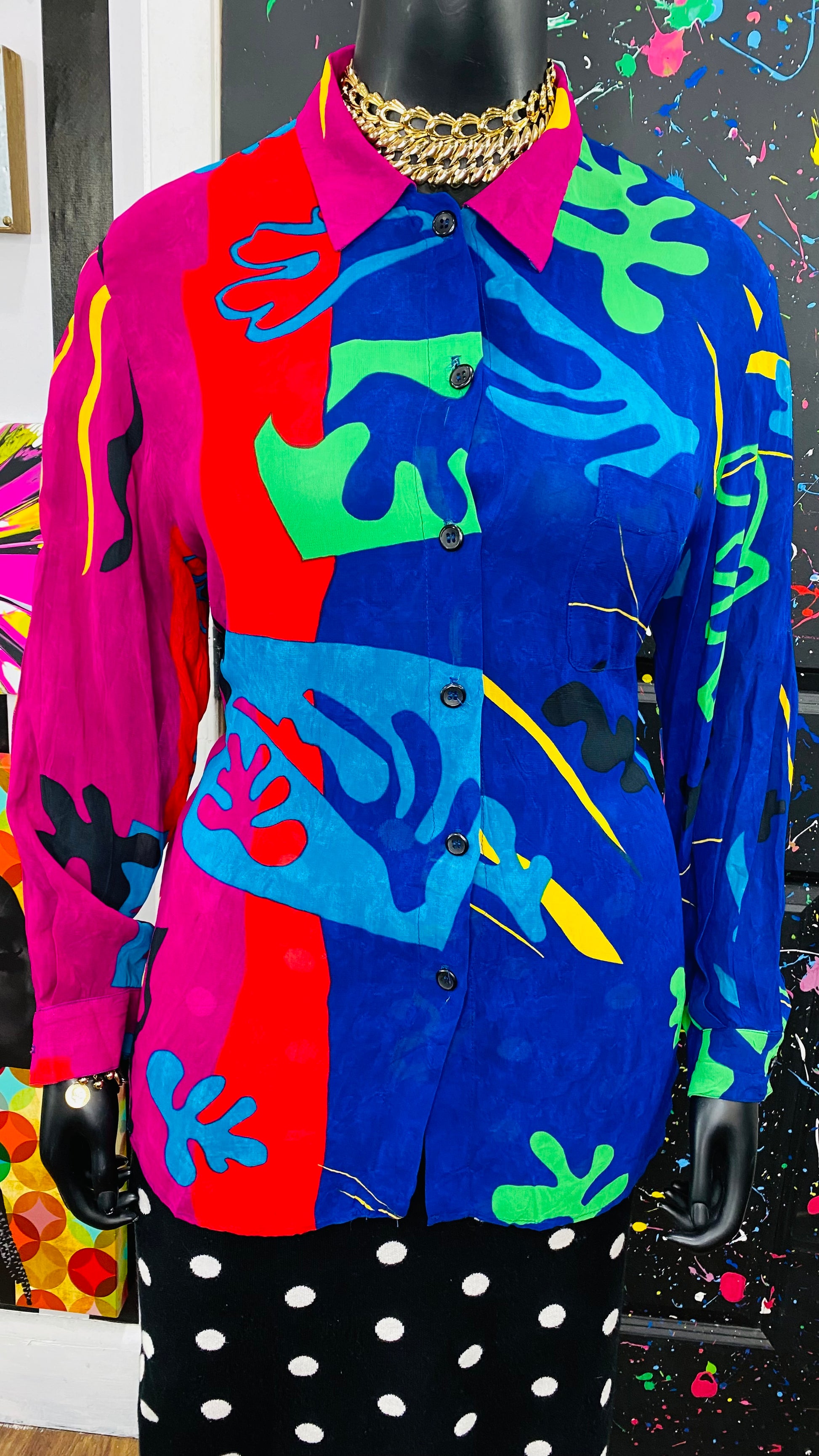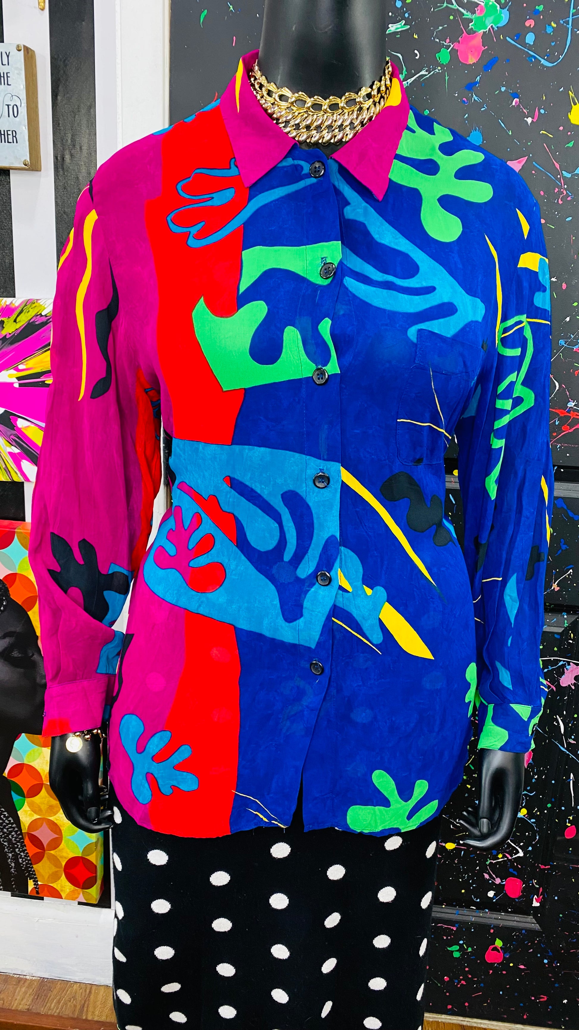 Imperfection (see photos):There is a small run on the shoulder of the blouse. This could be easily Mitigated by a needle and thread. This does not take away the stunning appearance of this timeless vintage piece.