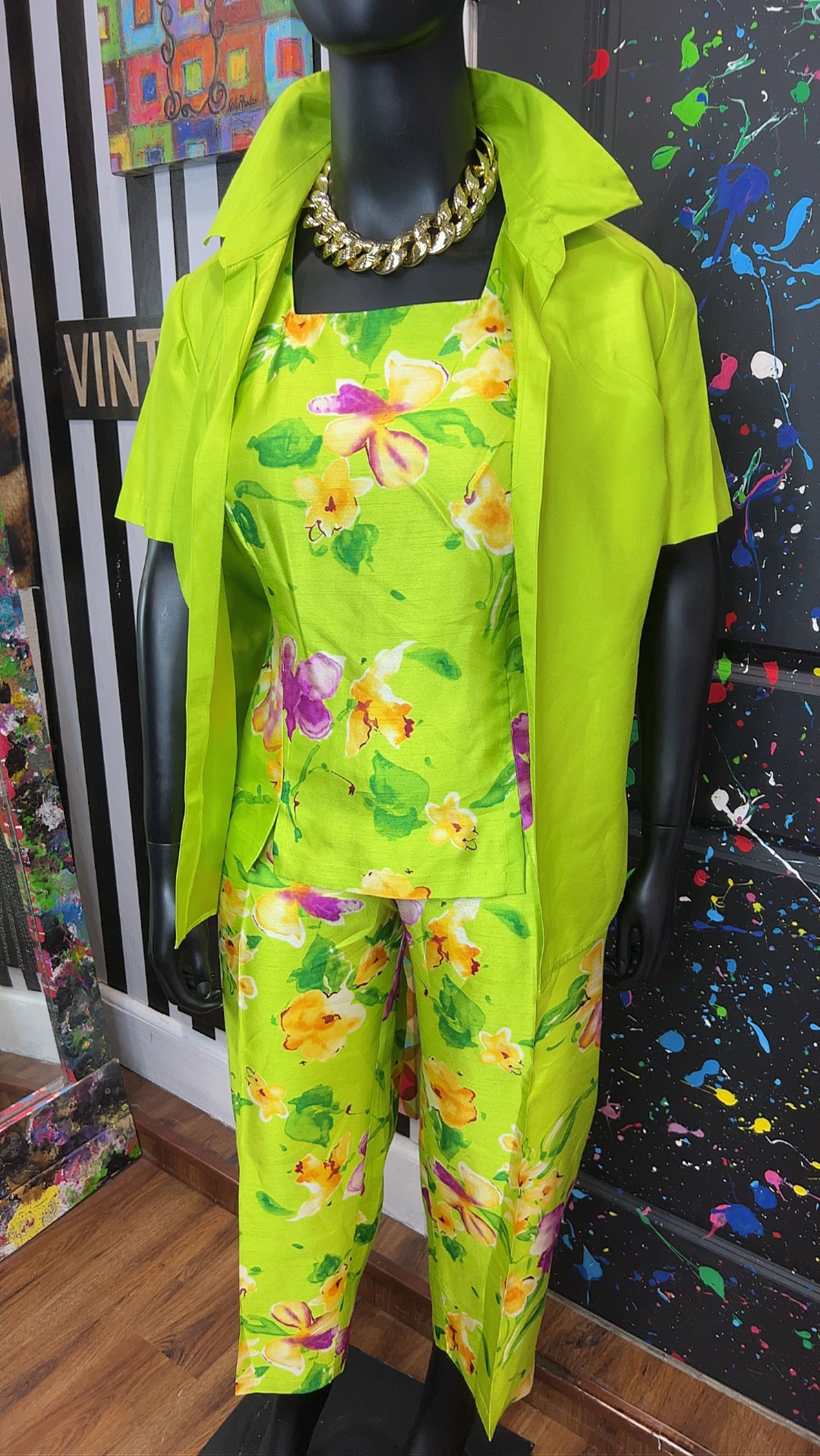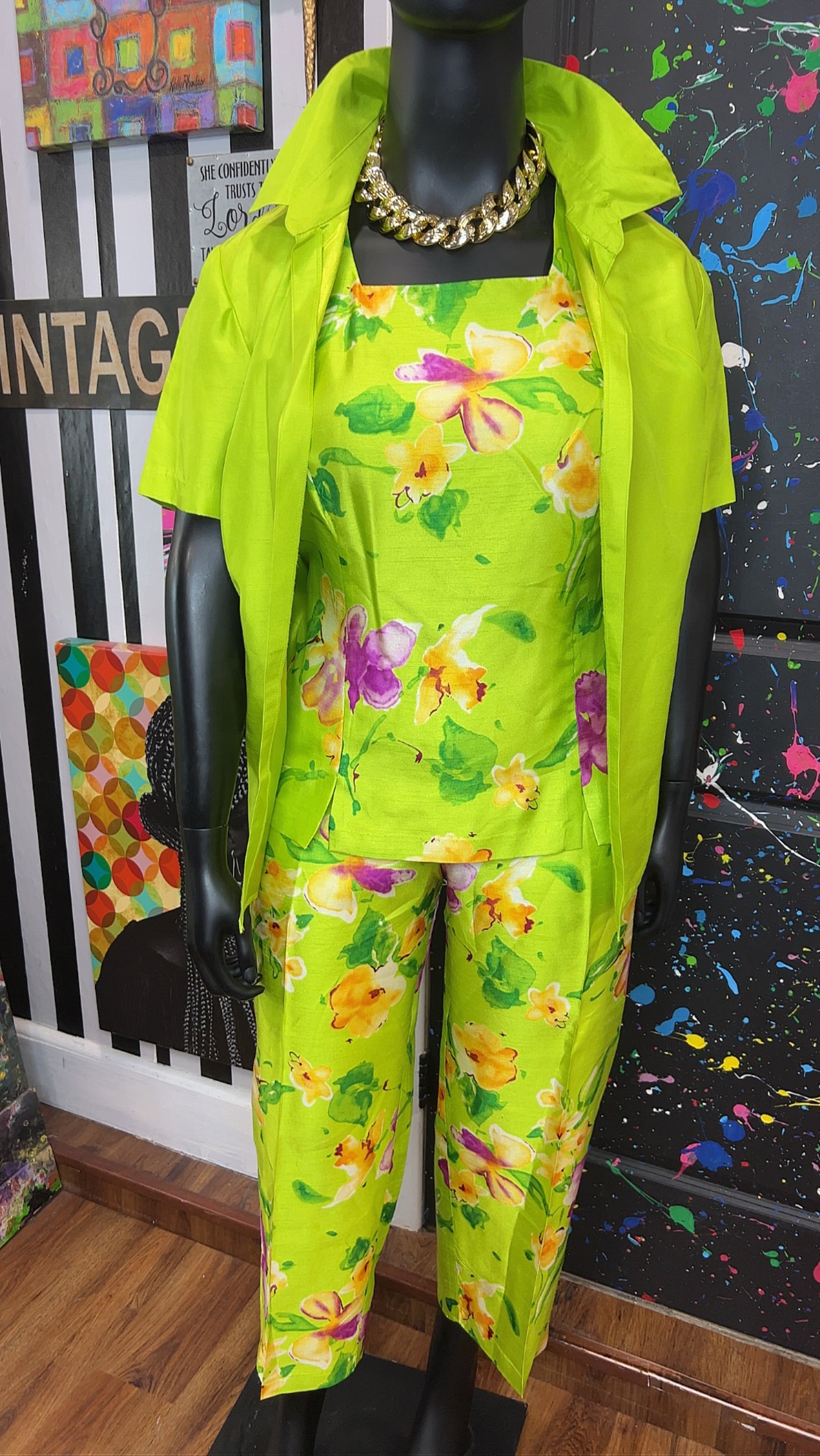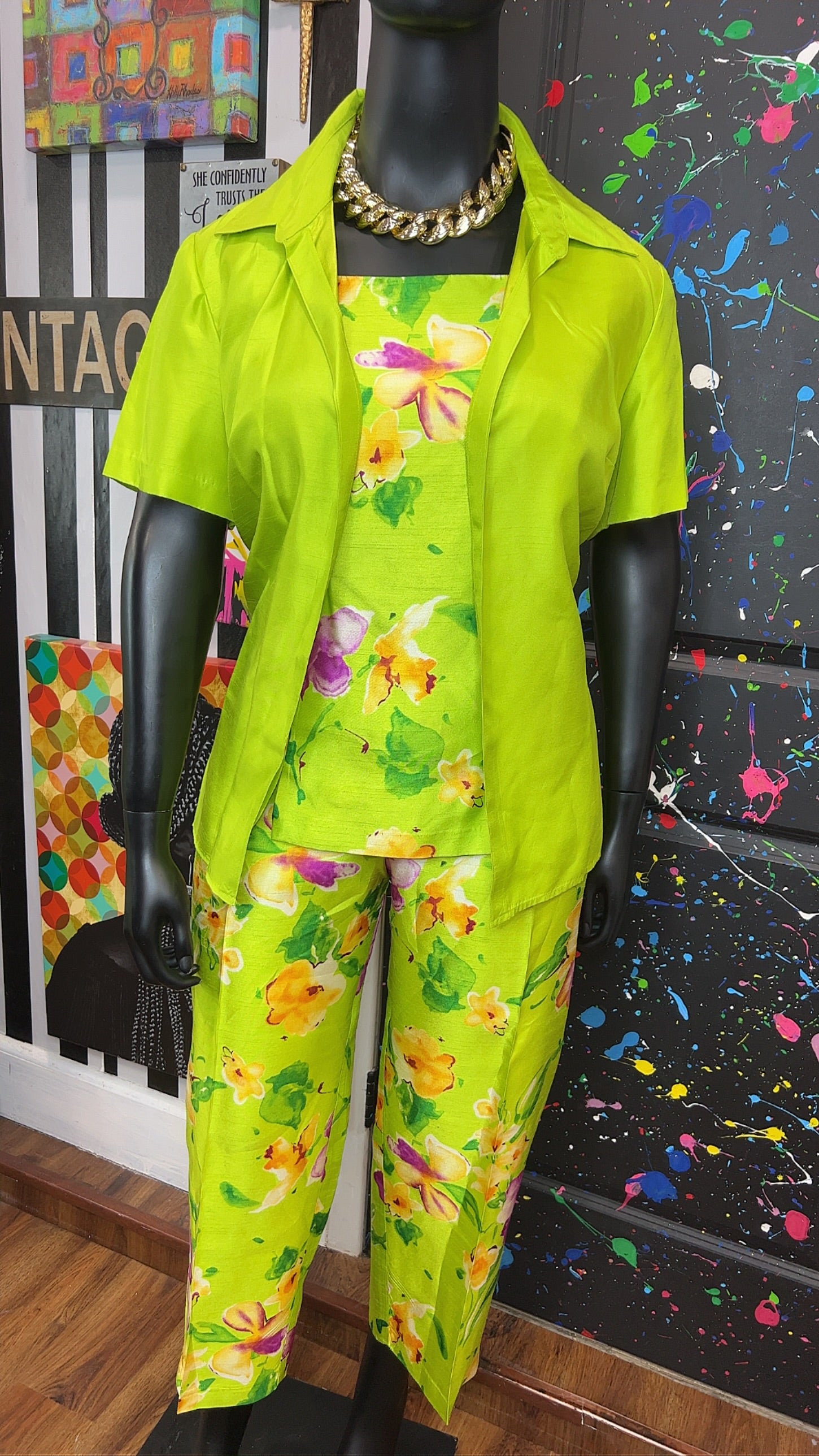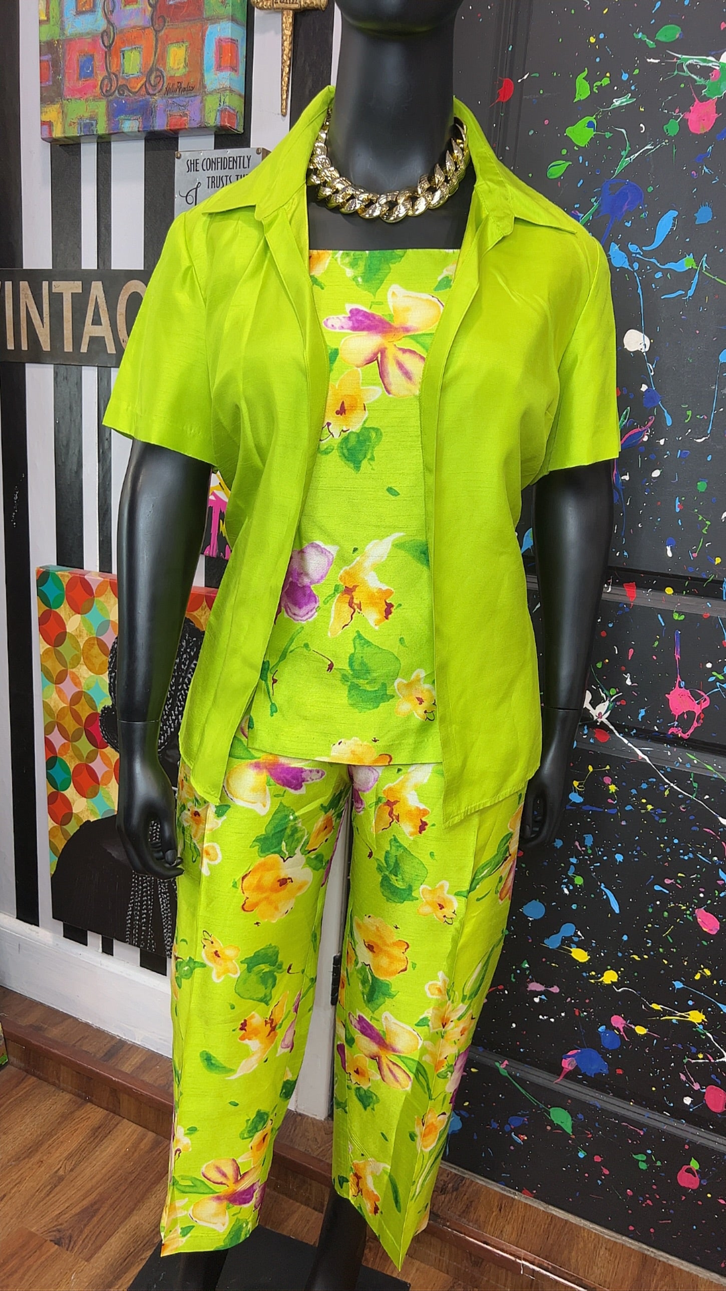 Vintage Green & Floral 3 Piece Pants Set (18W)