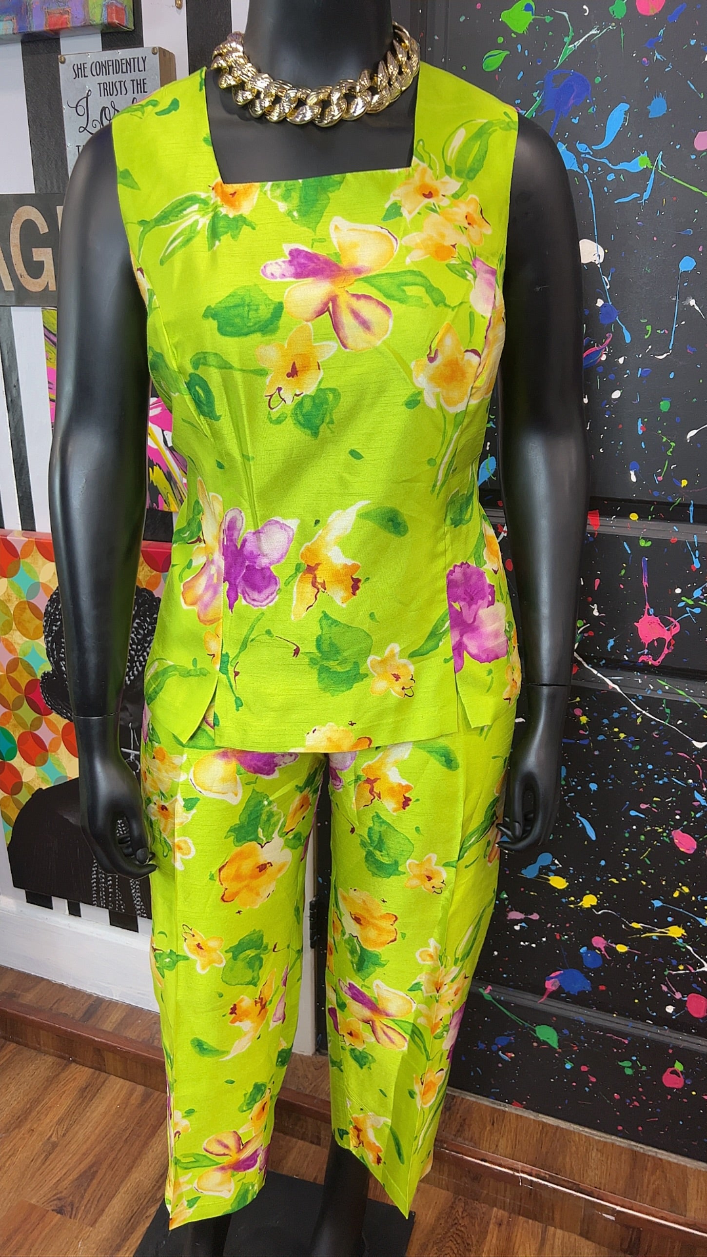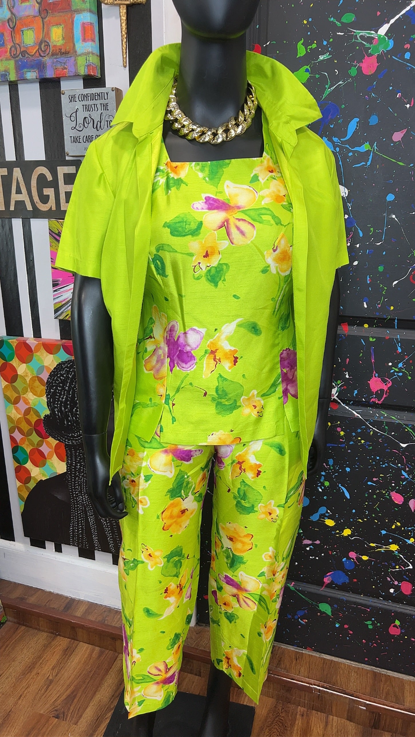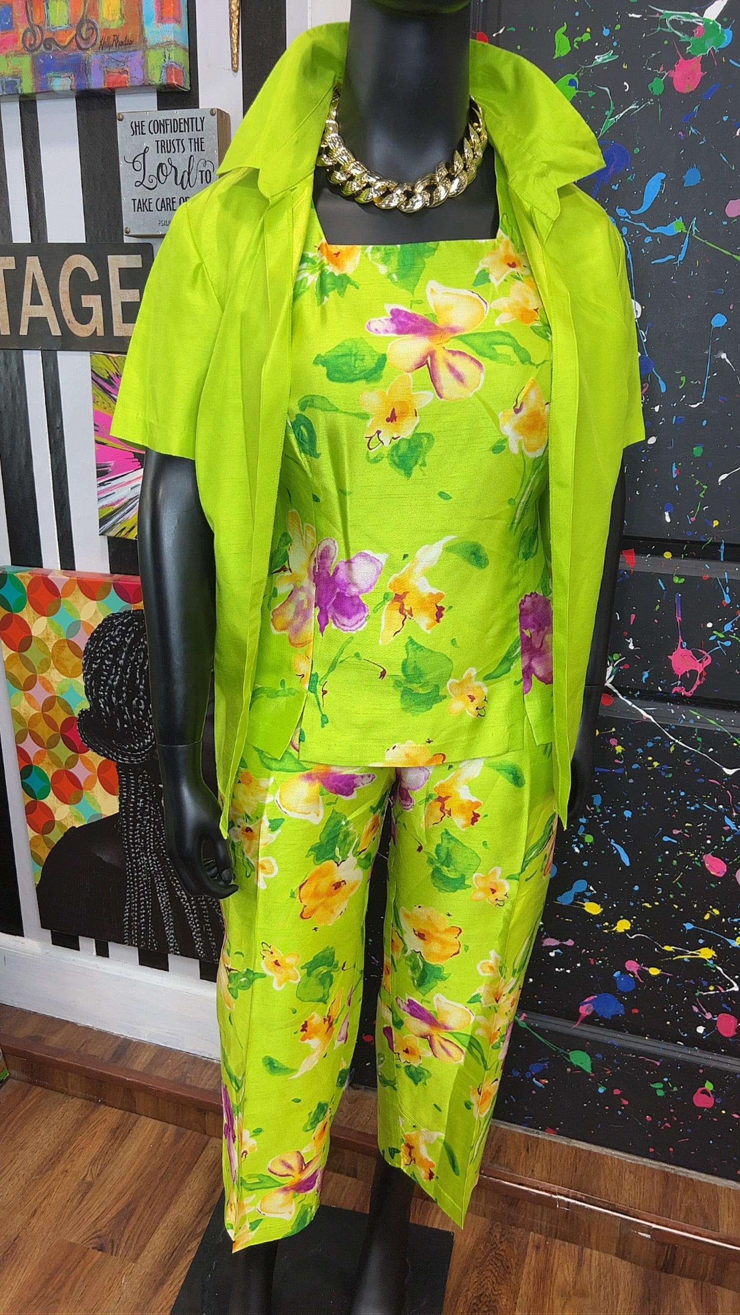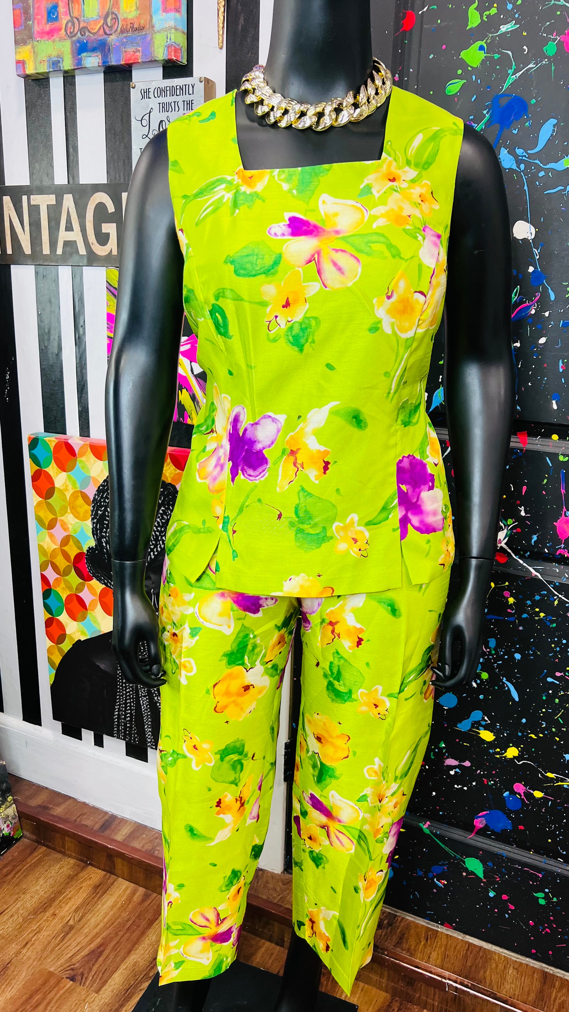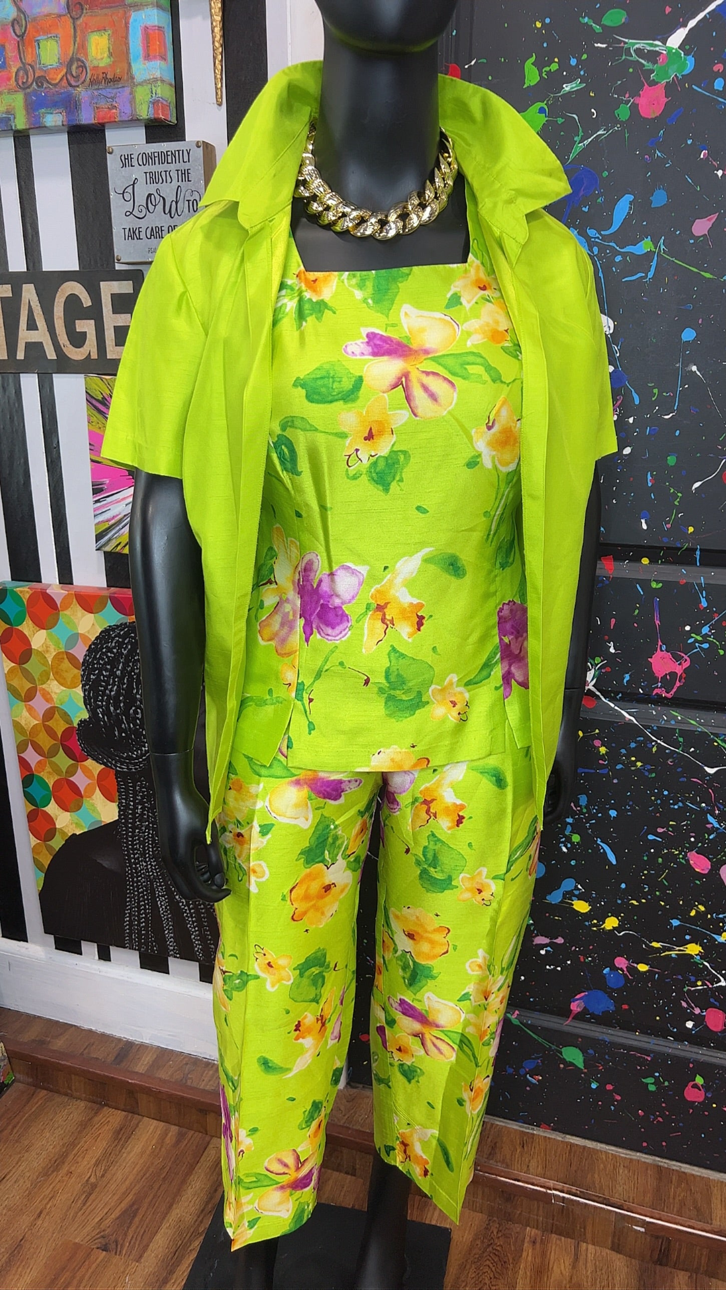 Vintage Green & Floral 3 Piece Pants Set (18W)