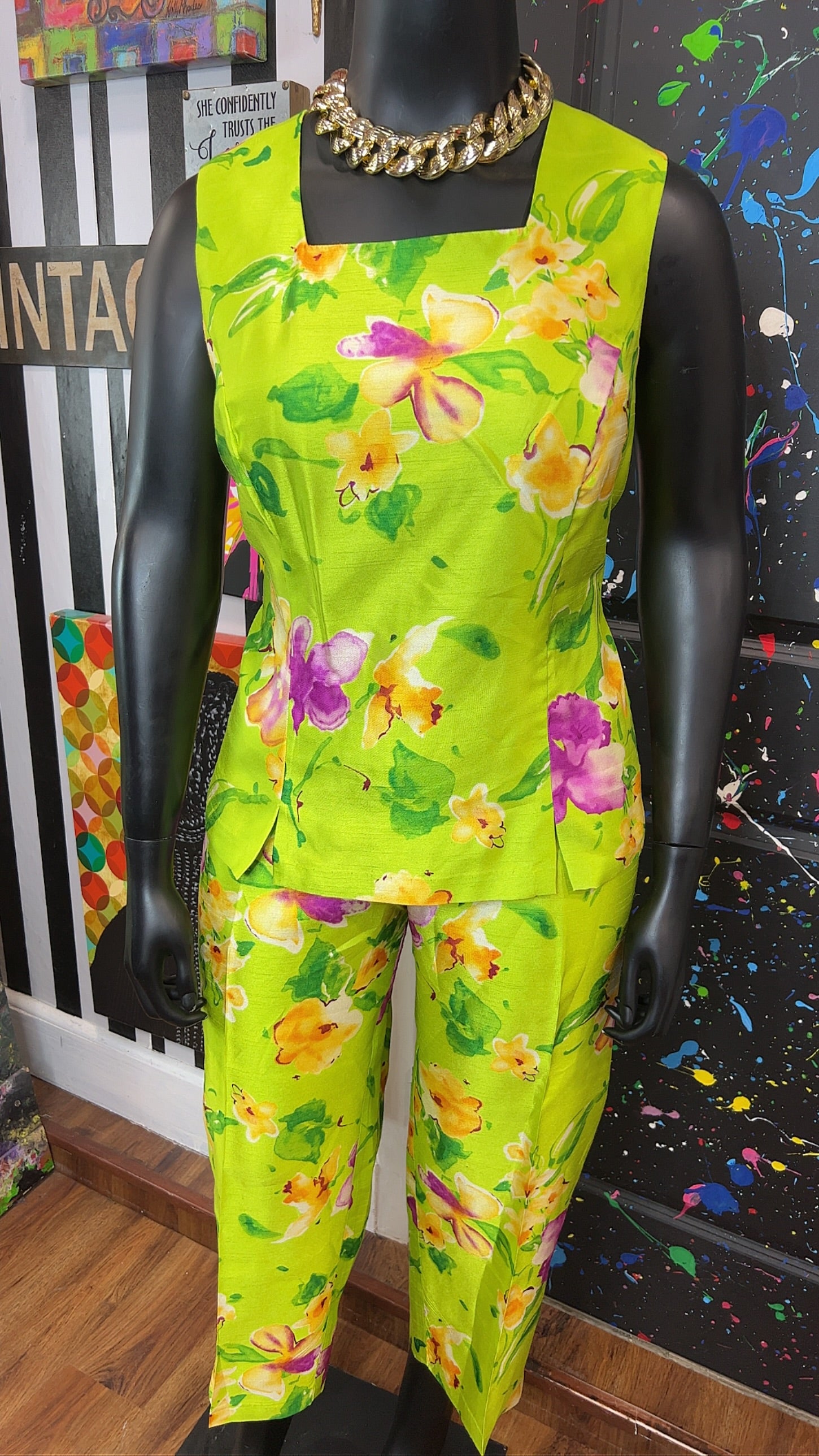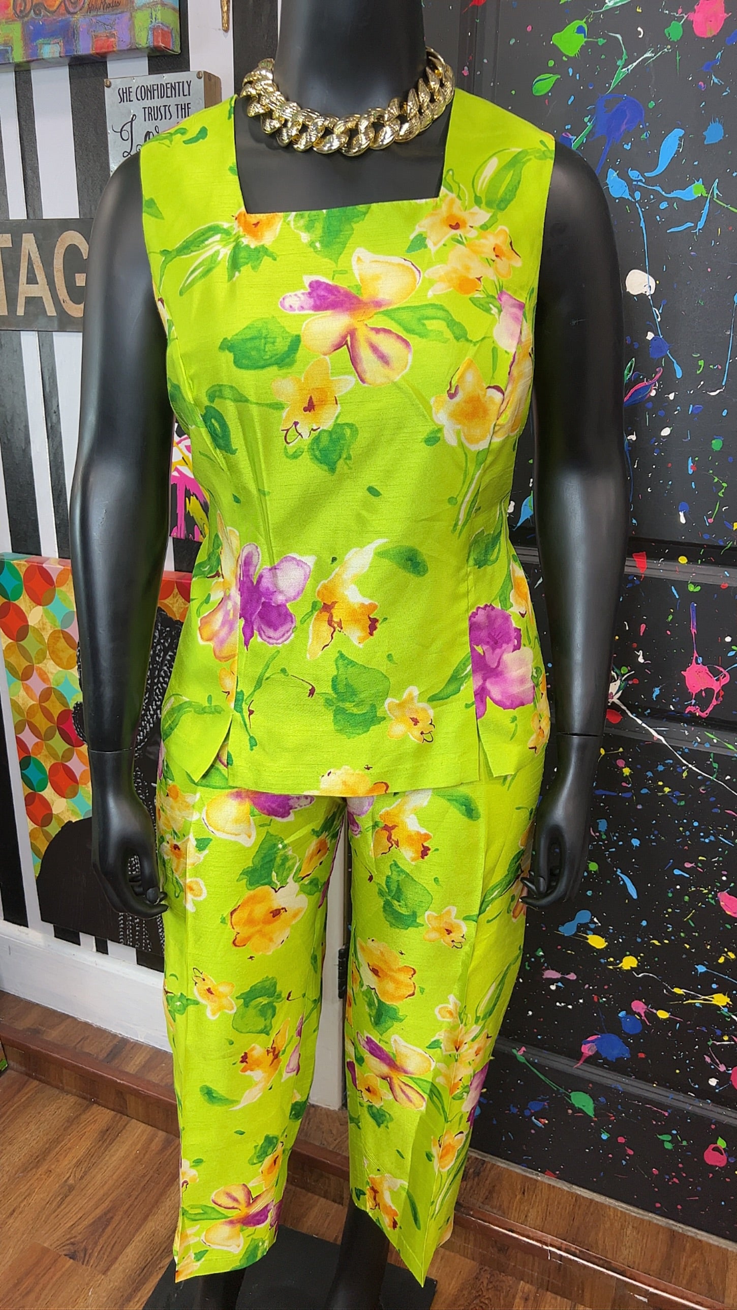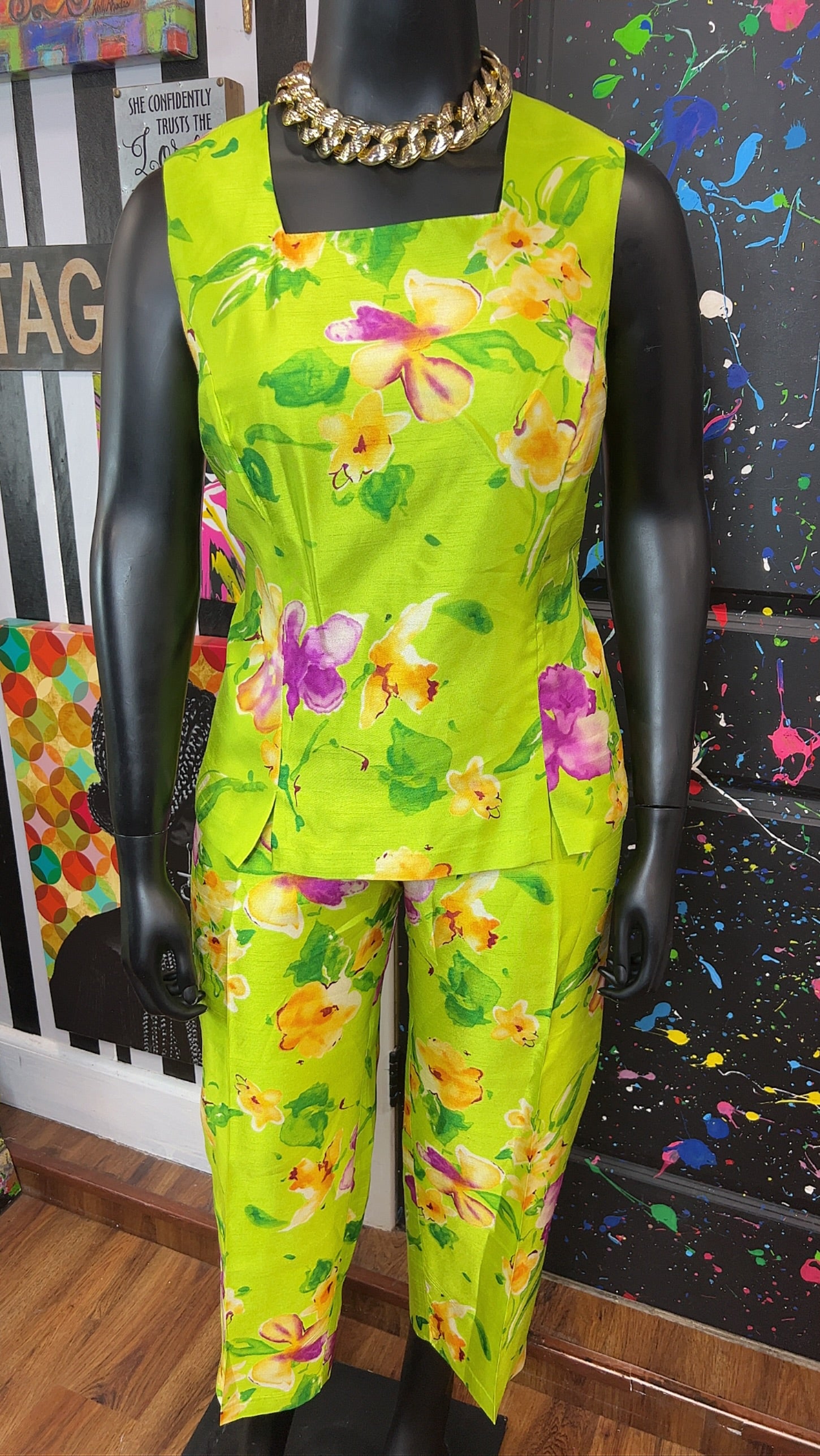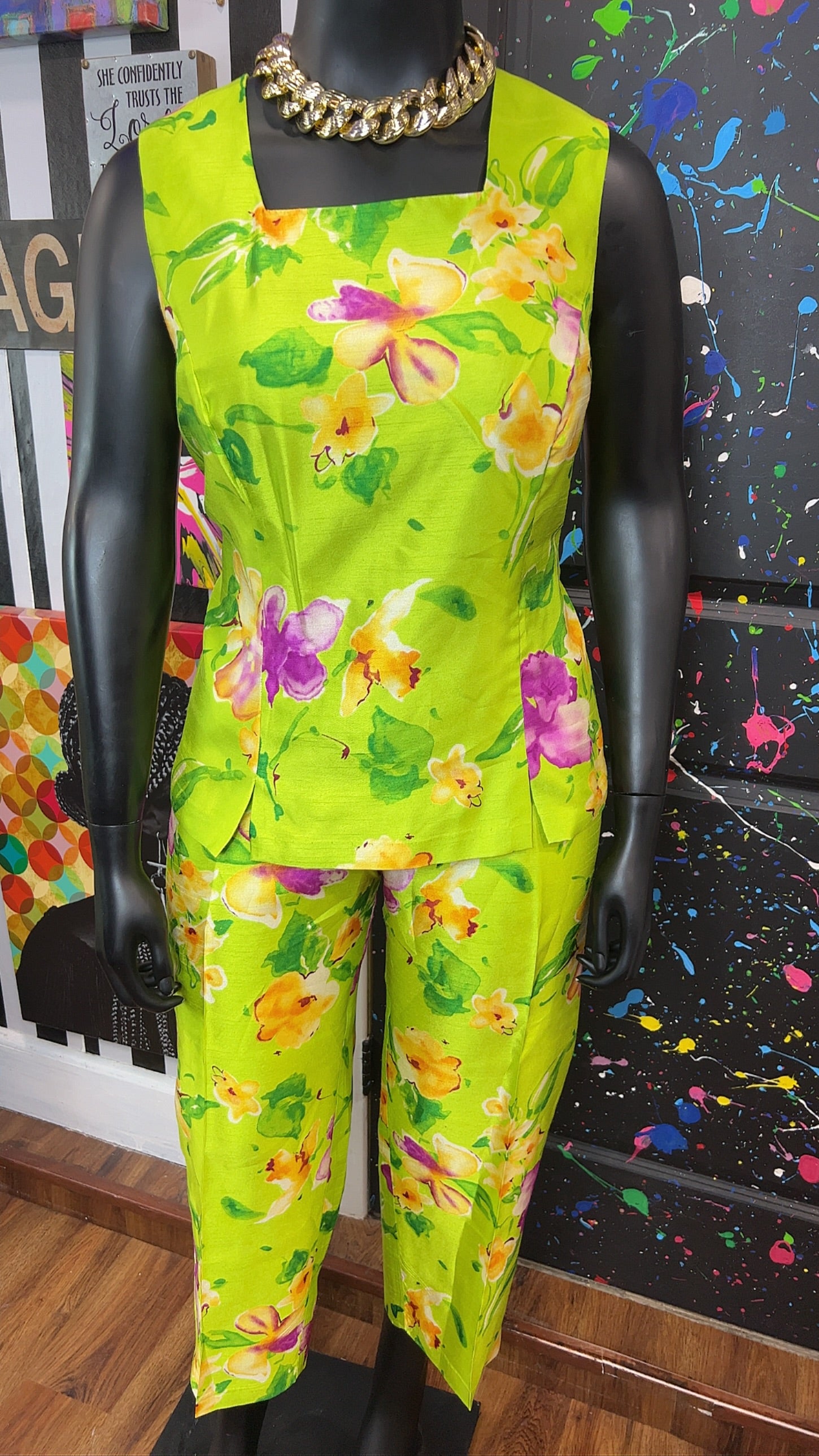 Vintage Green & Floral 3 Piece Pants Set (18W)