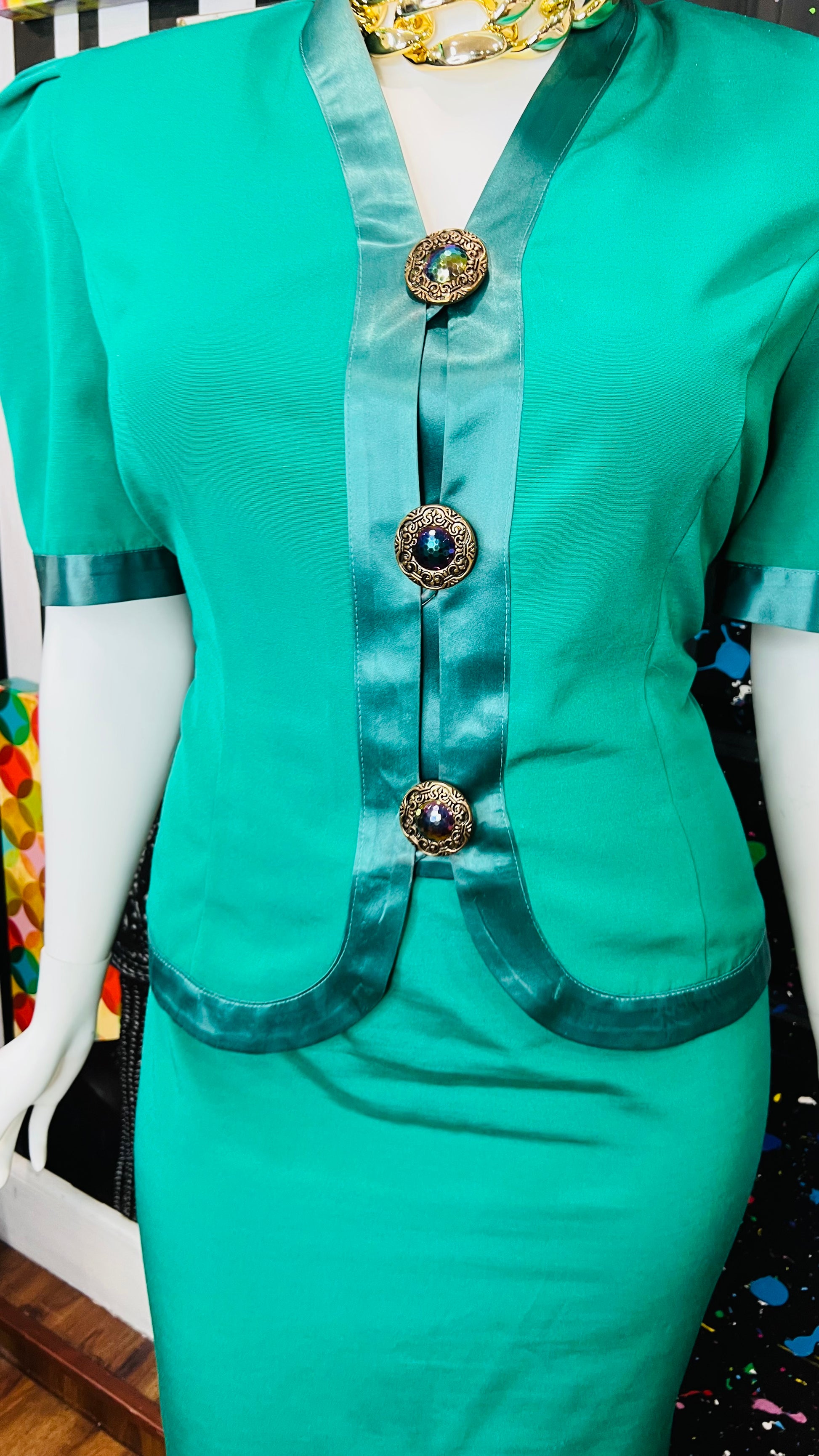 Vintage Green Jewel Button Skirt Set (22 1/2)