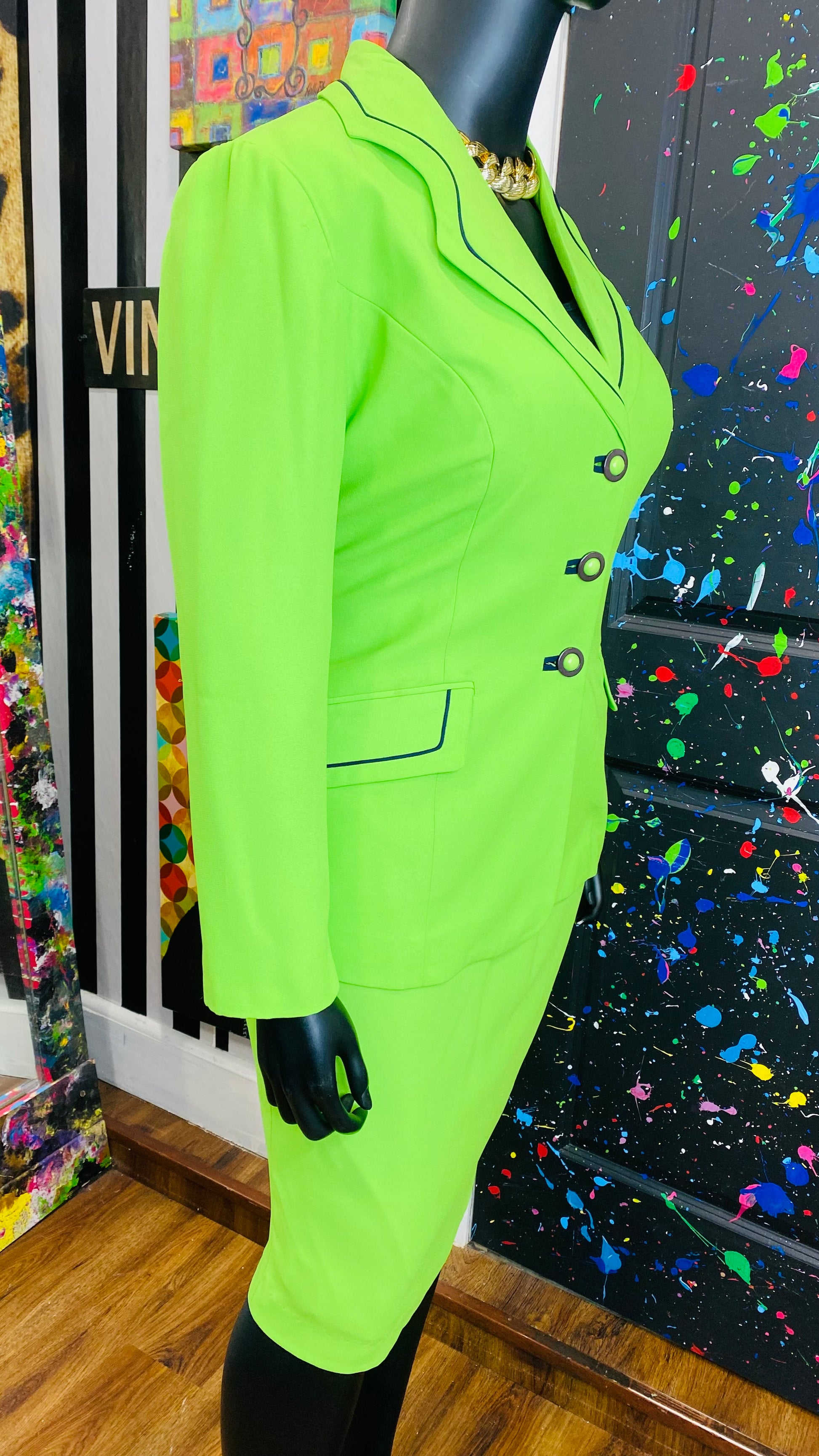 Vintage Green & Navy Blue Trim Skirt Suit (14W)