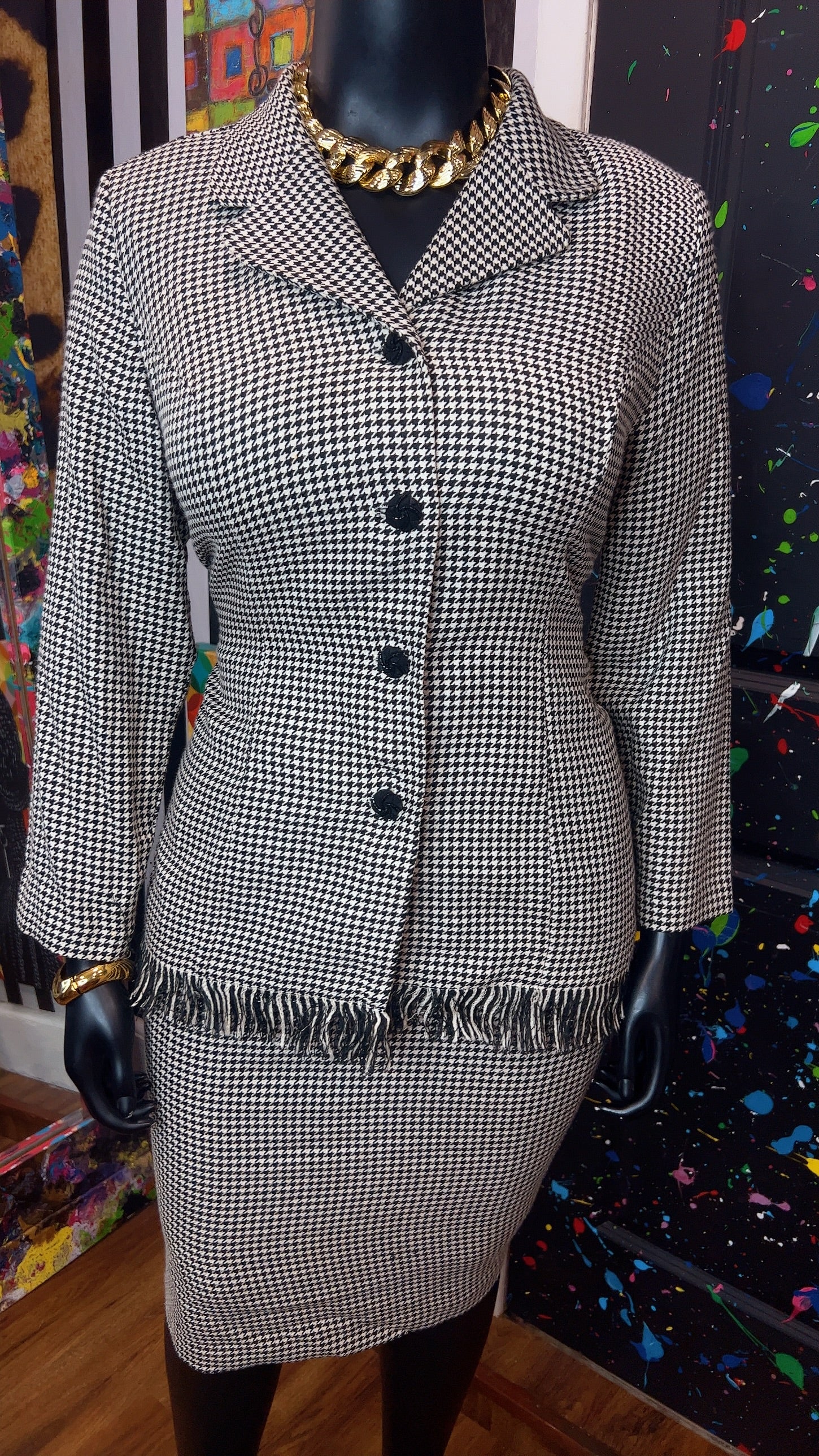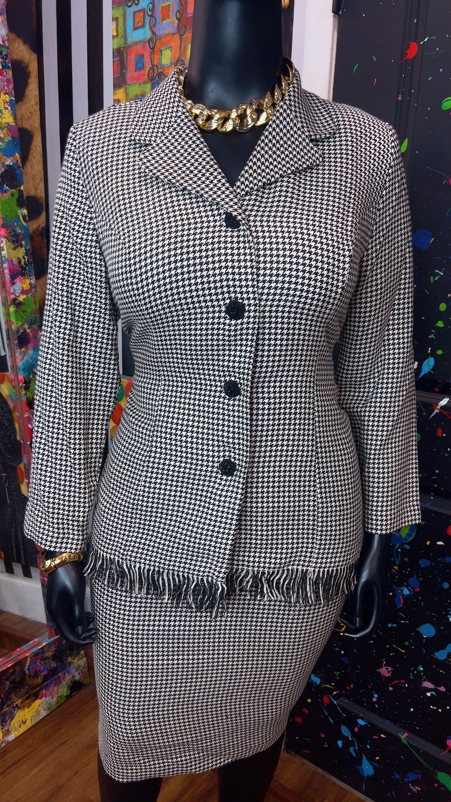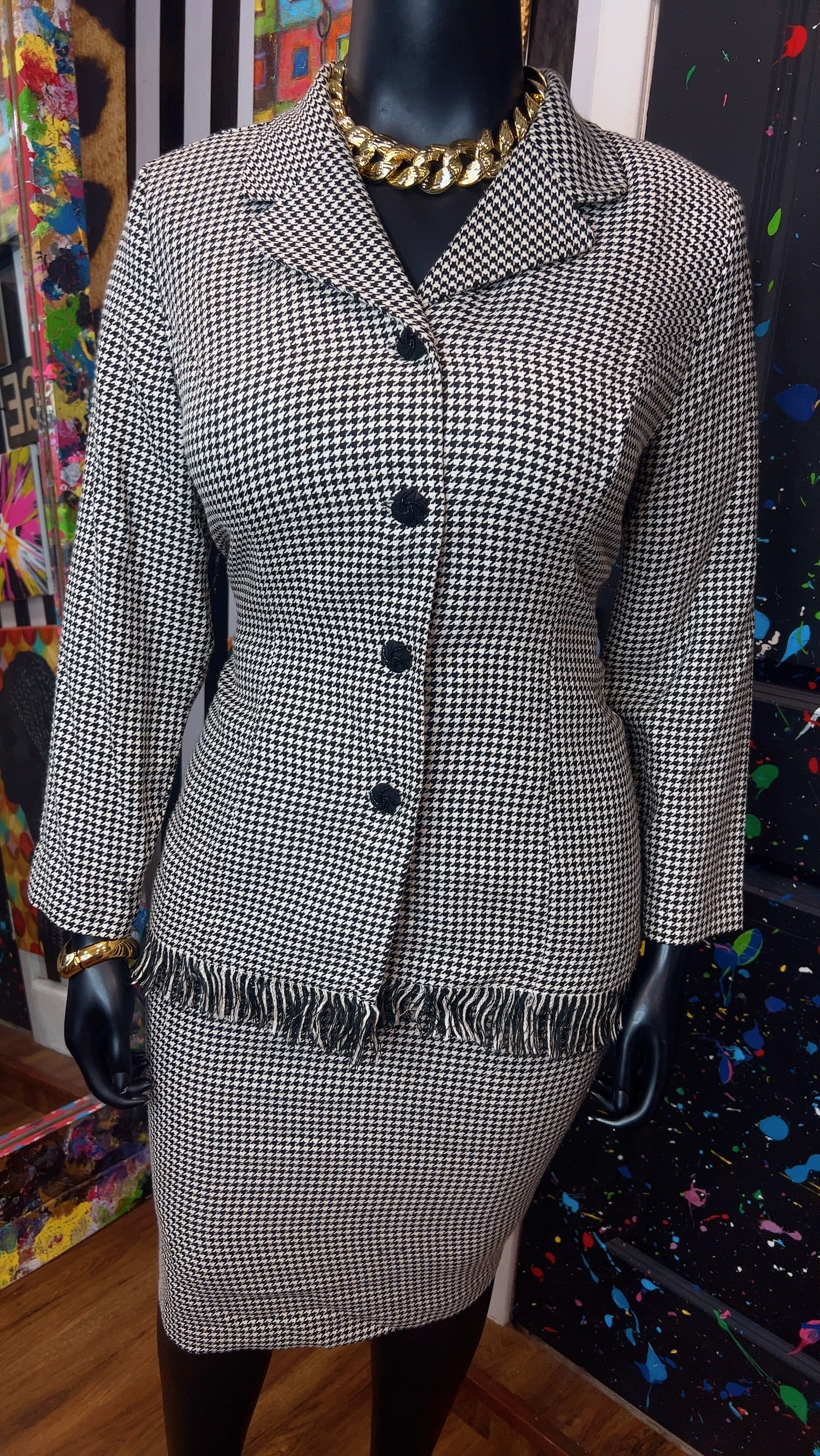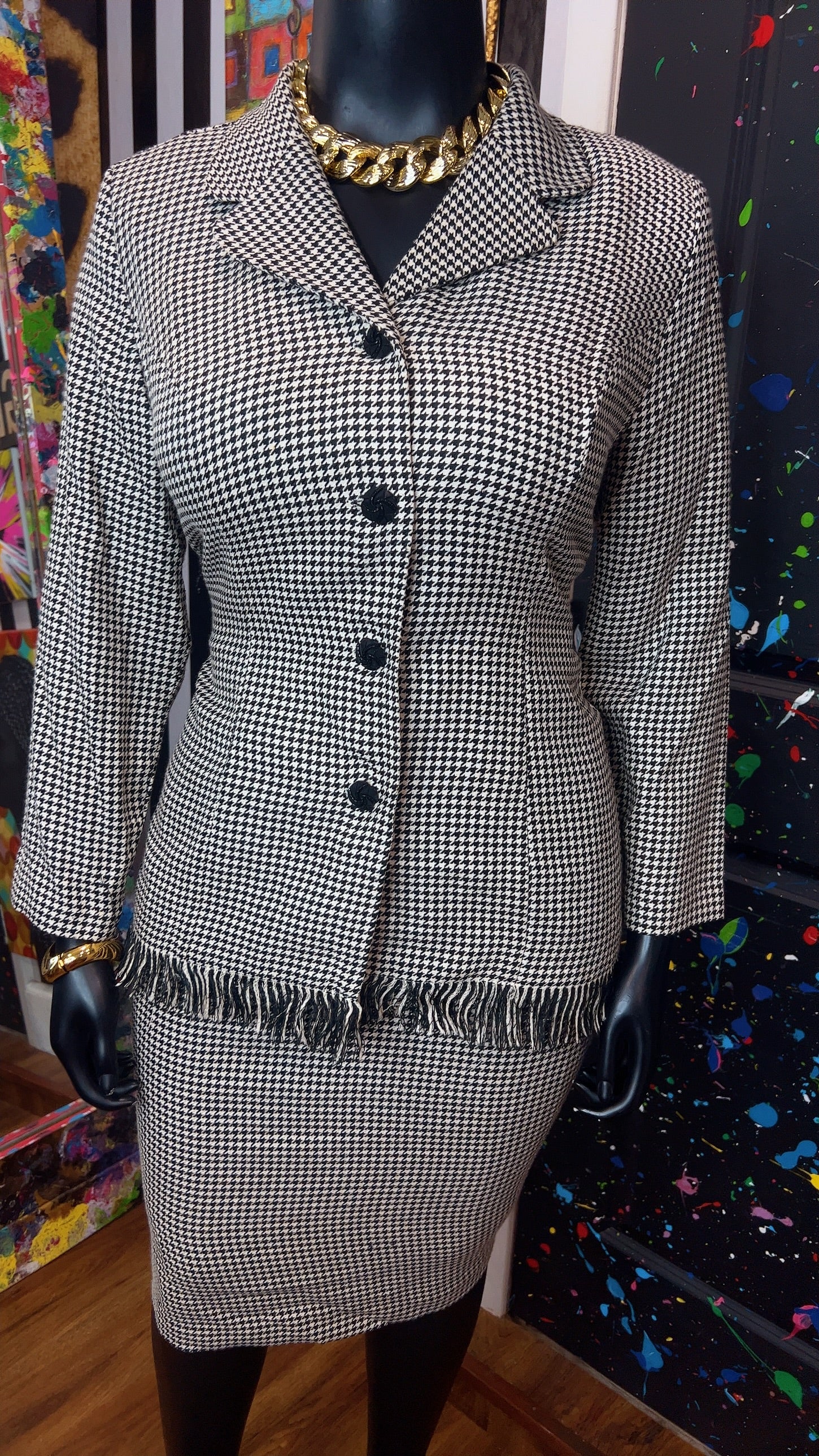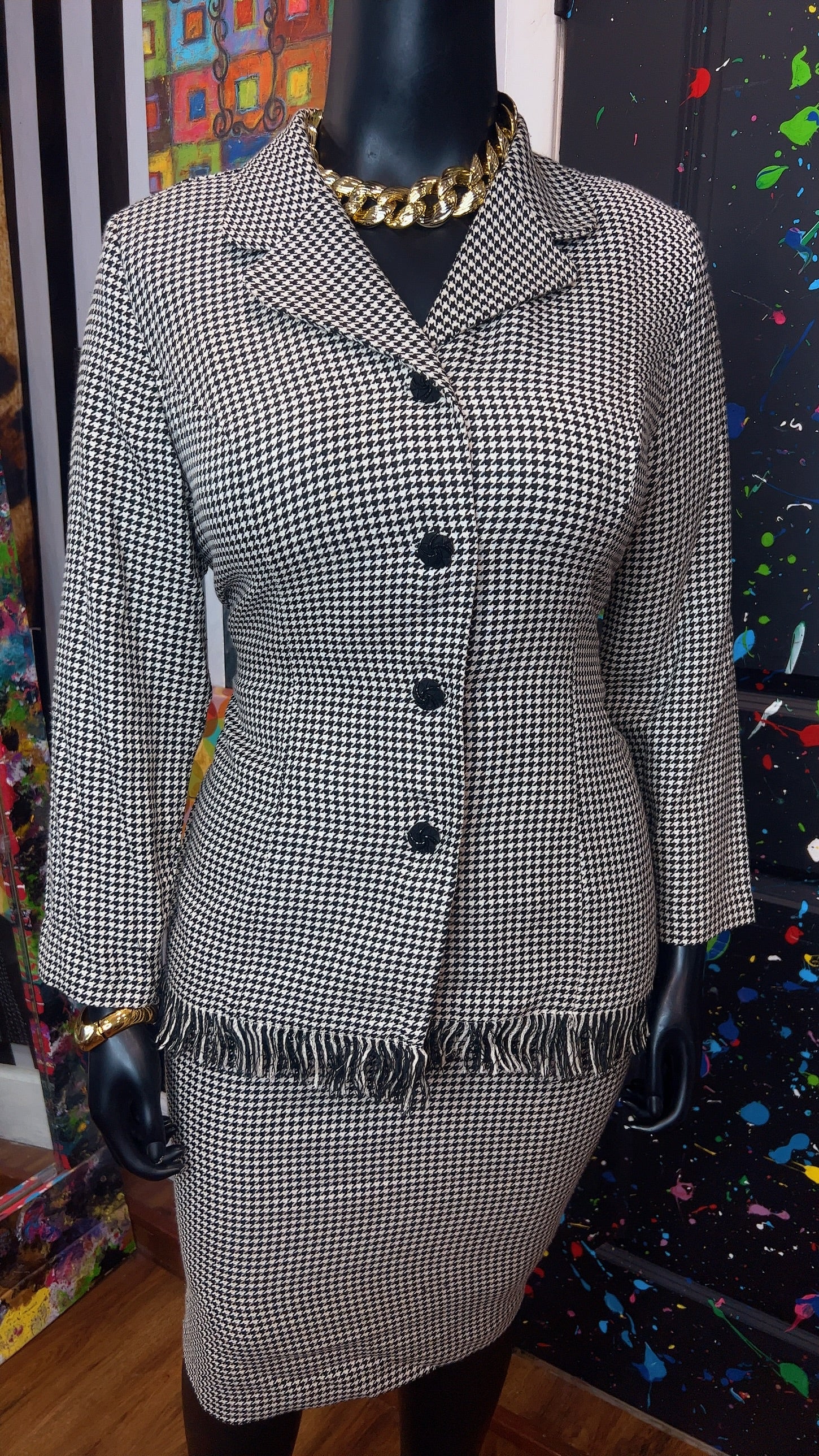 Vintage Houndstooth Black & White Skirt Suit (16W)