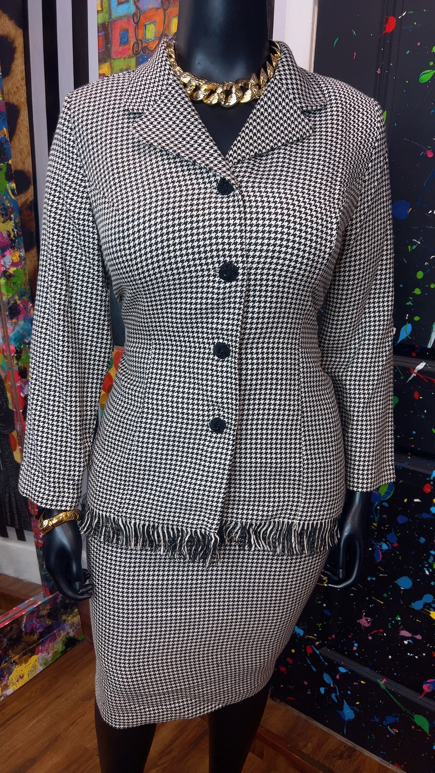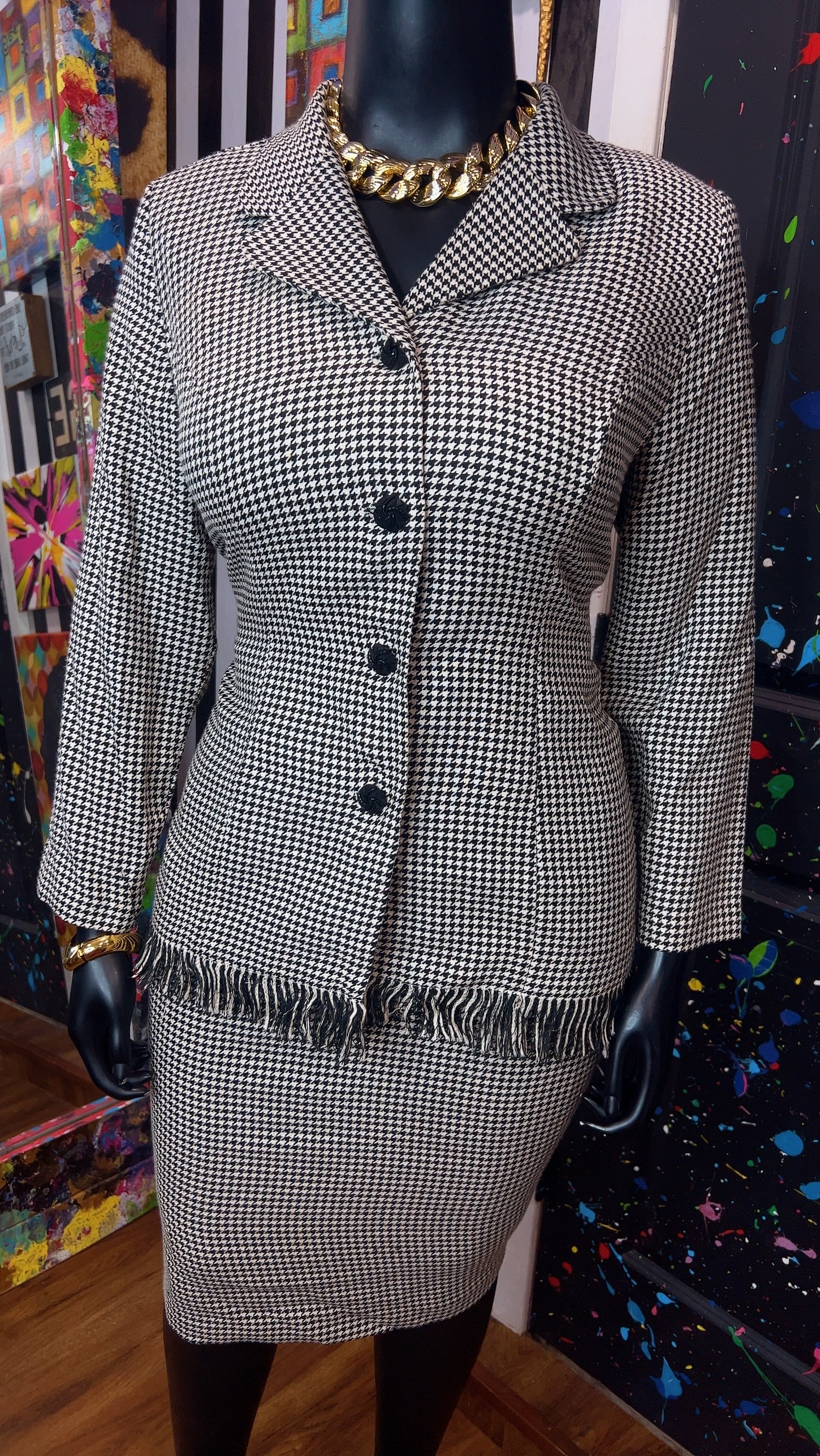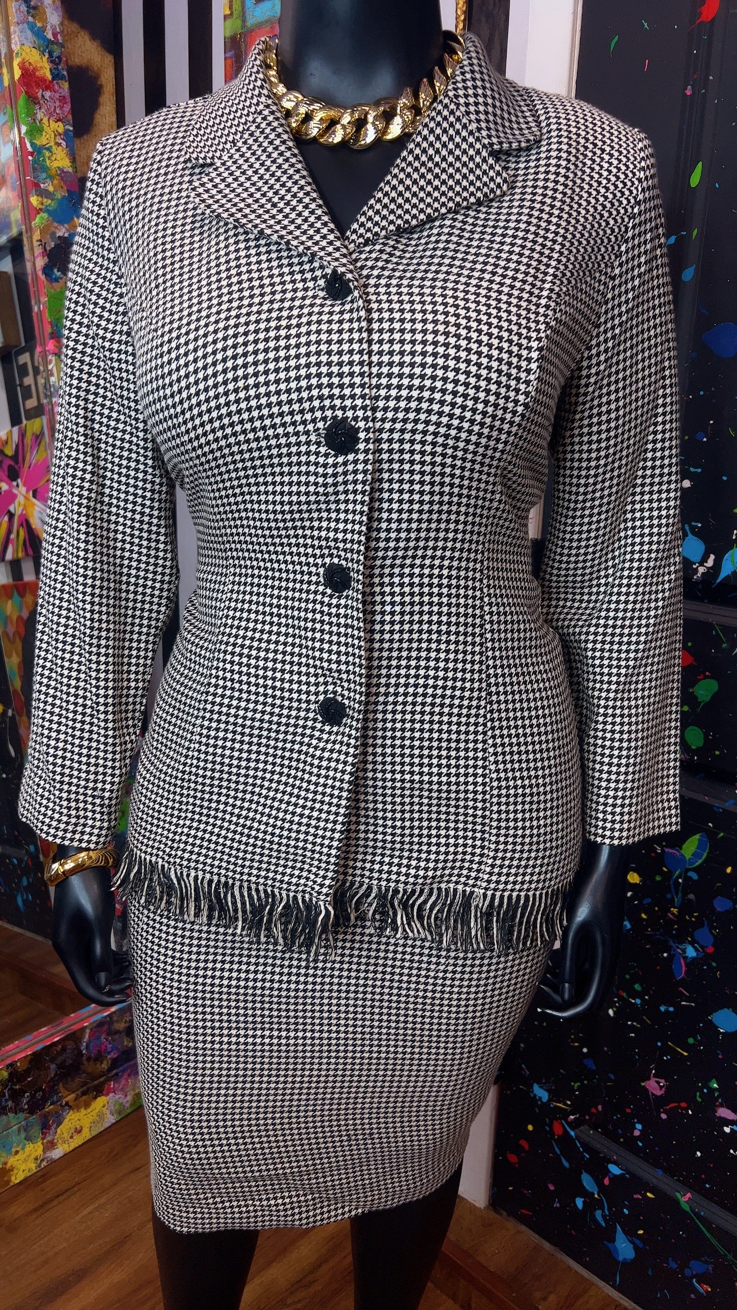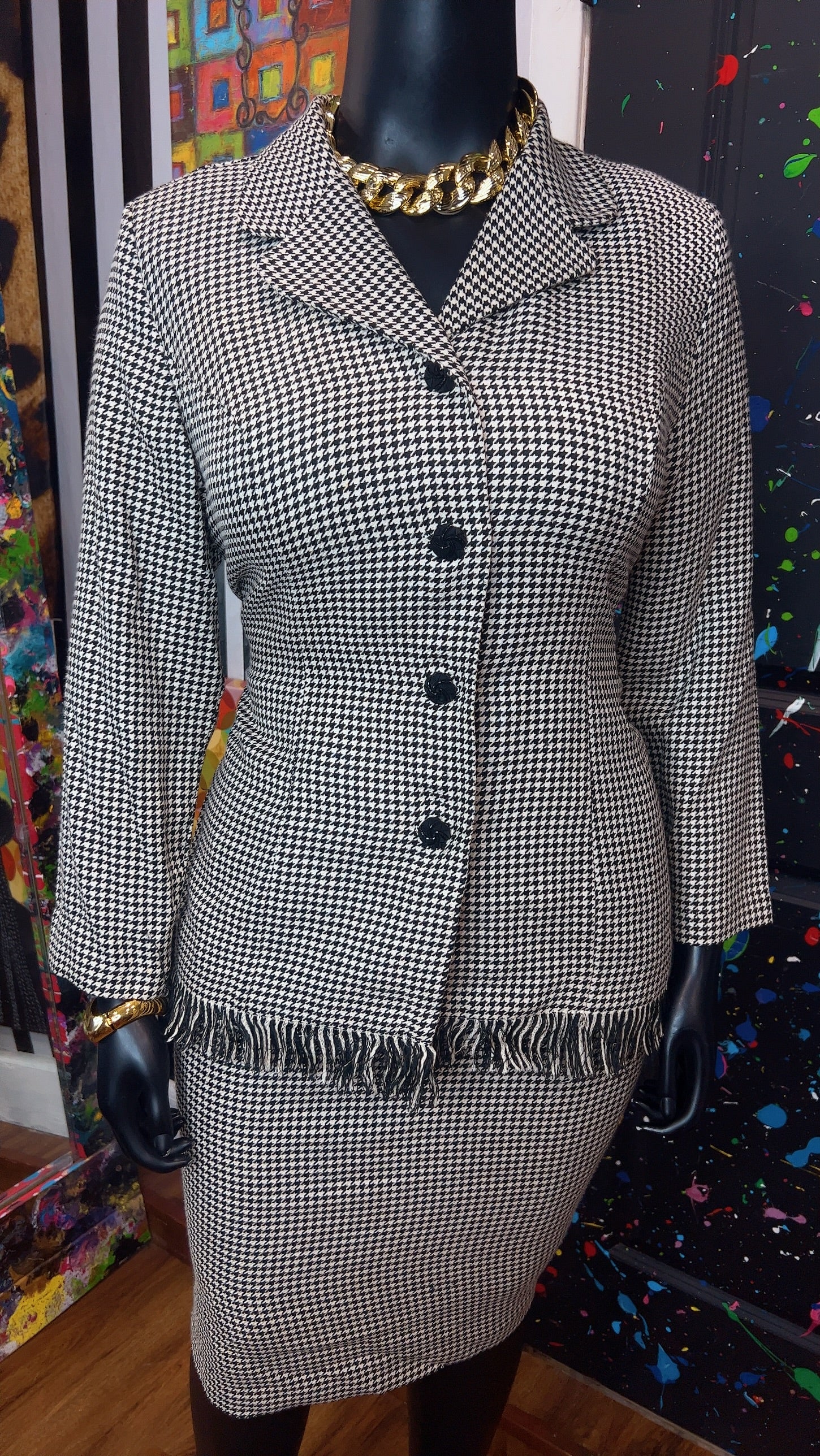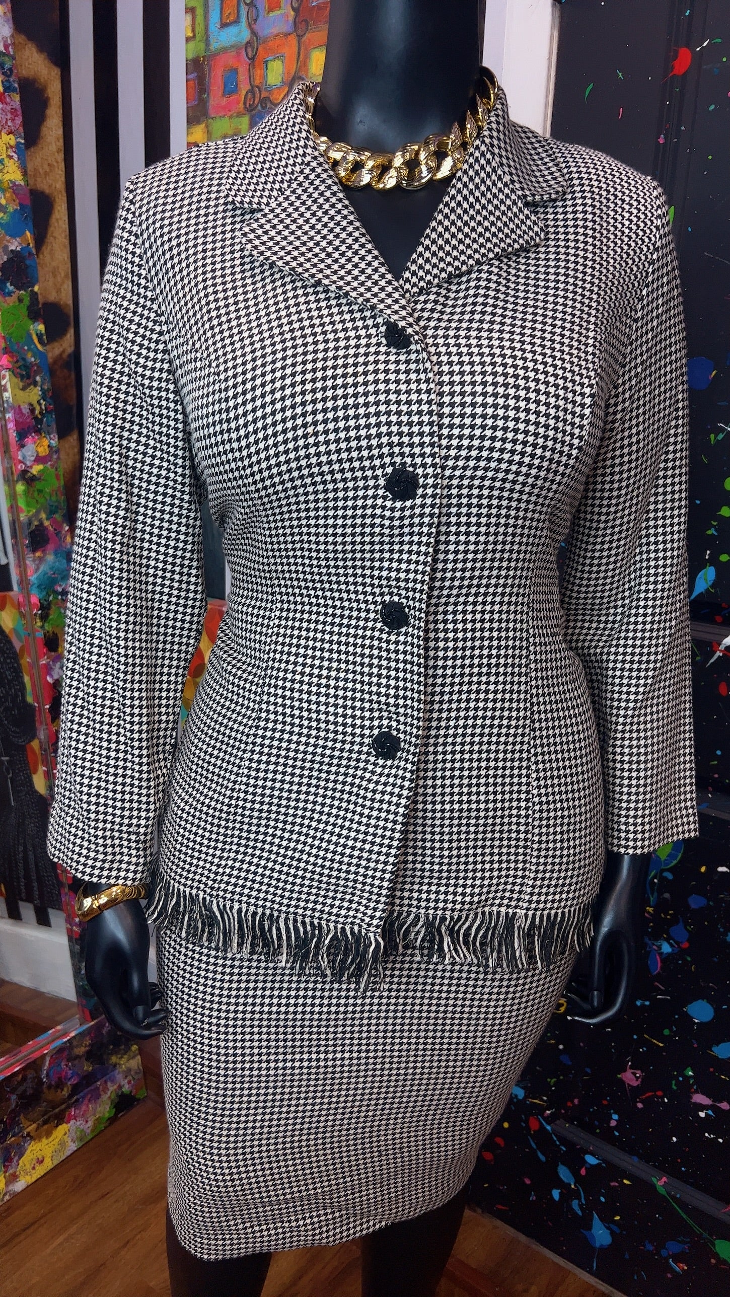 Vintage Houndstooth Black & White Skirt Suit (16W)