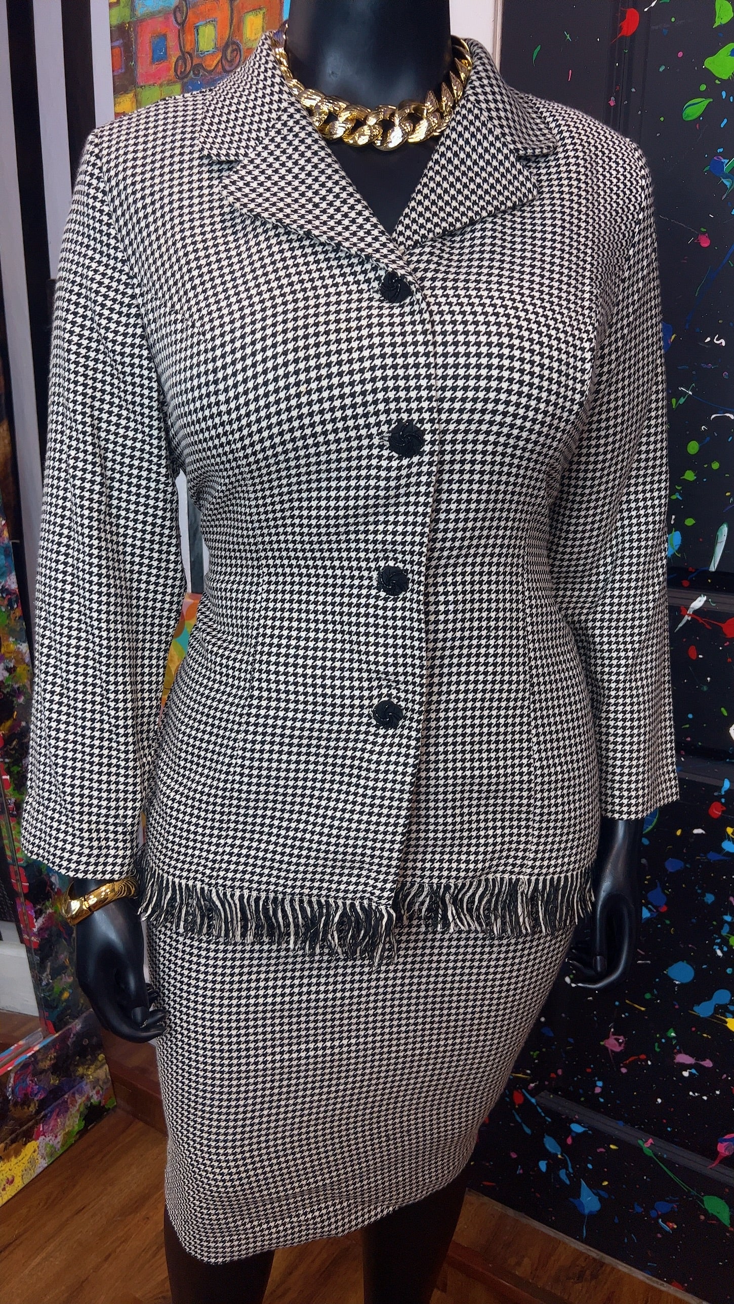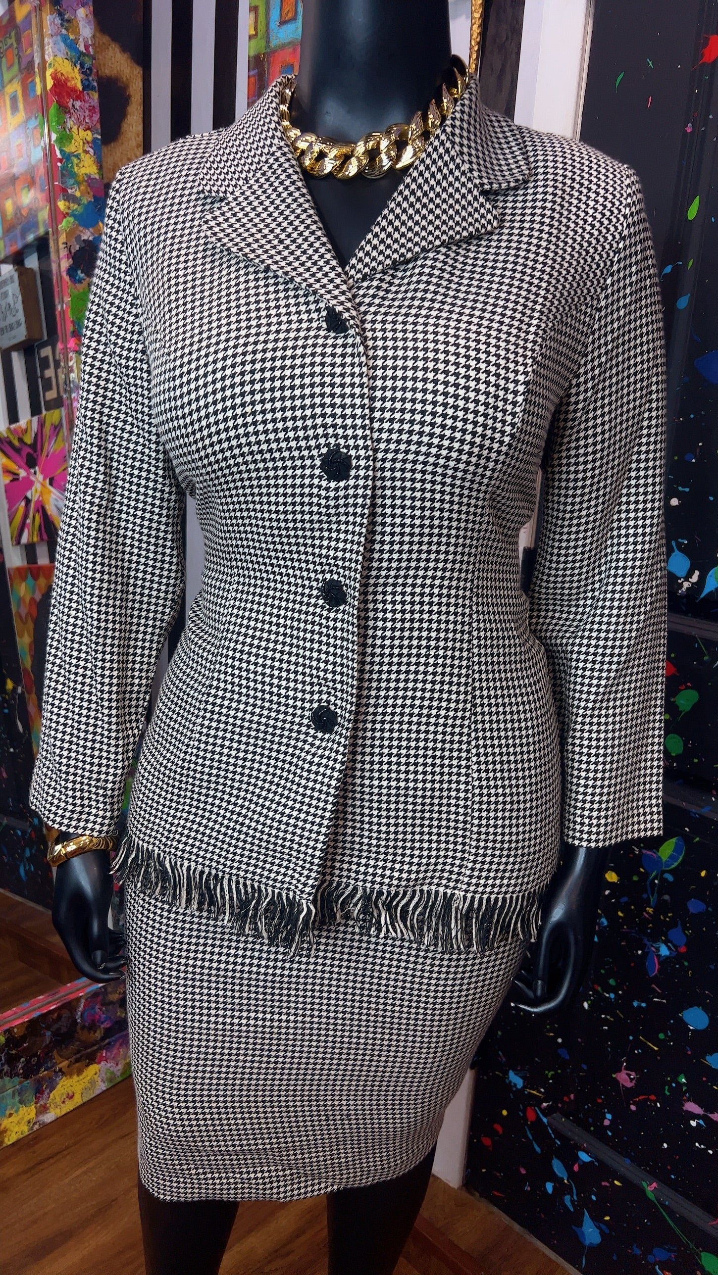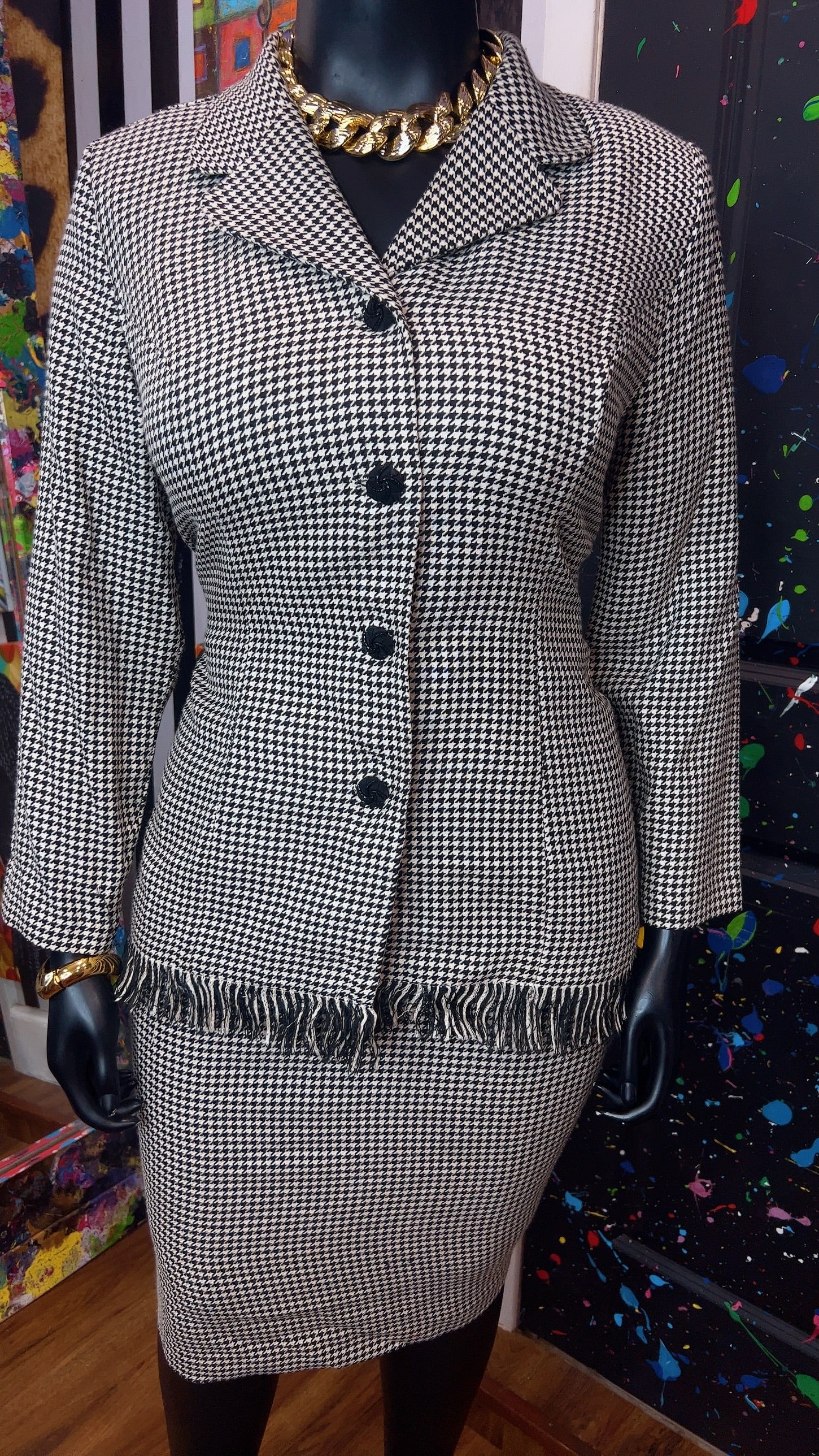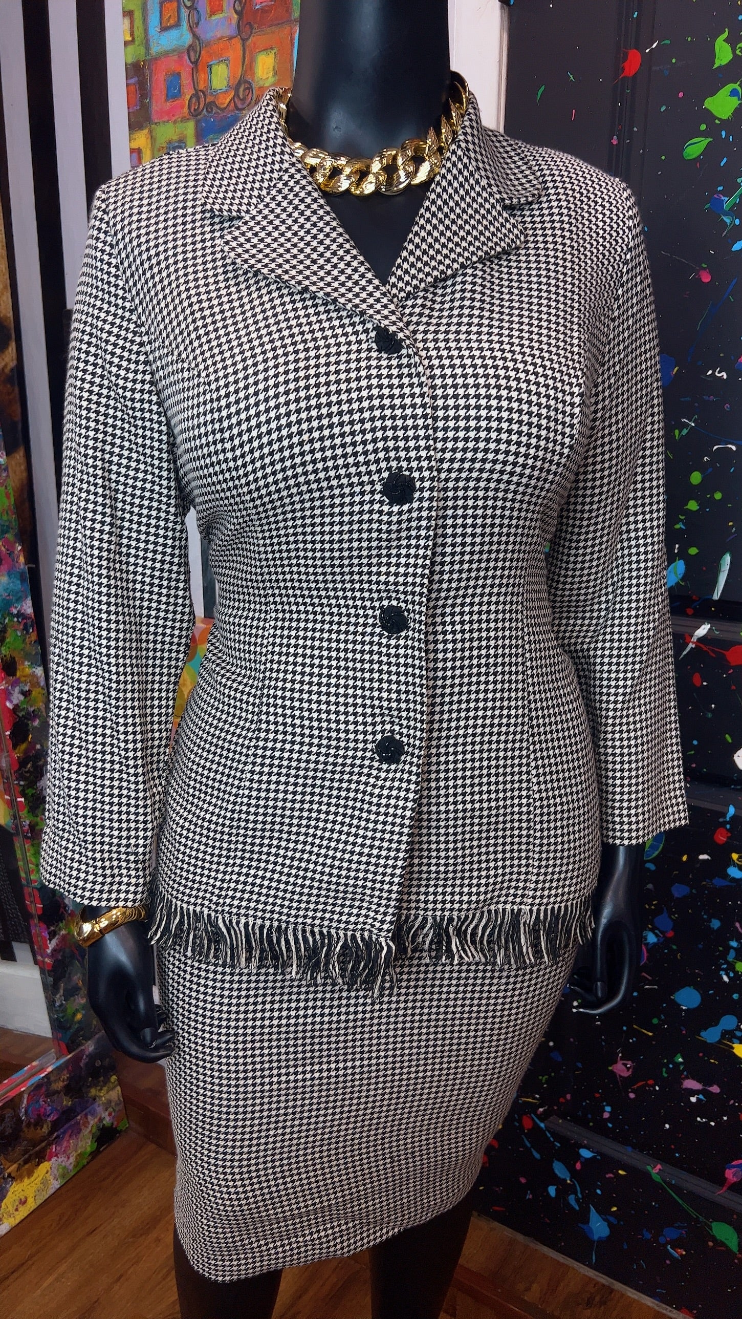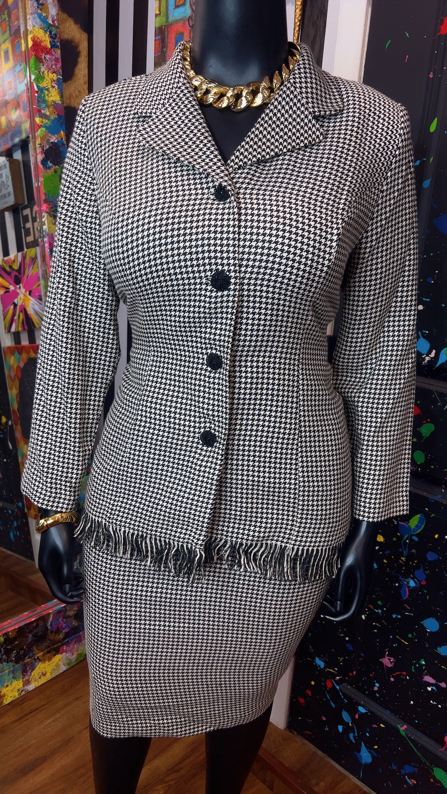 Vintage Houndstooth Black & White Skirt Suit (16W)