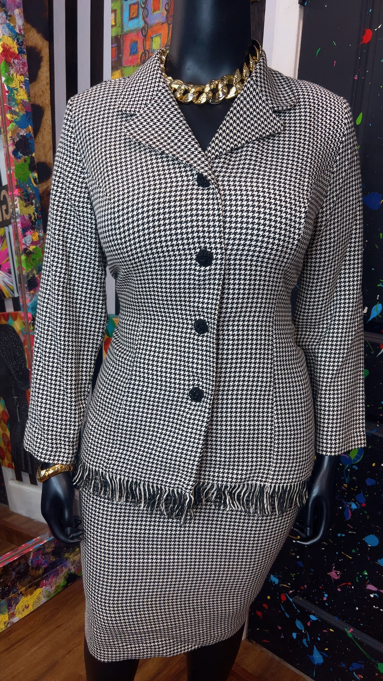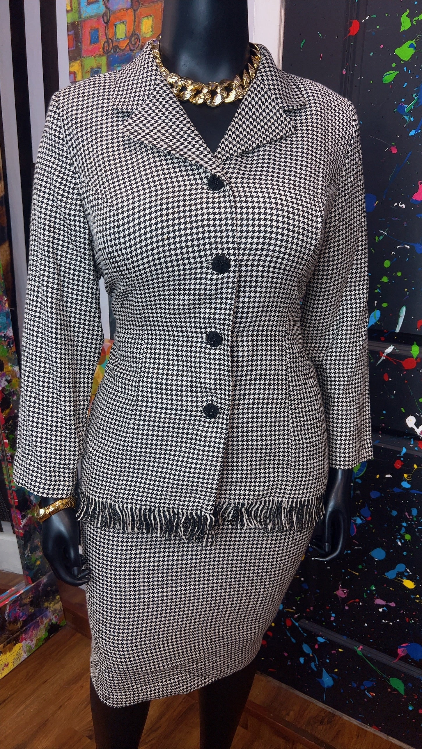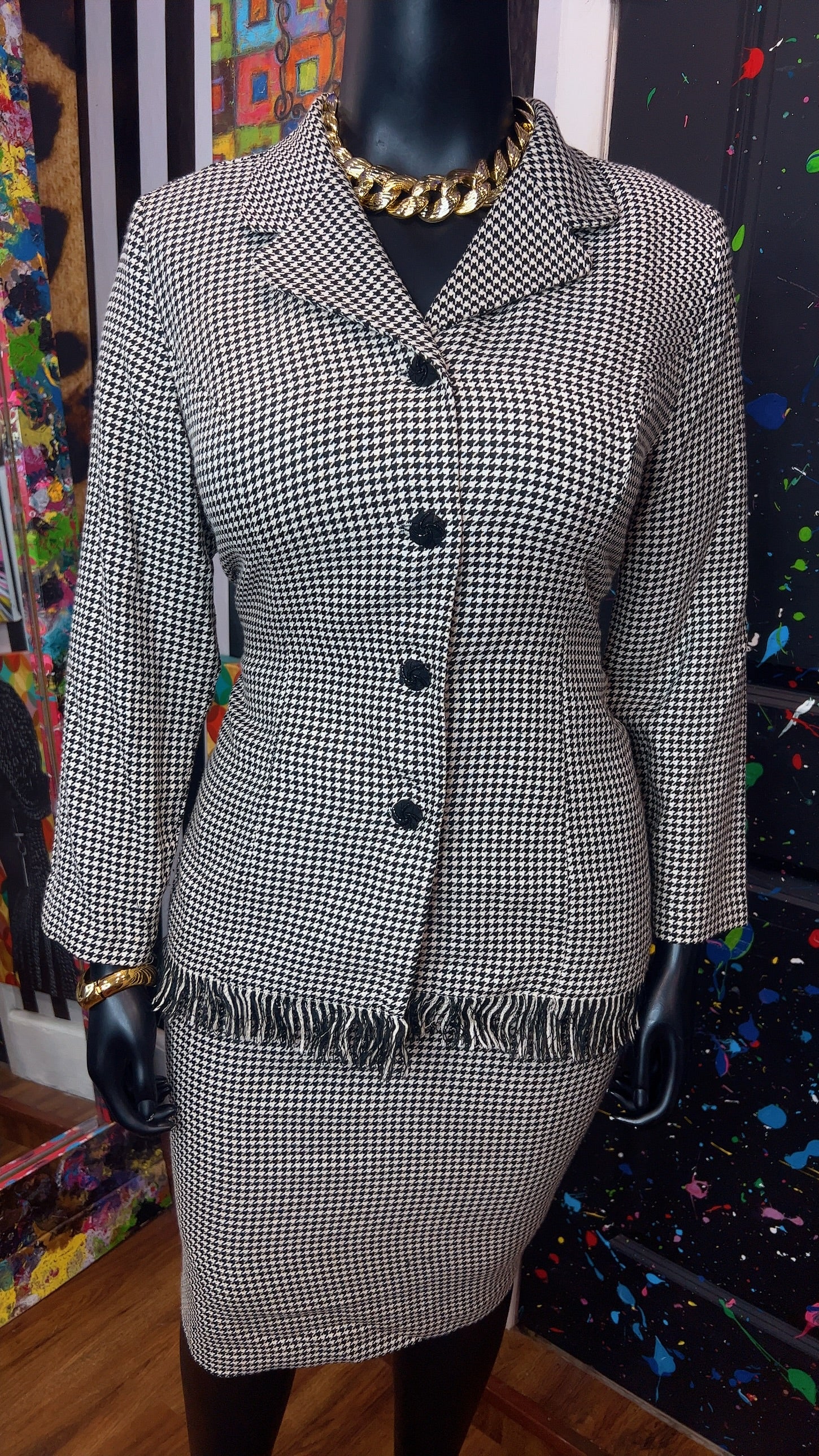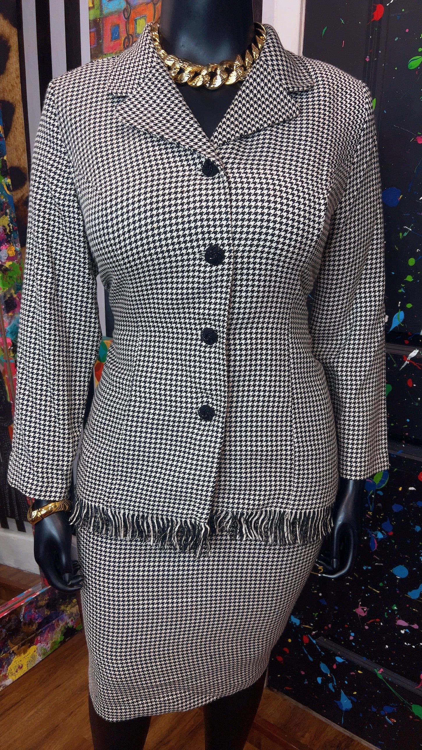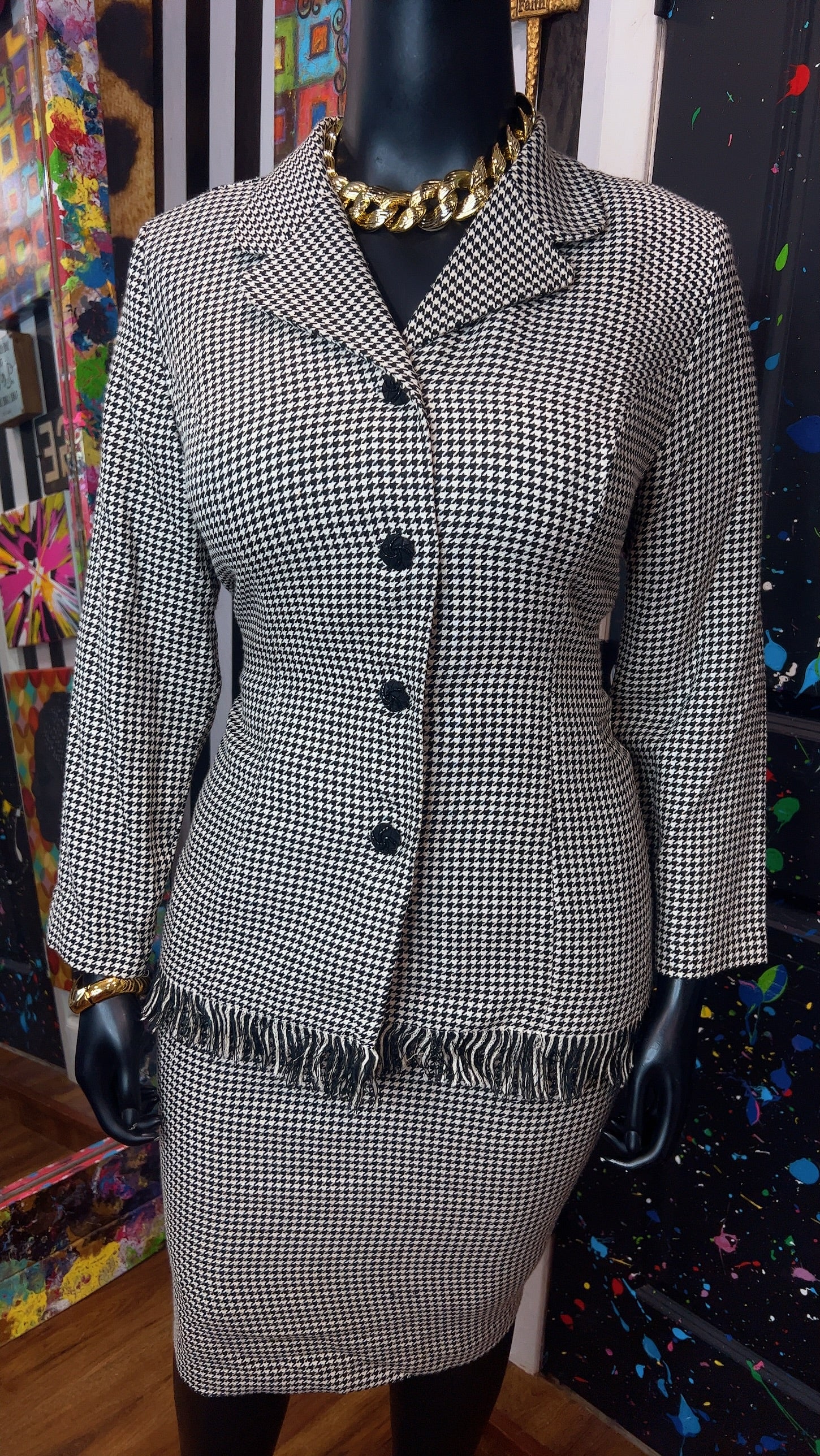 Vintage Houndstooth Black & White Skirt Suit (16W)