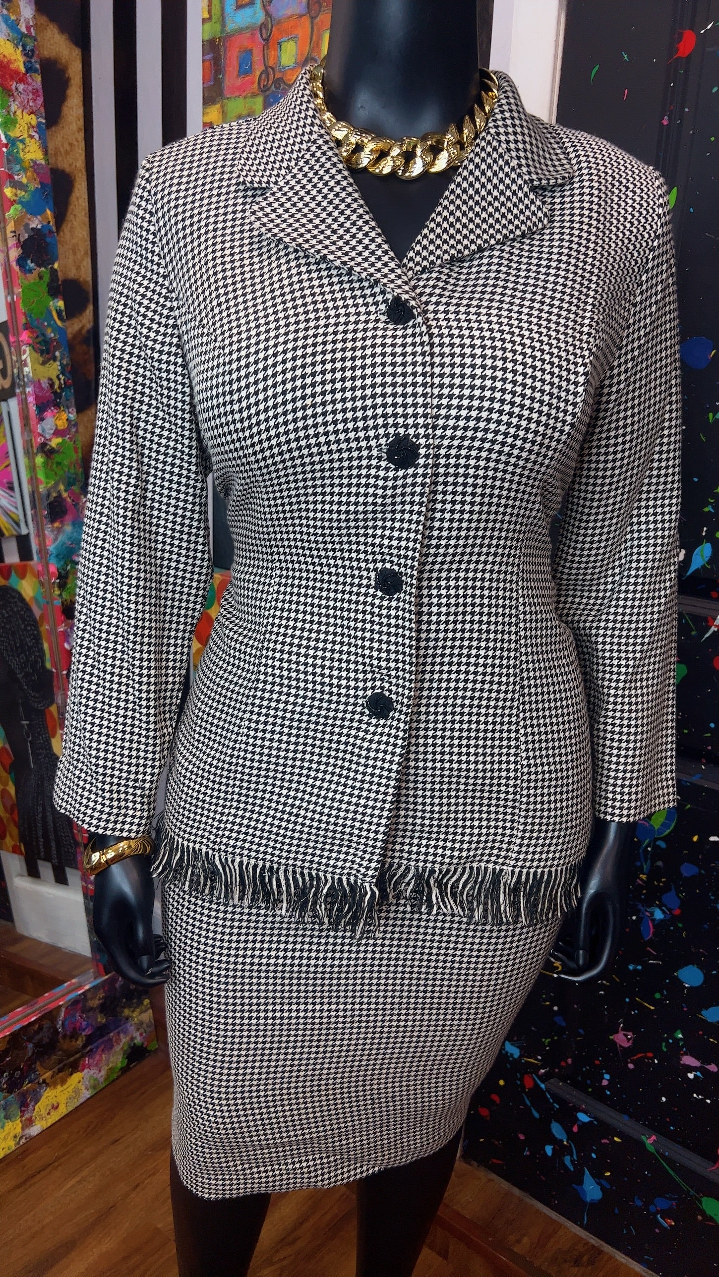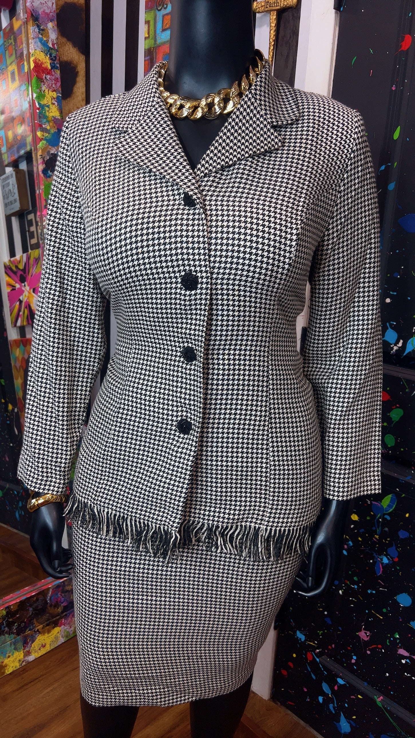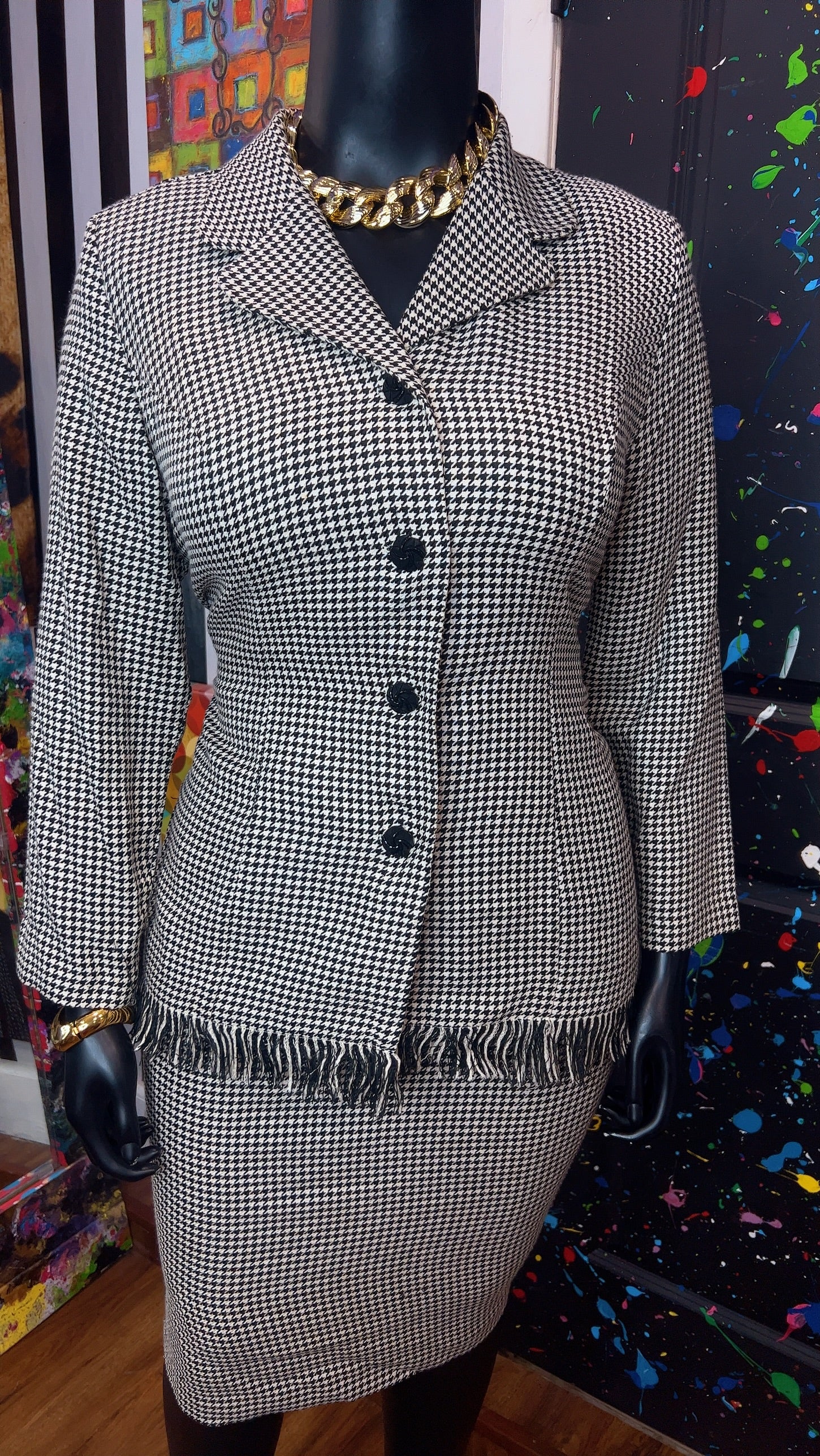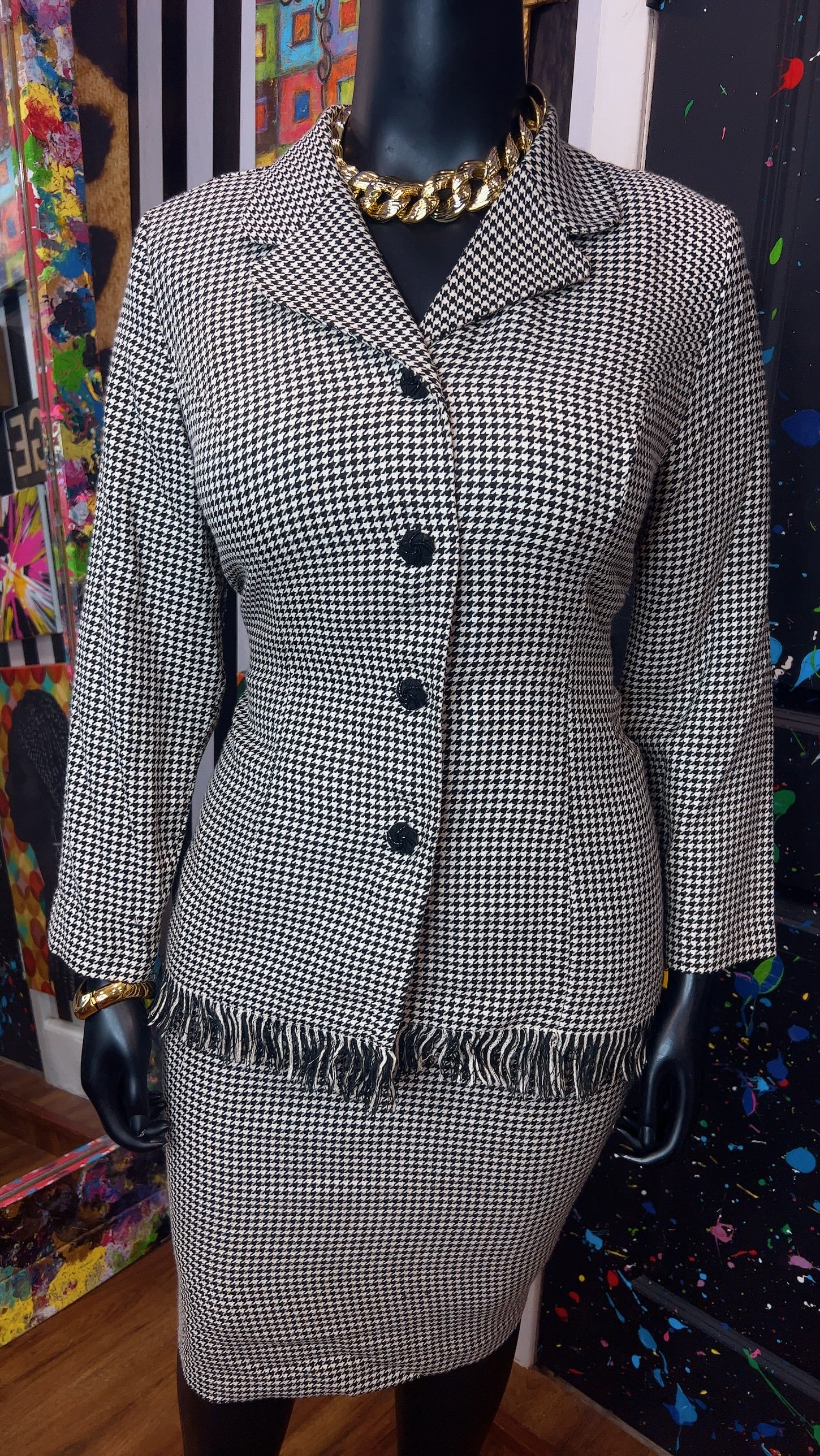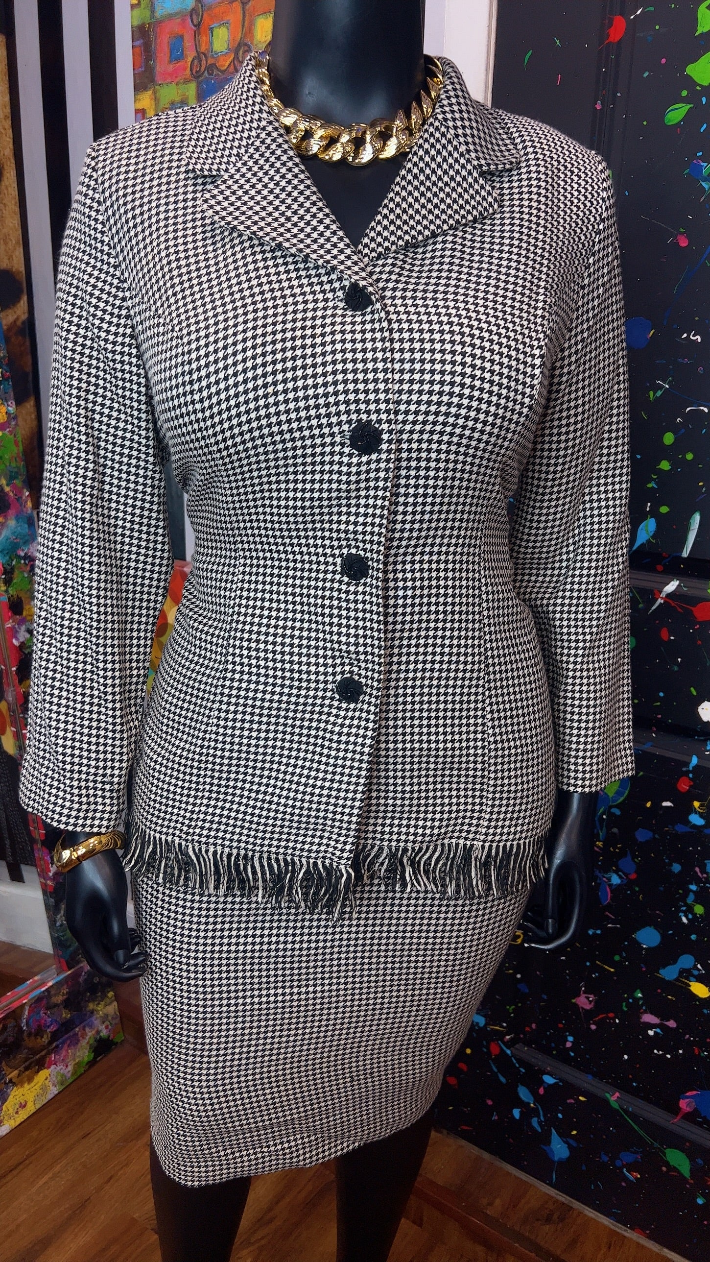 Vintage Houndstooth Black & White Skirt Suit (16W)