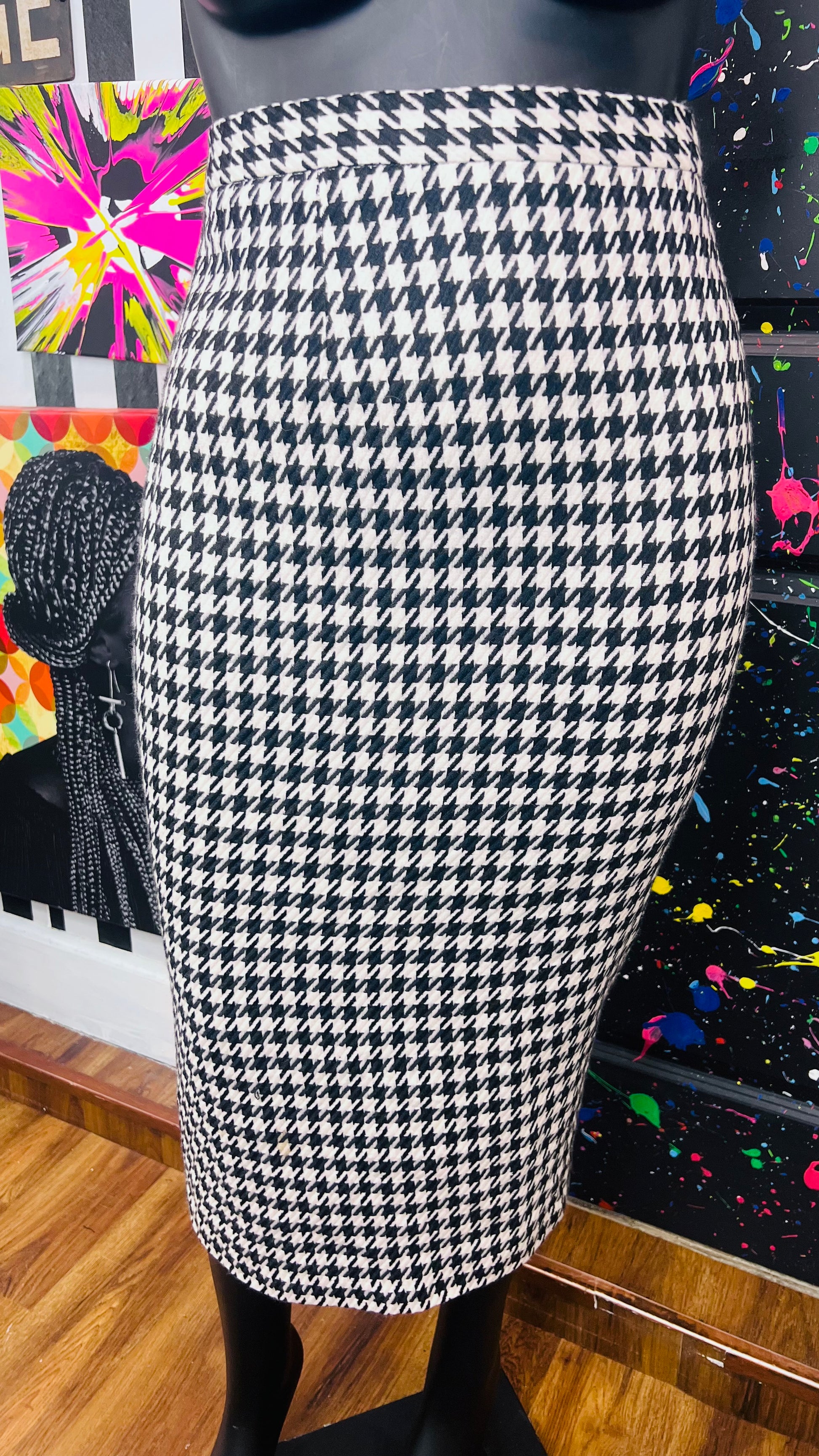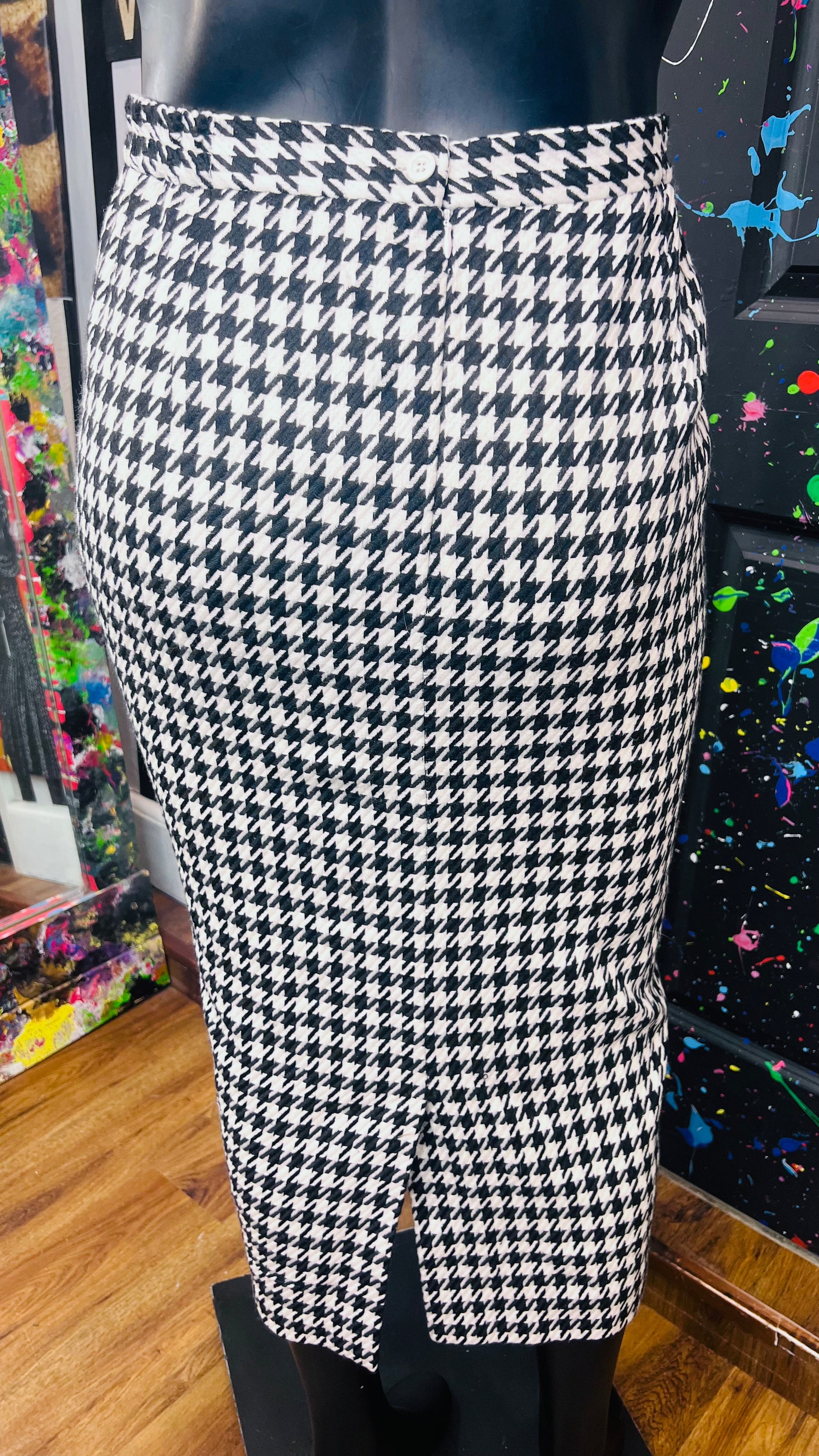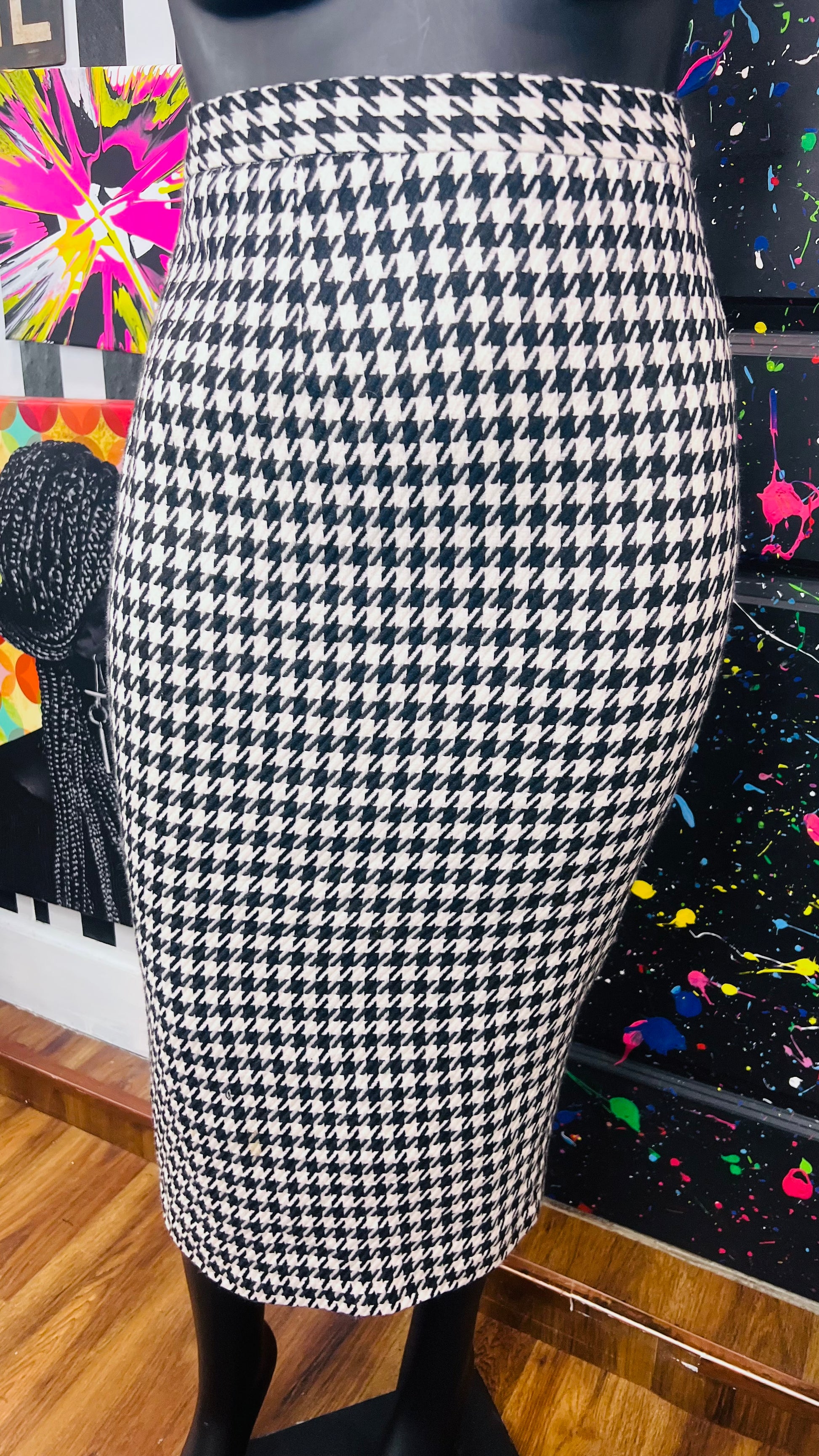 Vintage Houndstooth Polyester & Wool Skirt (20W)