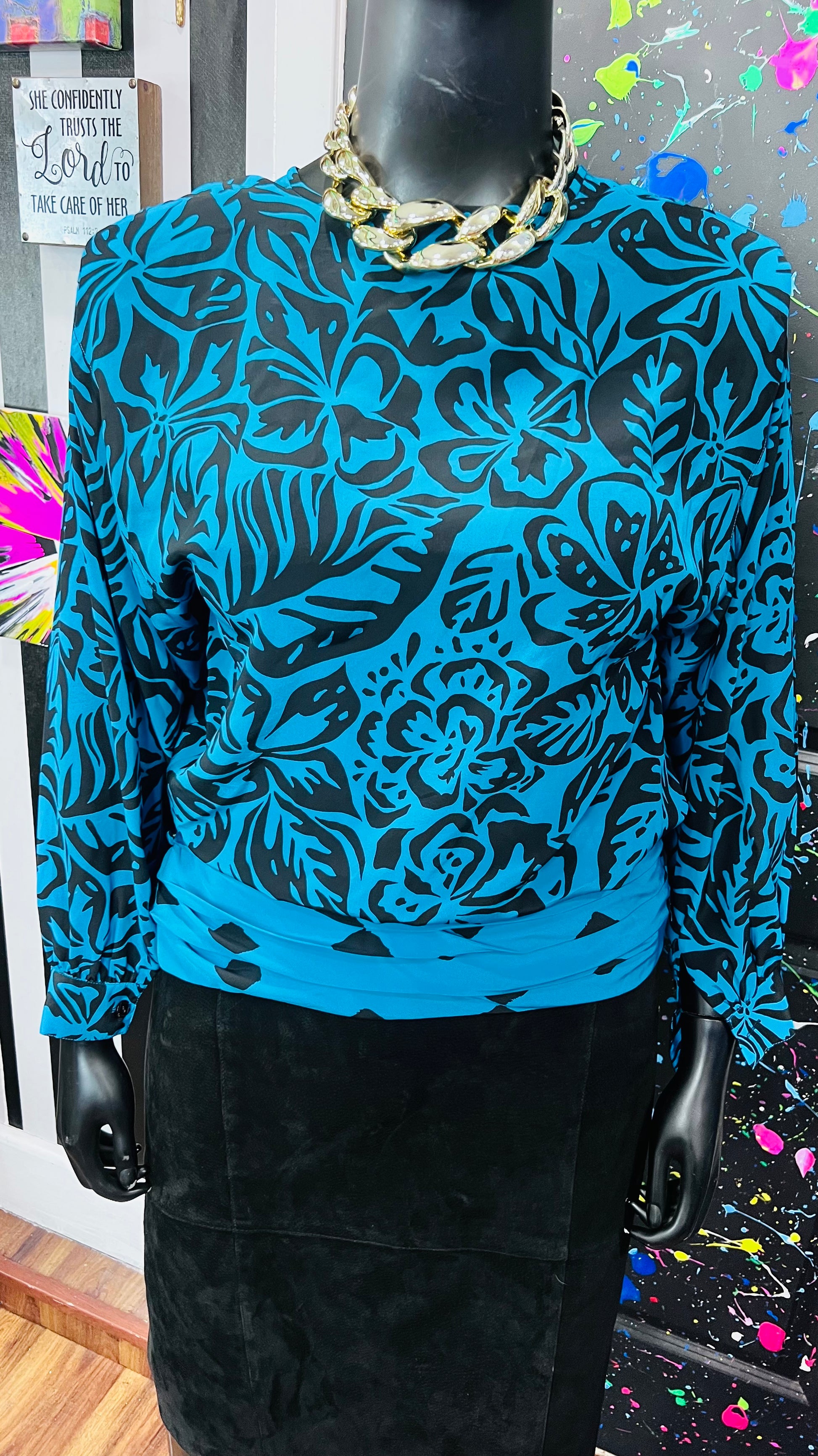 Vintage Mix Print Blue & Black Blouse (14)
