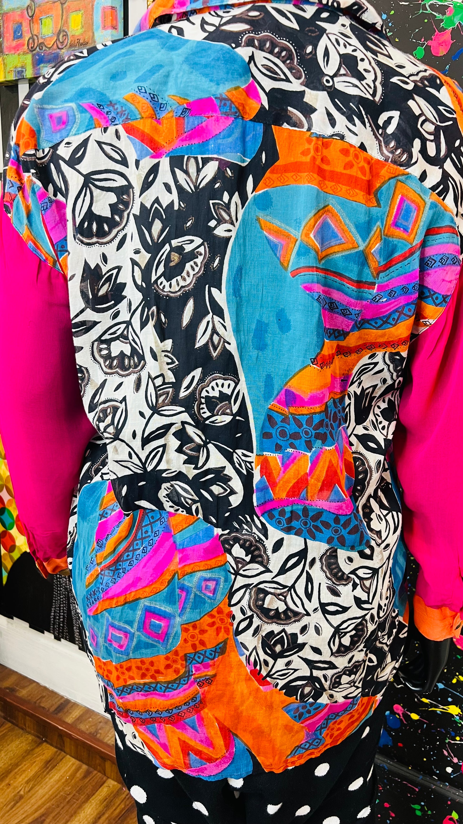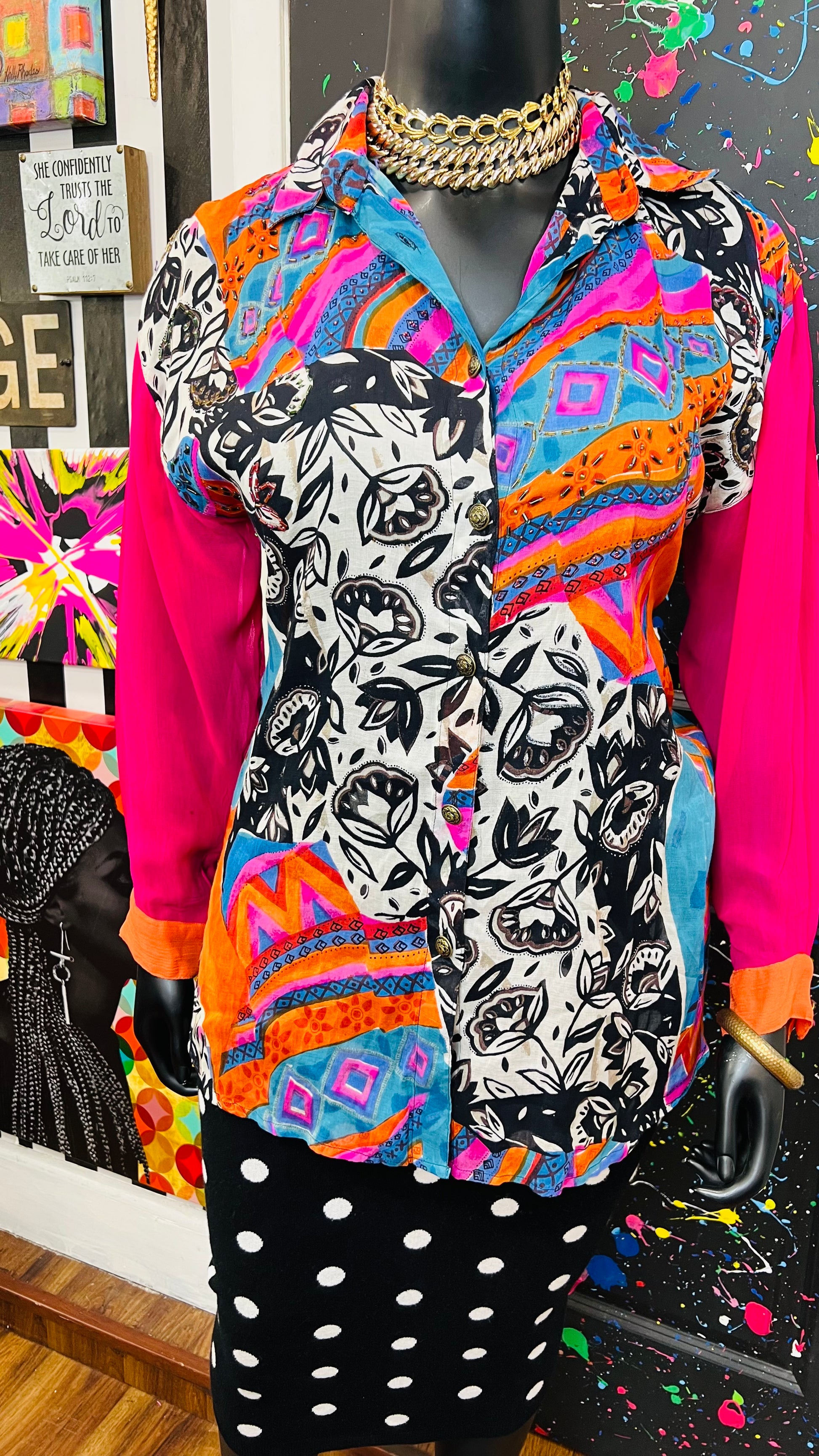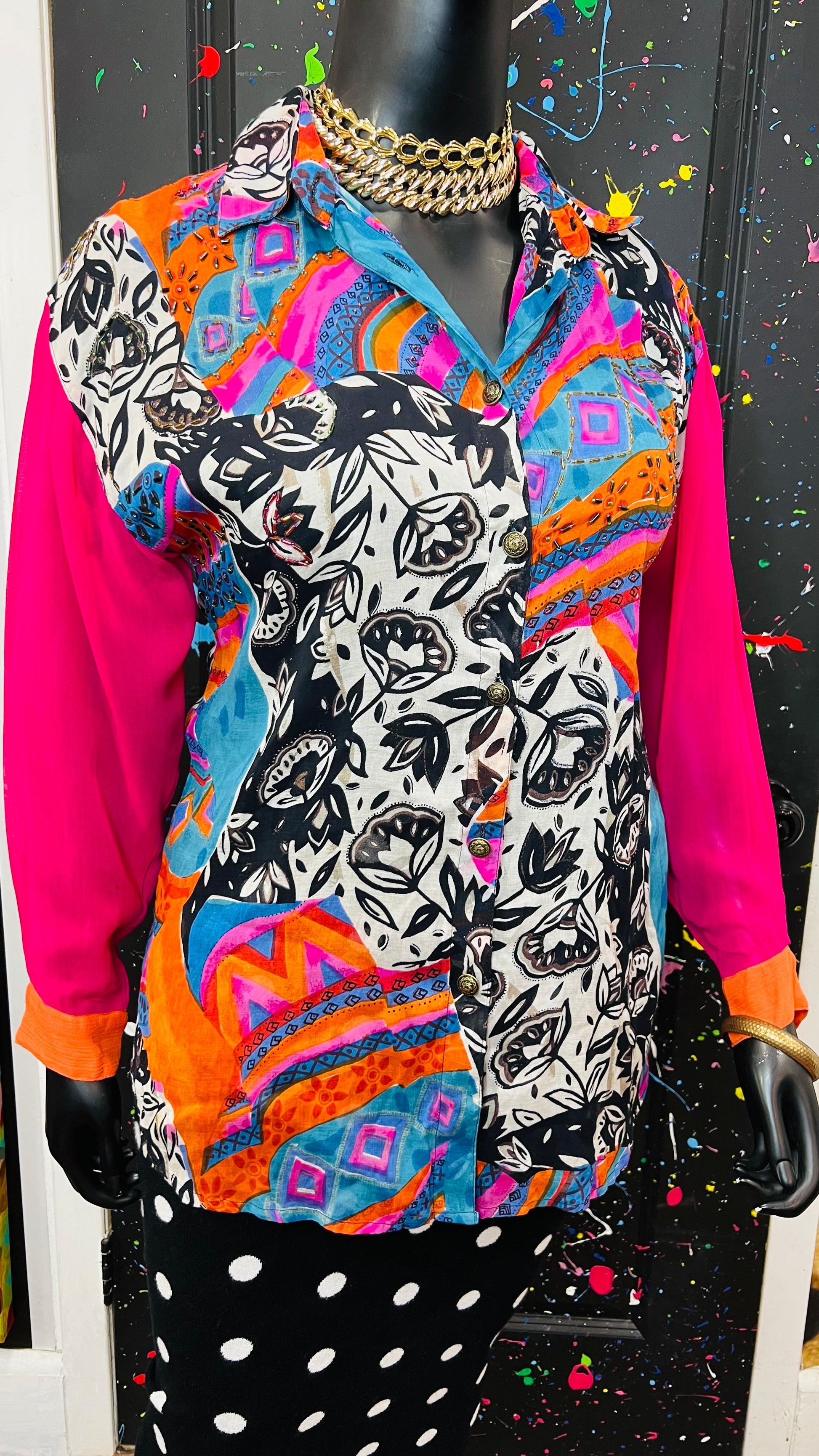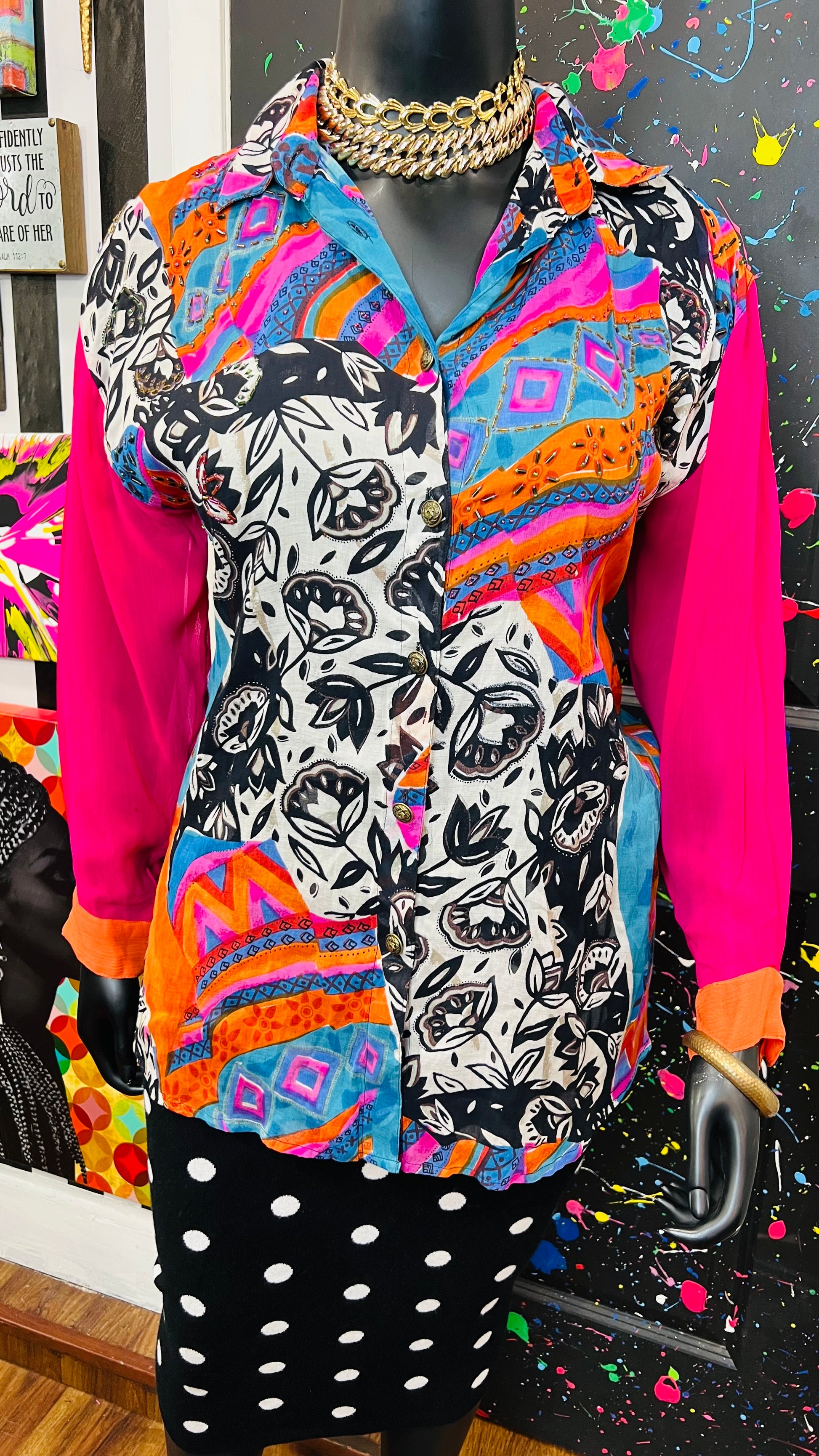 Vintage Mix Print Semi- Sheer Blouse (18)