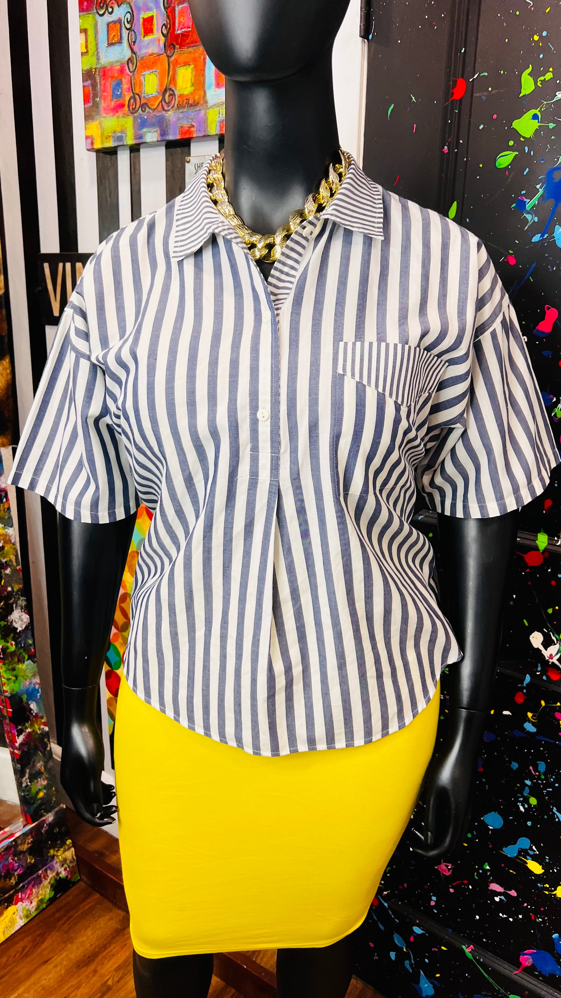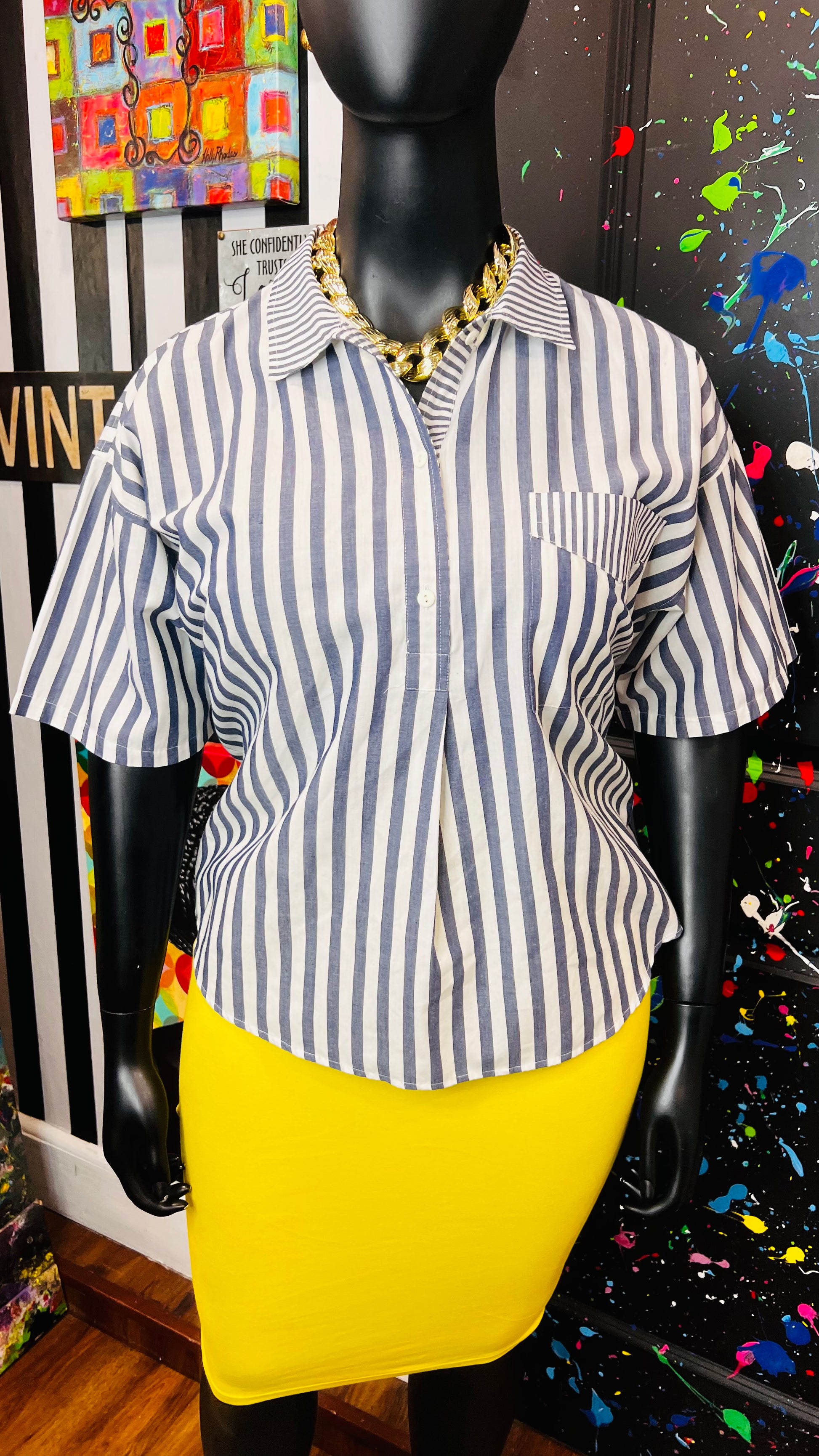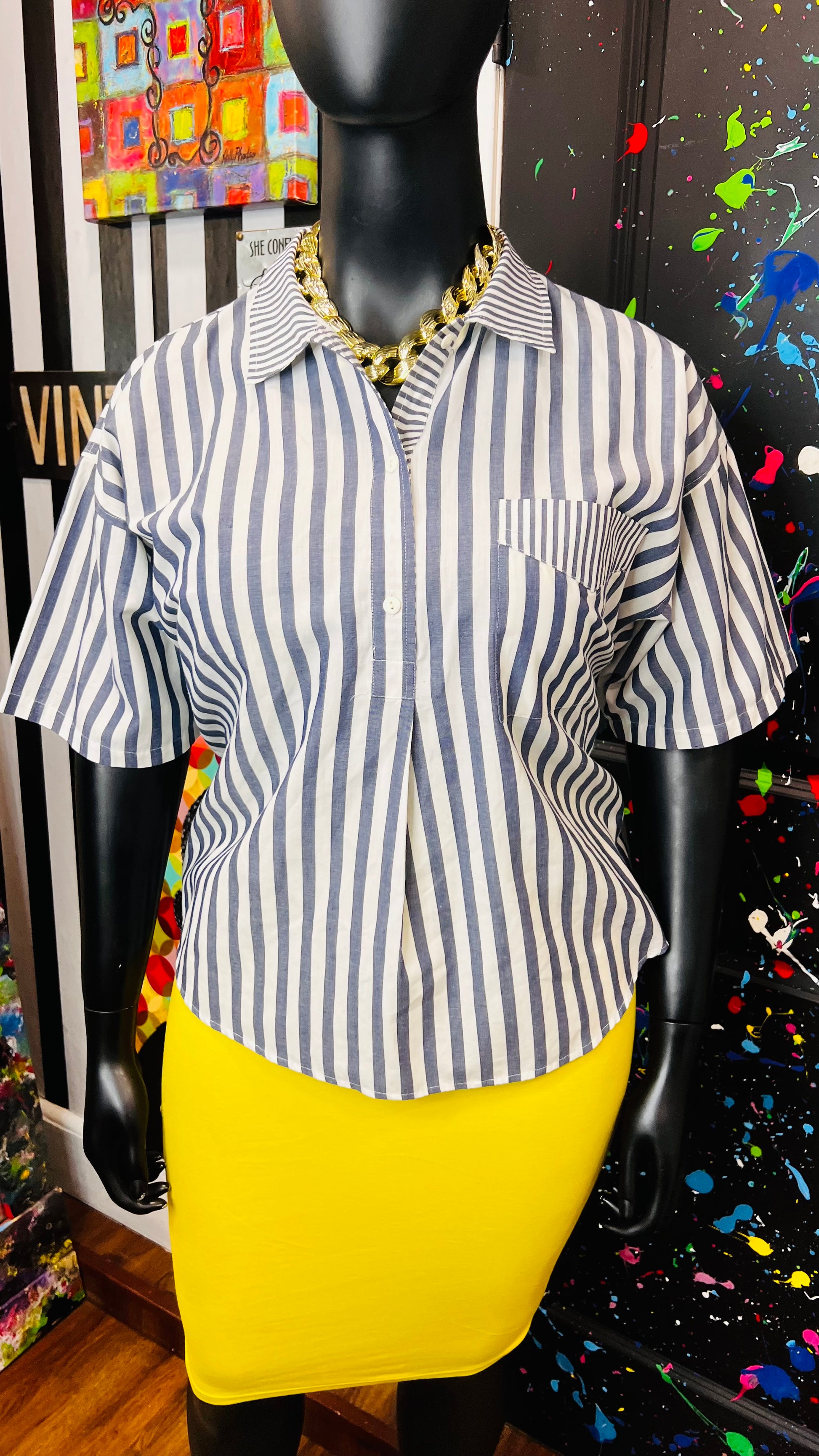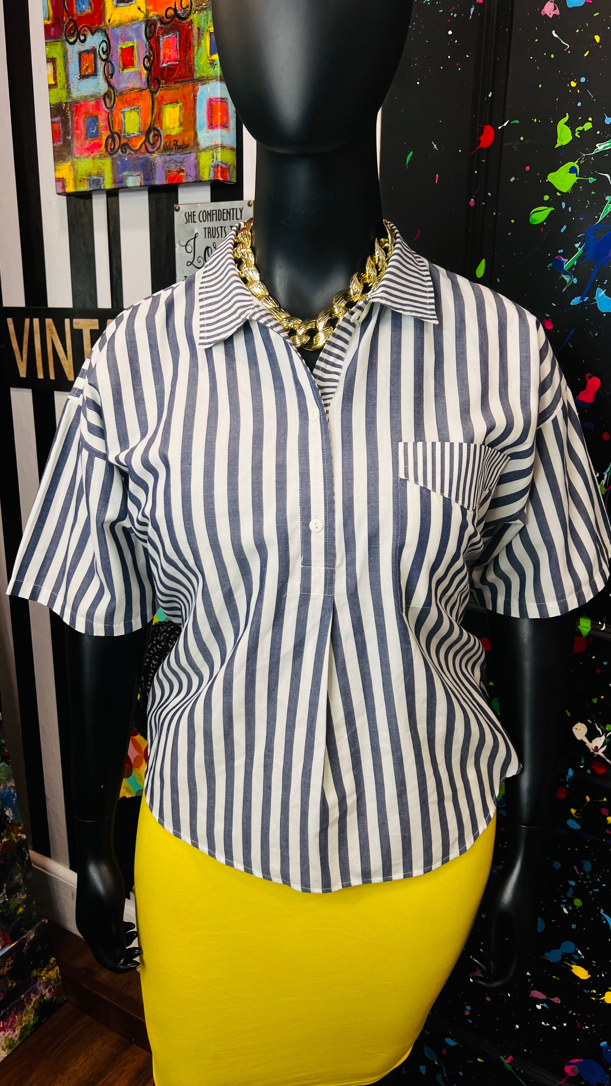 Vintage Mixed Striped Blouse (16)