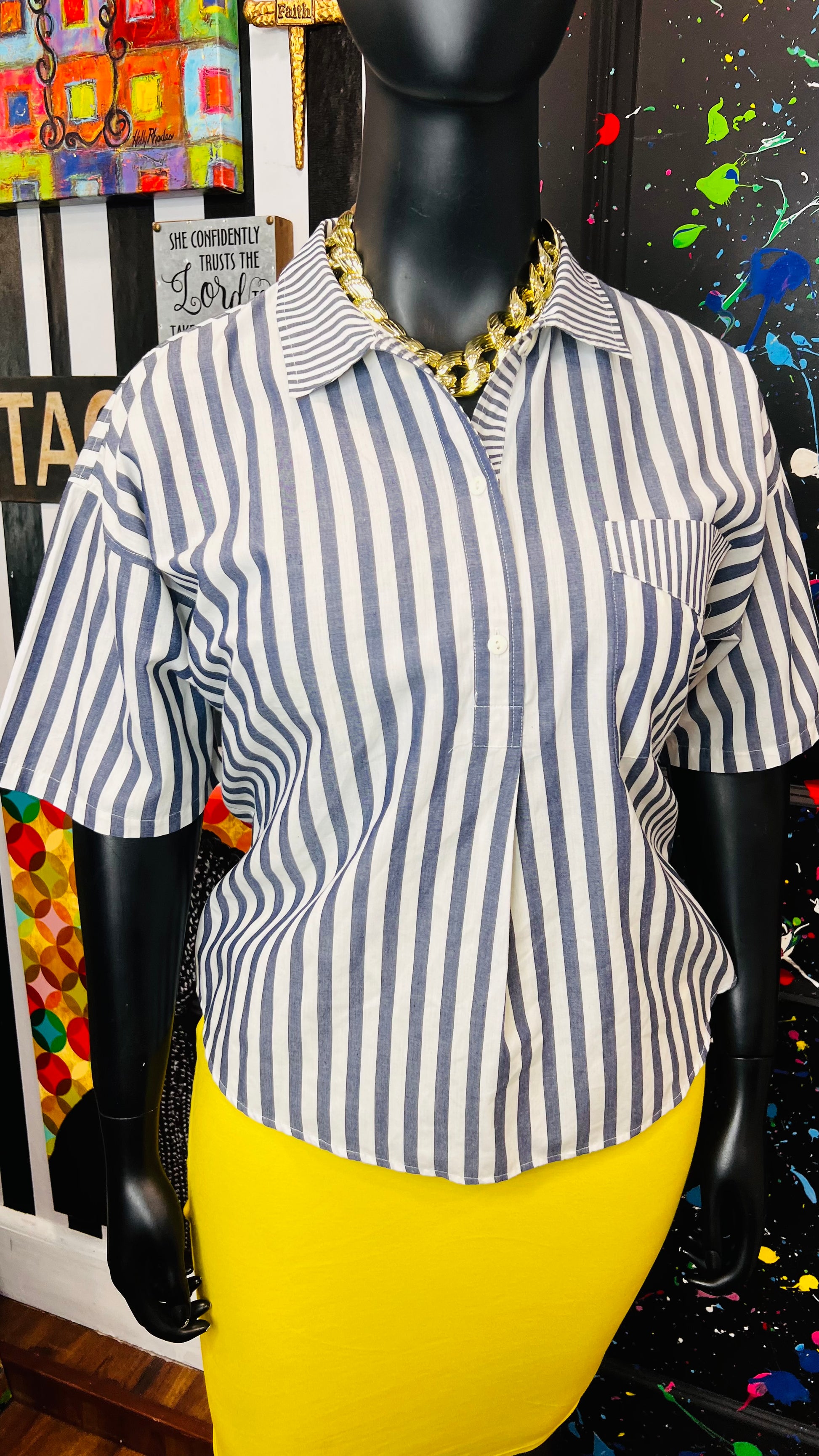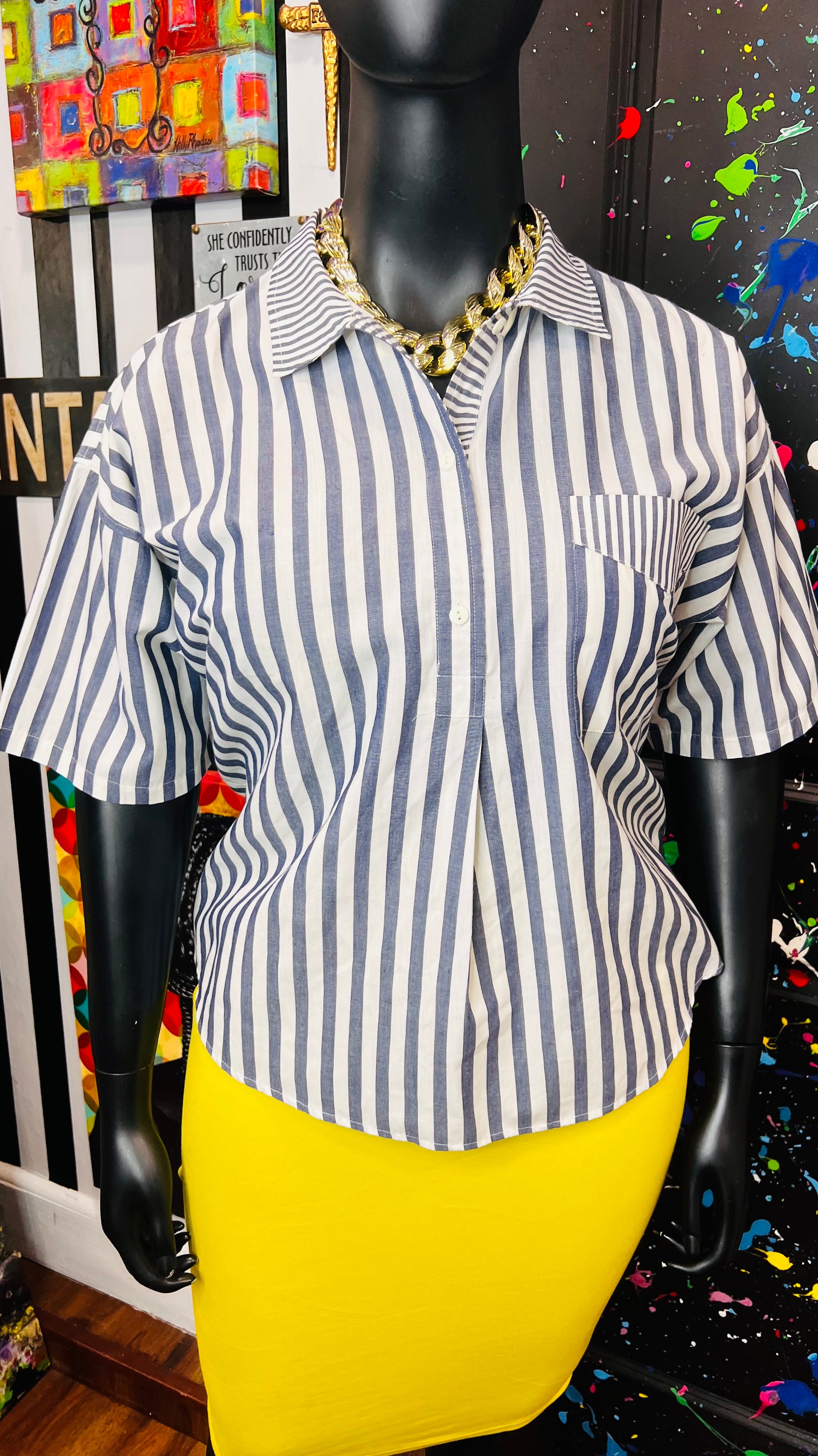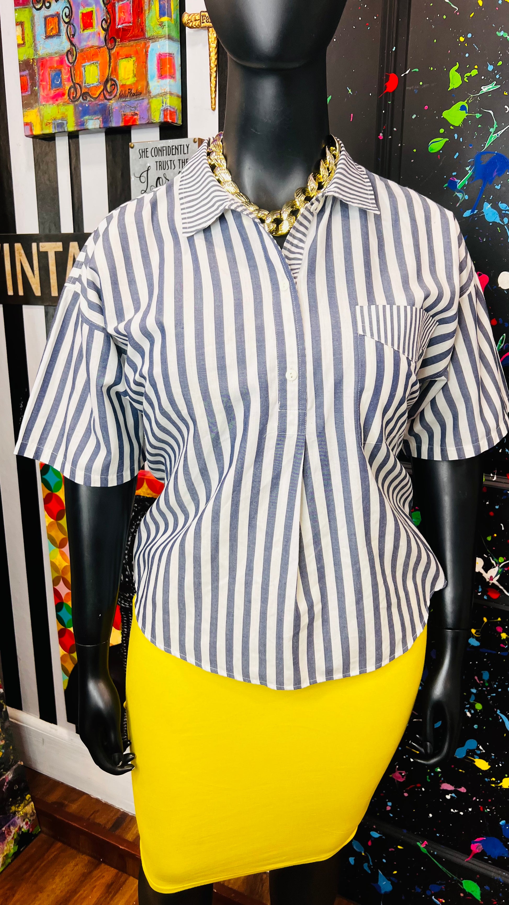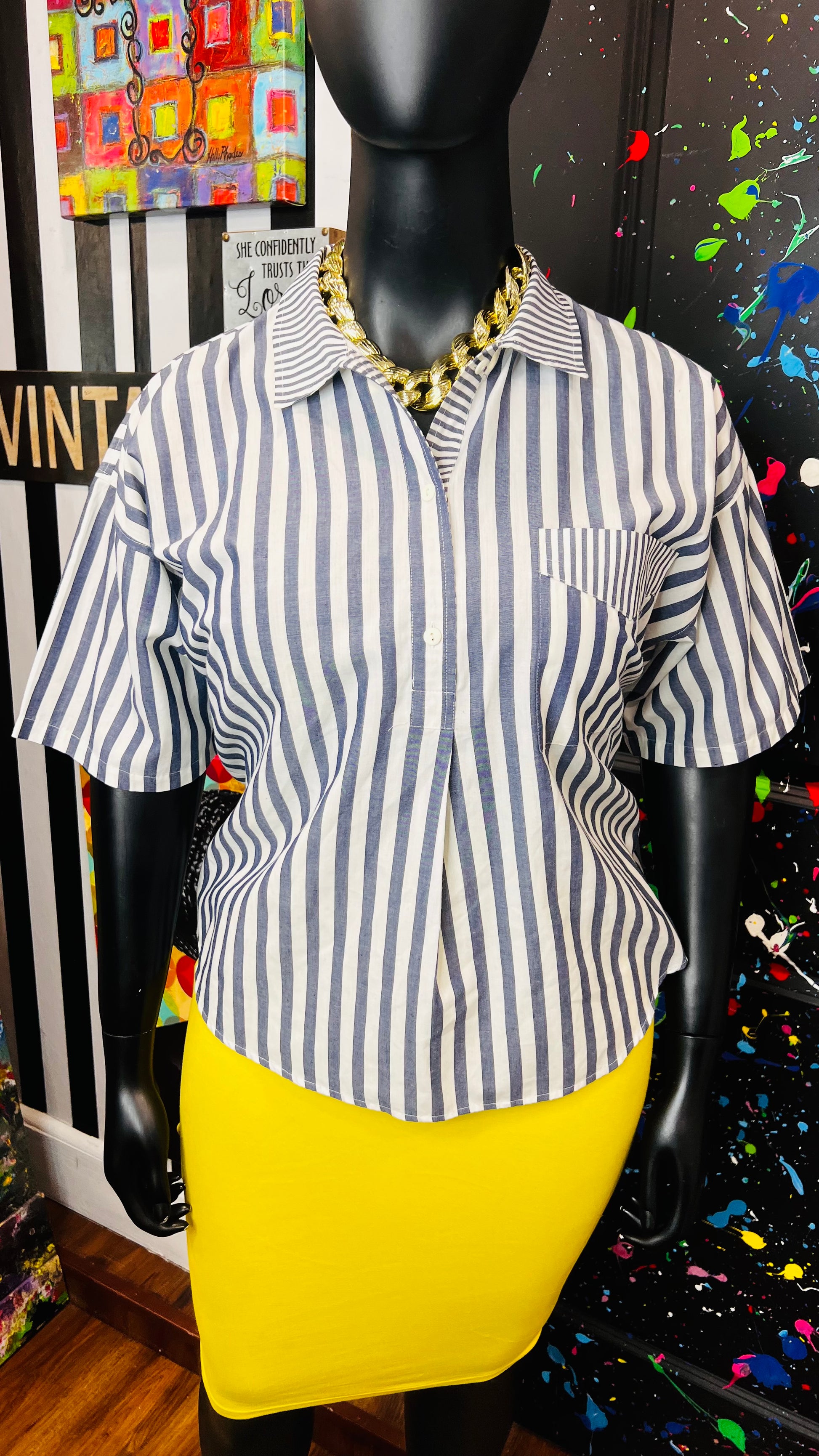 Vintage Mixed Striped Blouse (16)