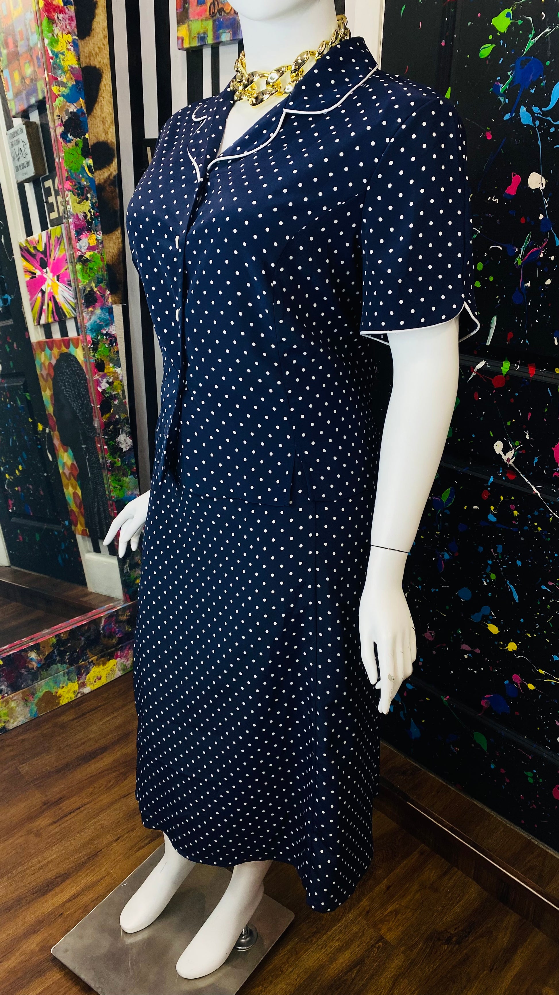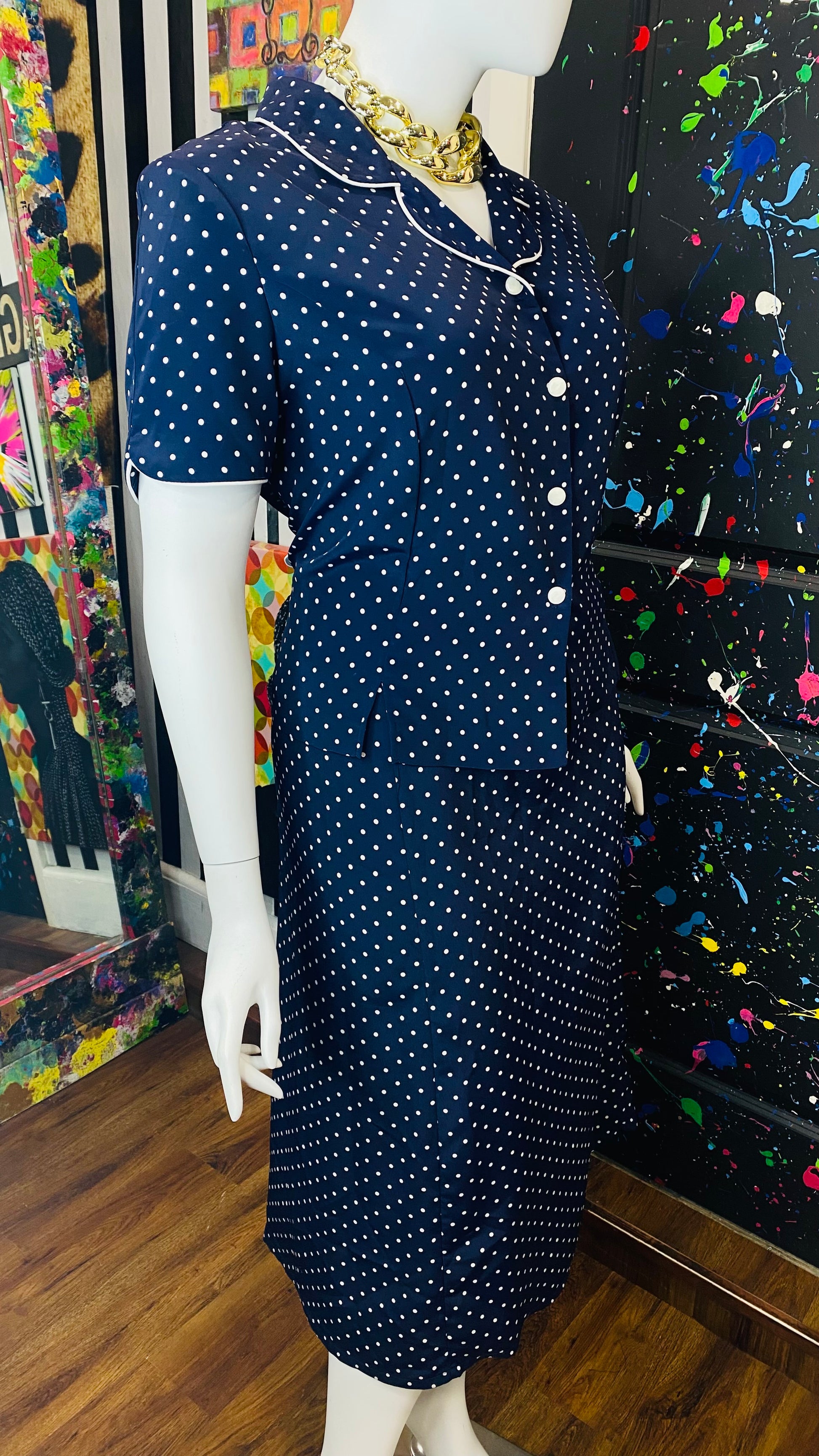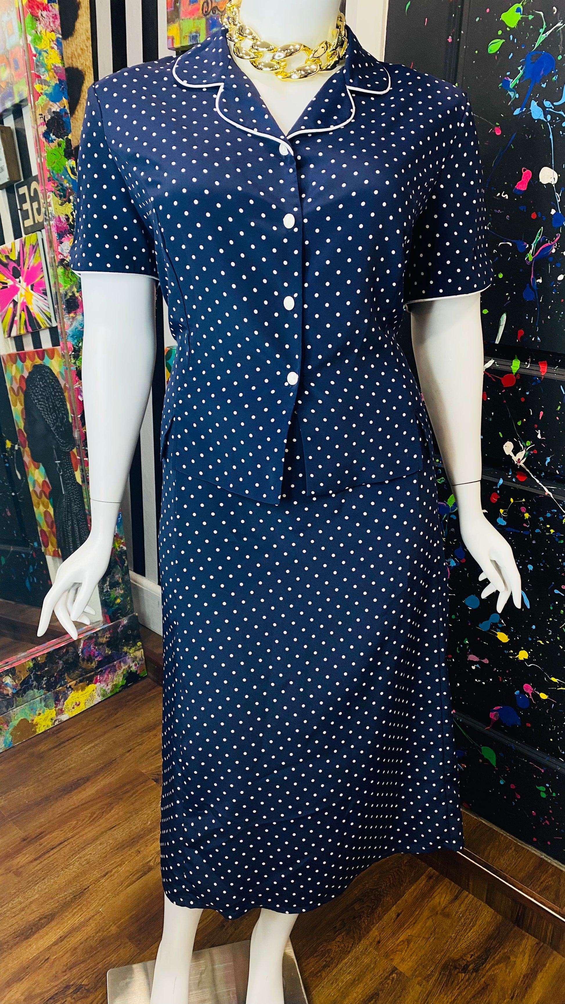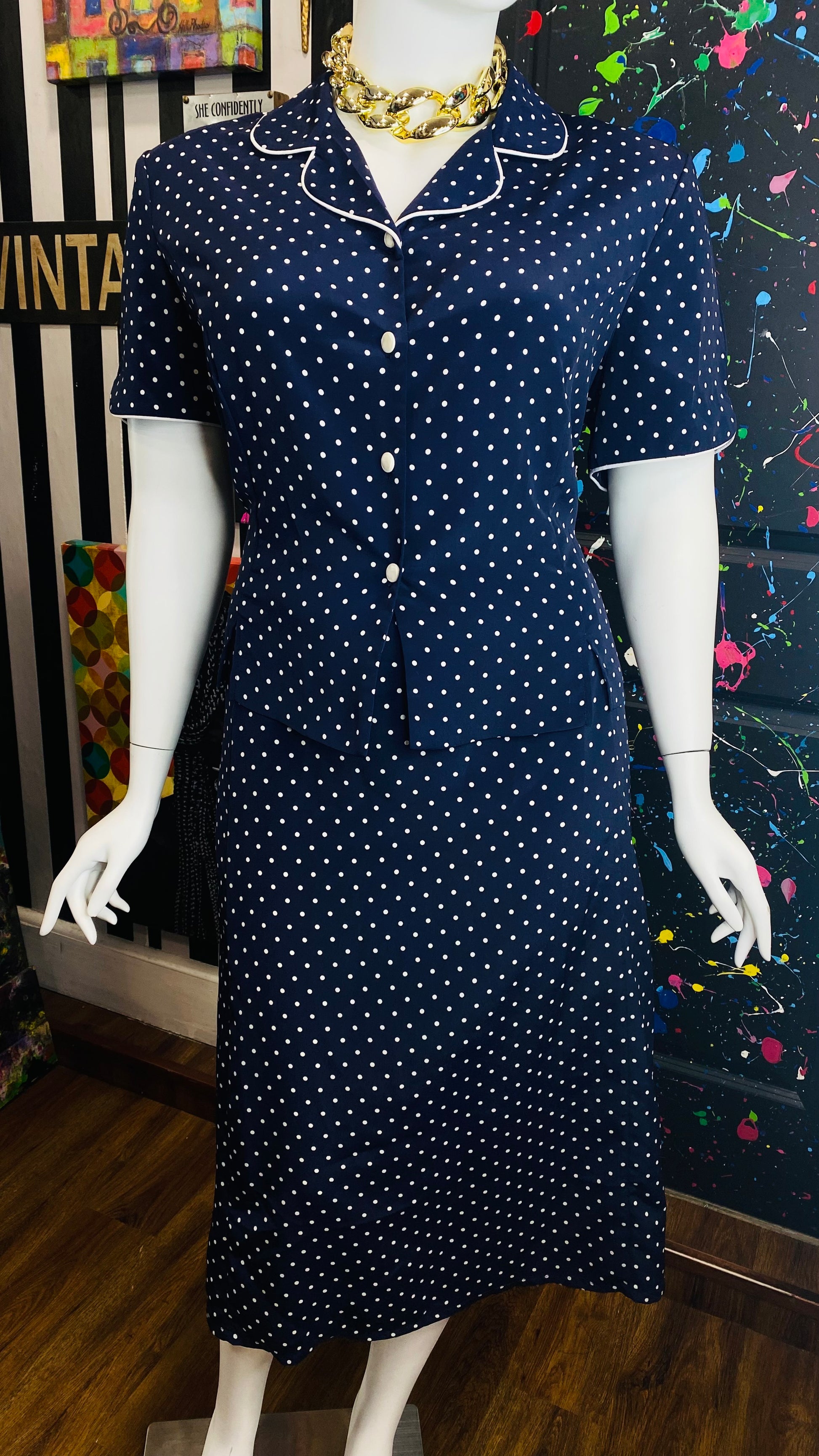 Vintage Navy Blue & White Polka Dot Skirt Set (22)