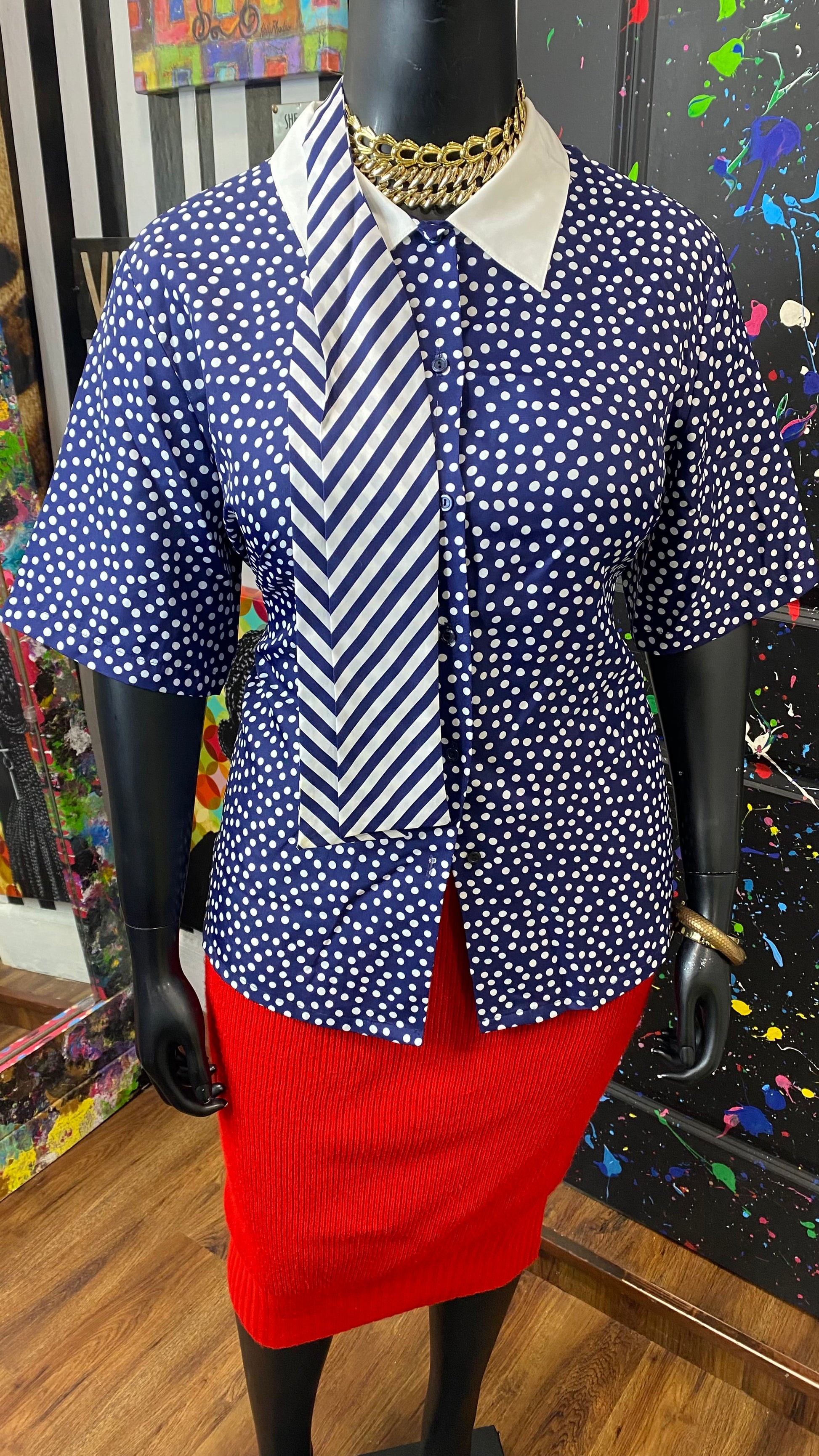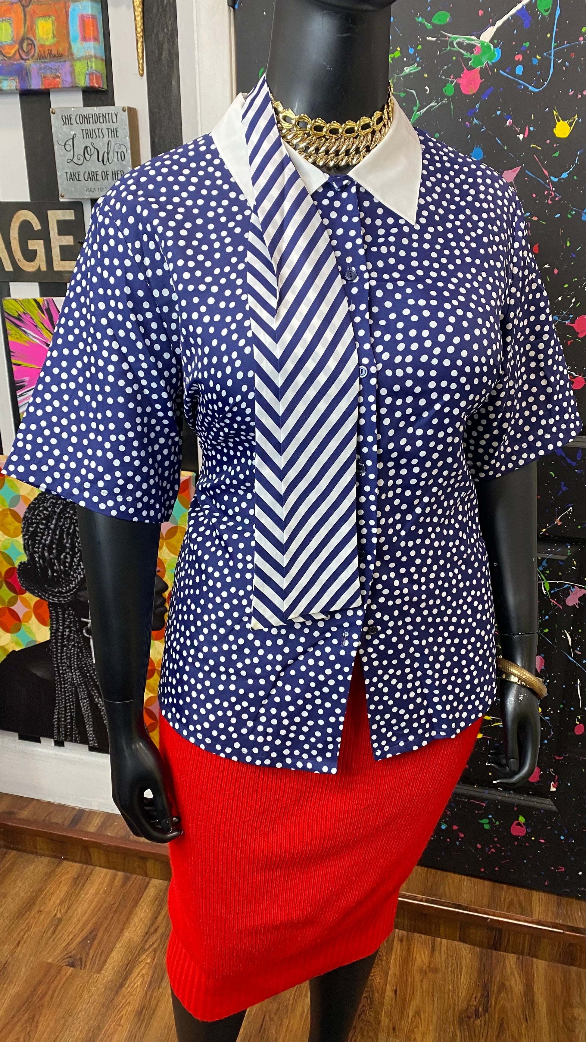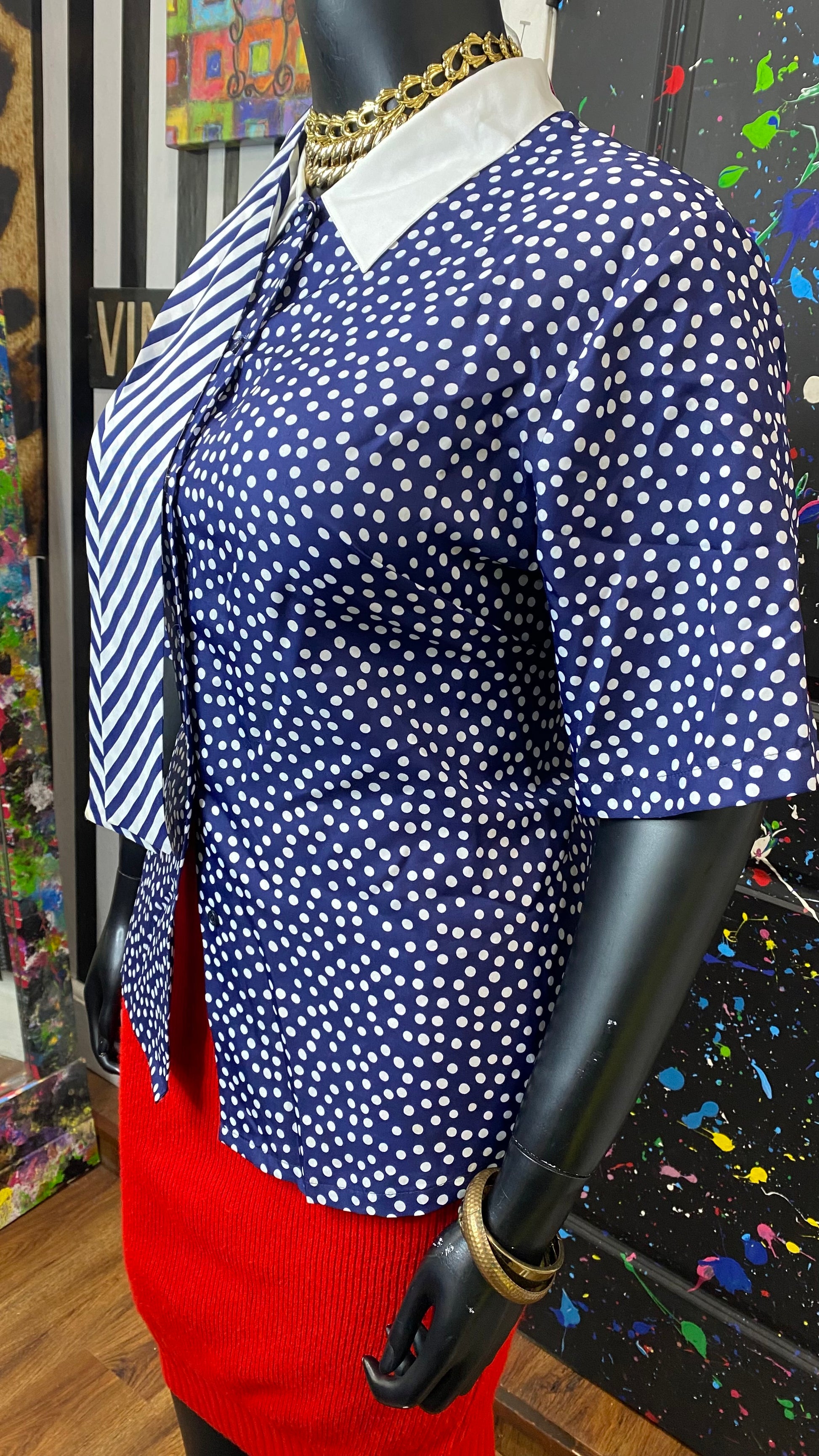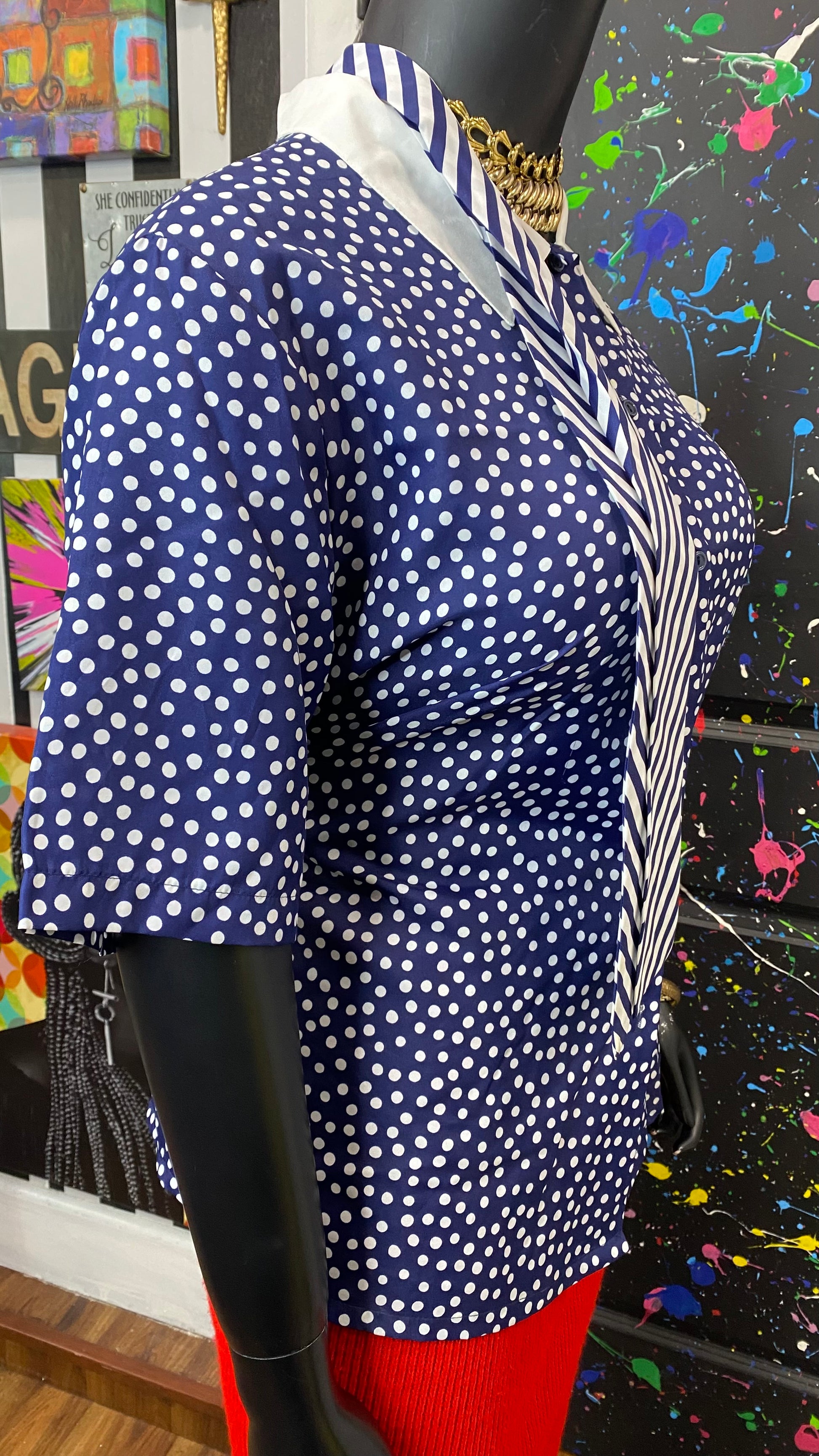 Vintage Navy Polka & Striped Tie Blouse (20)