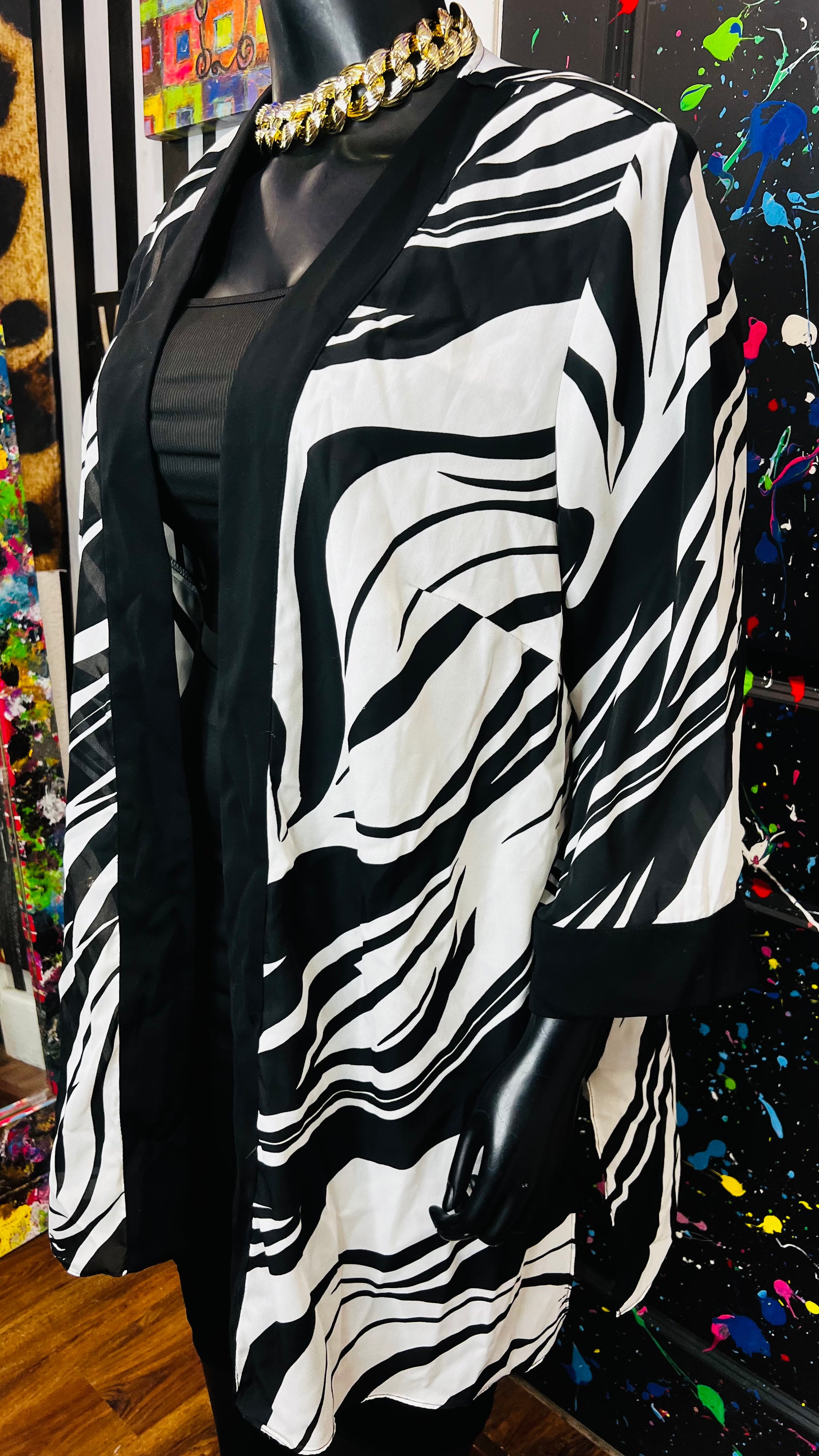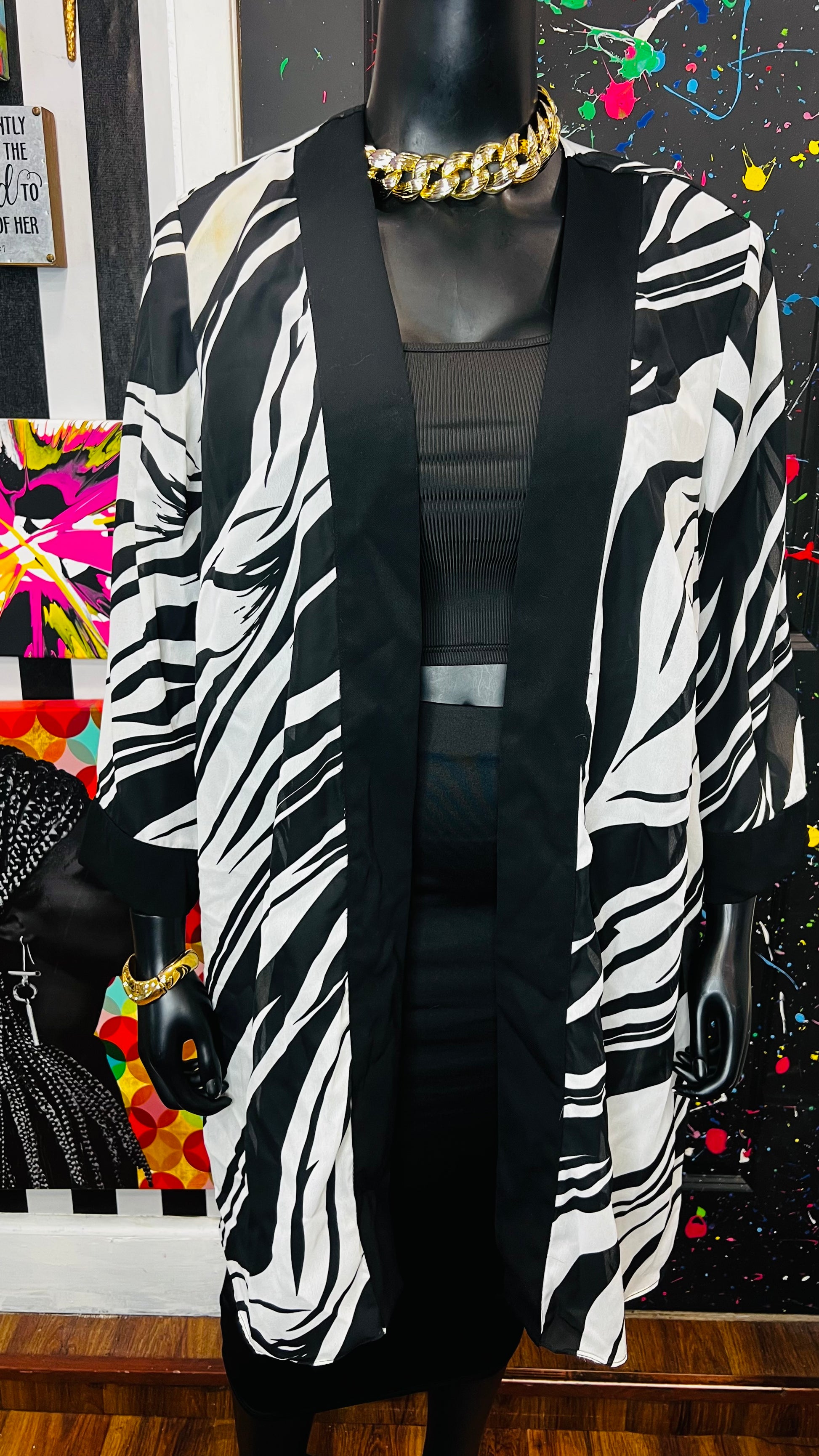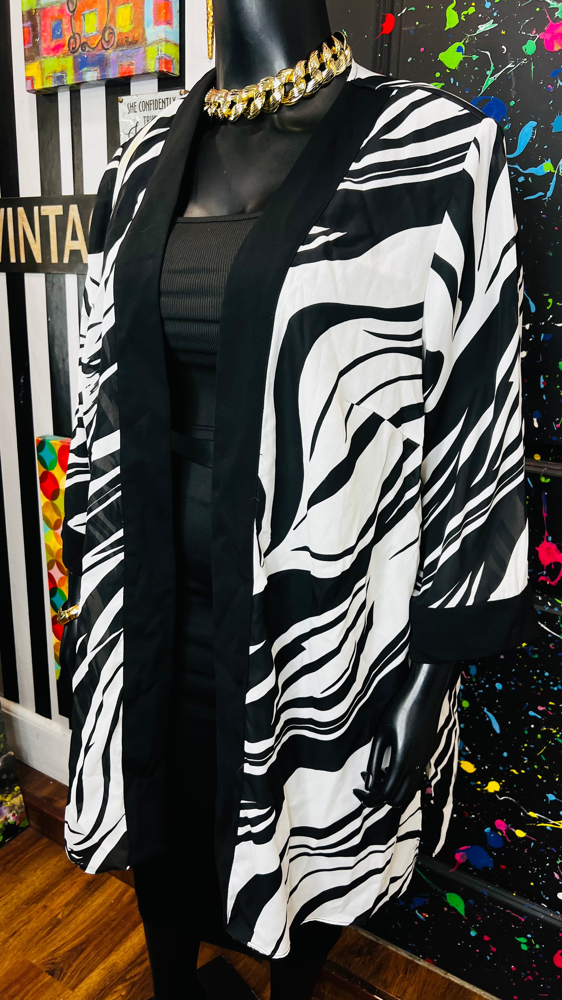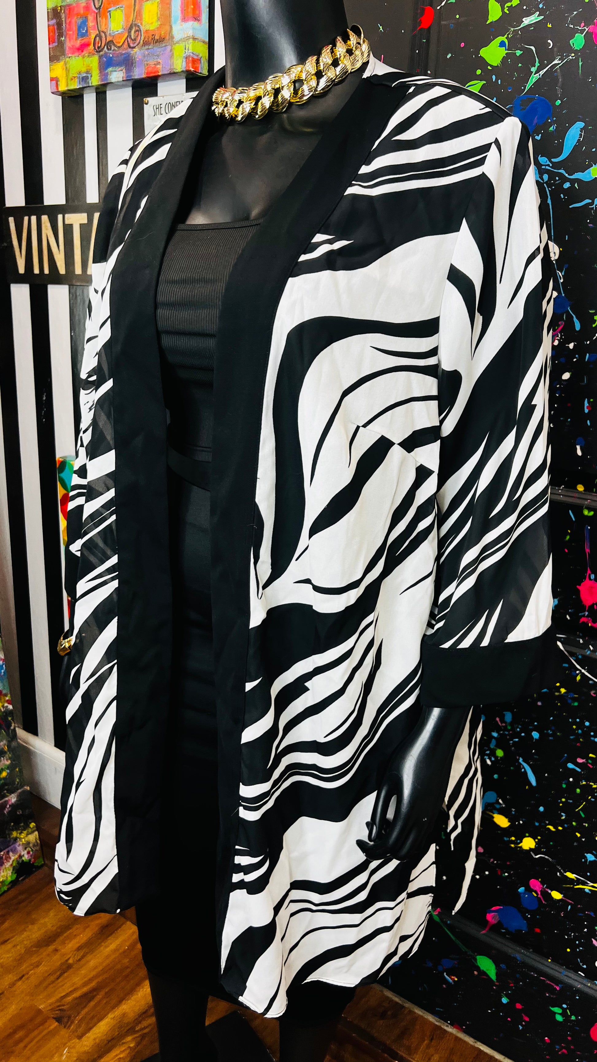Vintage Open Black & White Sheer Duster (OS) up to 22