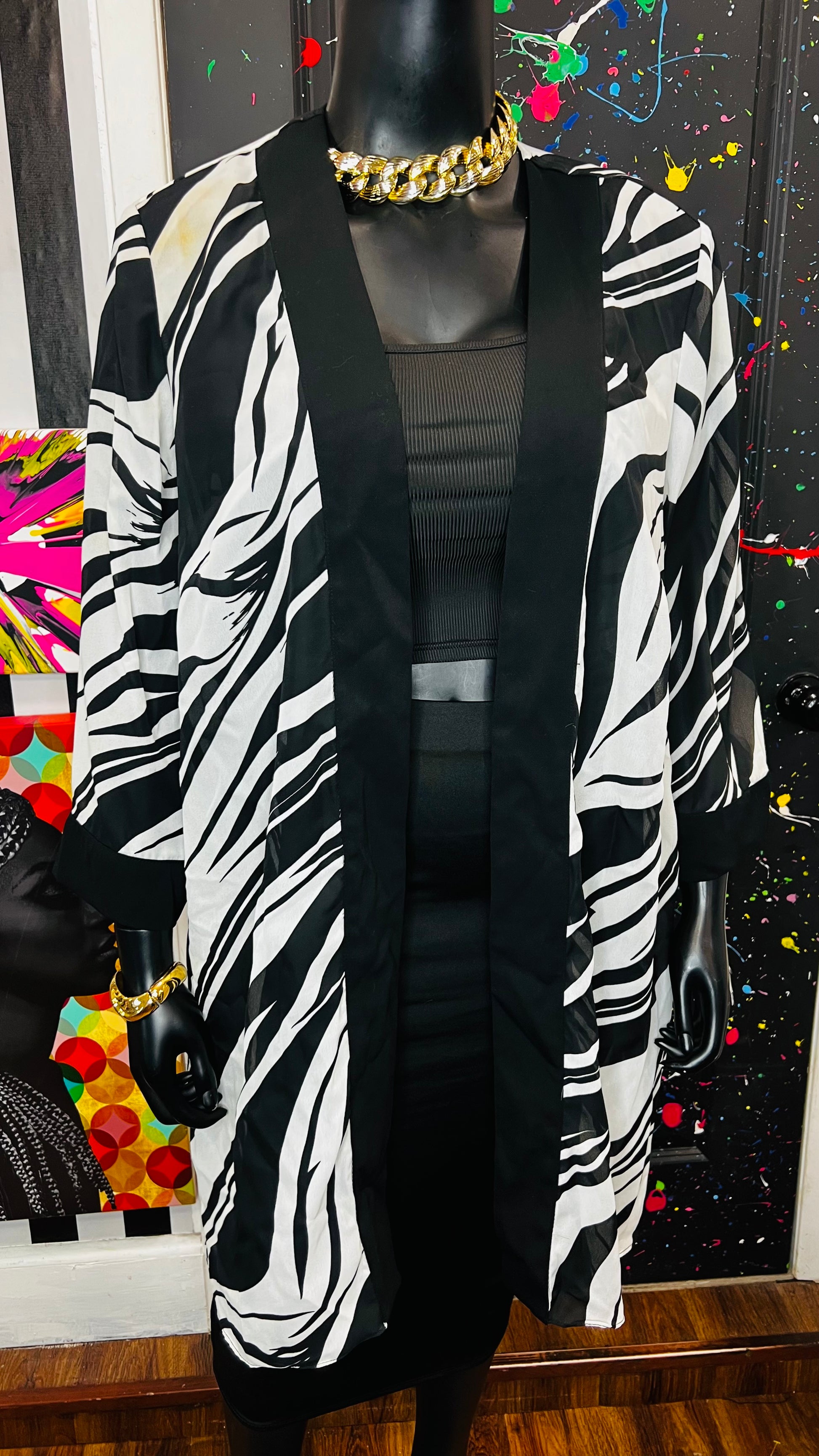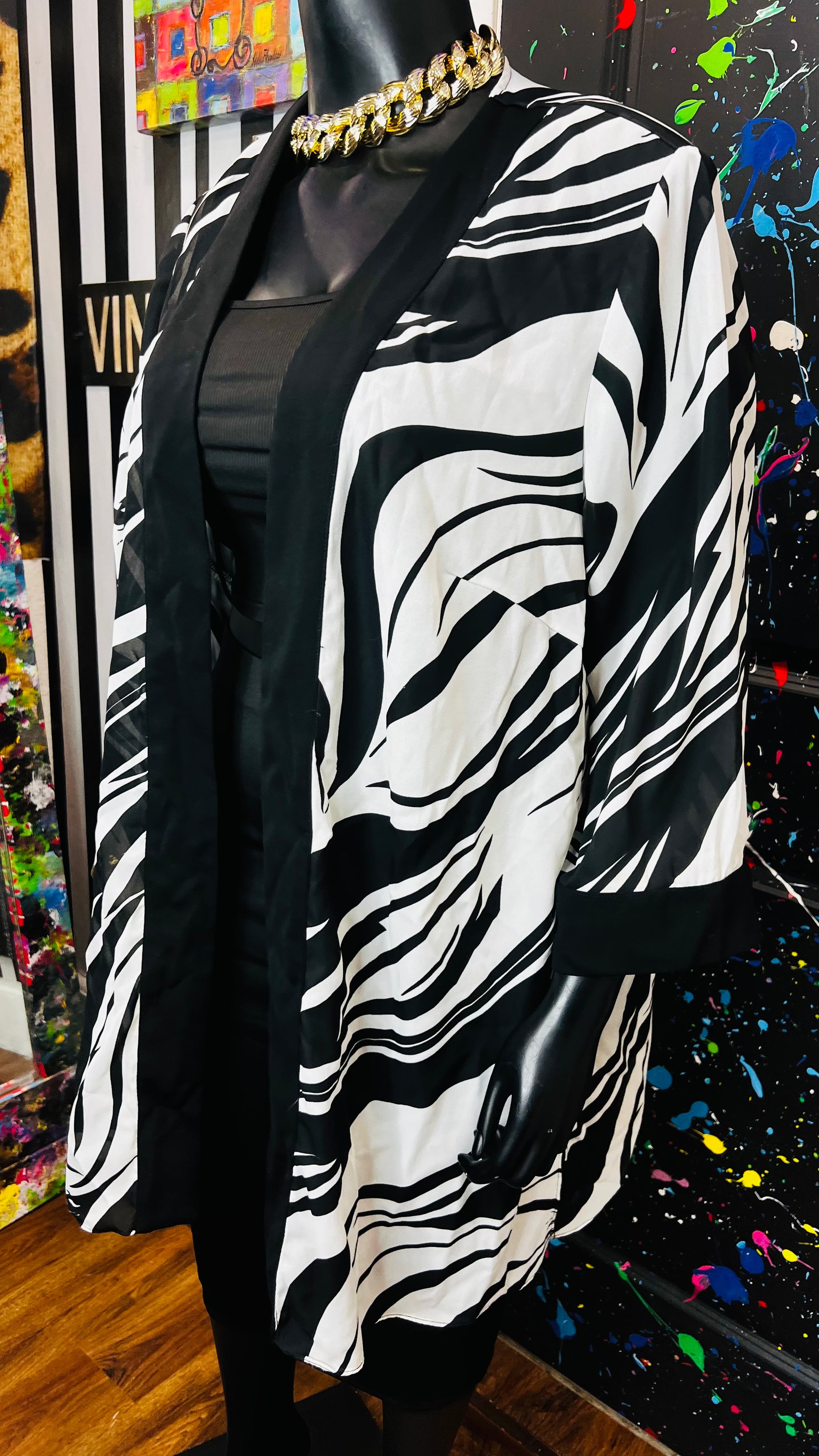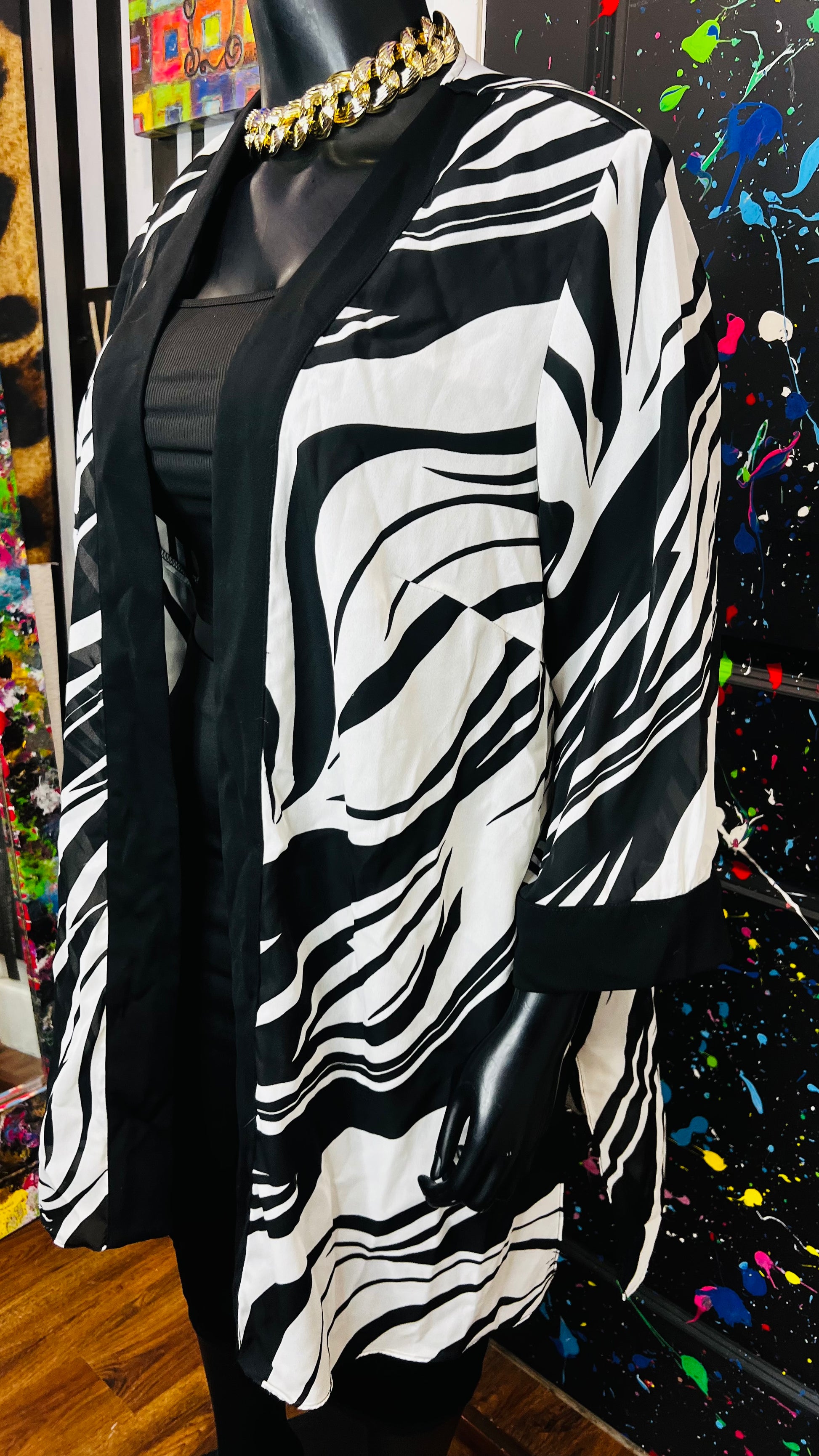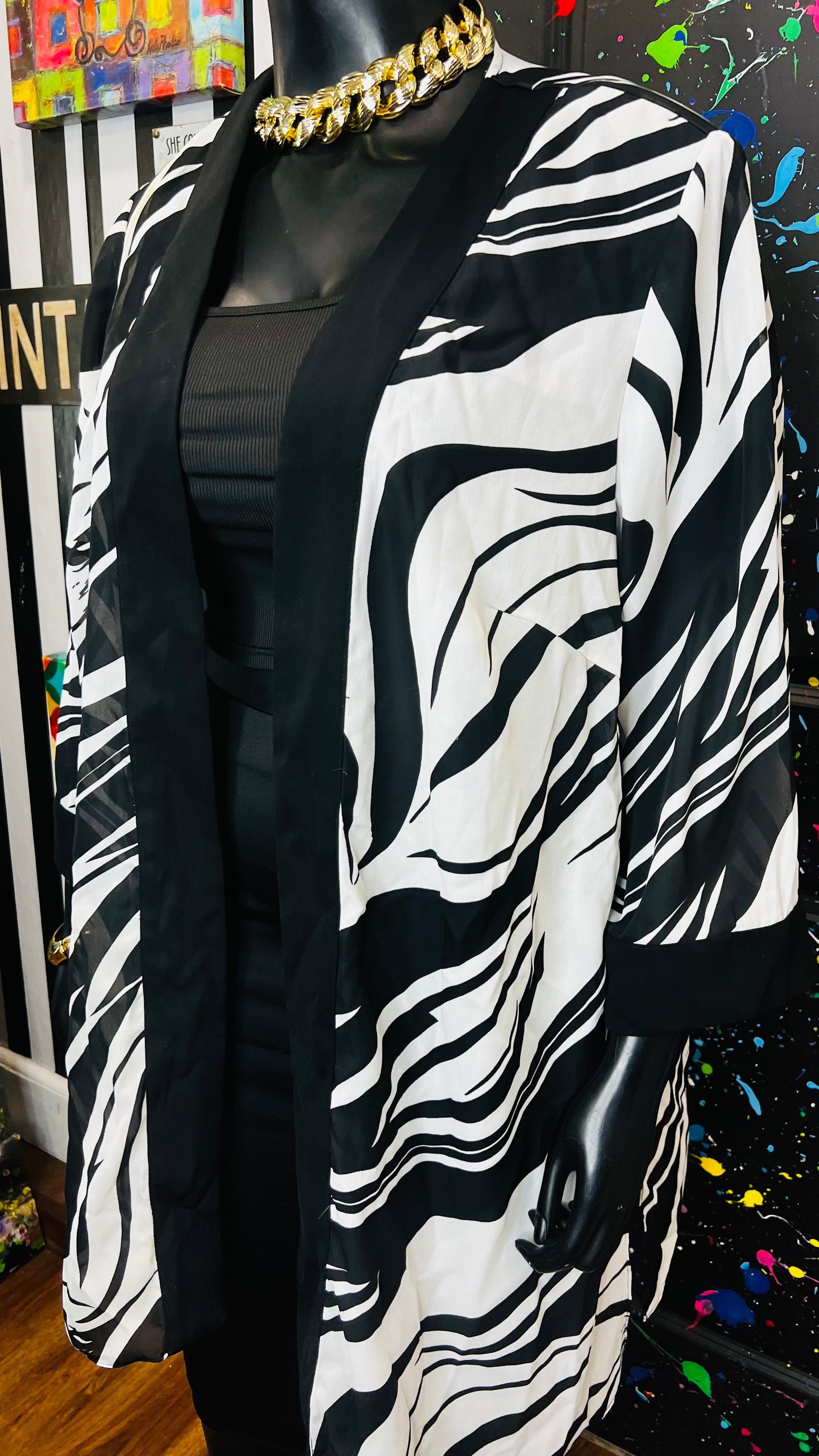 Vintage Open Black & White Sheer Duster (OS) up to 22