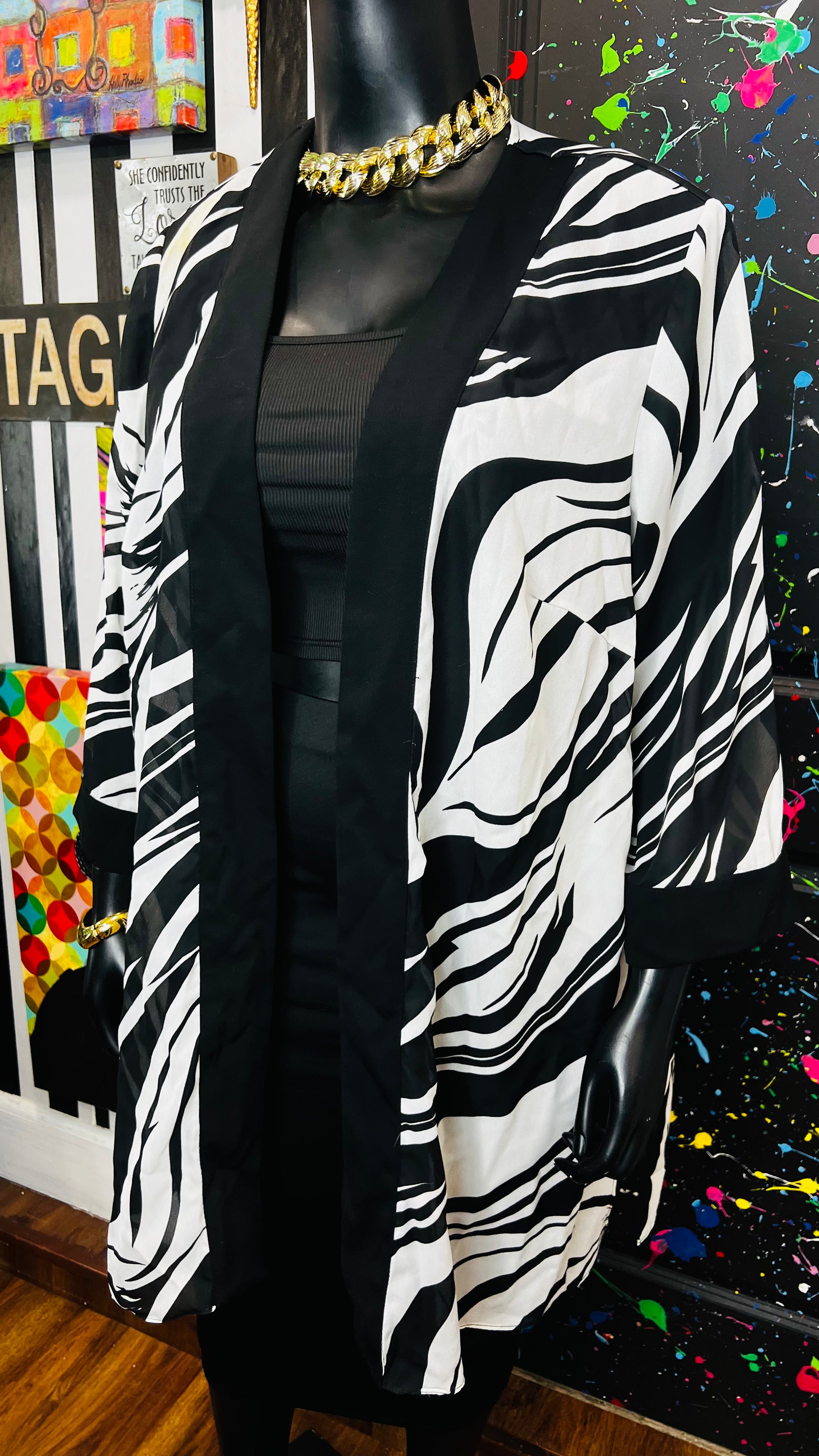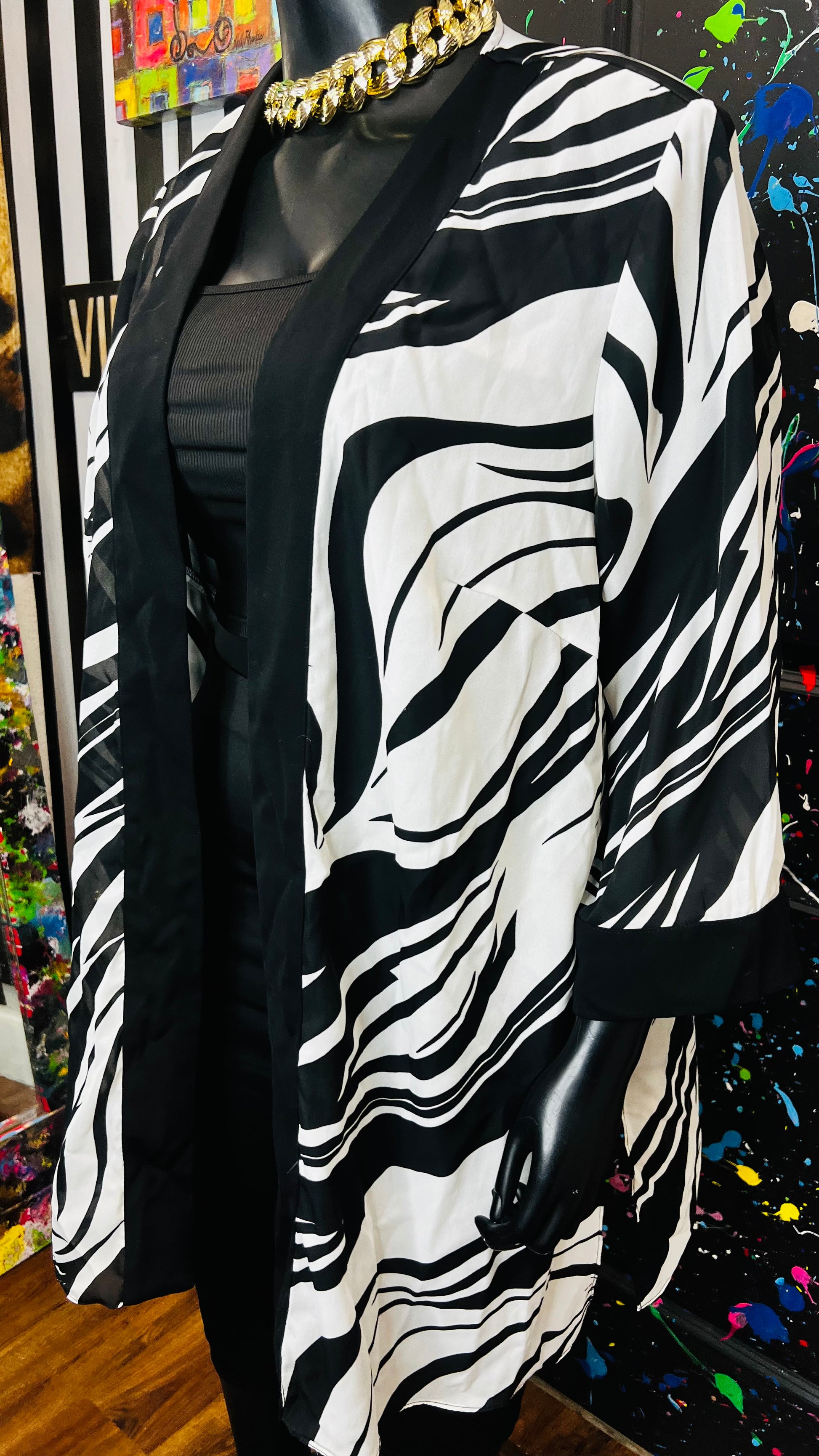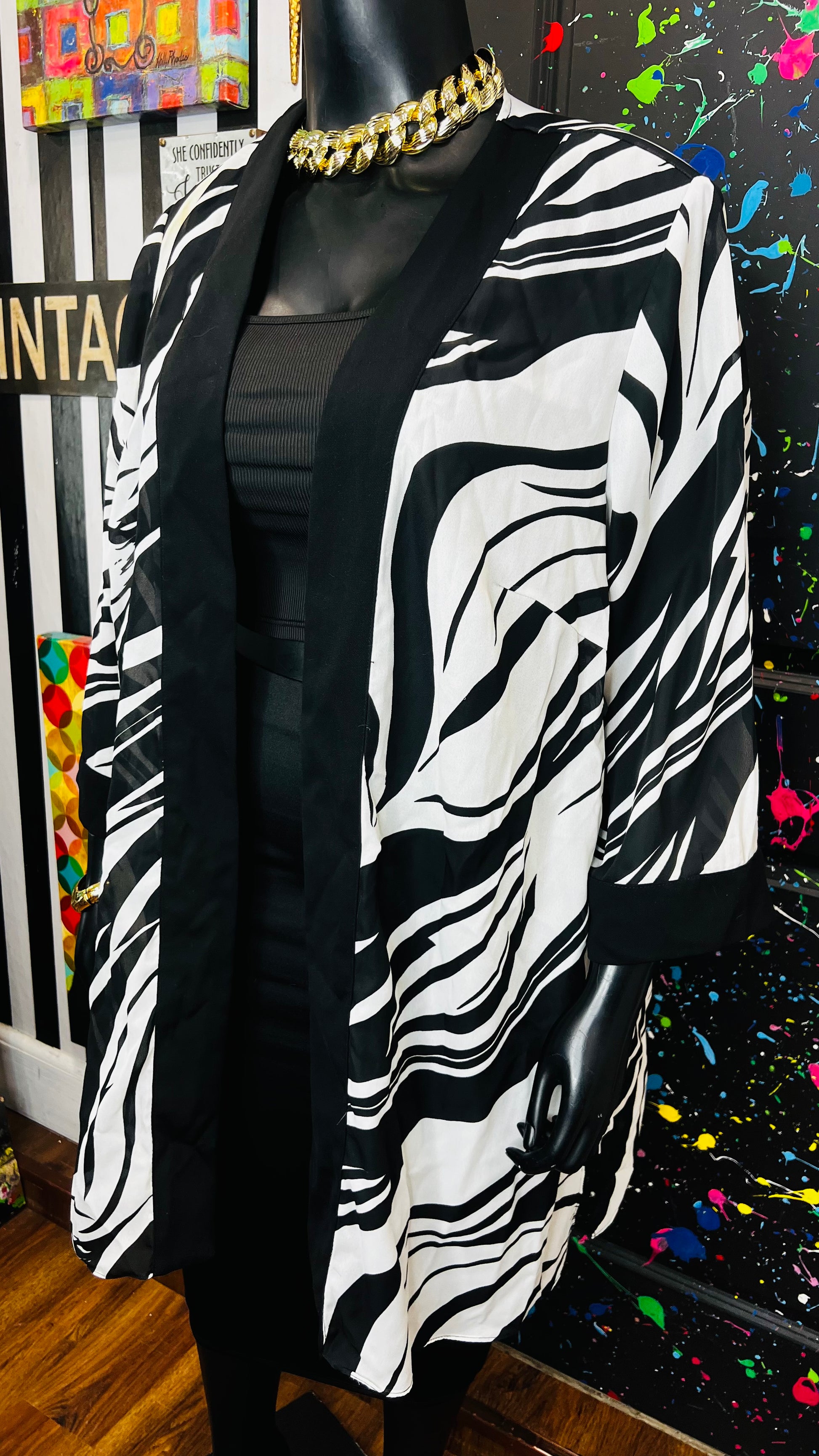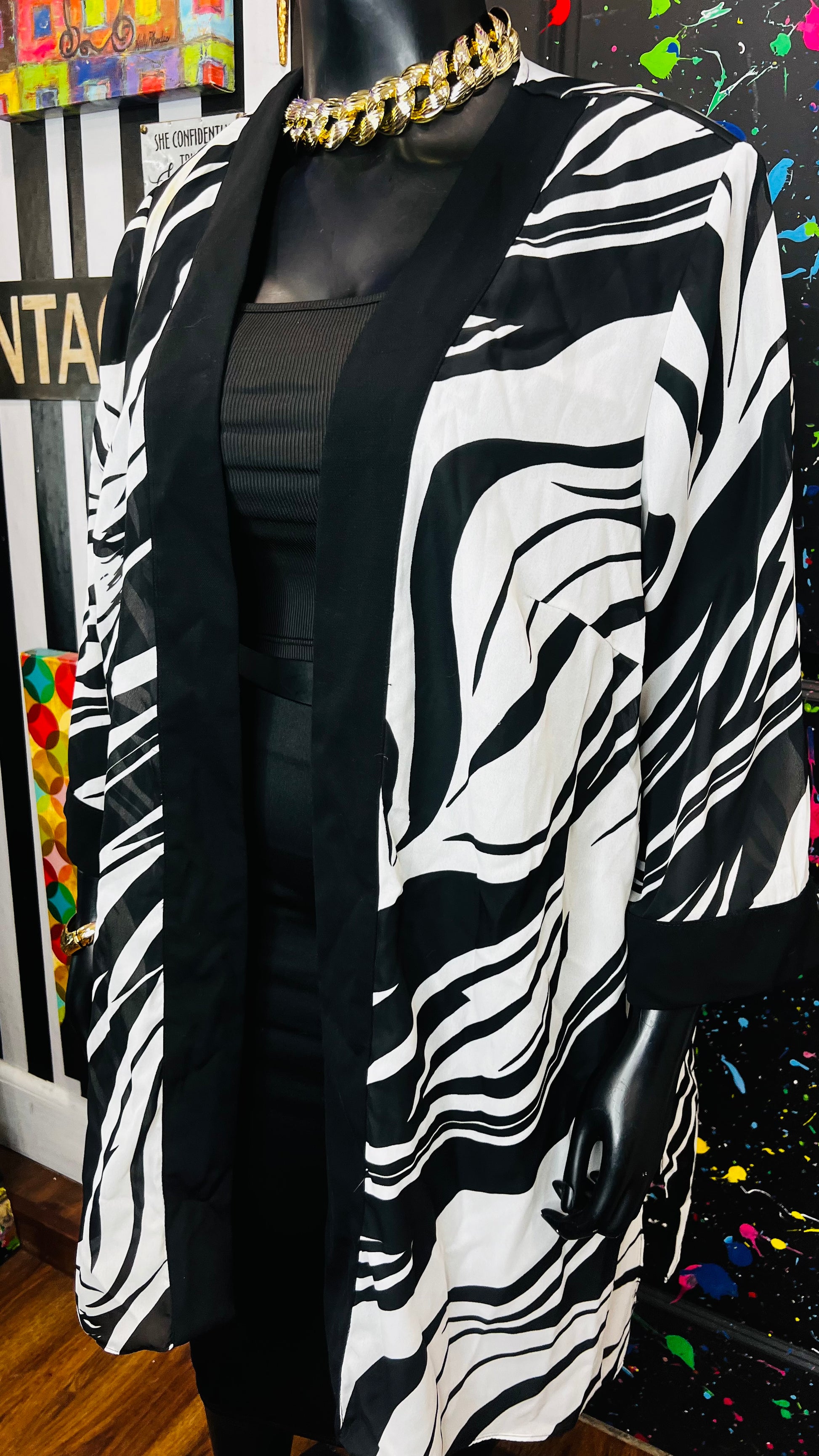 Vintage Open Black & White Sheer Duster (OS) up to 22