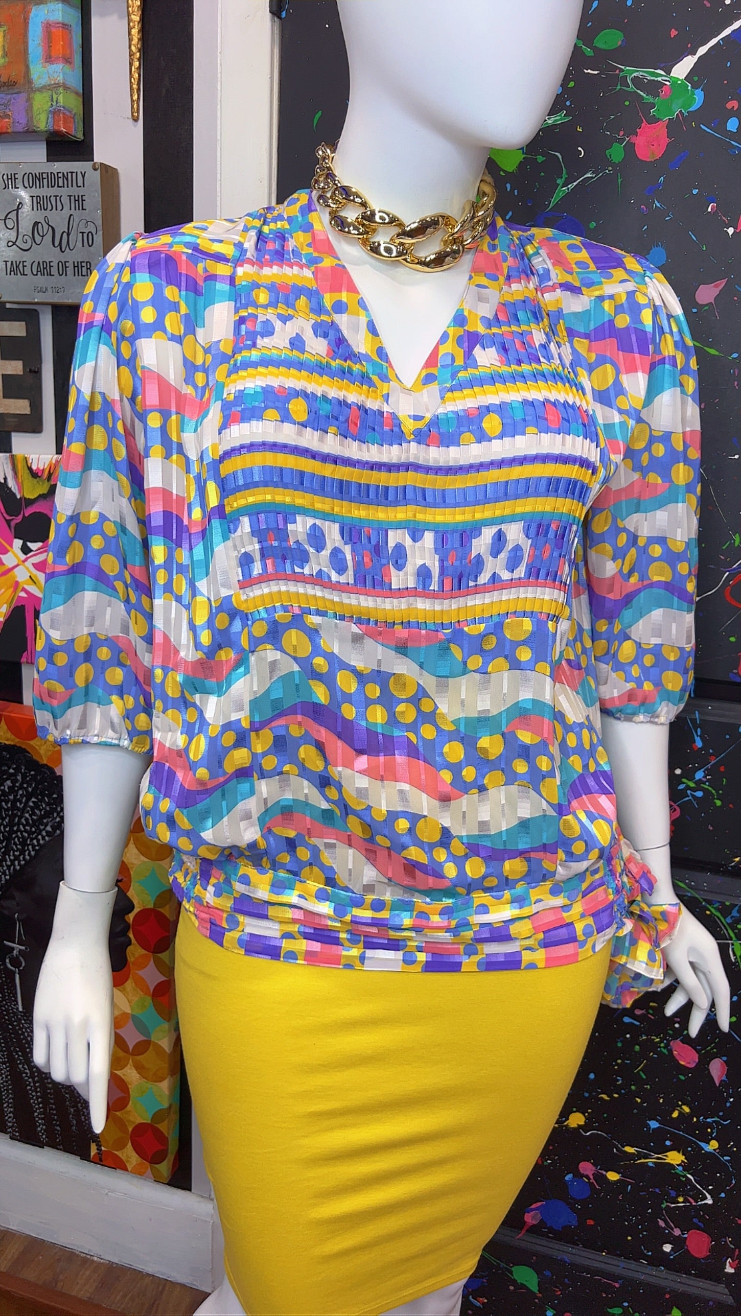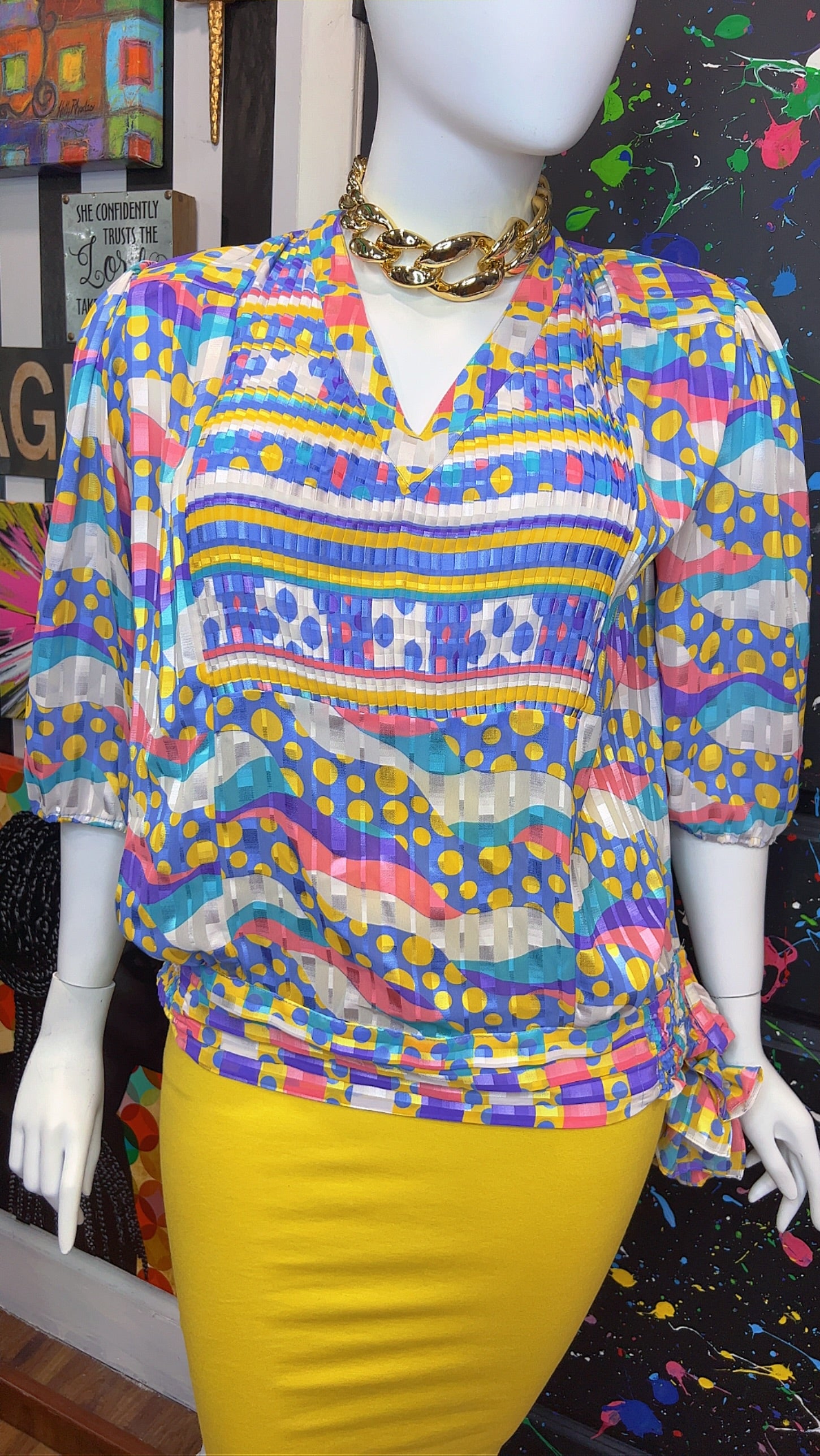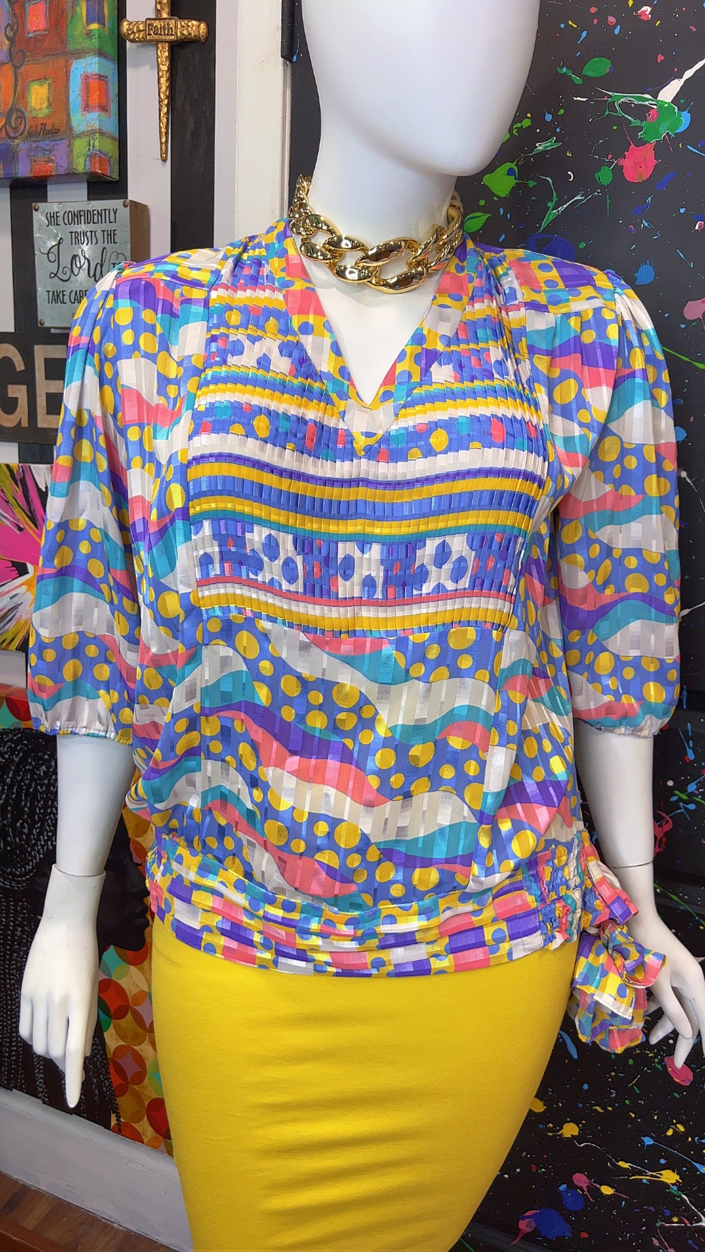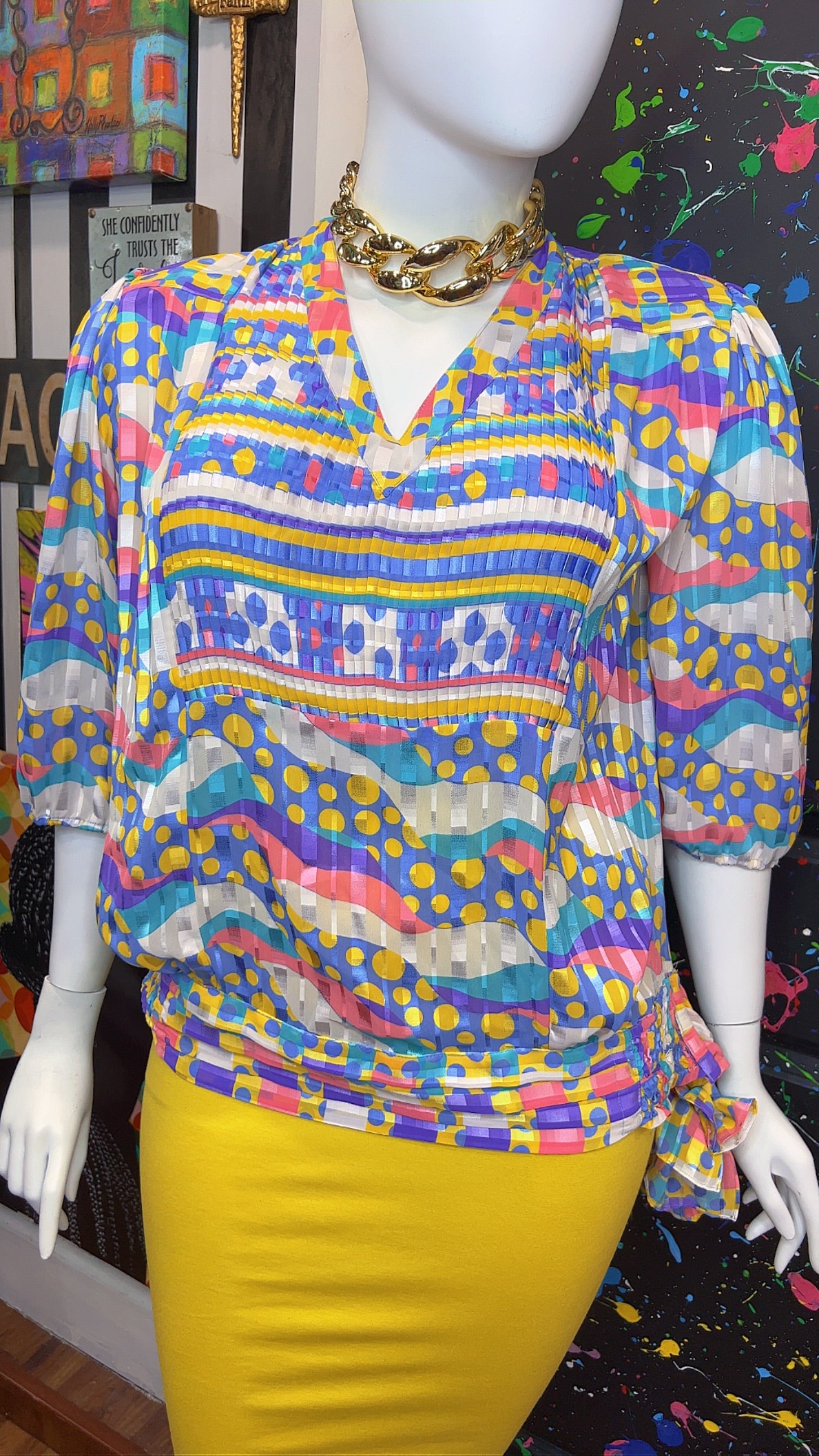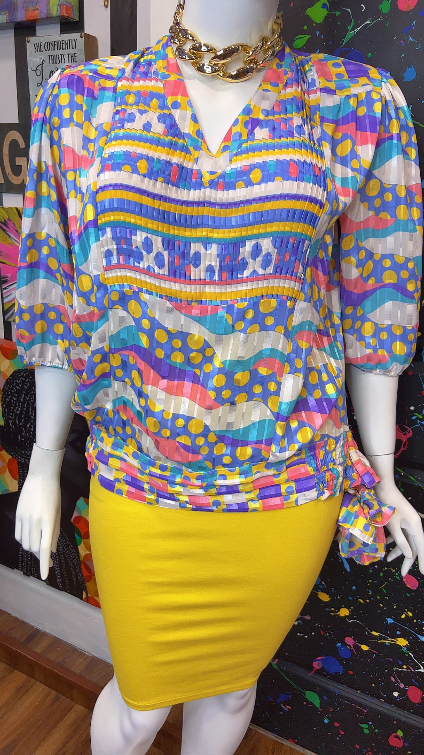Vintage Pastel Polka Dot & Mix Print Blouse (20)