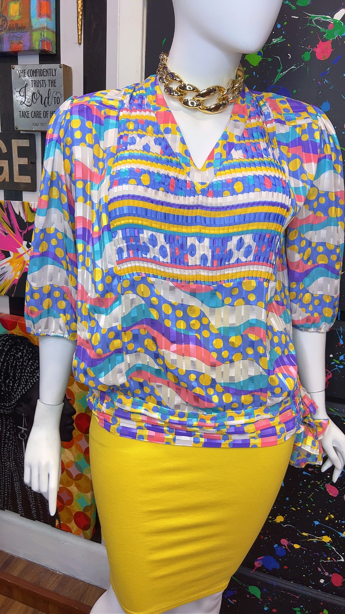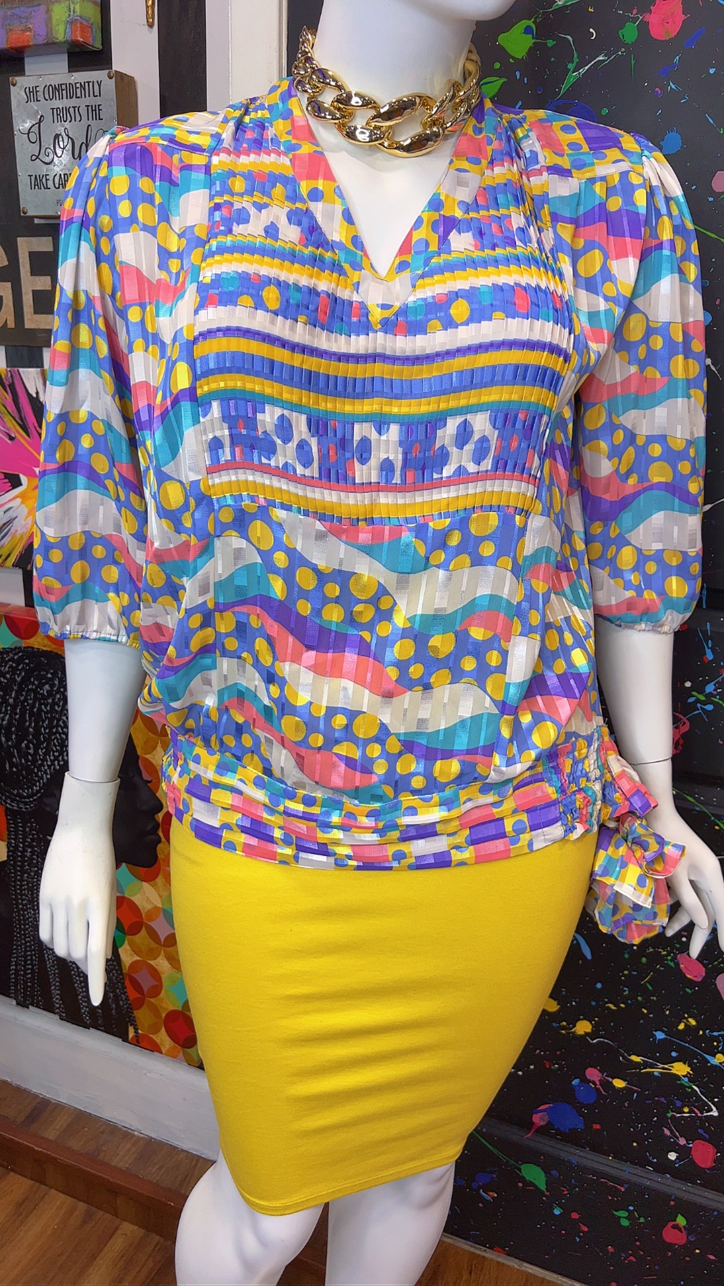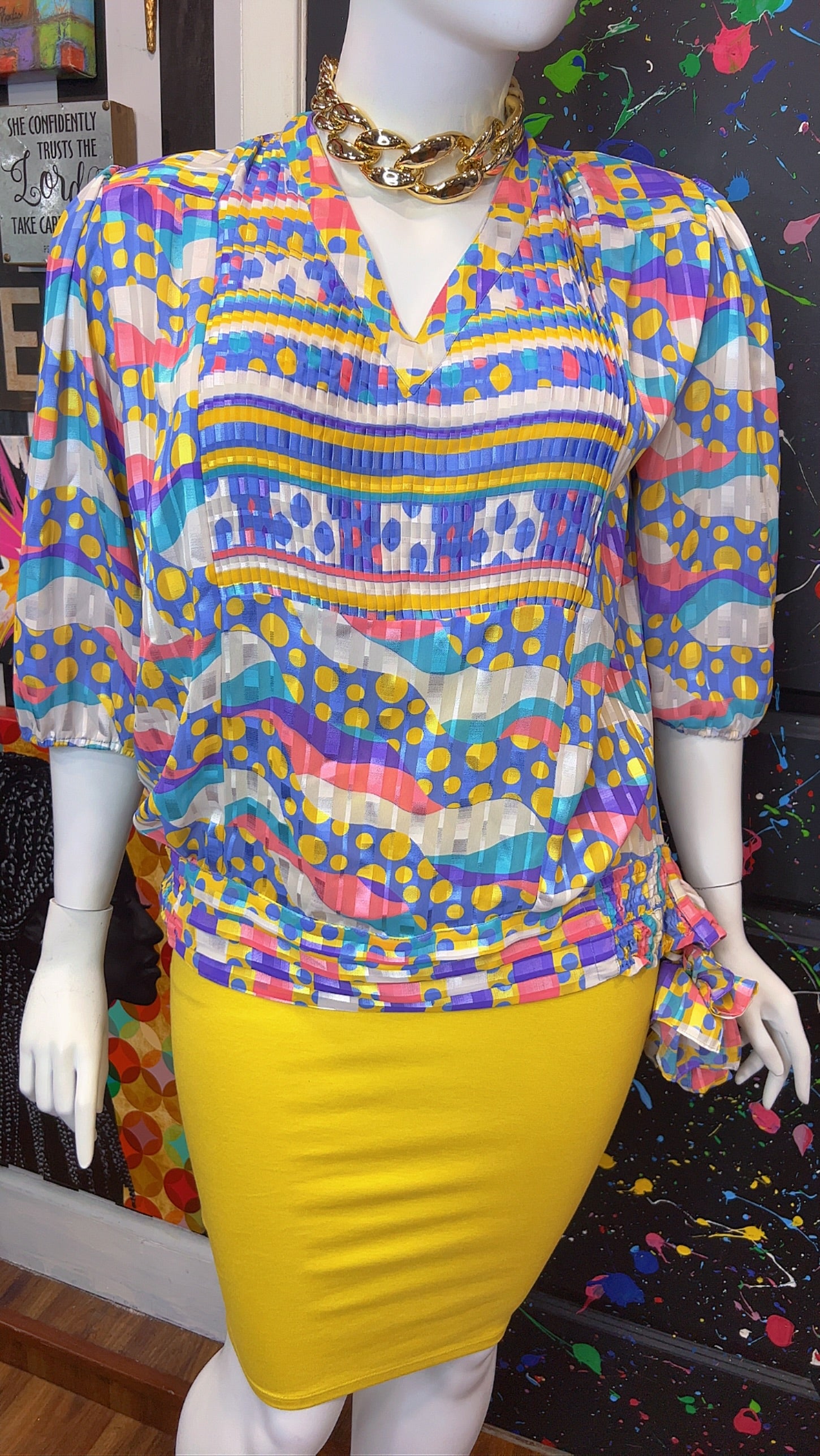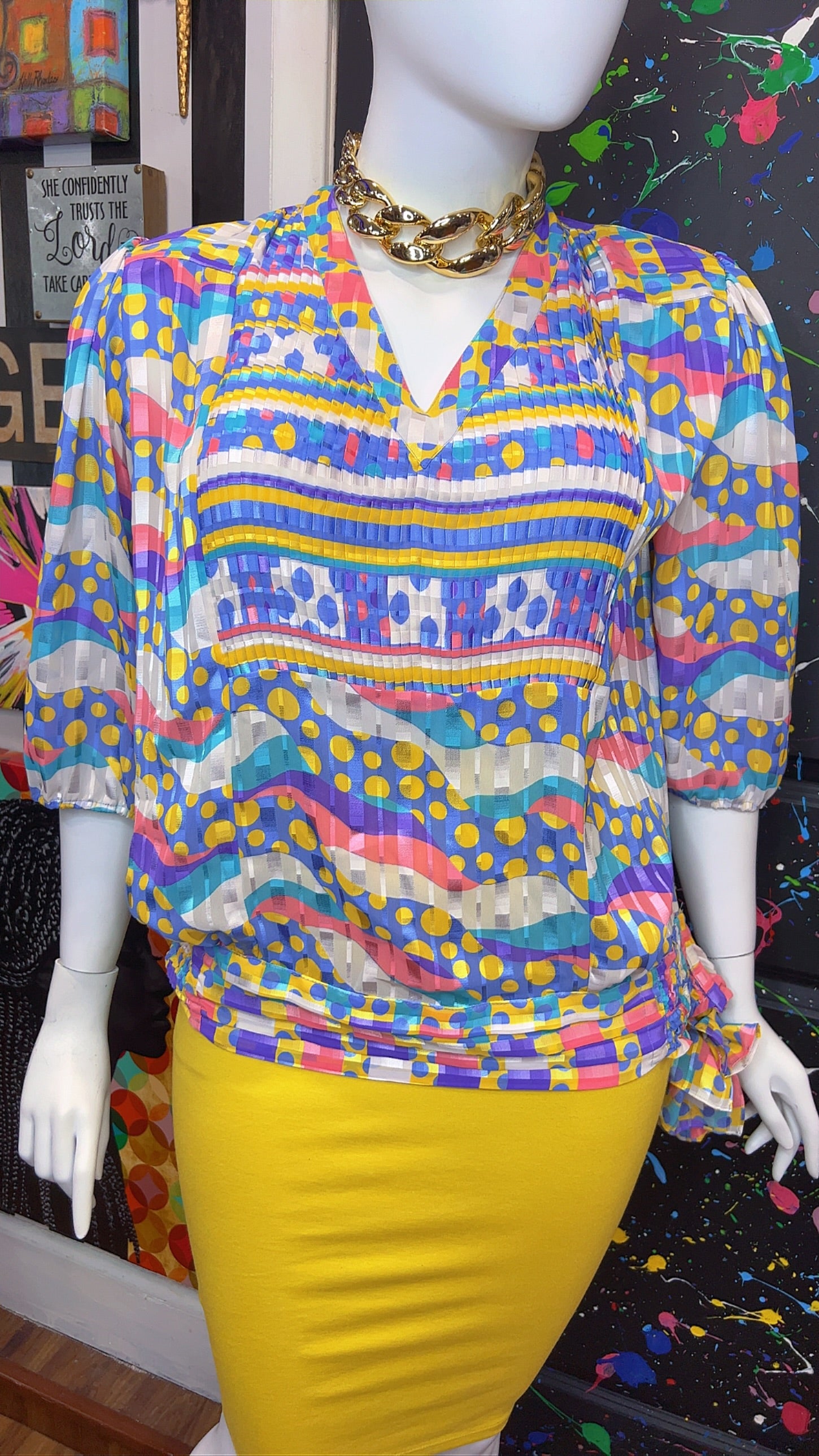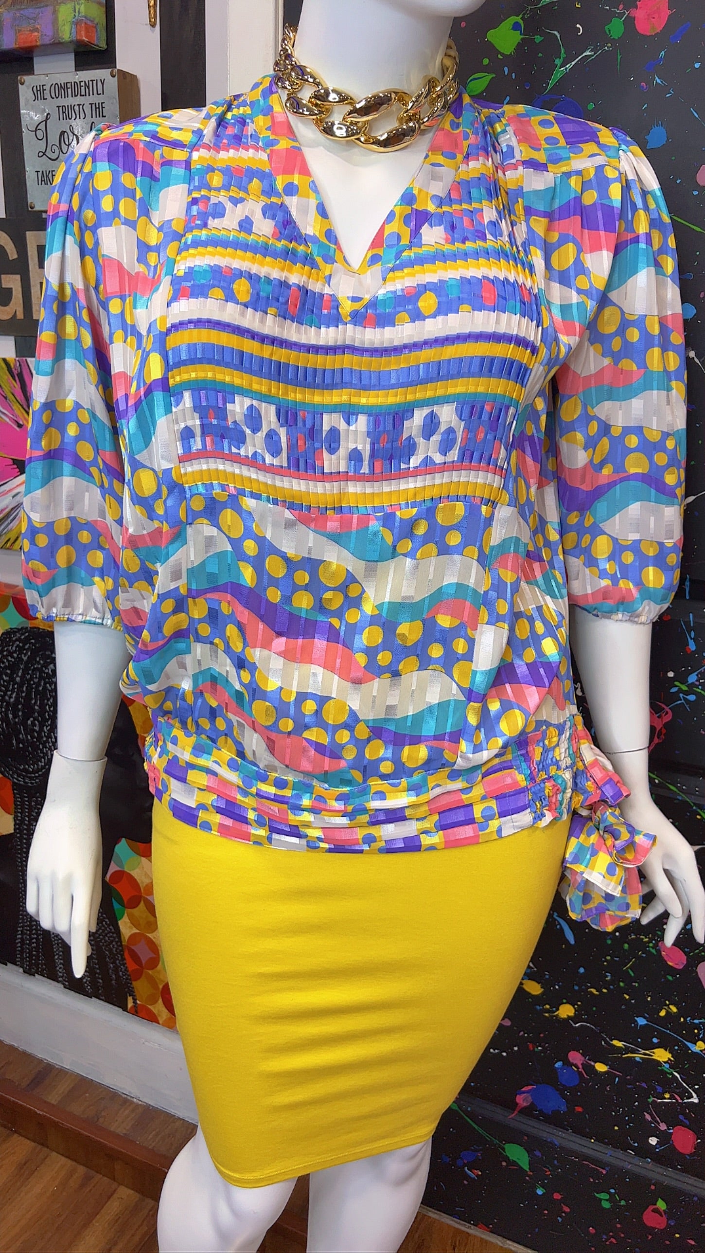 Vintage Pastel Polka Dot & Mix Print Blouse (20)