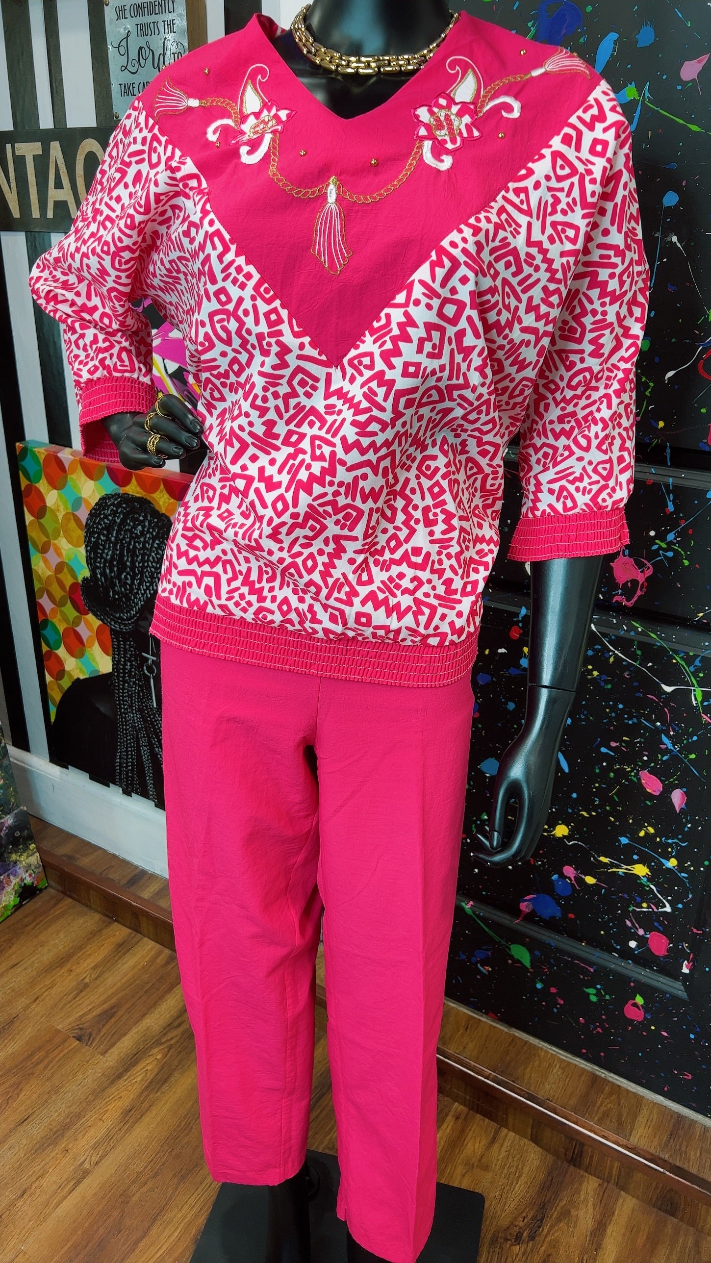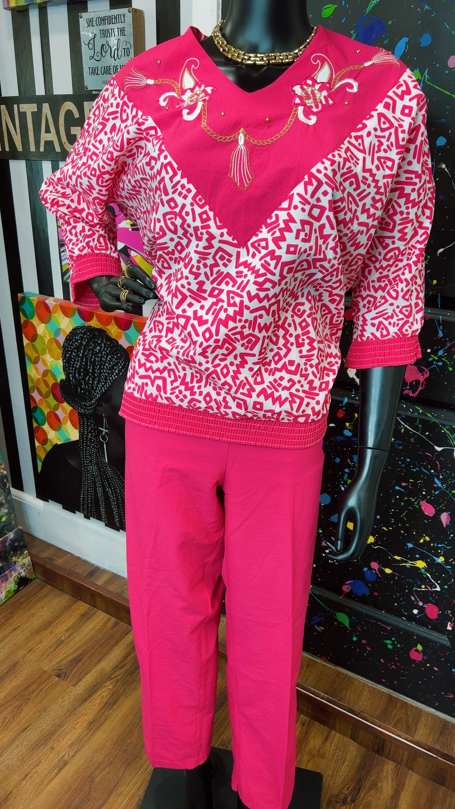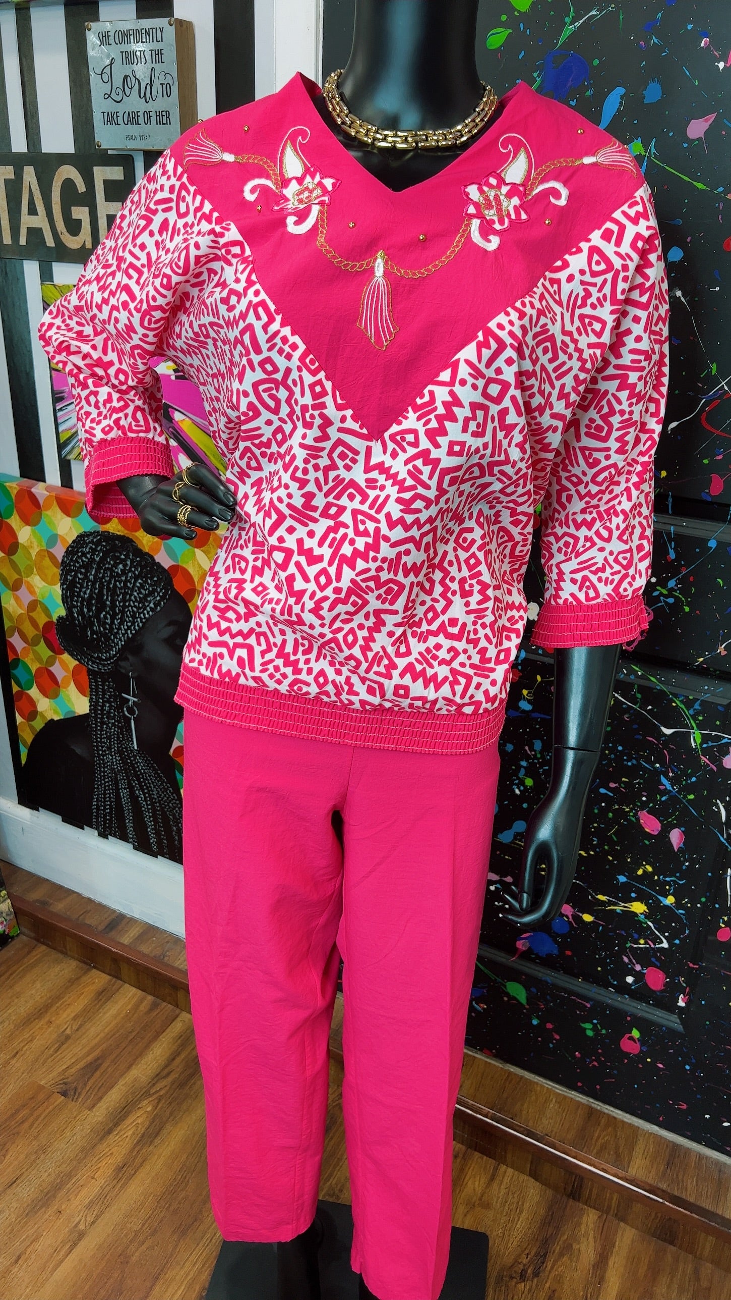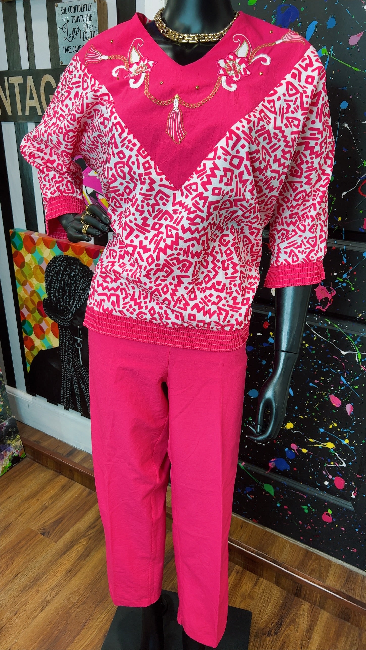 Vintage Pink & White Bonnie Pants Set (12/14)