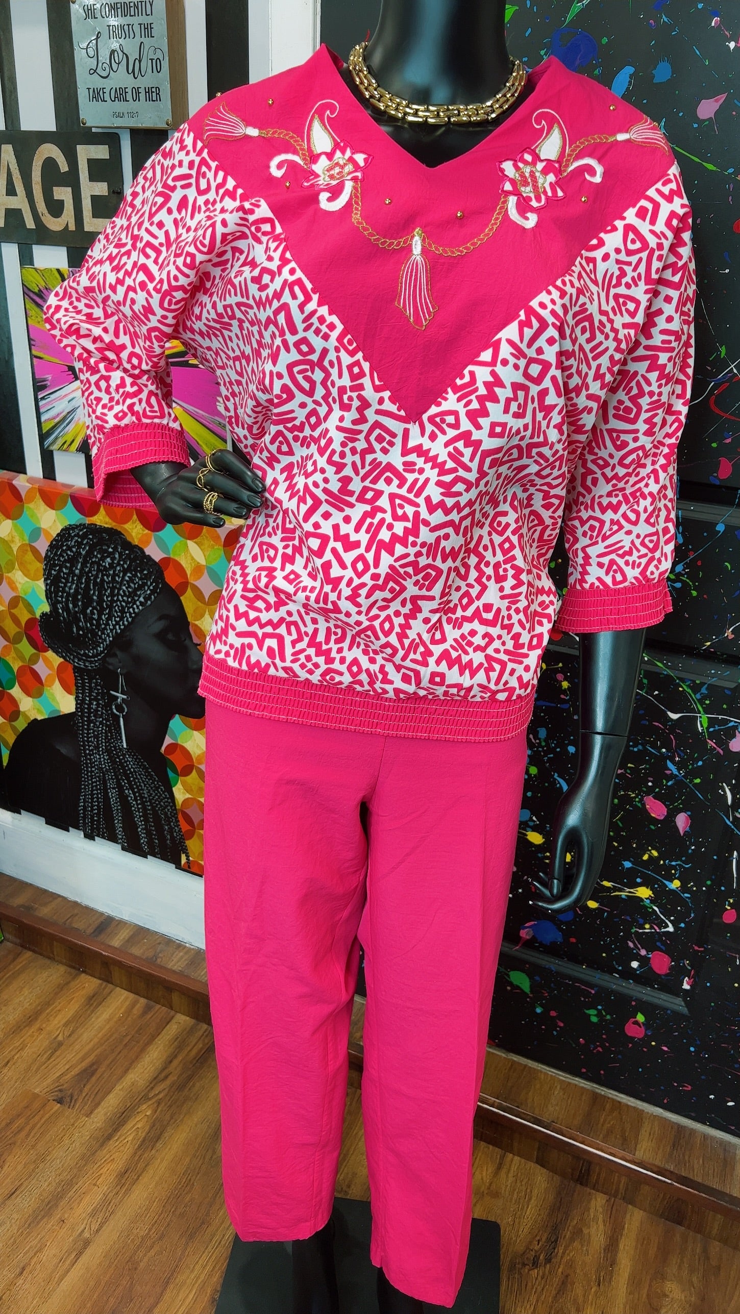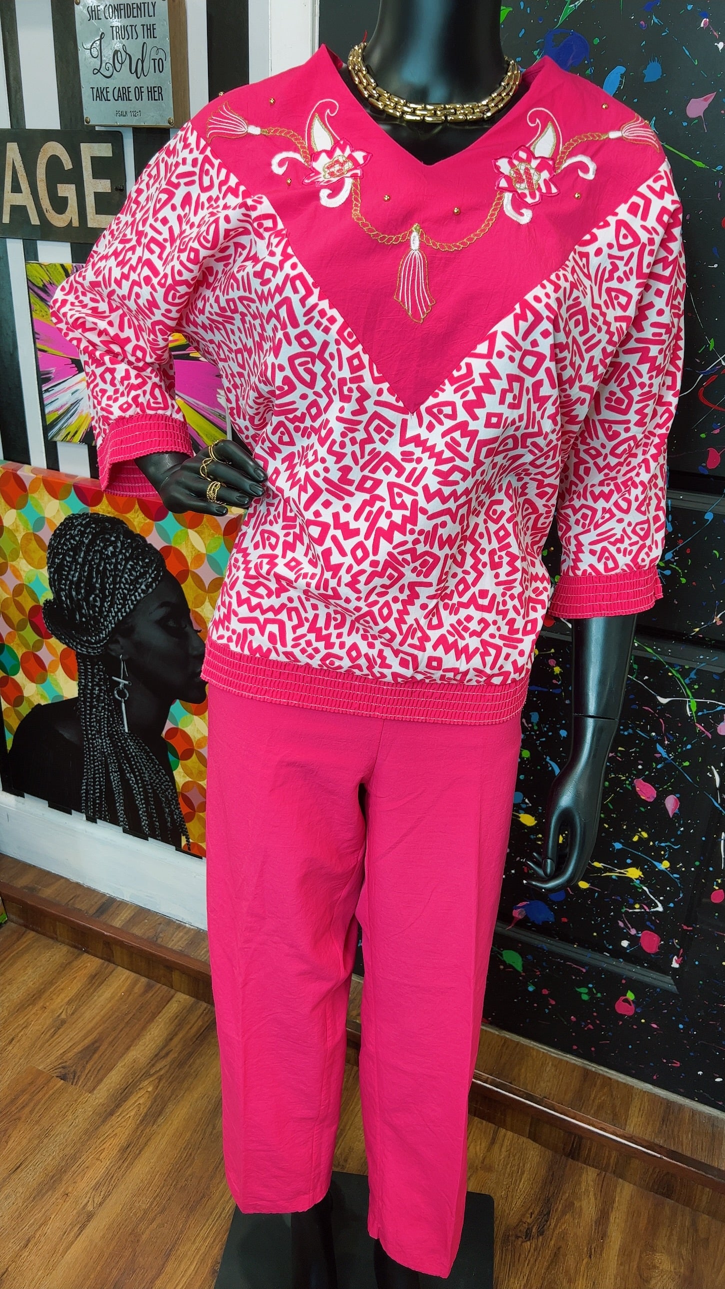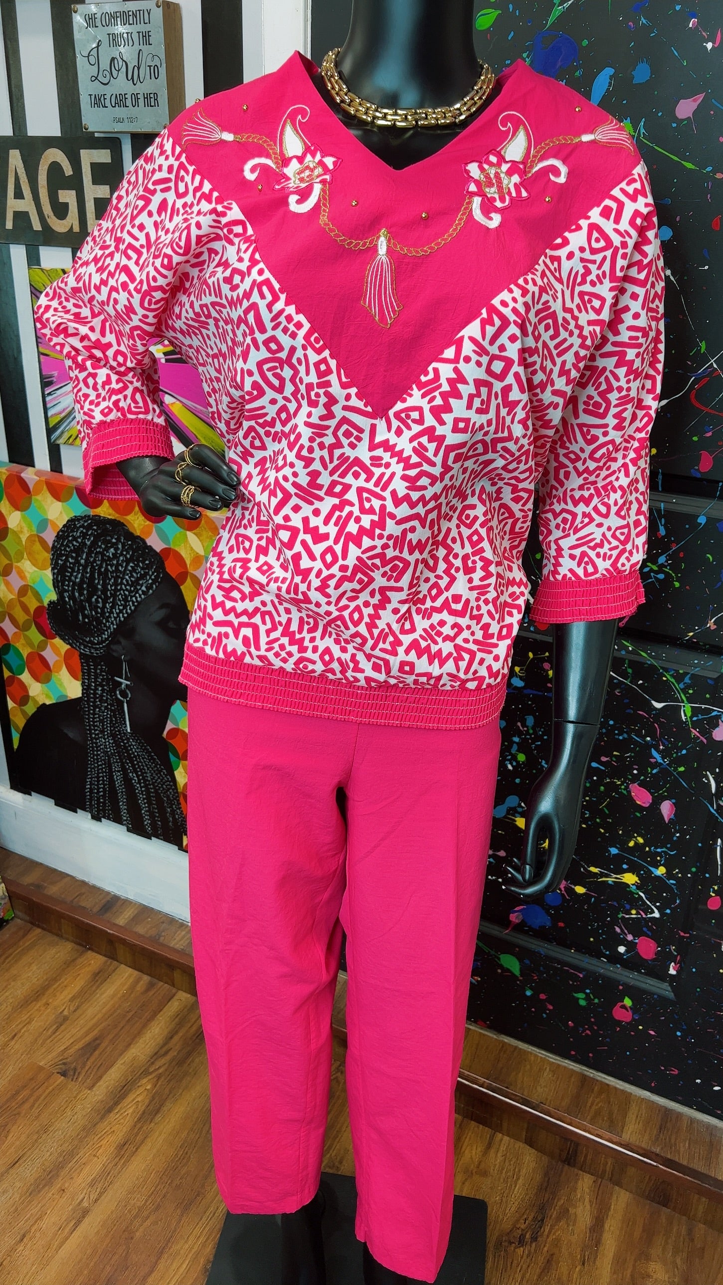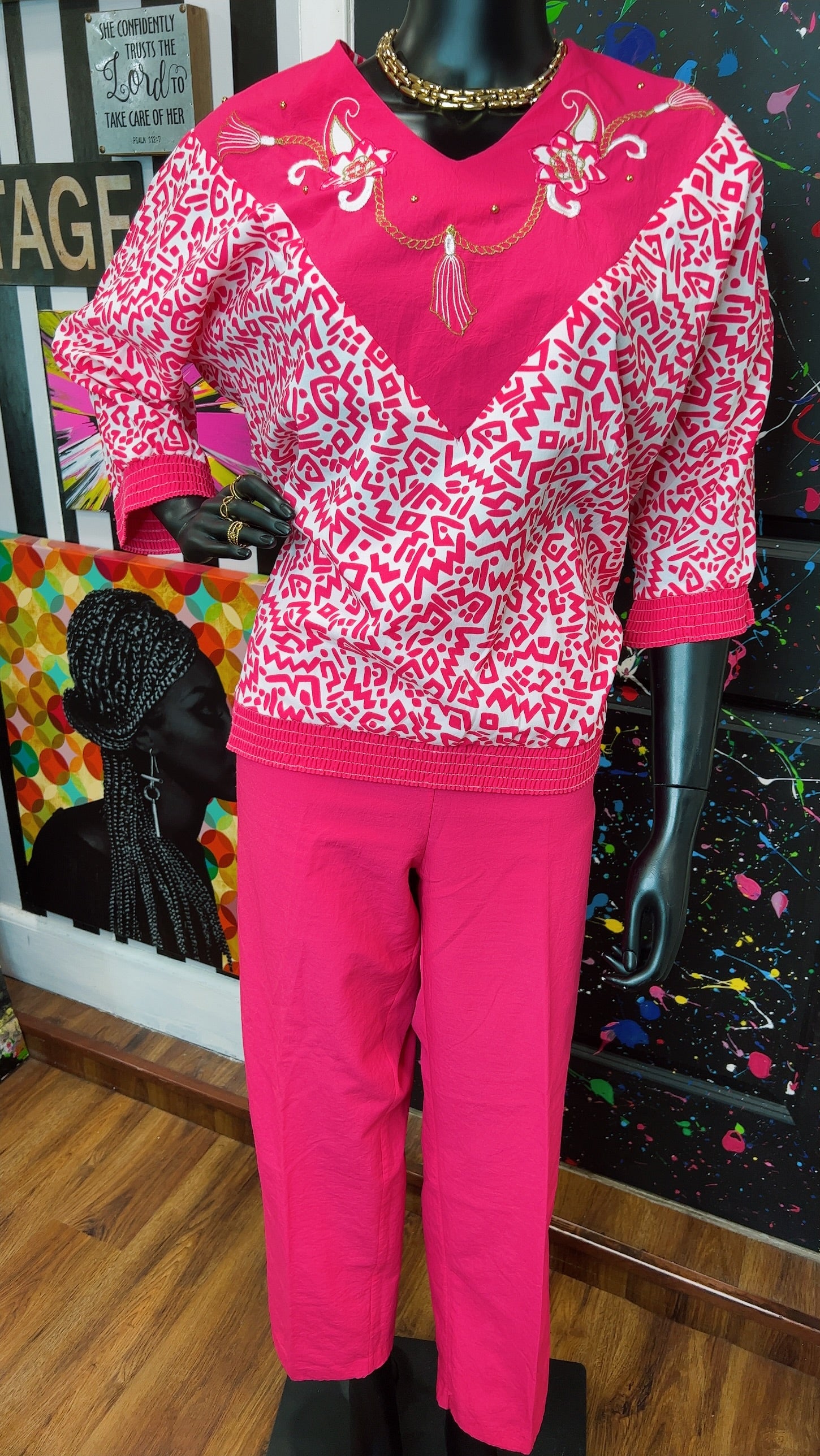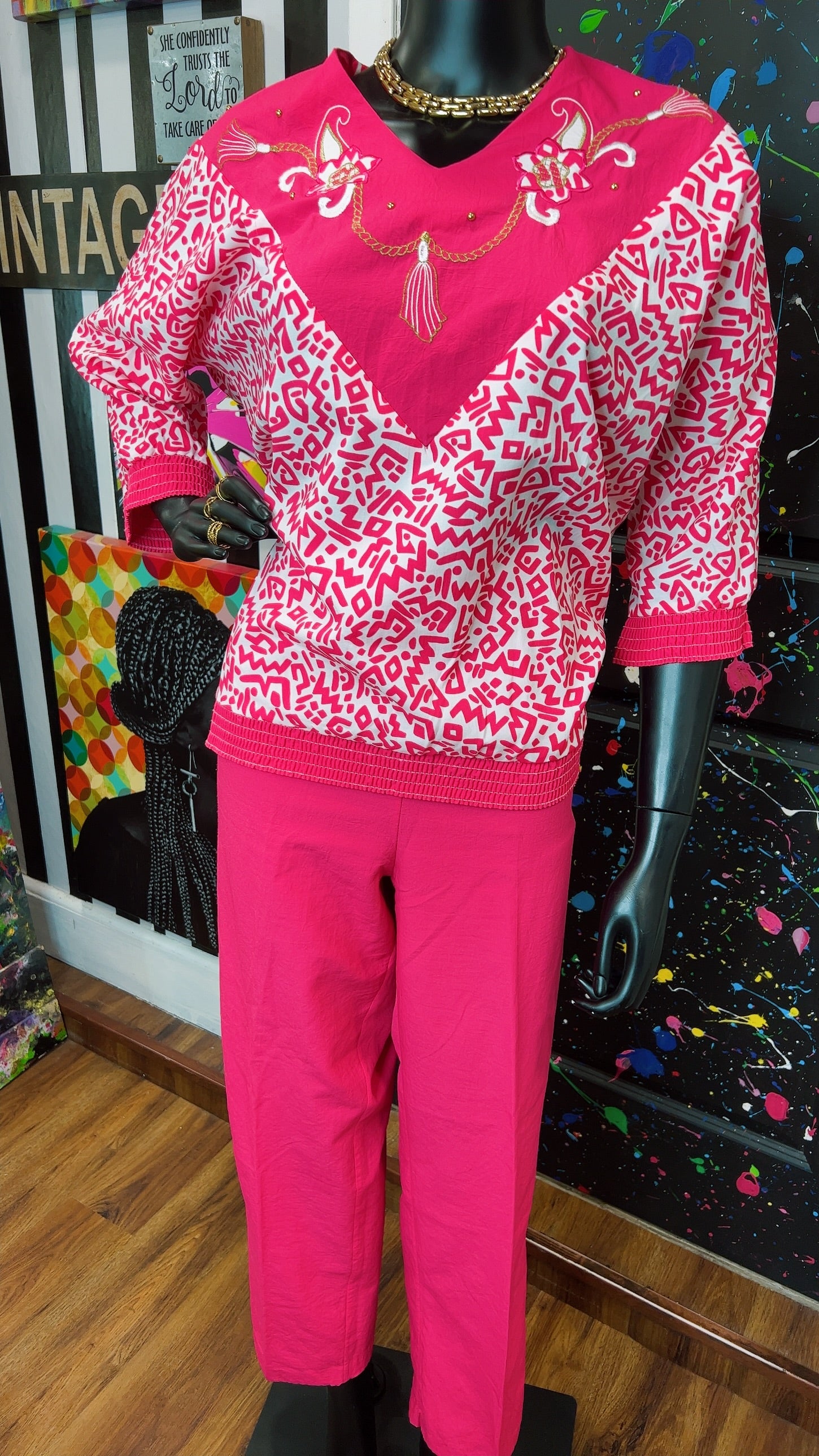 Vintage Pink & White Bonnie Pants Set (12/14)