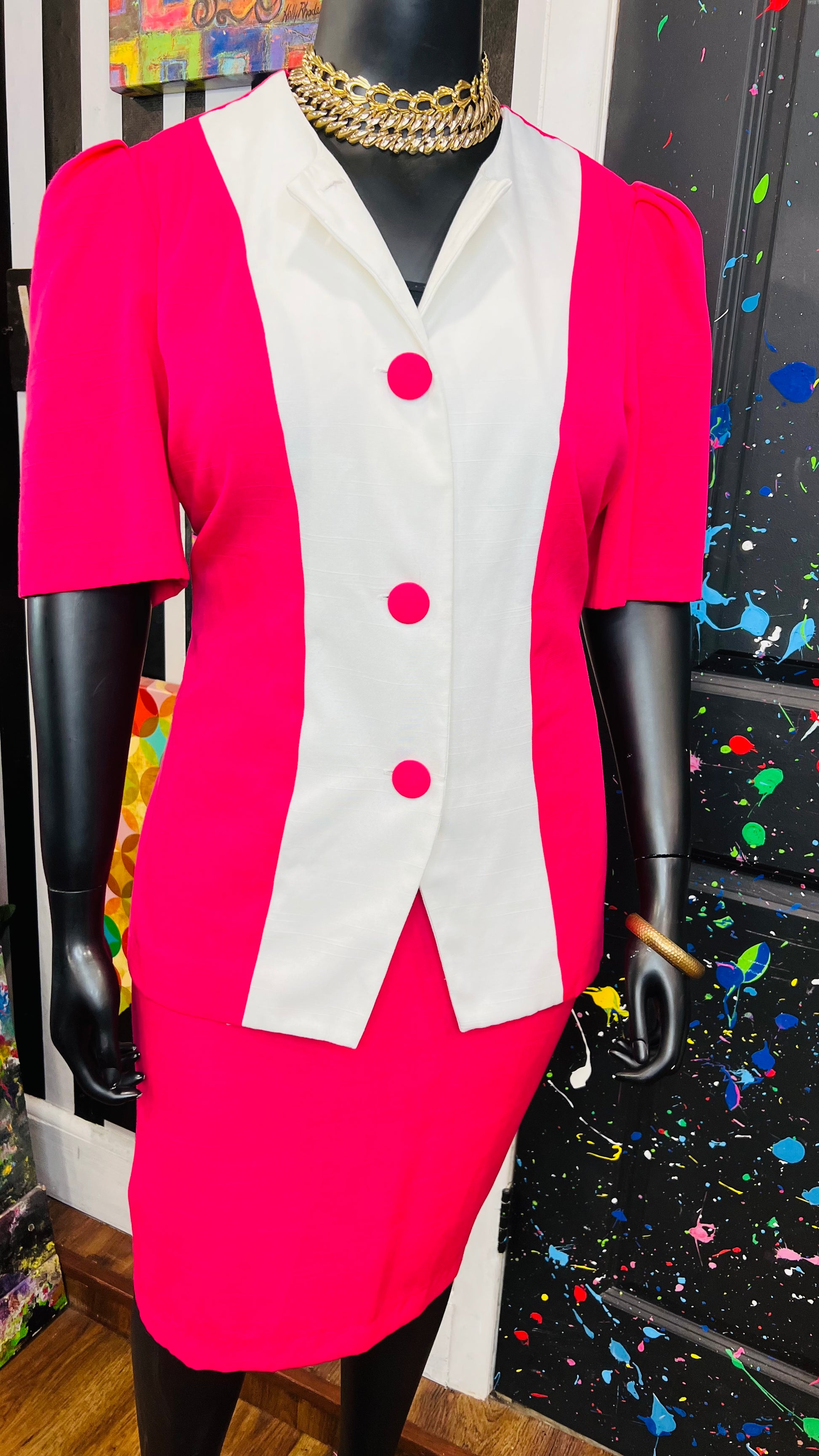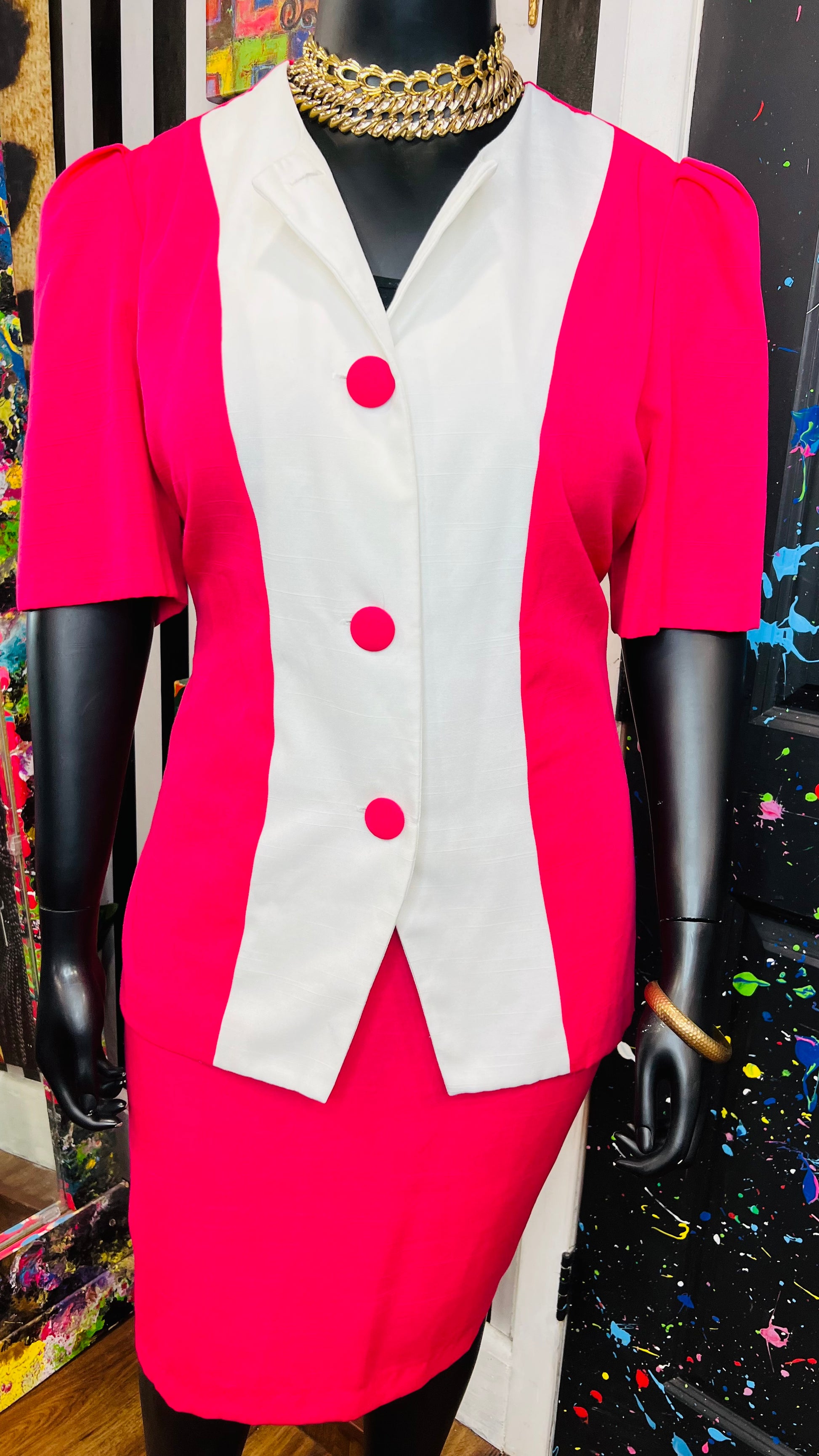 Imperfection (see photos): Top pink button missing, subtle spot on side of skirt.