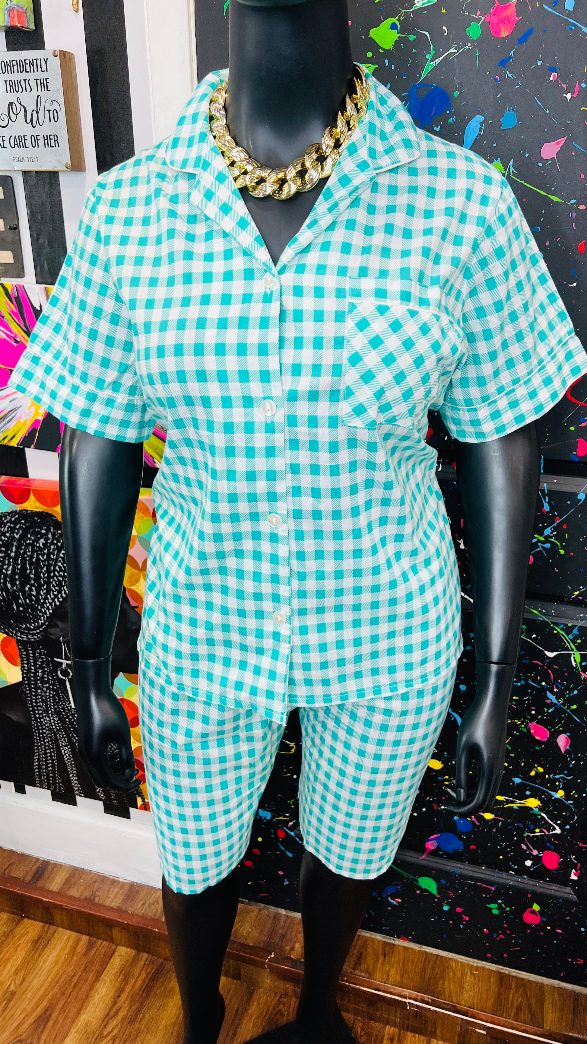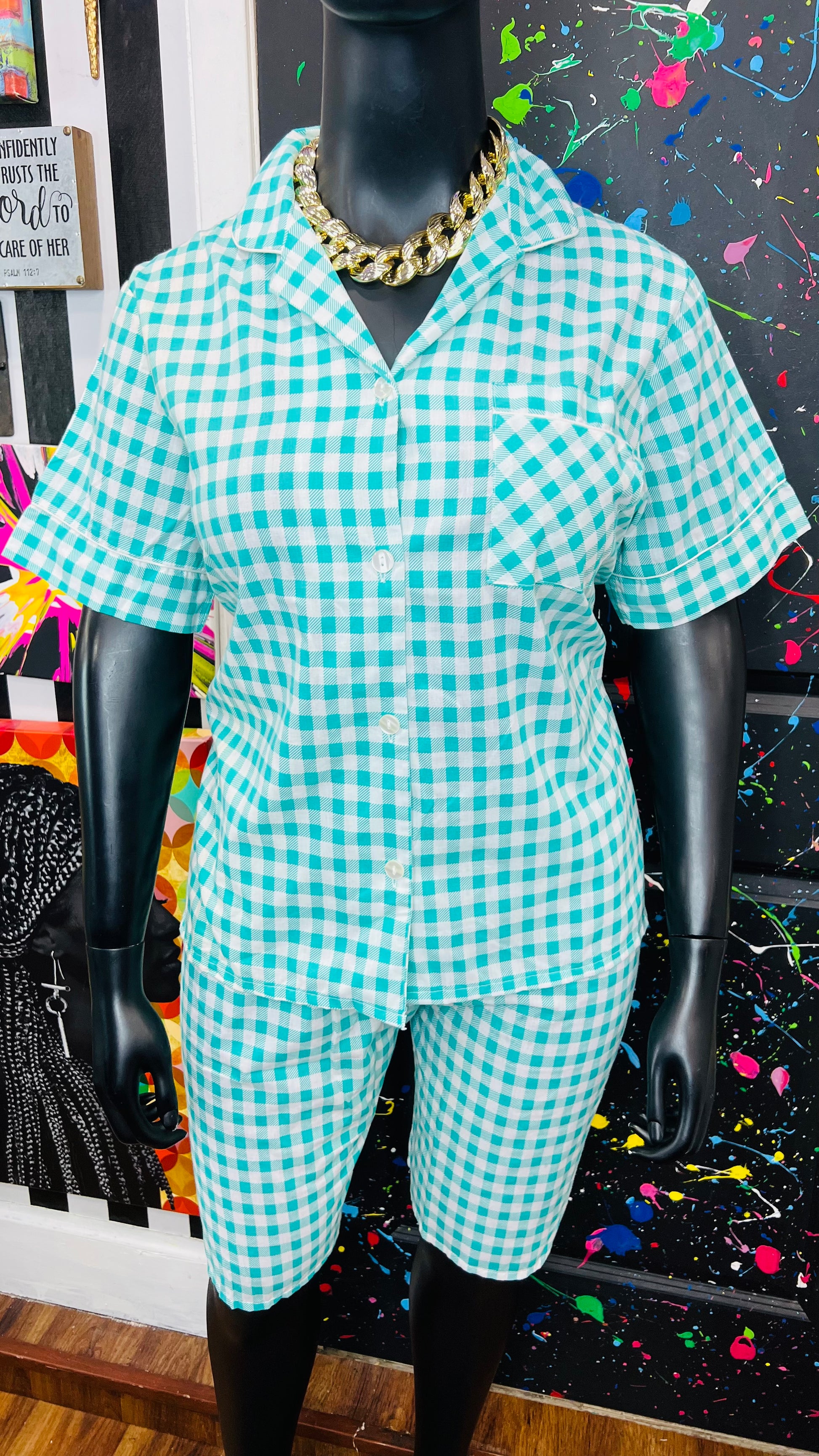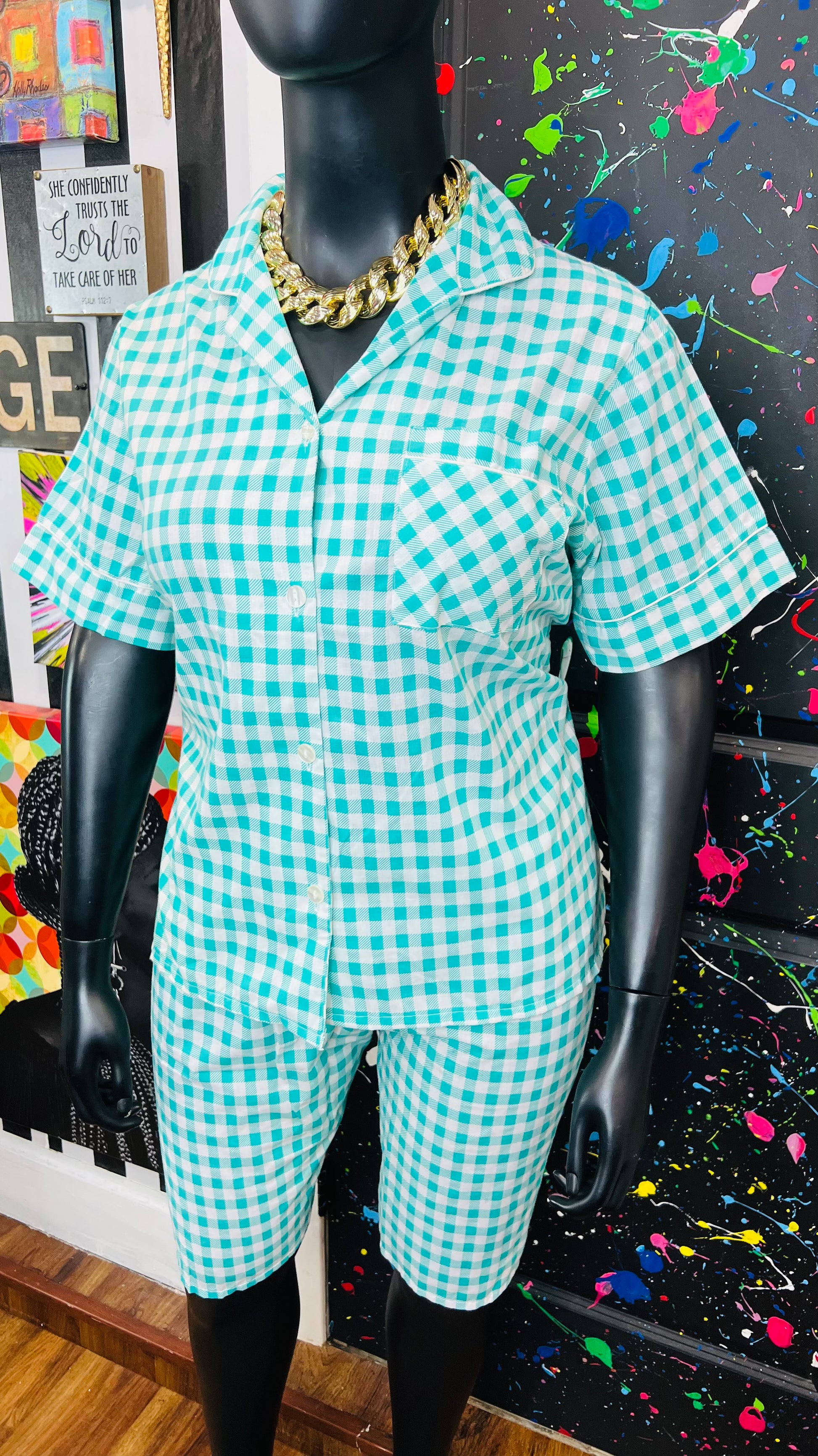 Vintage Plaid Teal & White (16)