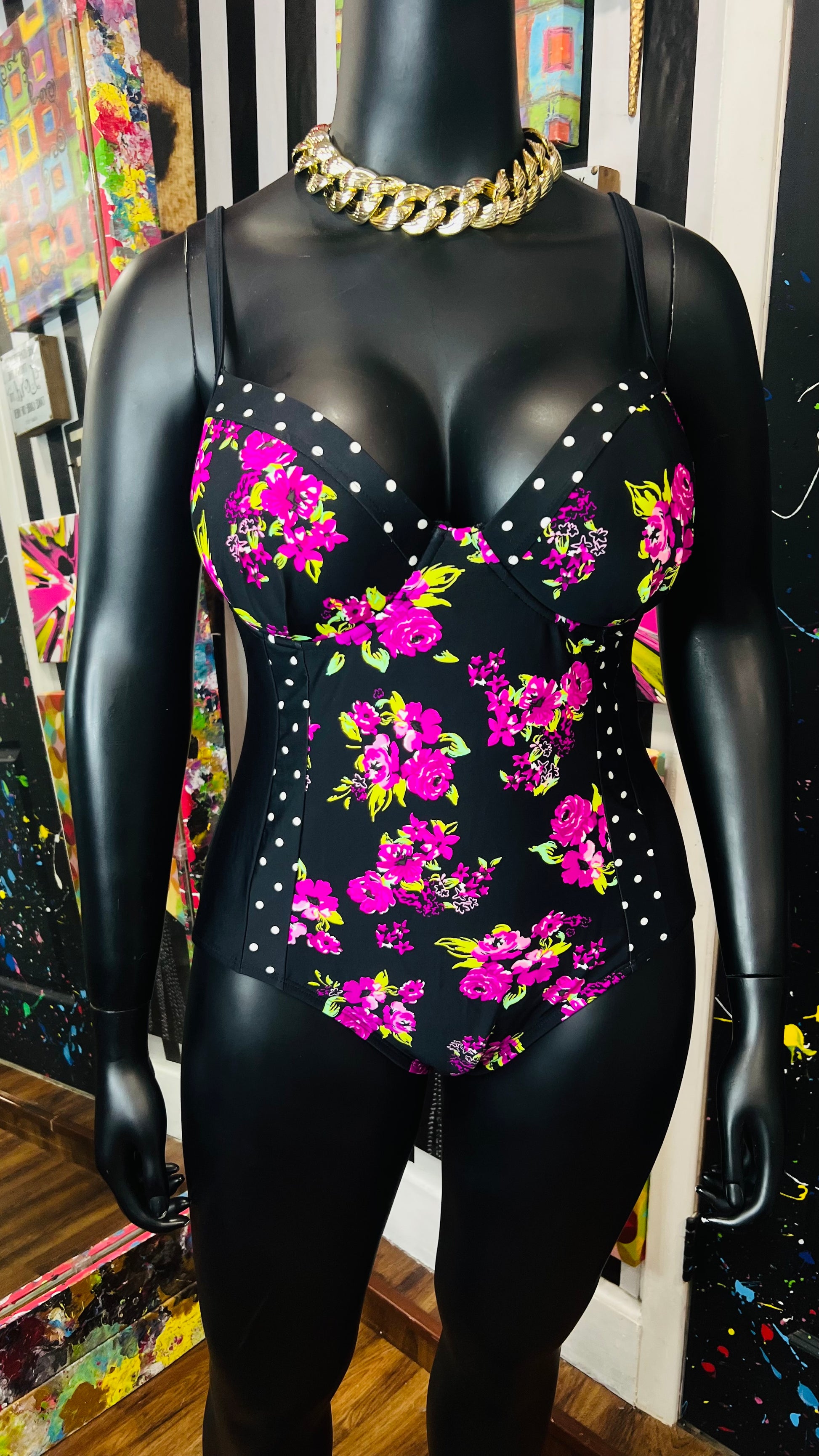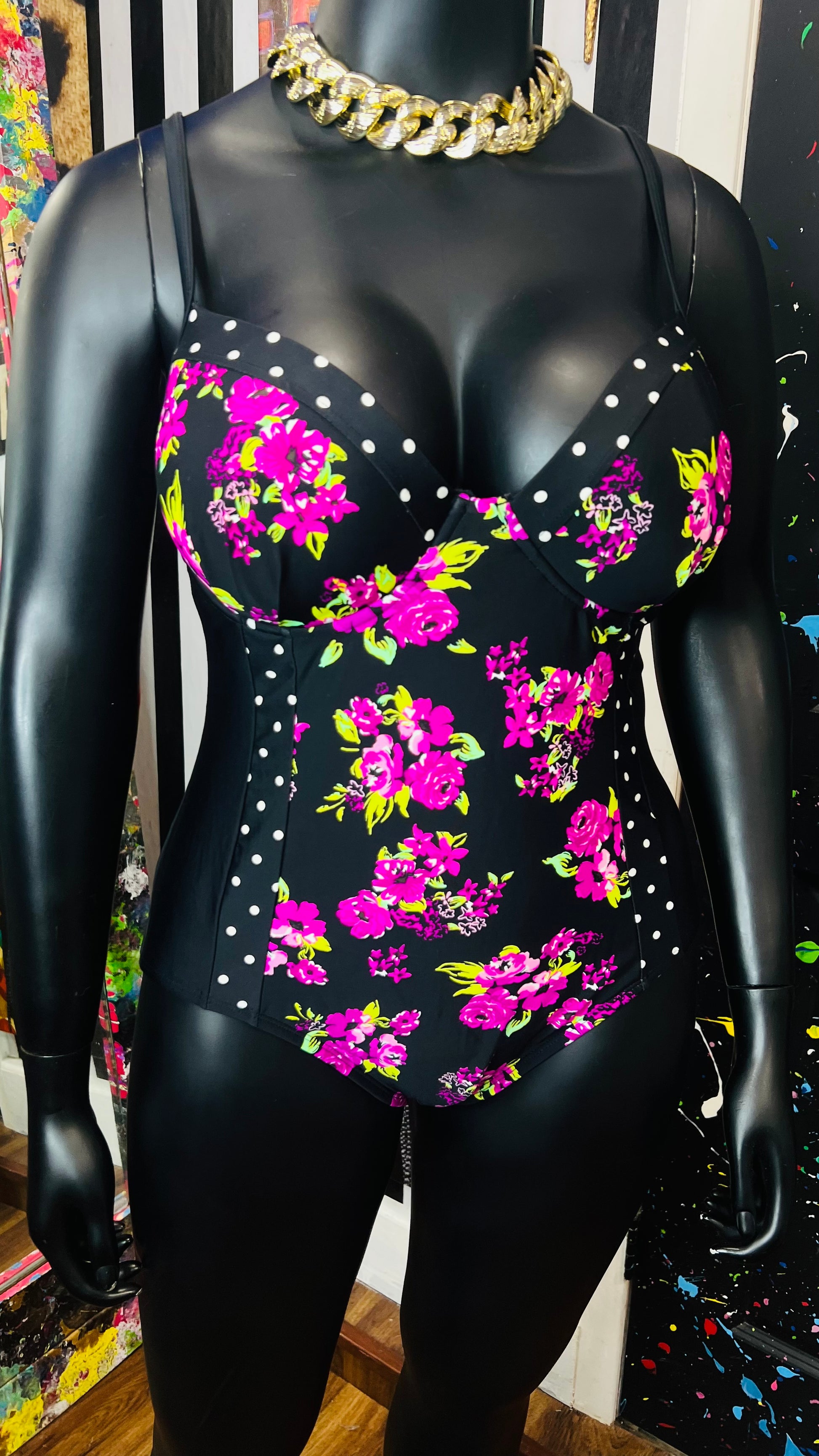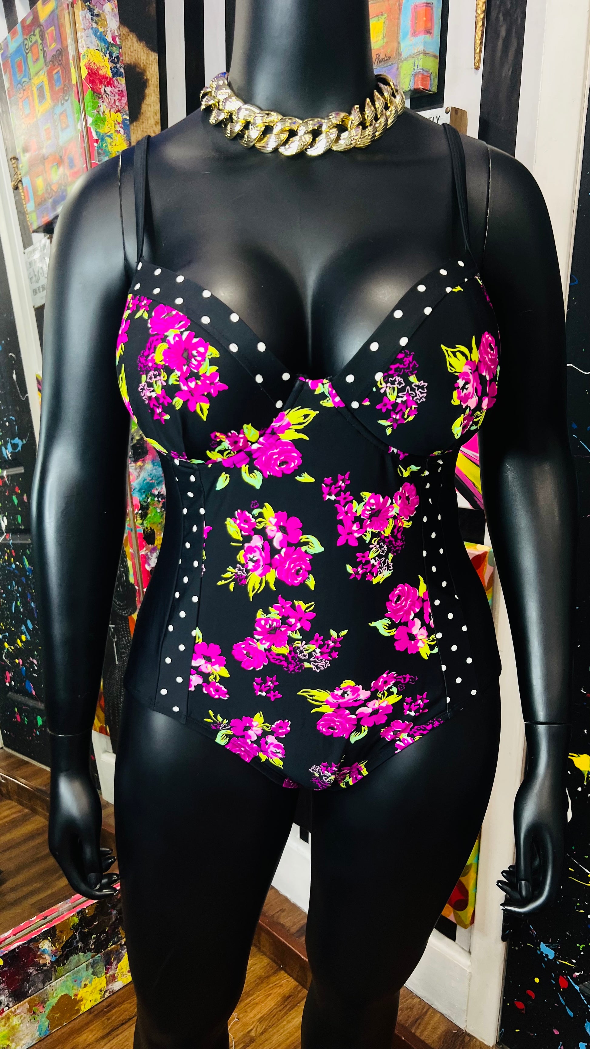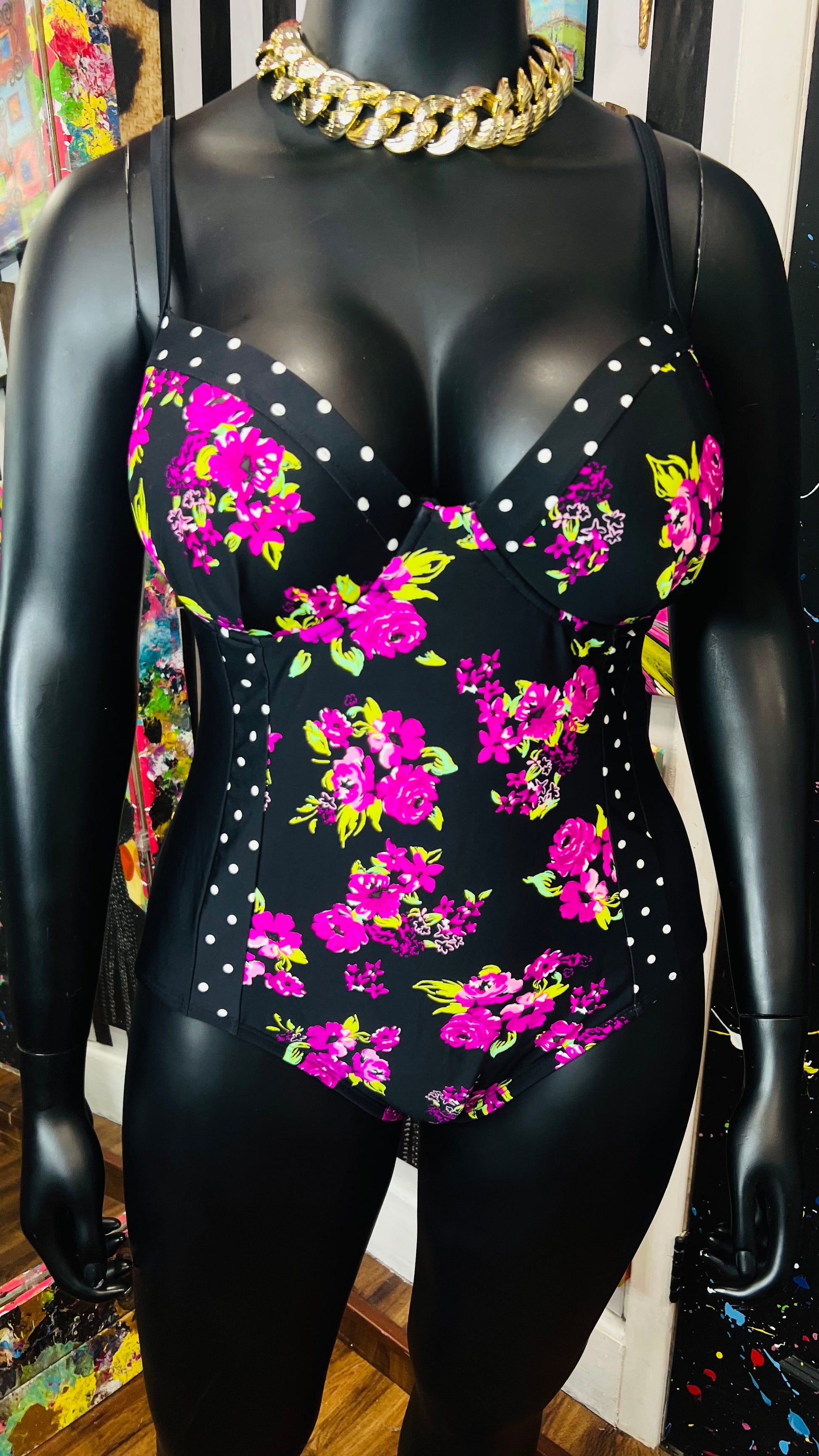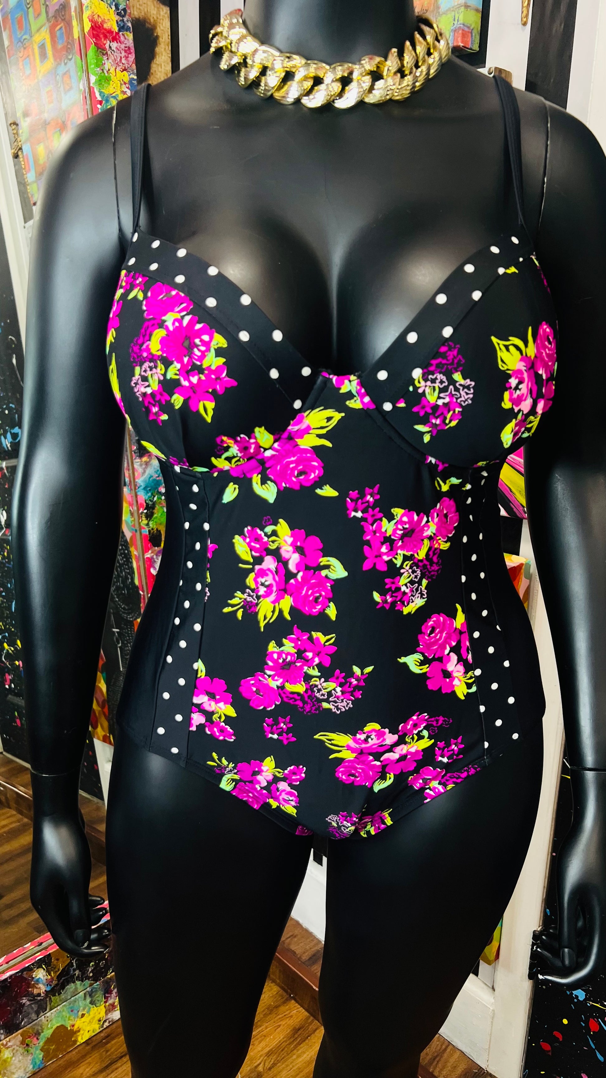 Vintage Polka Dot & Floral Swimsuit (18W/20W)