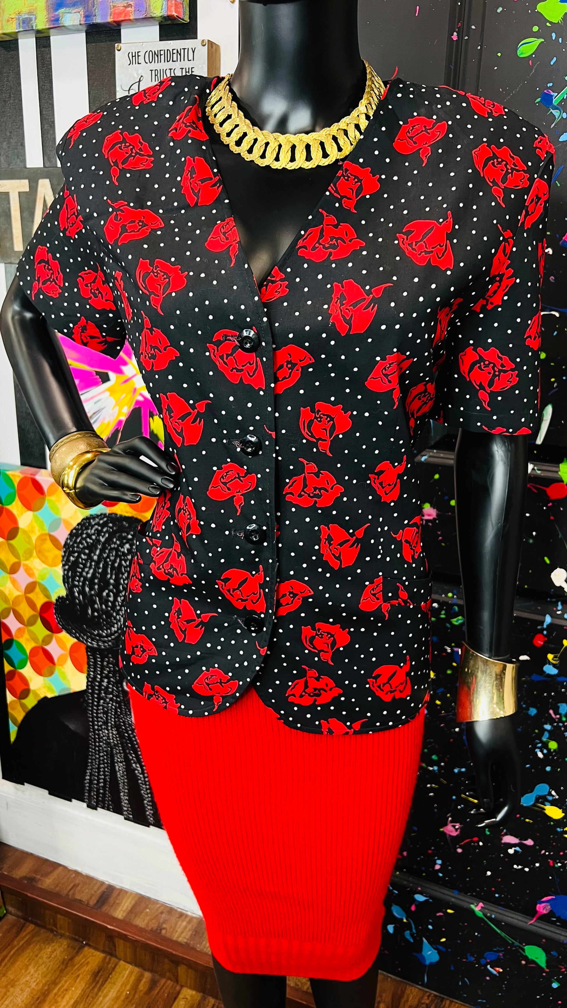 Vintage Polka Dot & Rose Blazer Blouse (12)