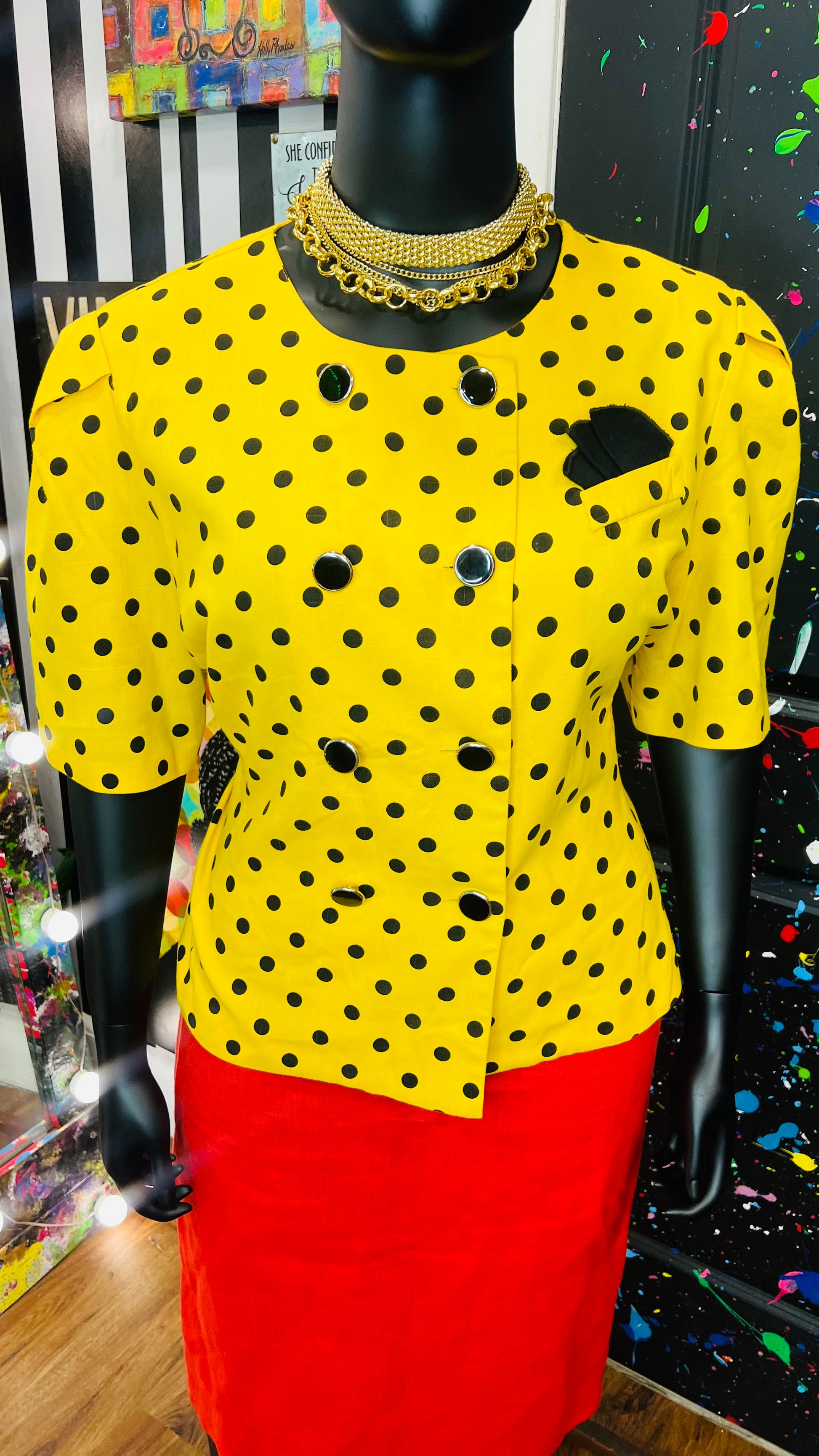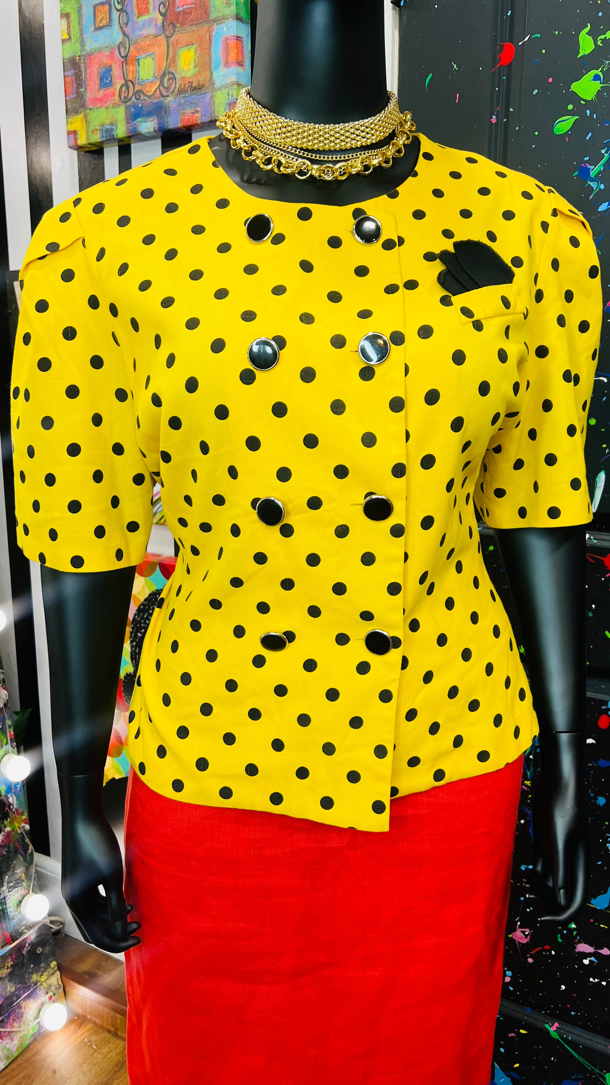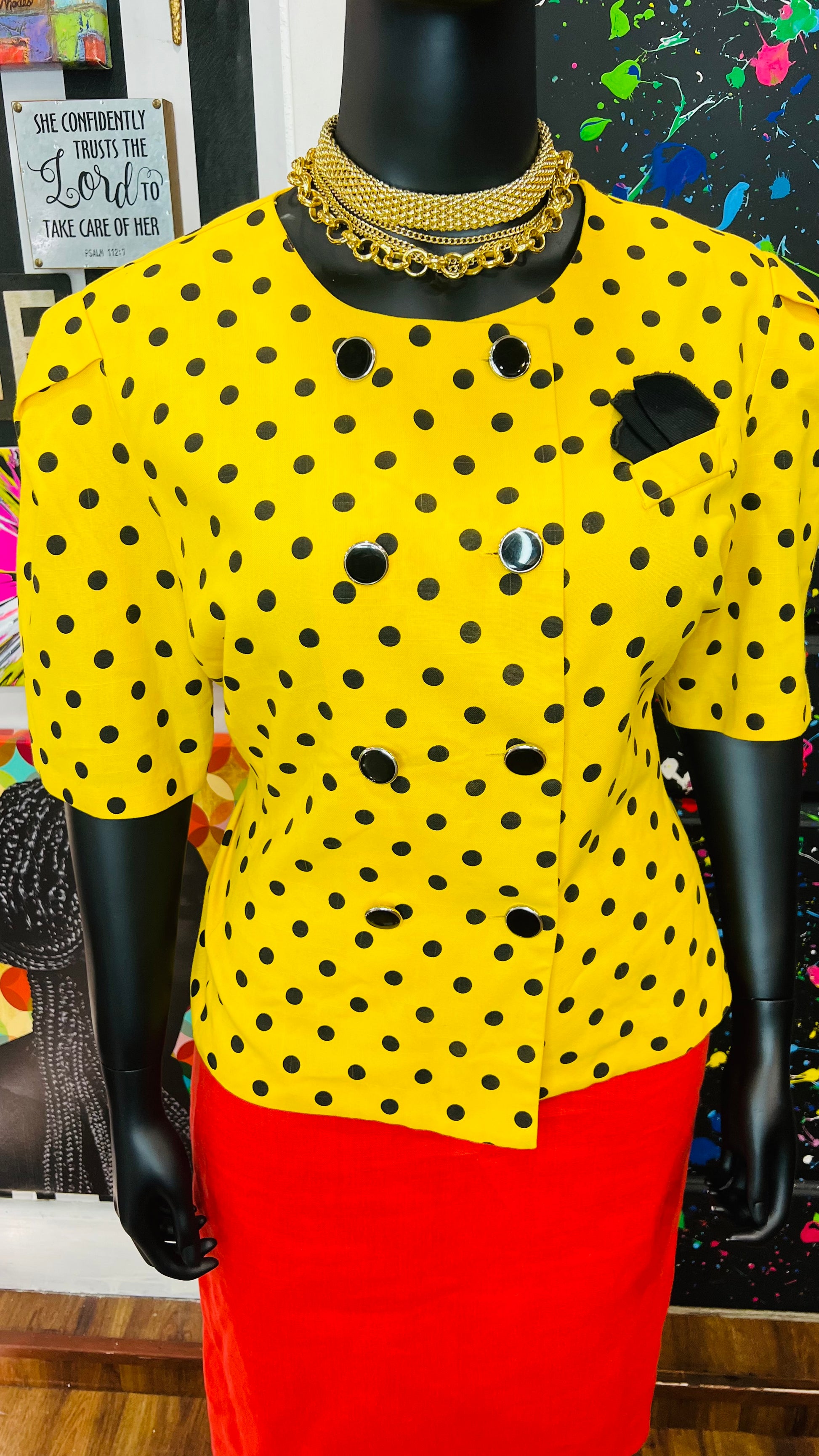 Vintage Polka Dot Short Sleeve Double Breasted Blazer (20)